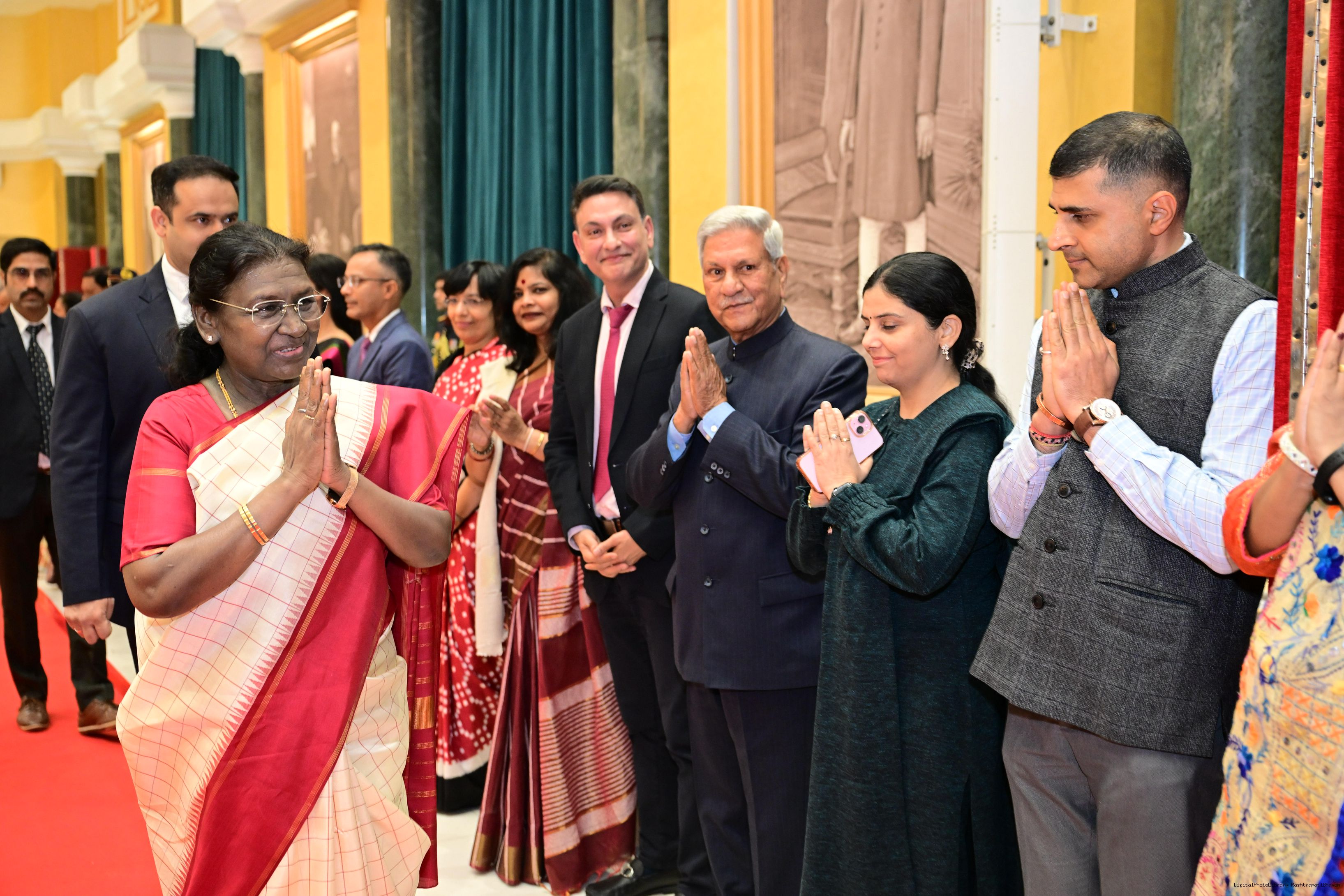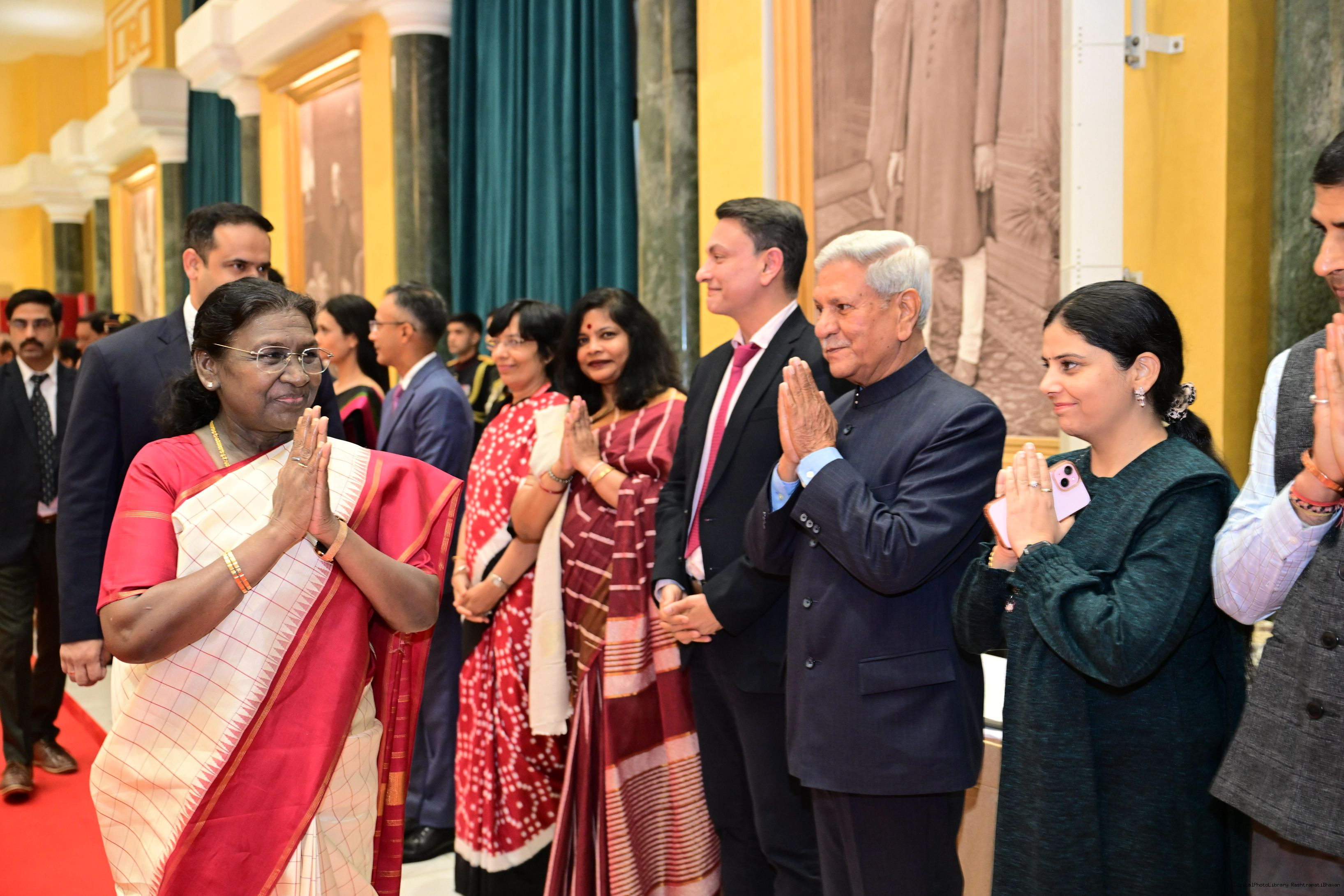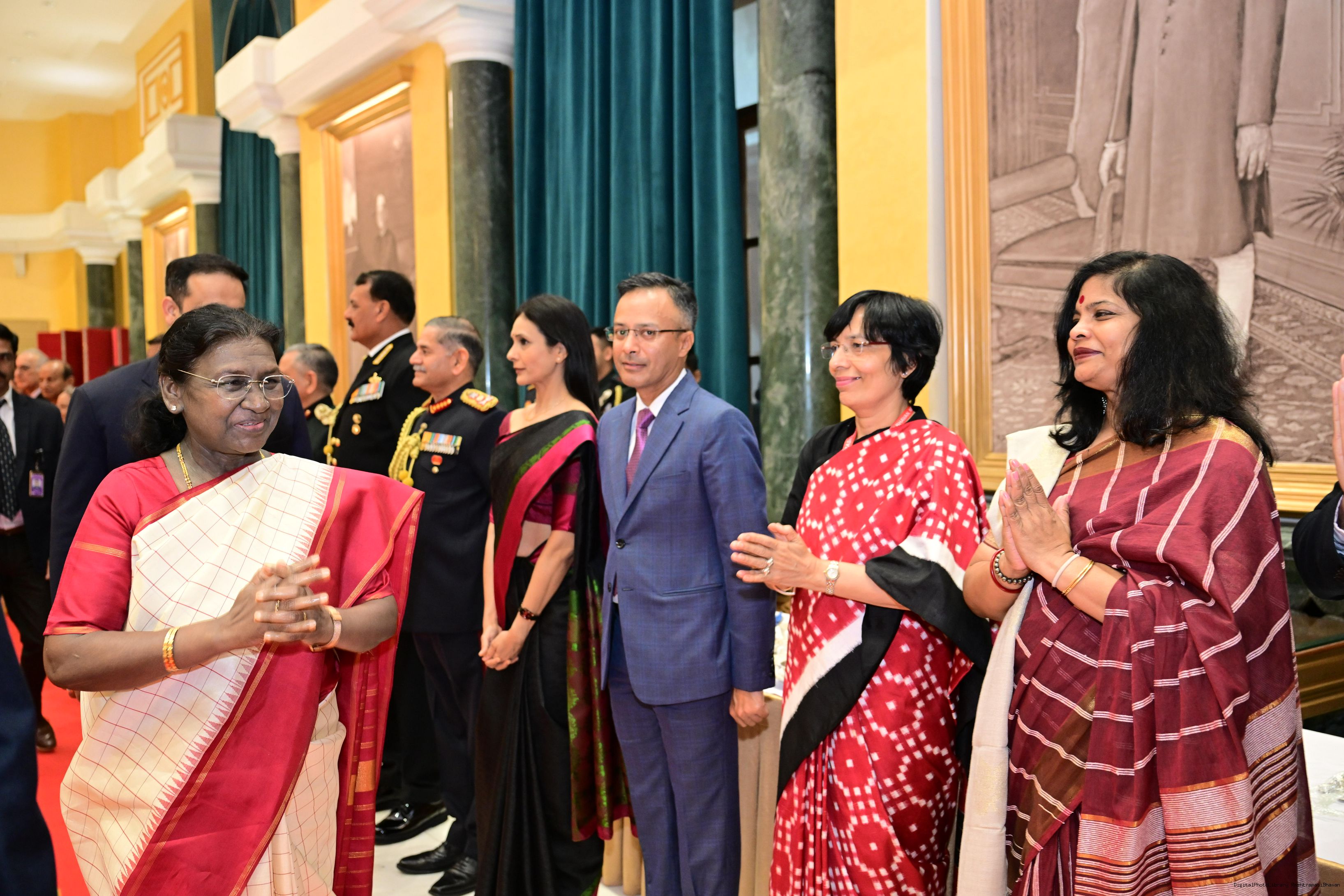 | Caption: | The President of India, Smt. Droupadi Murmu hosted a dinner at Rashtrapati Bhavan Cultural Centre to welcome the newly sworn-in Chief Justice of India, Shri Justice Surya Kant on November 24, 2025. |