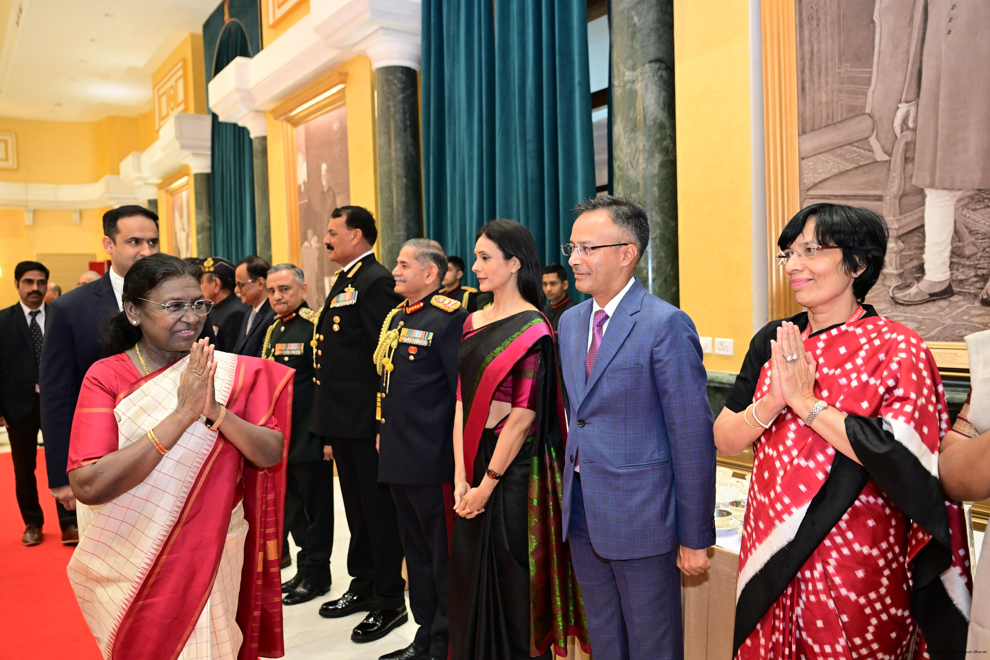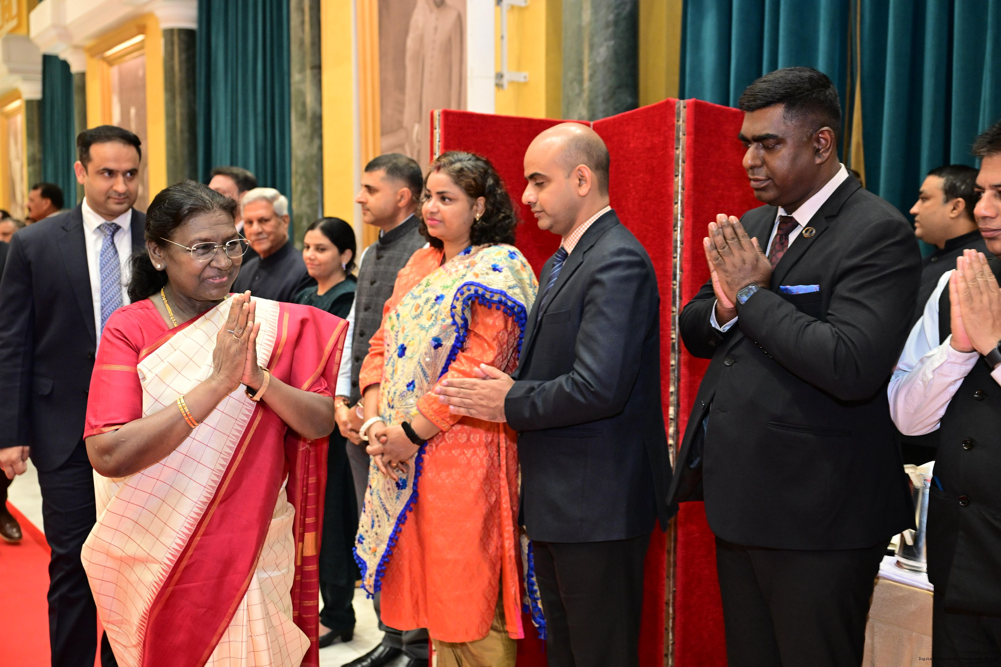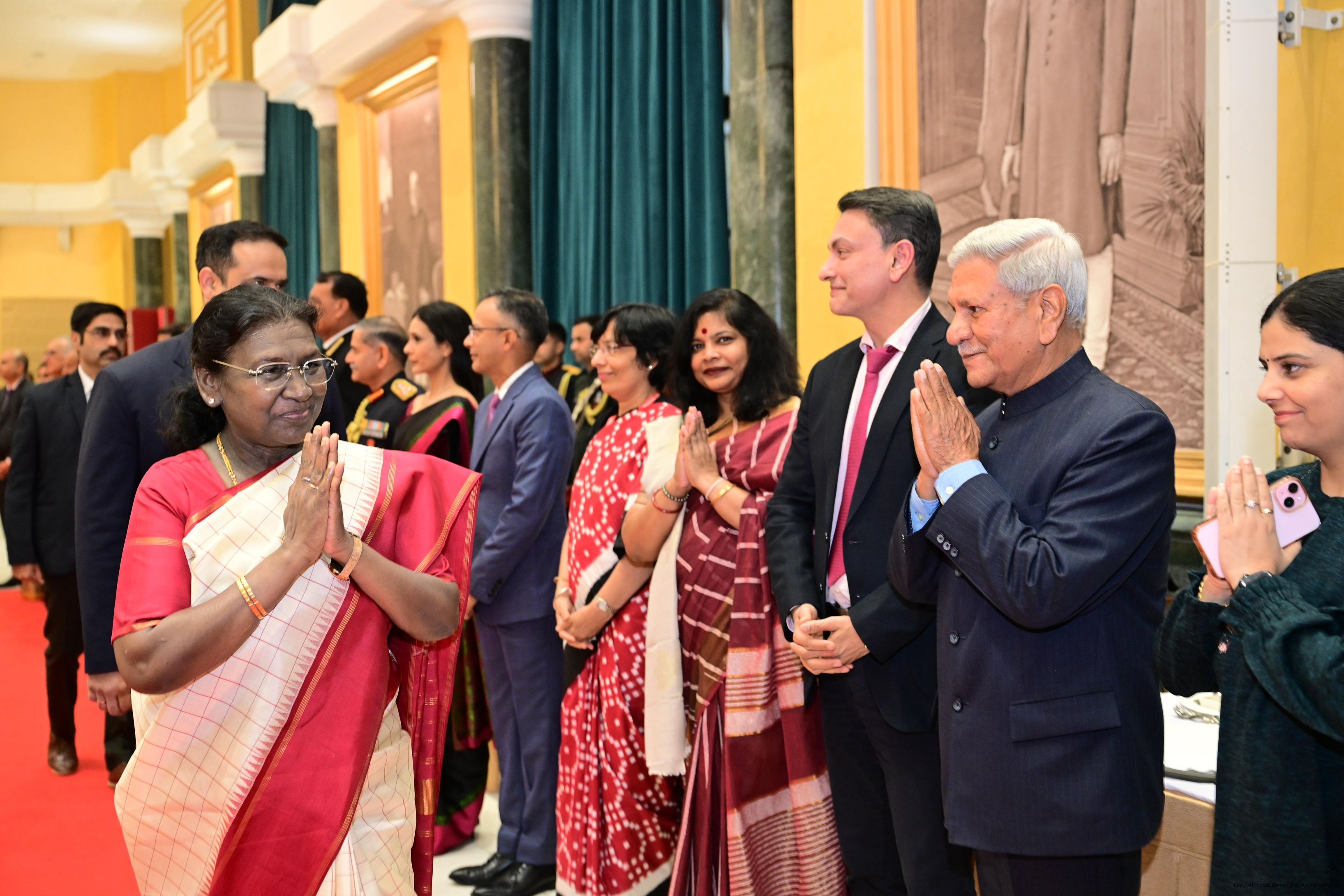 | Caption: | The President of India, Smt. Droupadi Murmu hosted a dinner at Rashtrapati Bhavan Cultural Centre to welcome the newly sworn-in Chief Justice of India, Shri Justice Surya Kant on November 24, 2025. |
