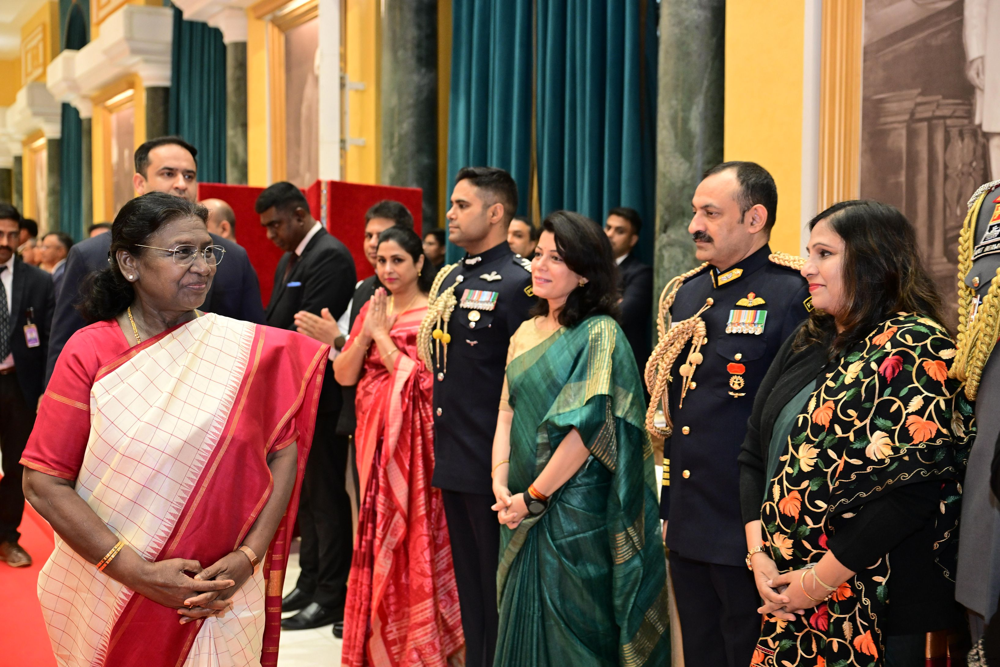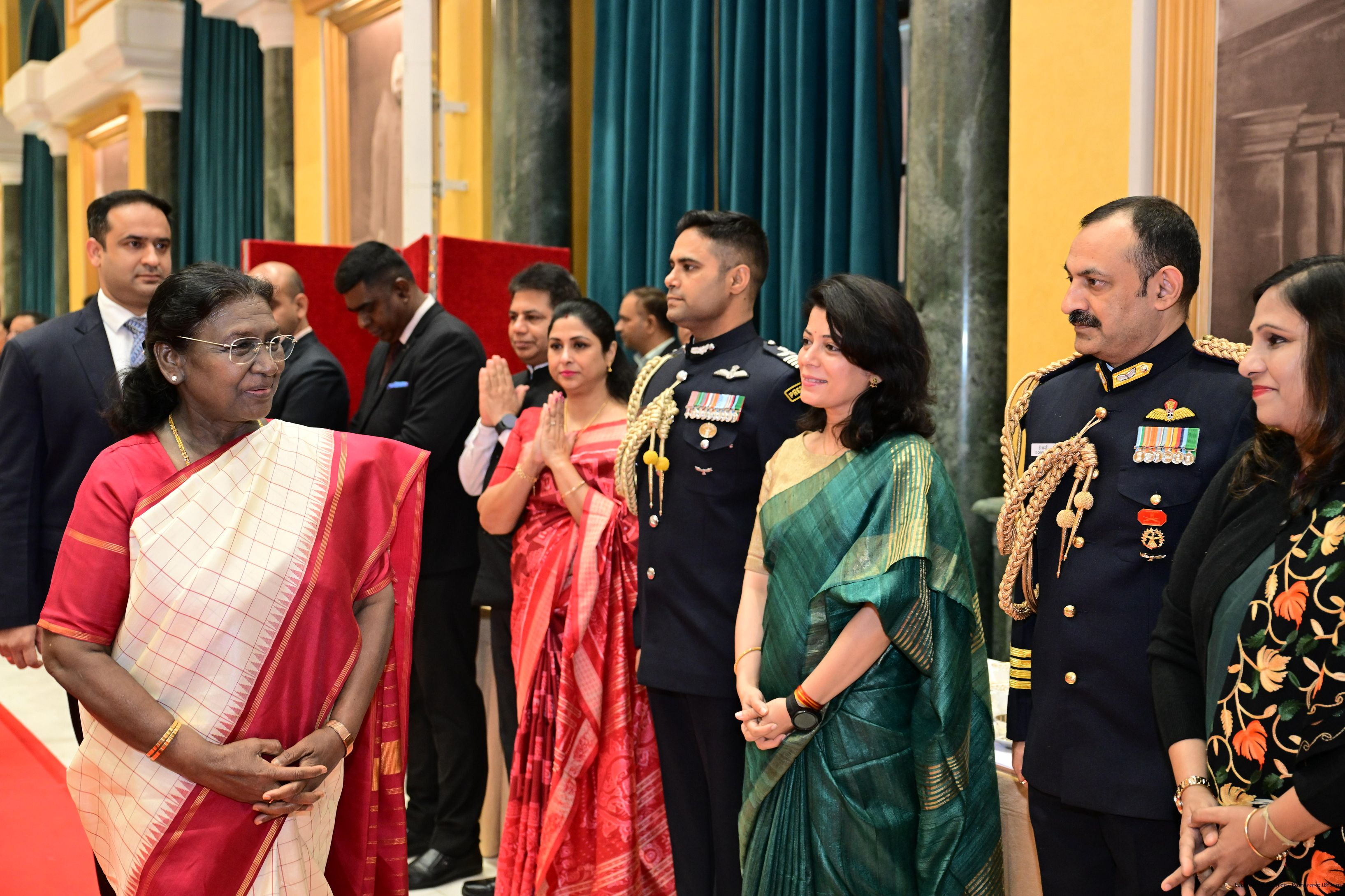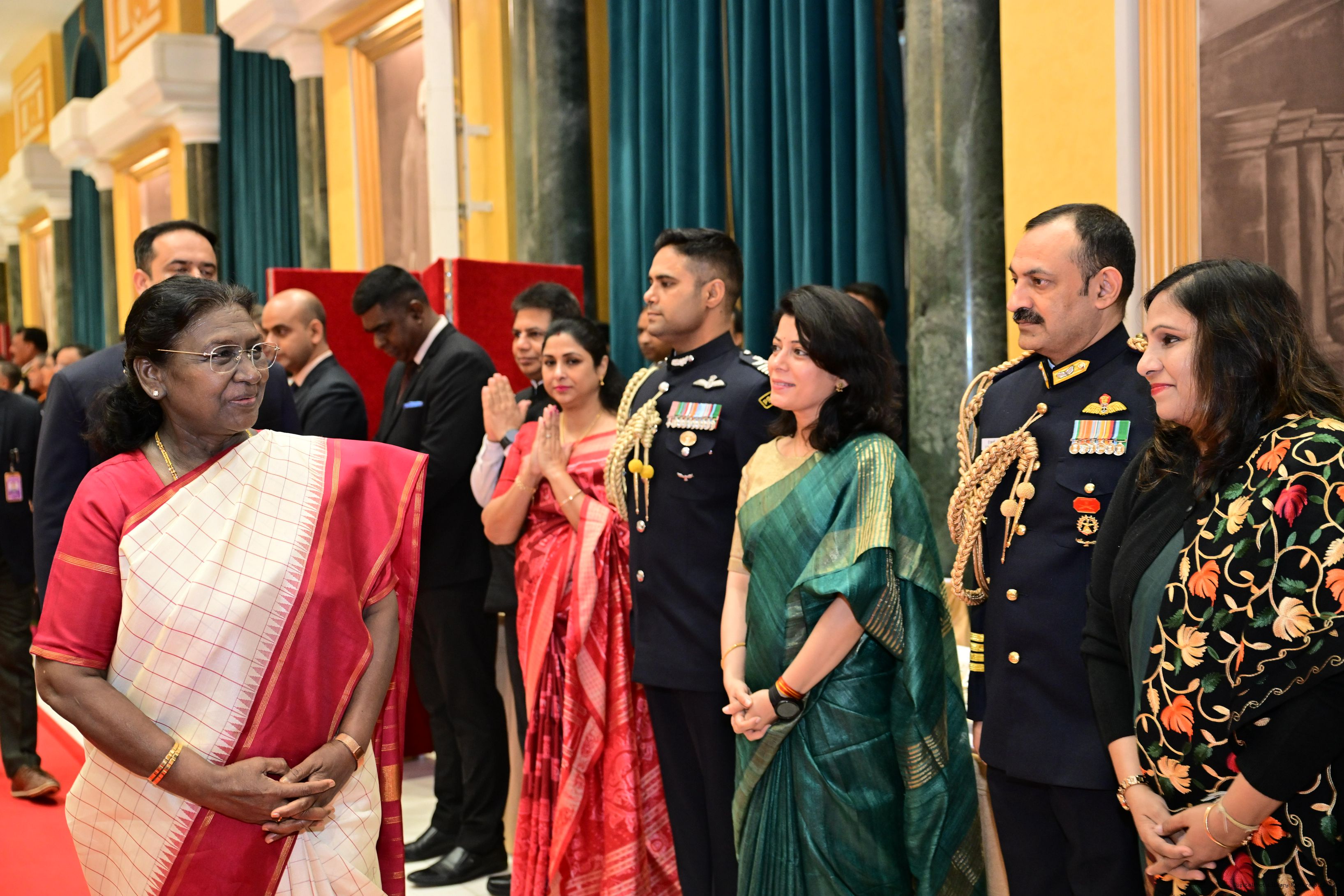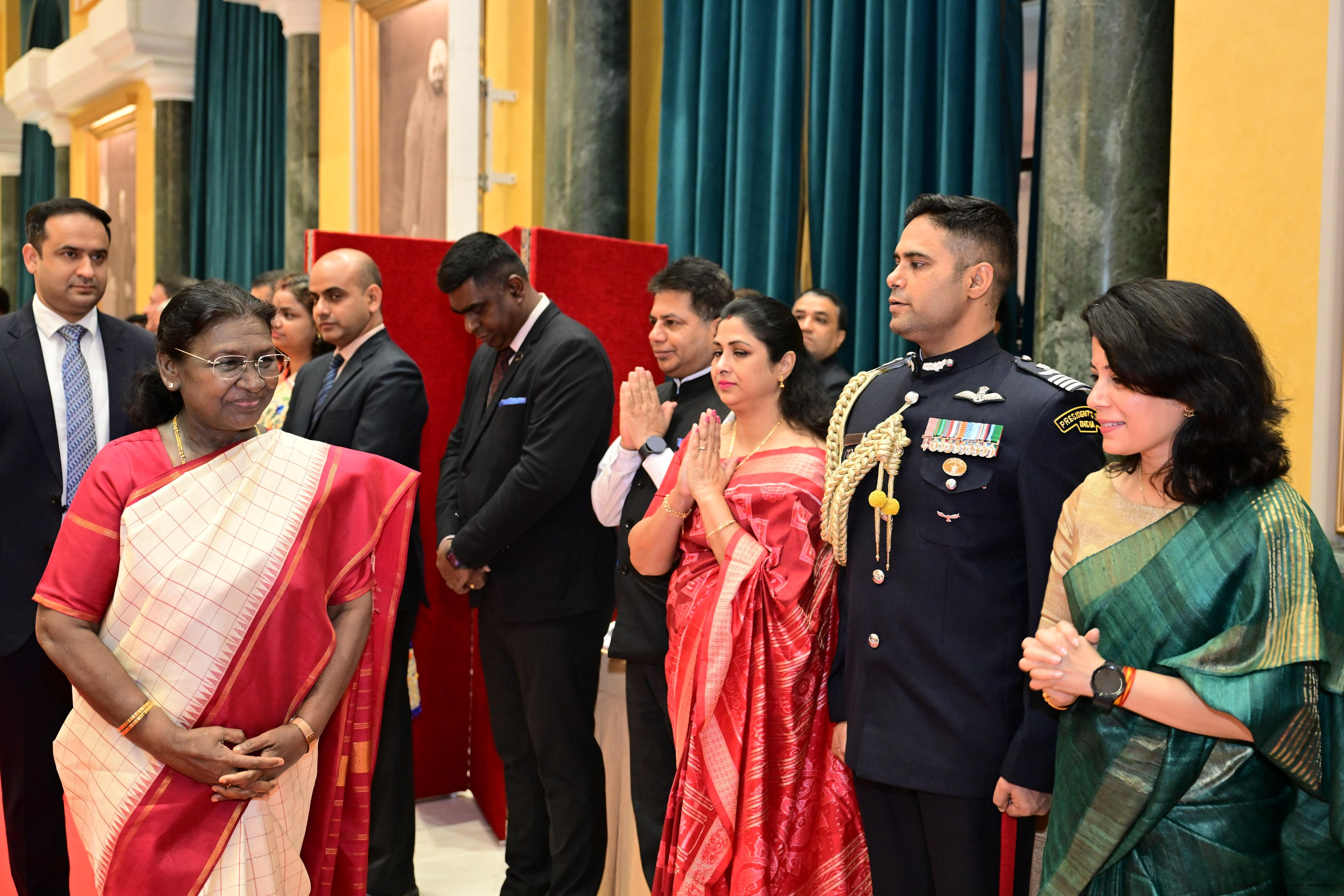 | Caption: | The President of India, Smt. Droupadi Murmu hosted a dinner at Rashtrapati Bhavan Cultural Centre to welcome the newly sworn-in Chief Justice of India, Shri Justice Surya Kant on November 24, 2025. |