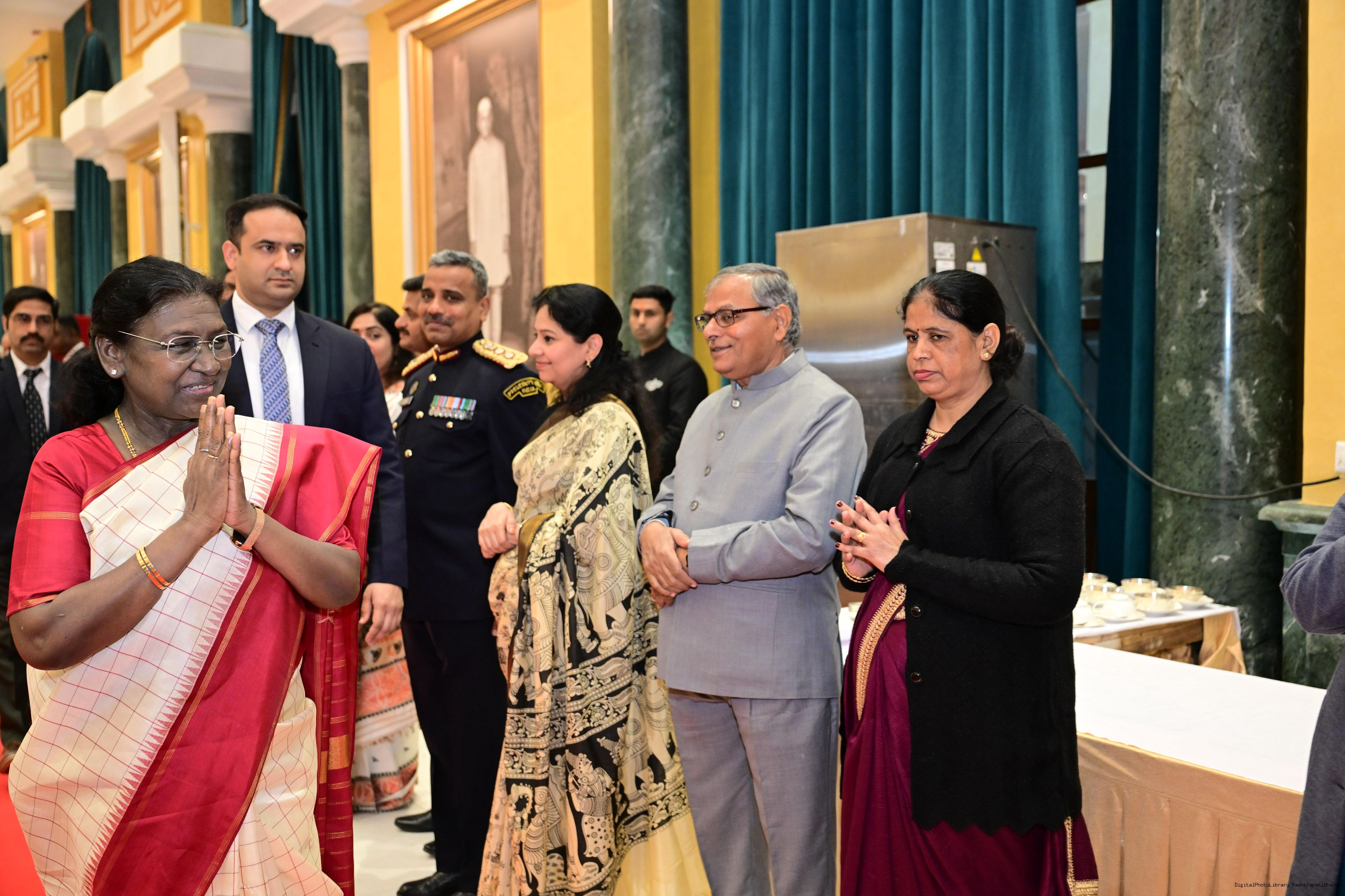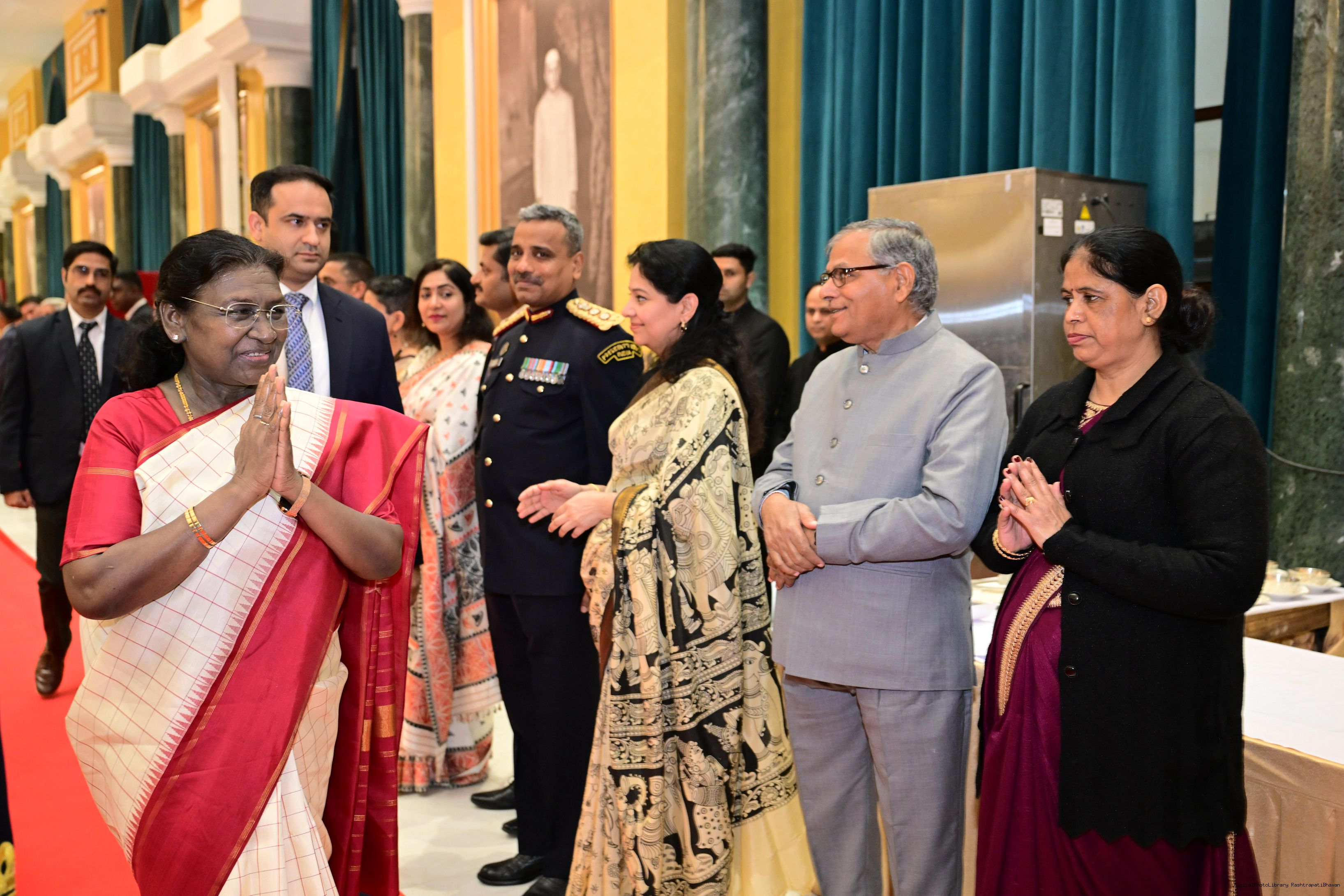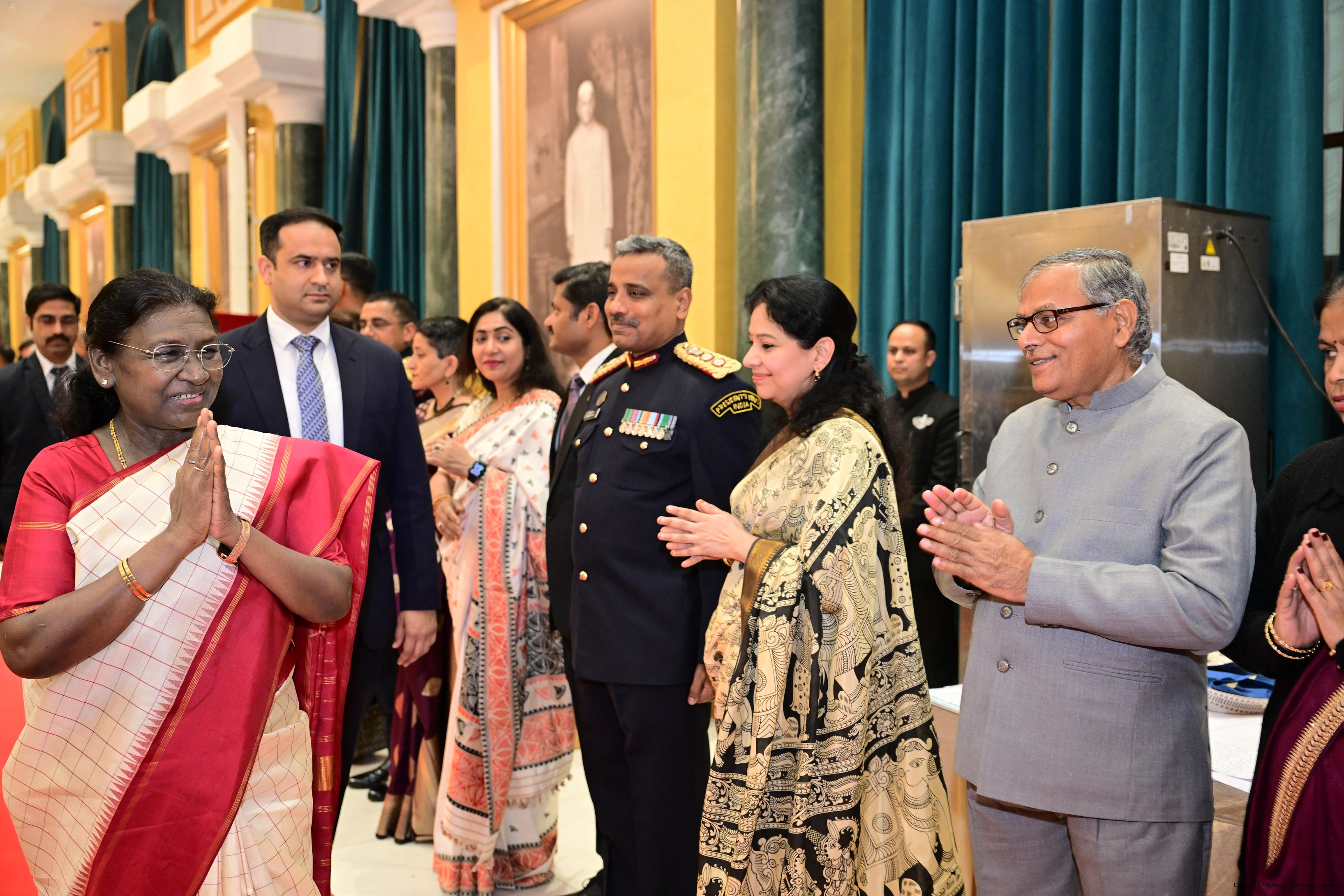 | Caption: | The President of India, Smt. Droupadi Murmu hosted a dinner at Rashtrapati Bhavan Cultural Centre to welcome the newly sworn-in Chief Justice of India, Shri Justice Surya Kant on November 24, 2025. |