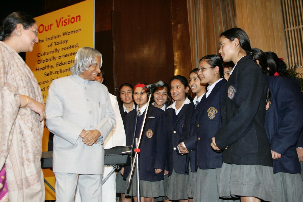 | Caption: | The President of India, Dr A P J Abdul Kalam addressing and interacting with the Girl Children of the Capital at India Habitat Centre, Lodhi Road in New Delhi on Jan 17, 2005 |