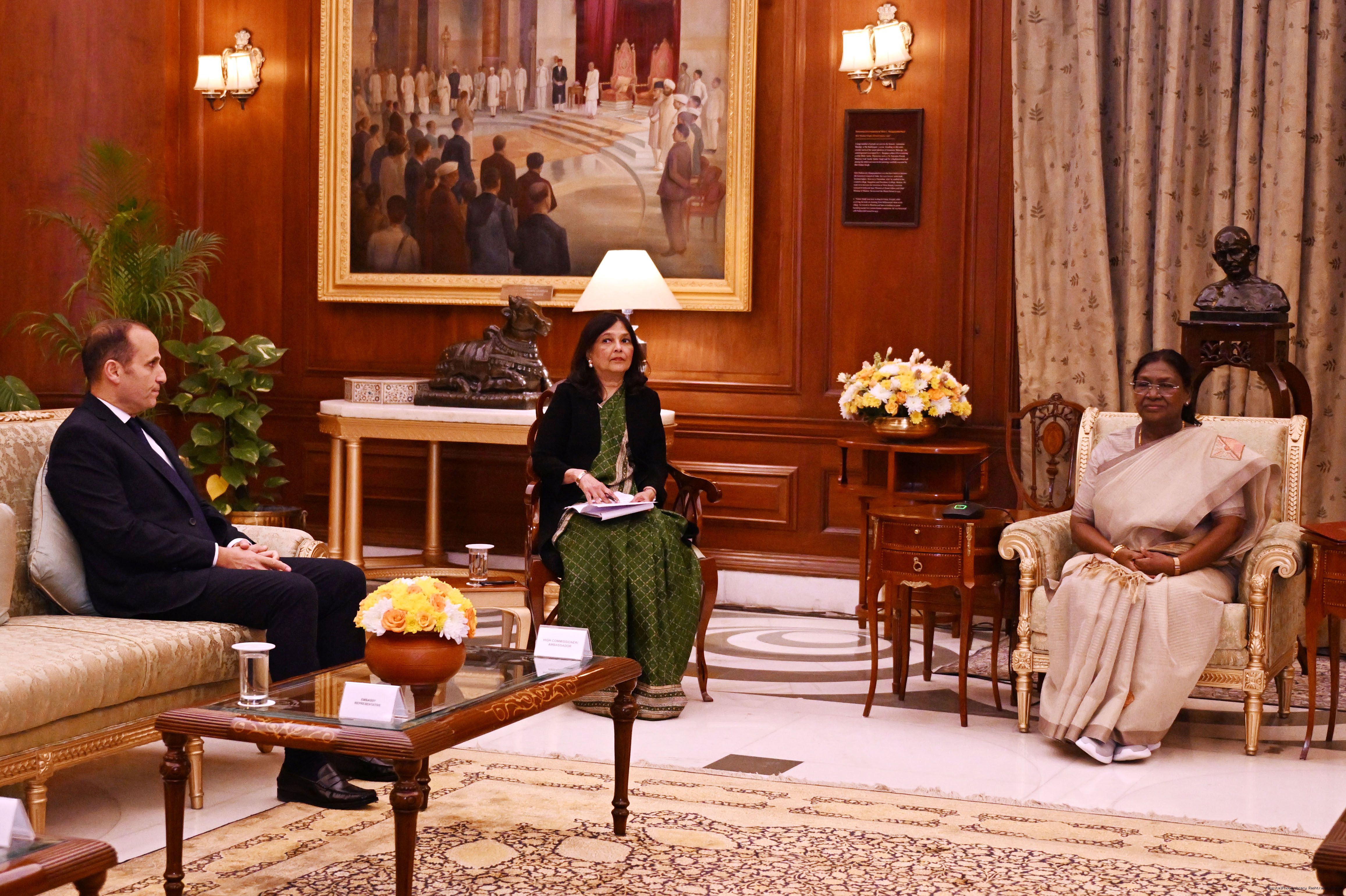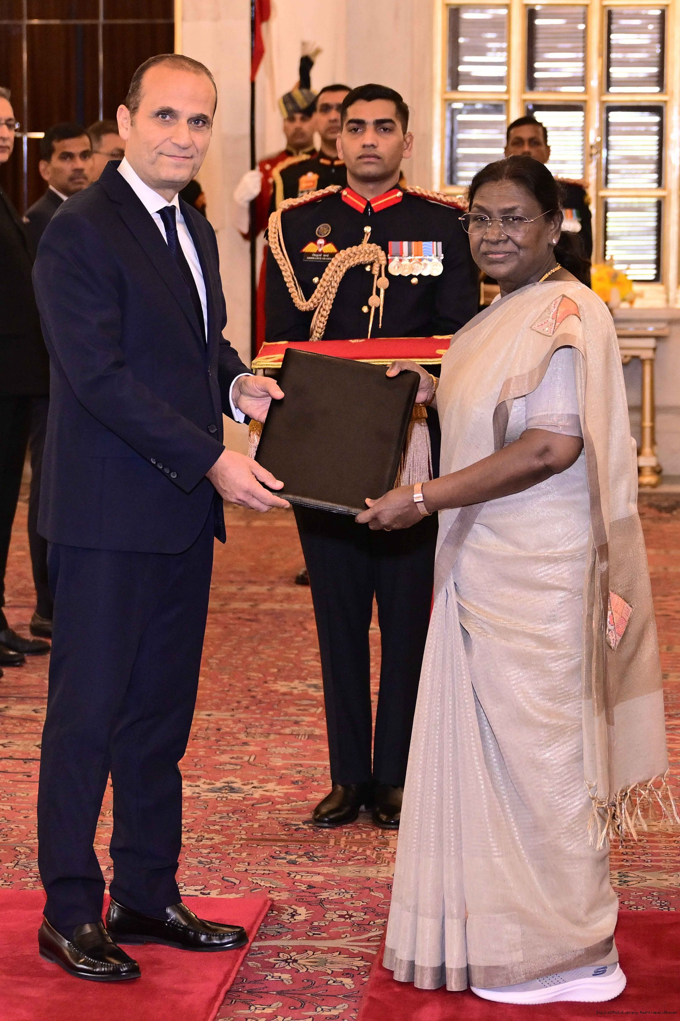 | Caption: | The Ambassador- designate of Lebanon, H.E. Mr. Hadi Jaber presenting his credentials to the President of India, Smt Droupadi Murmu at Ashok Hall of Rashtrapati Bhavan in New Delhi on November 25, 2025. |