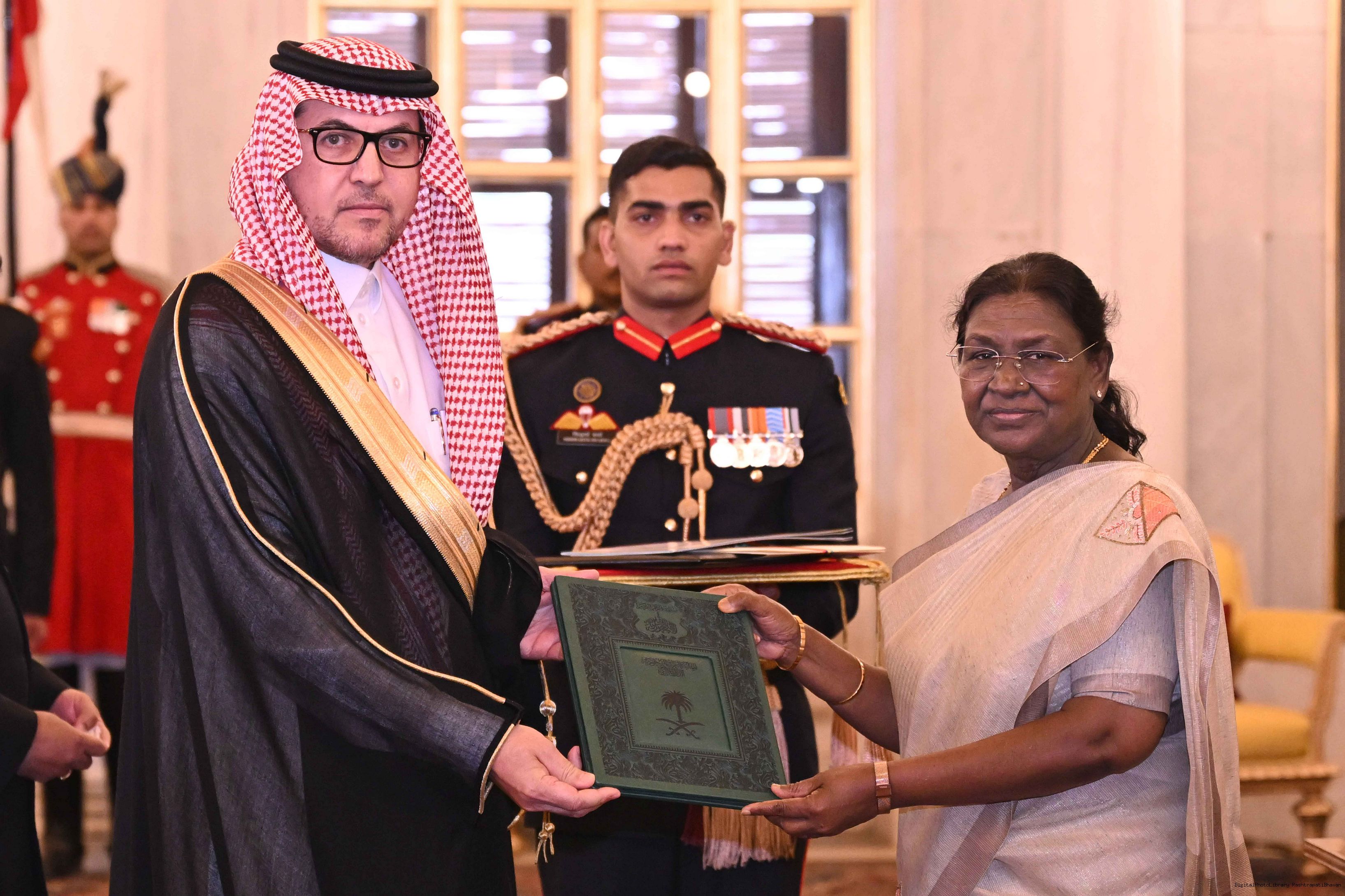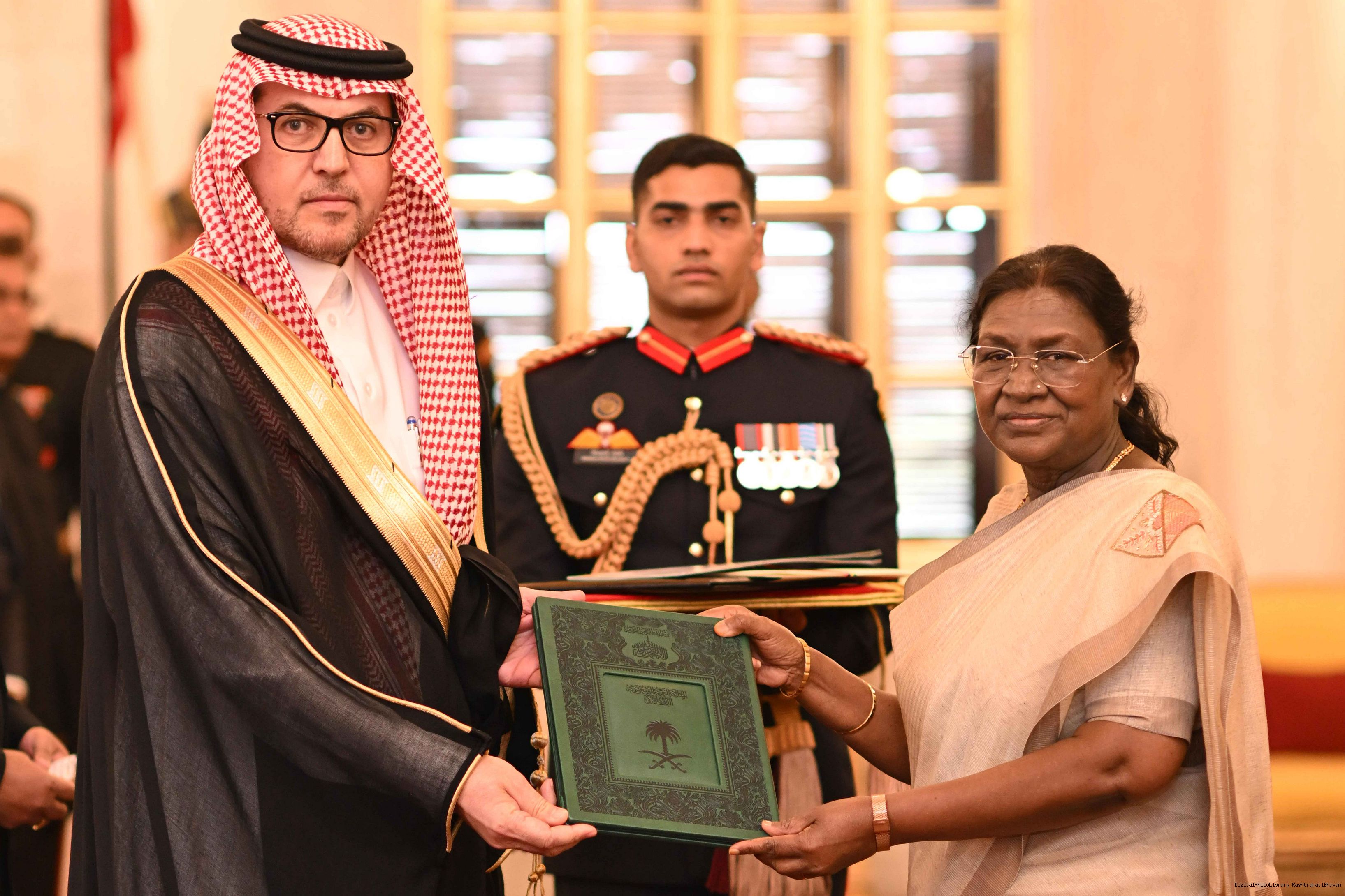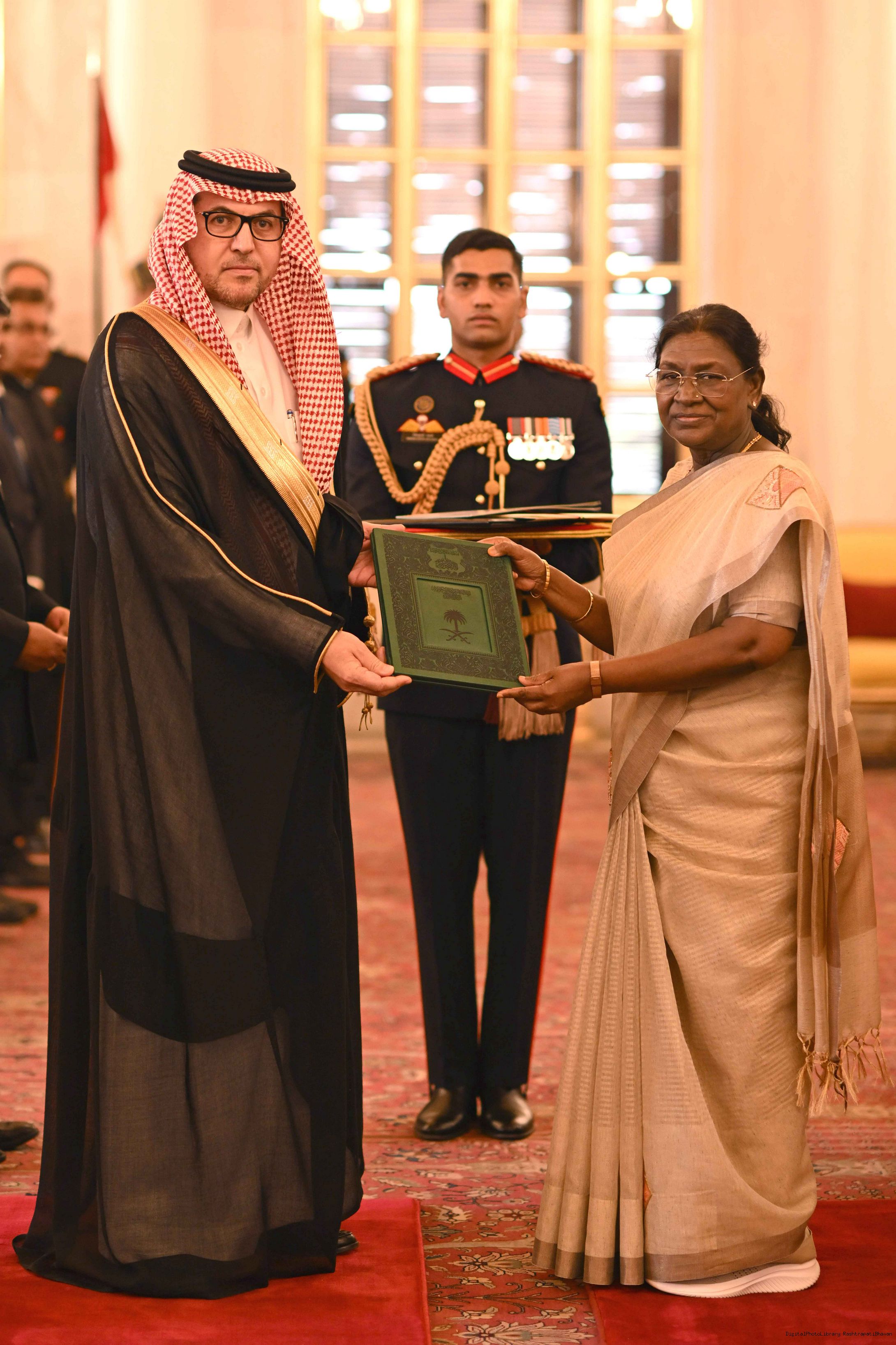 | Caption: | The Ambassador- designate of Saudi Arabia, H.E. Mr Haytham Hassan Al Malki presenting his credentials to the President of India, Smt Droupadi Murmu at Ashok Hall of Rashtrapati Bhavan in New Delhi on November 25, 2025. |