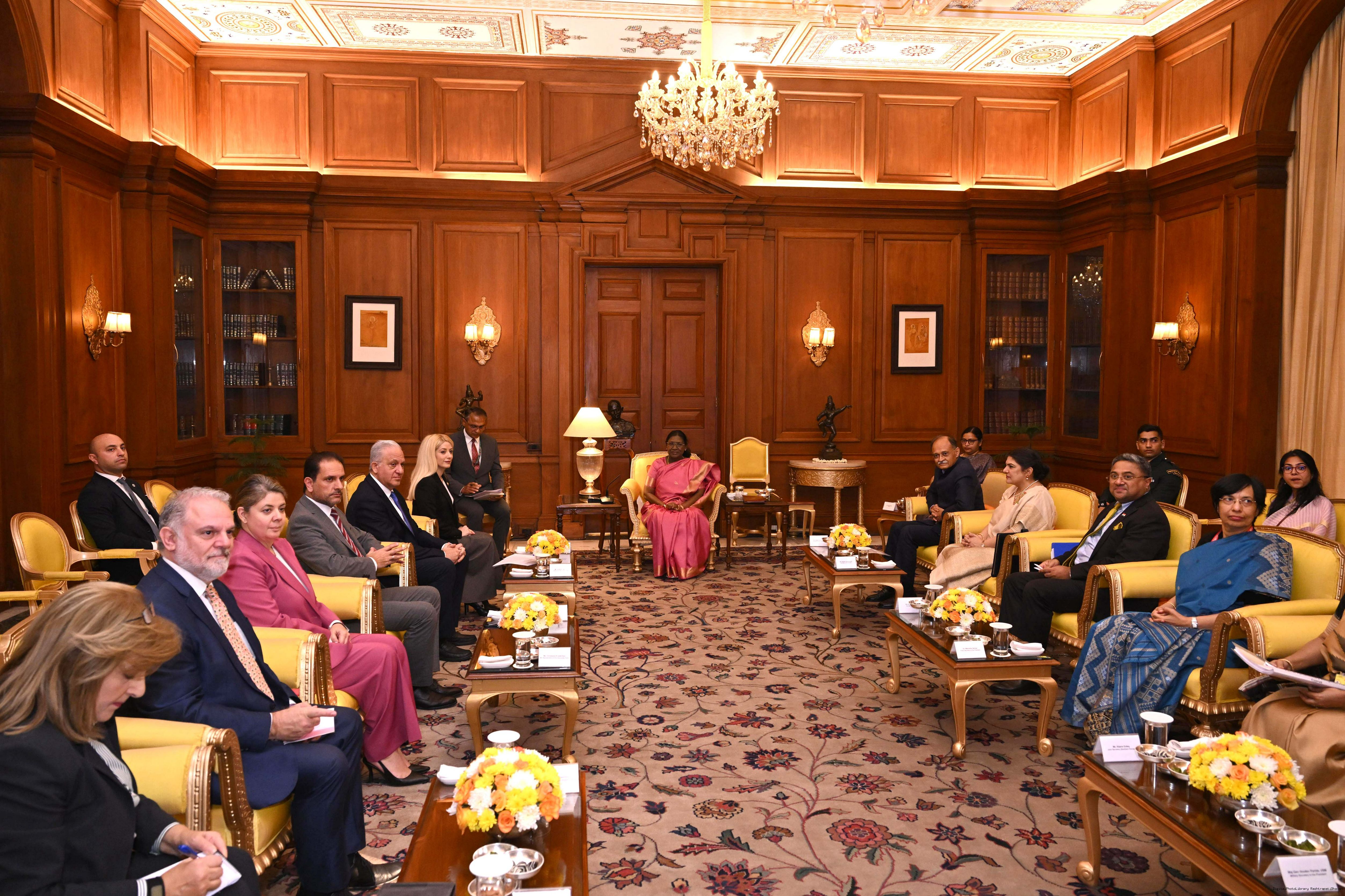 | Caption: | A parliamentary delegation from Cyprus, led by Ms Annita Demetriou, President of the House of Representatives of Cyprus, called on the President of India, Smt. Droupadi Murmu at Rashtrapati Bhavan on November 26, 2025. |