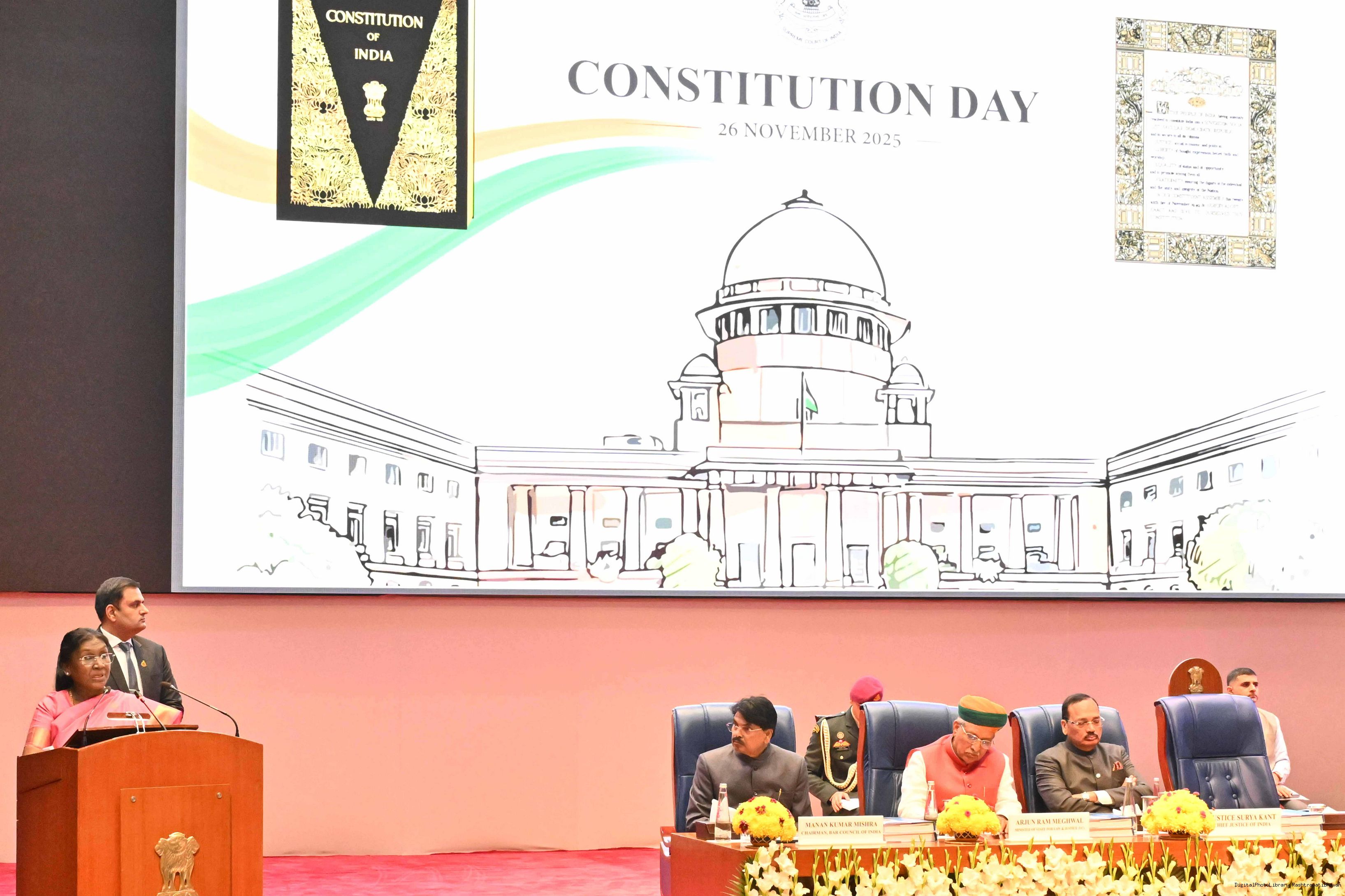 | Caption: | The President of India, Droupadi Murmu graced the Constitution Day Celebrations, organised by the Supreme Court of India in New Delhi on November 27, 2025. |