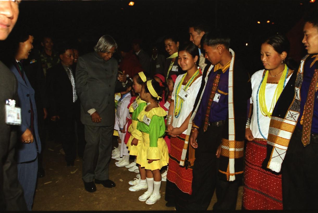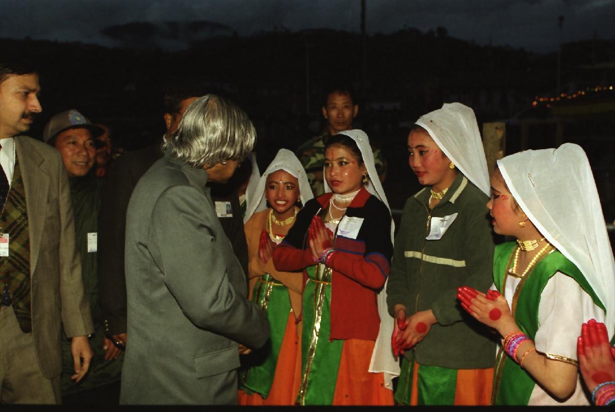 | Caption: | The President of India, Dr A P J Abdul Kalam visiting at an Exhibition and witnessing a Cultural Programme at Festival Ground at Tawang in Arunachal Pradesh on Oct 14, 2002 |
