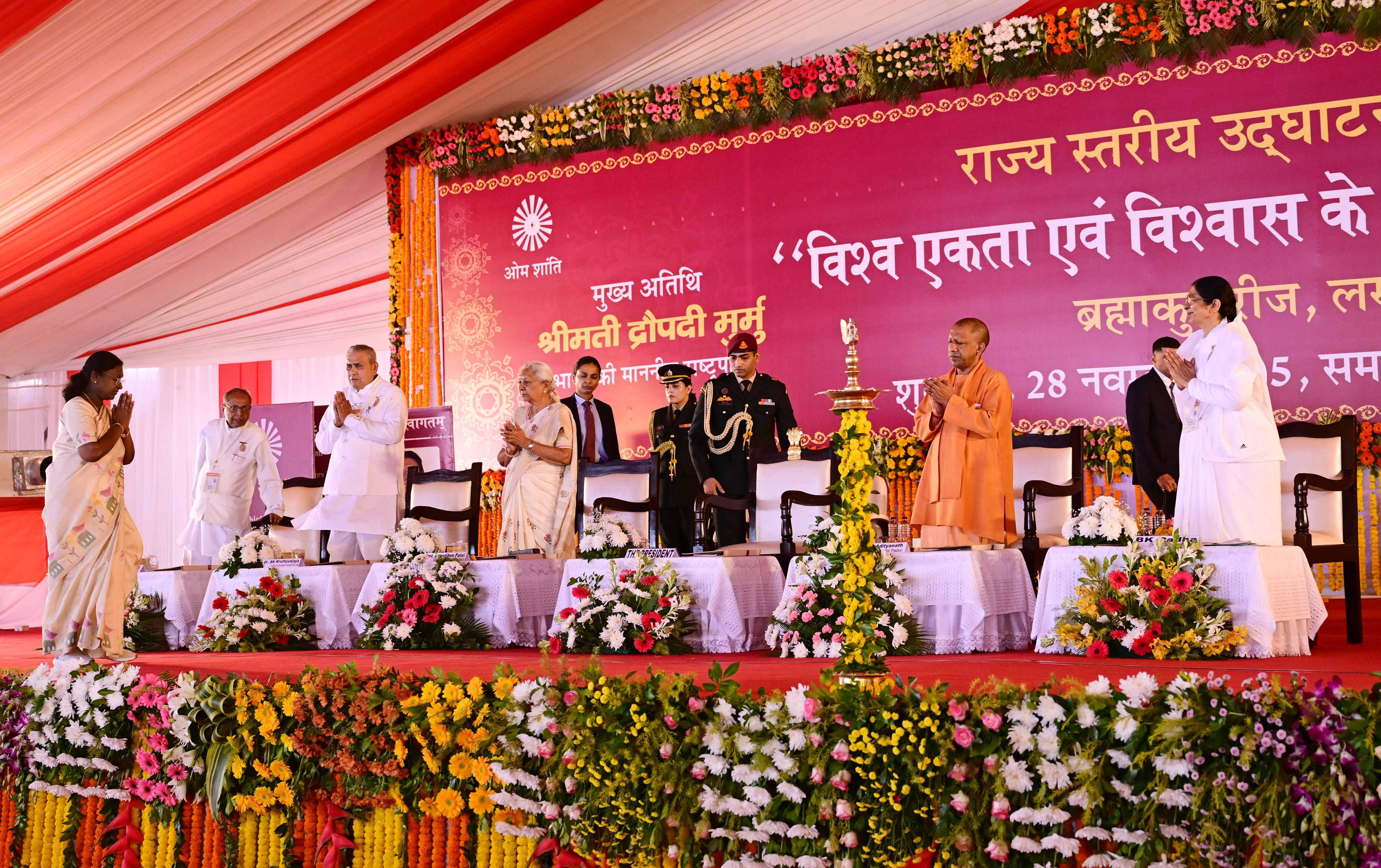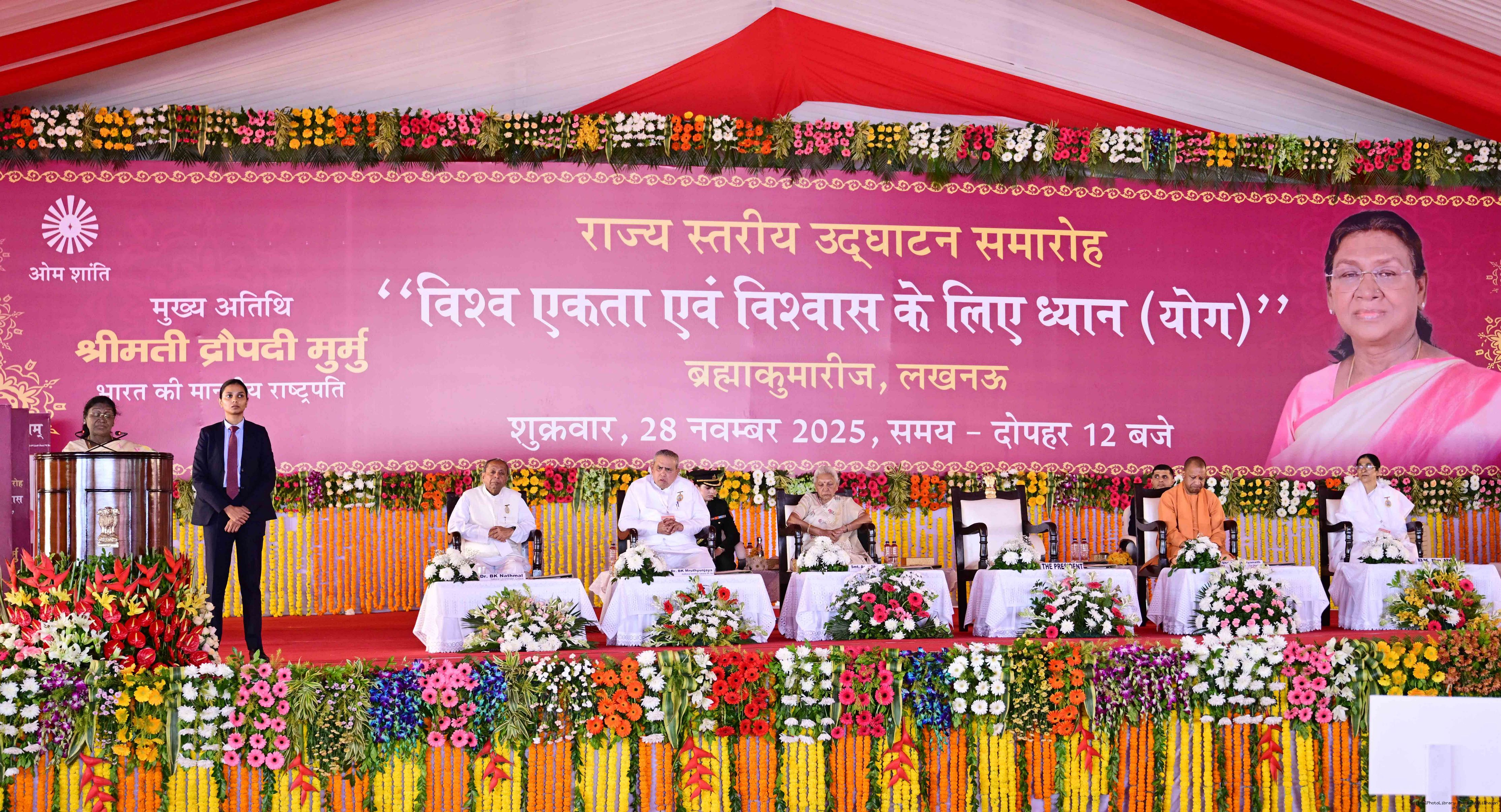 | Caption: | The President of India, Smt Droupadi Murmu, graced the launch ceremony of the Brahma Kumaris' annual theme for 2025-26, ‘Meditation for World Unity and Trust’, at Lucknow, Uttar Pradesh on November 28, 2025. |
