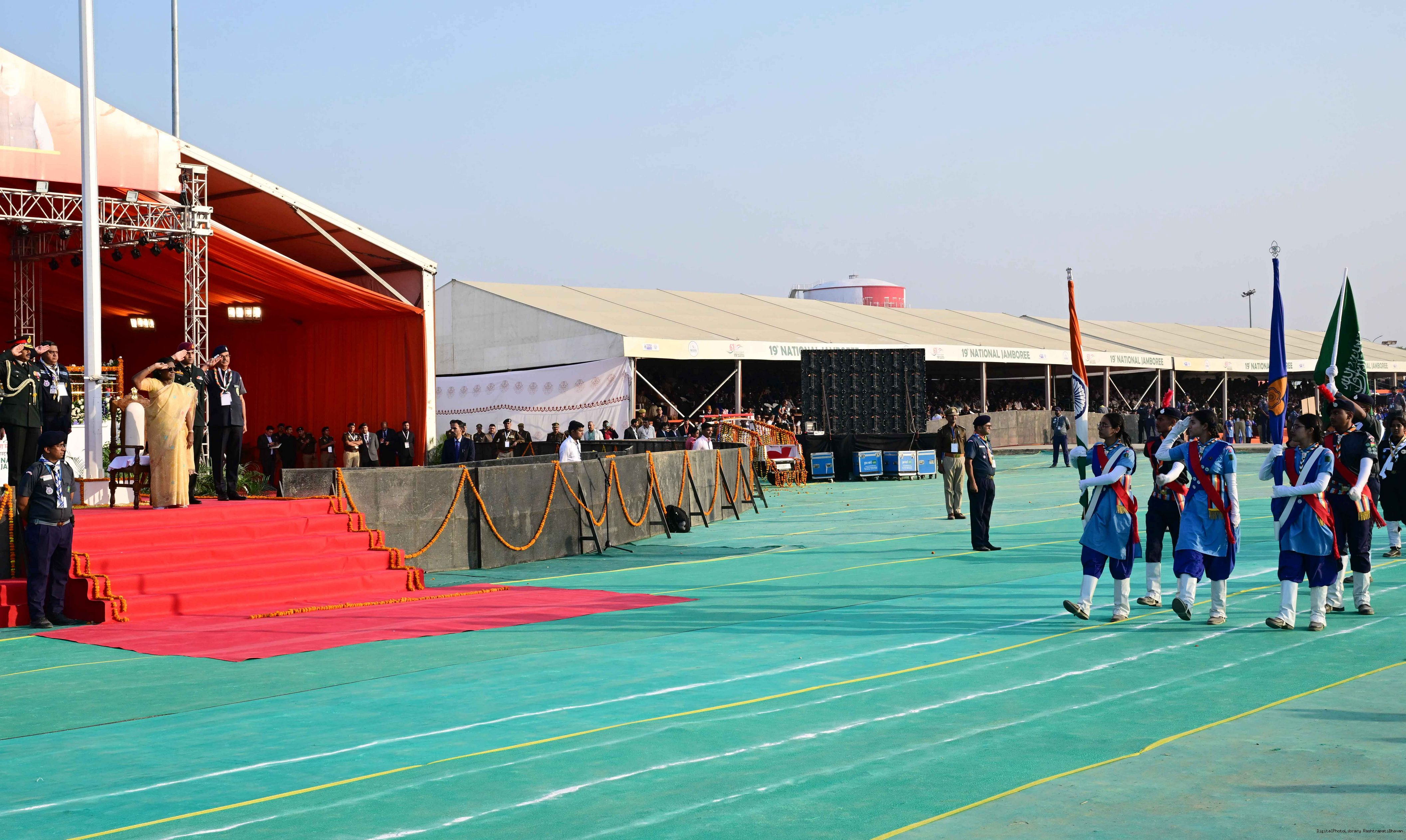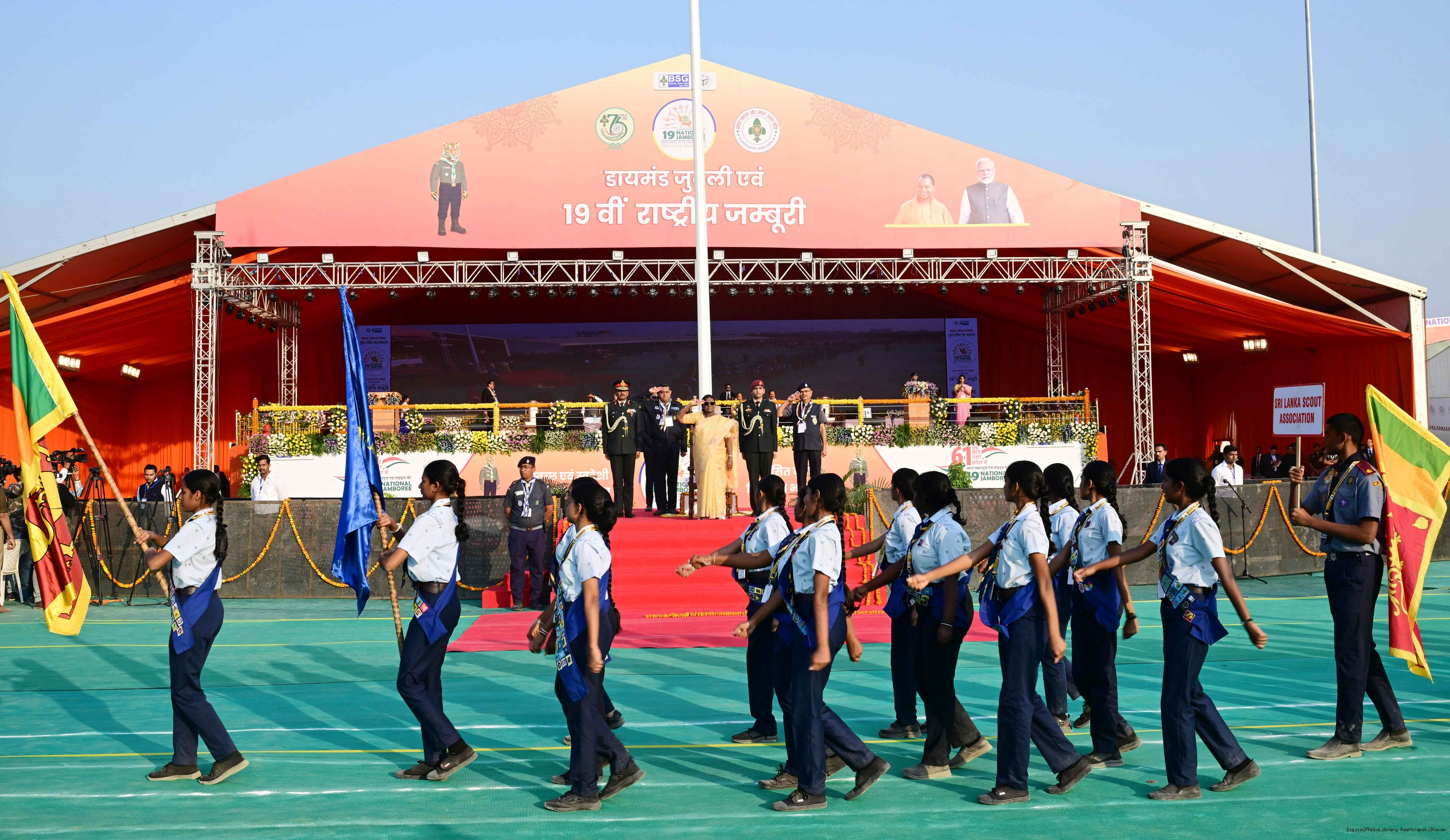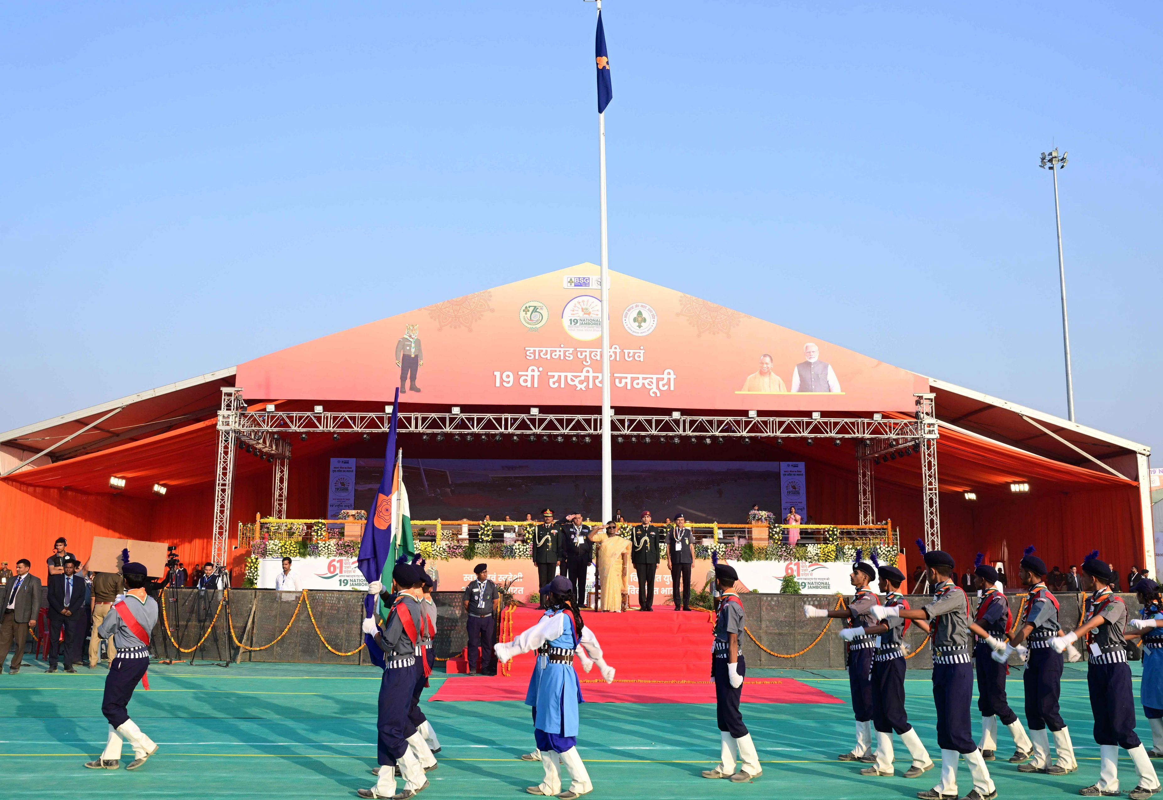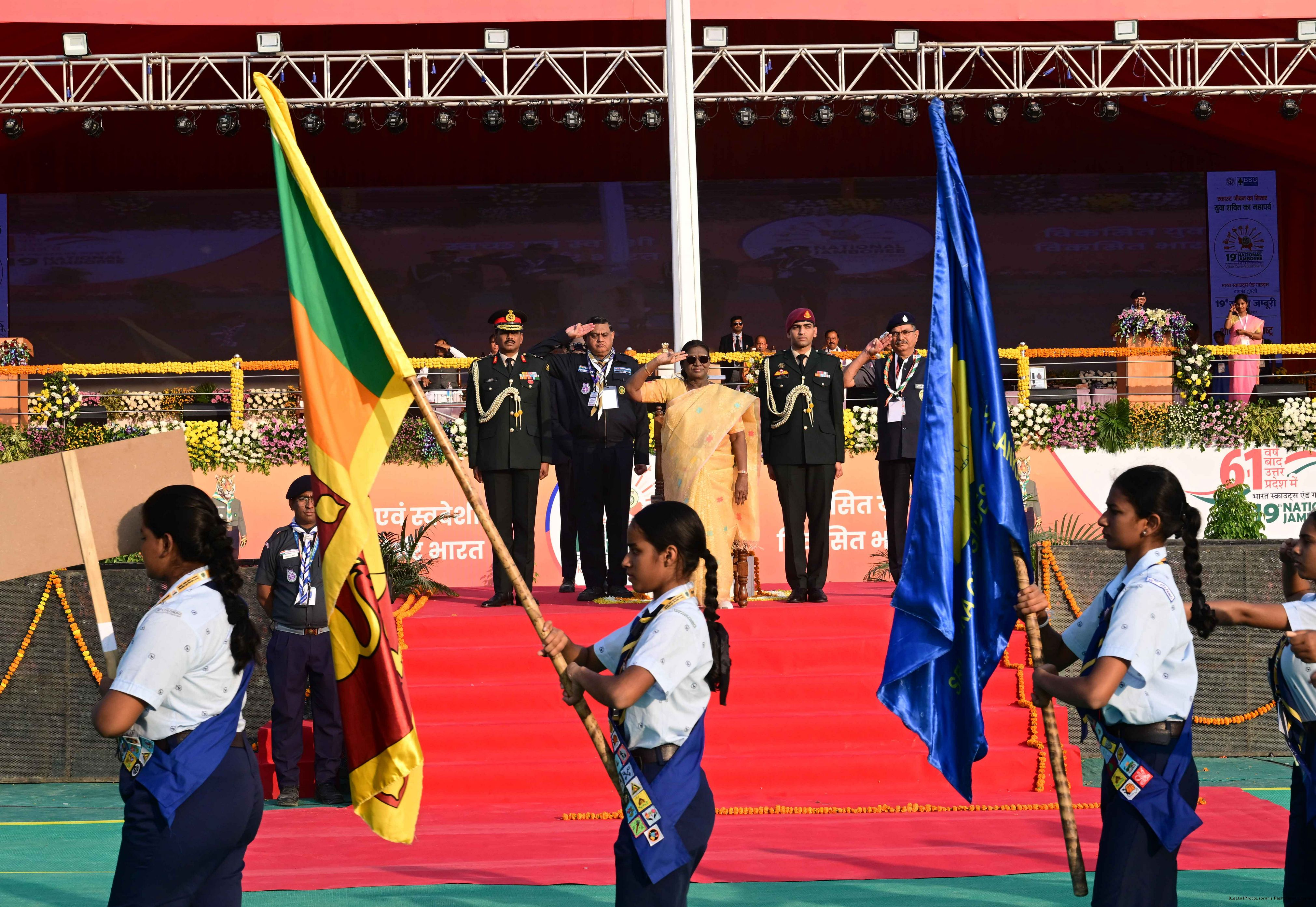 | Caption: | The President of India, Smt Droupadi Murmu, graced the closing ceremony of the Diamond Jubilee Celebrations of Bharat Scouts and Guides and addressed its 19th National Jamboree at Lucknow, Uttar Pradesh, on November 28, 2025. |
