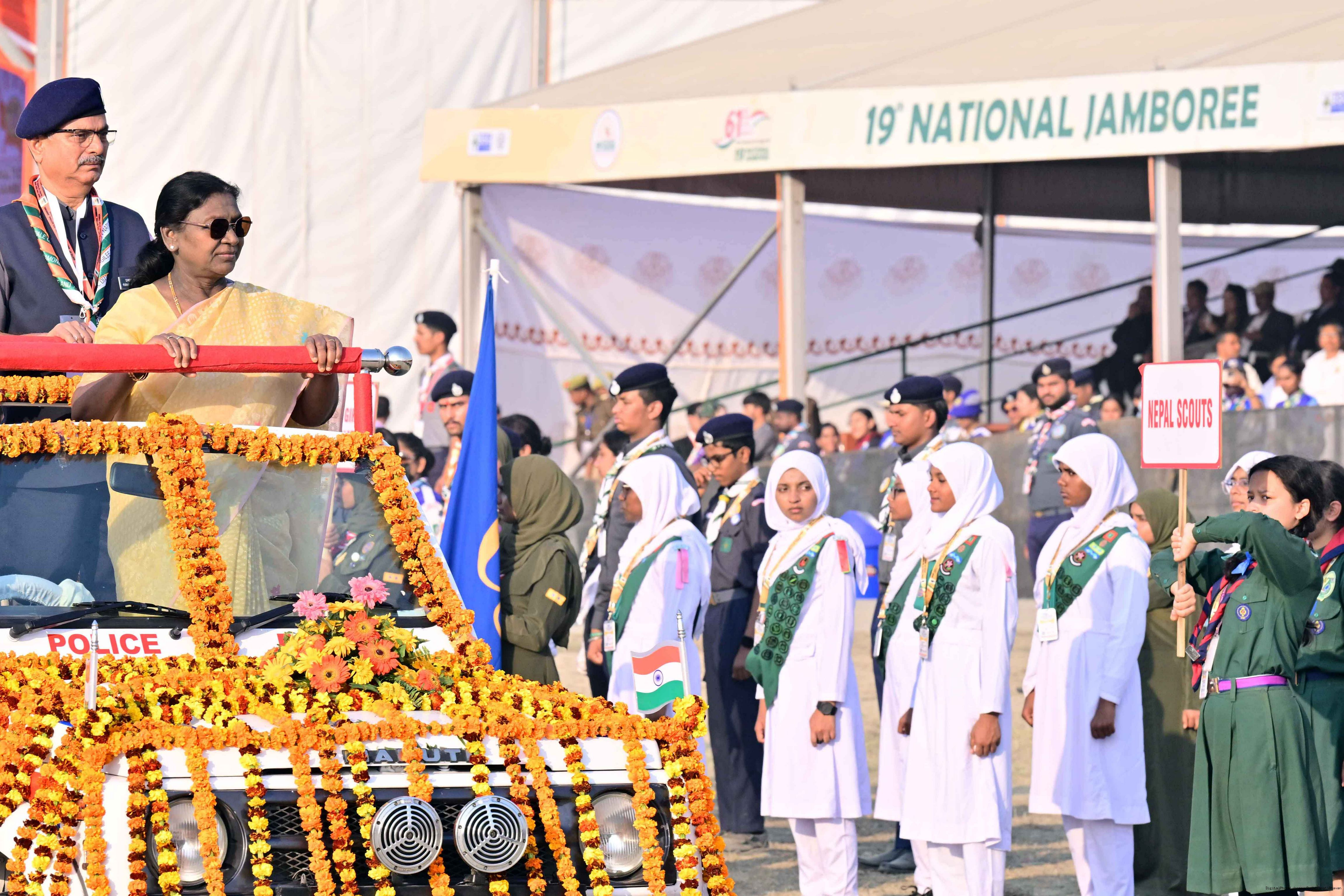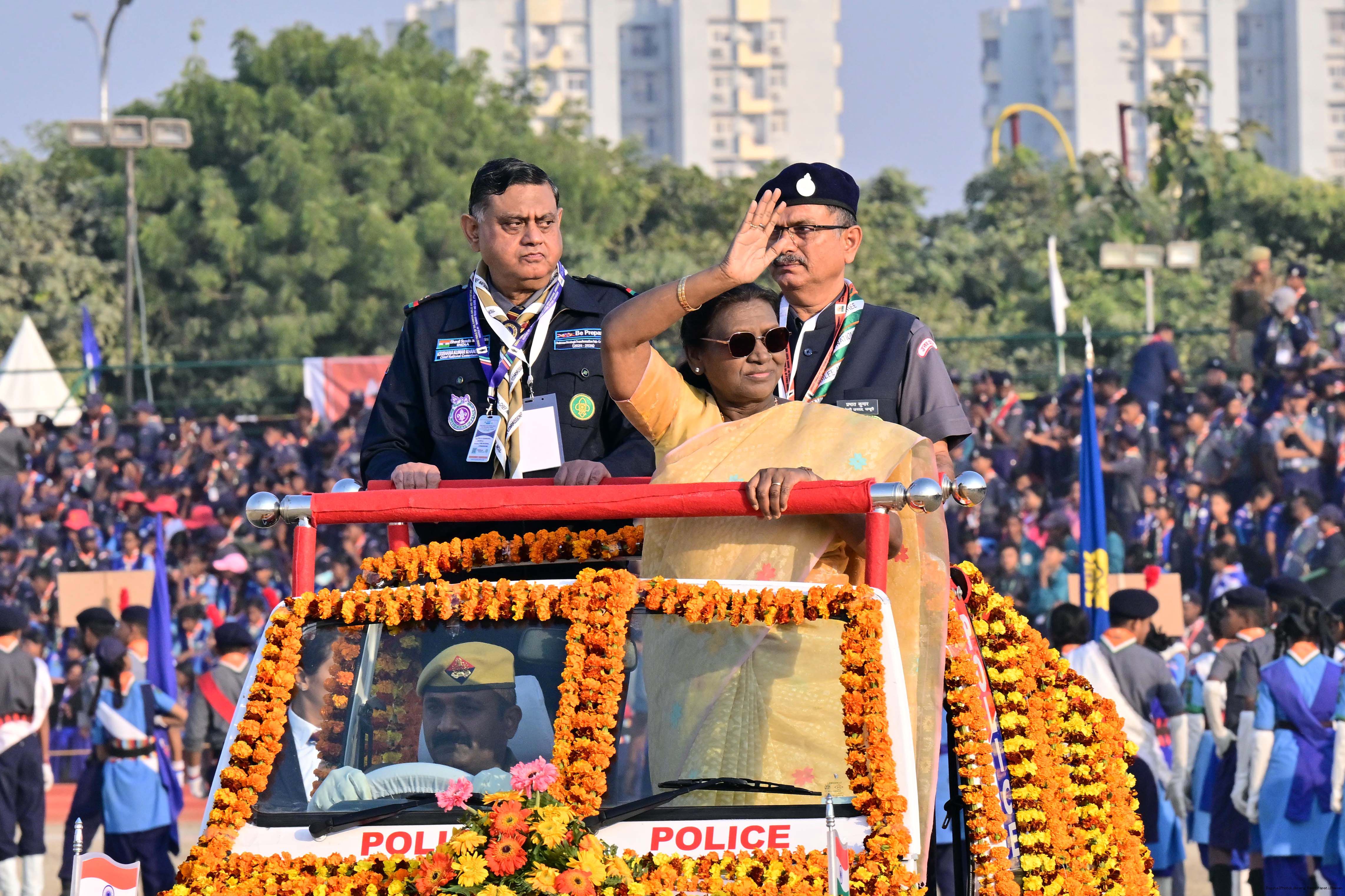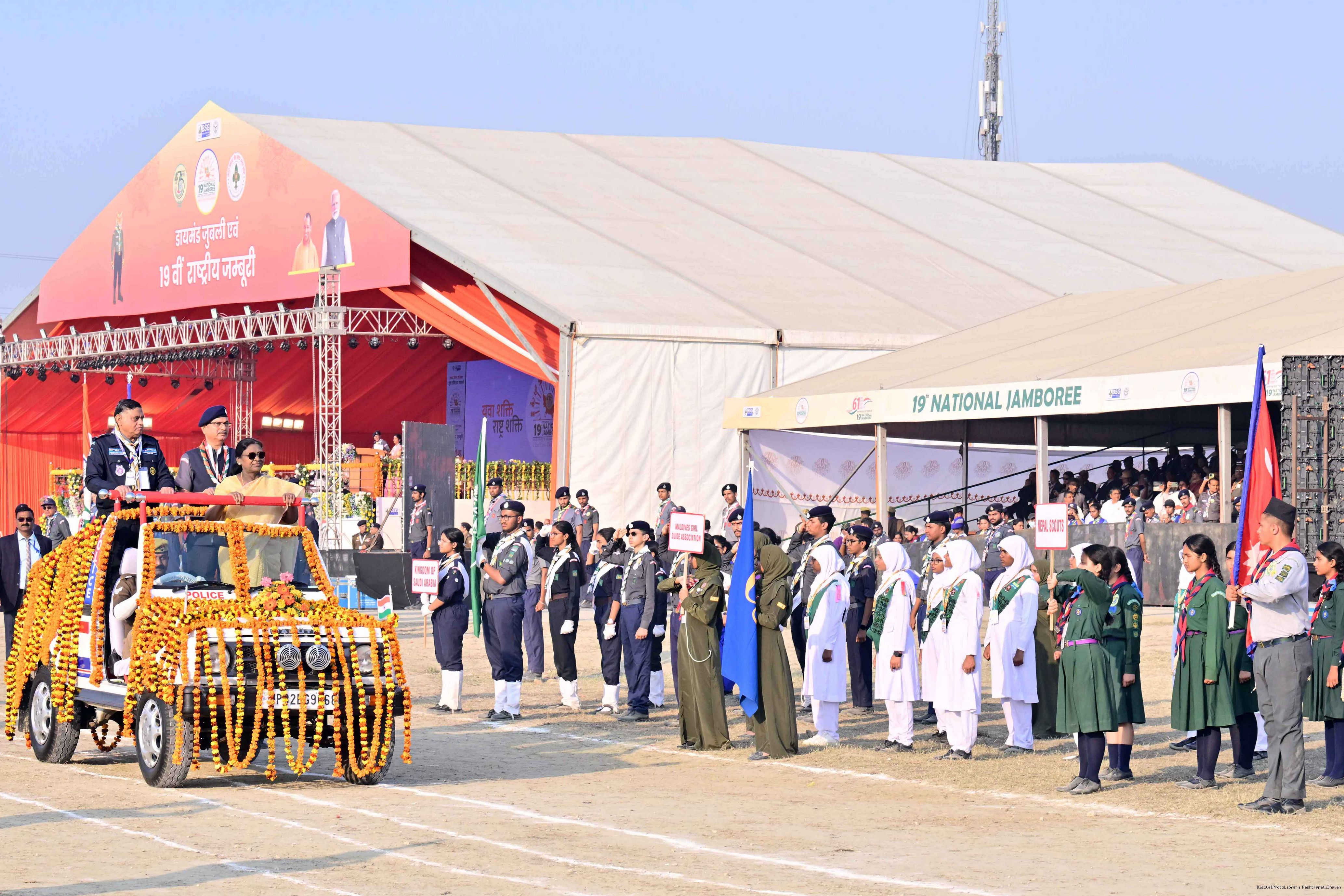 | Caption: | The President of India, Smt Droupadi Murmu, graced the closing ceremony of the Diamond Jubilee Celebrations of Bharat Scouts and Guides and addressed its 19th National Jamboree at Lucknow, Uttar Pradesh, on November 28, 2025. |