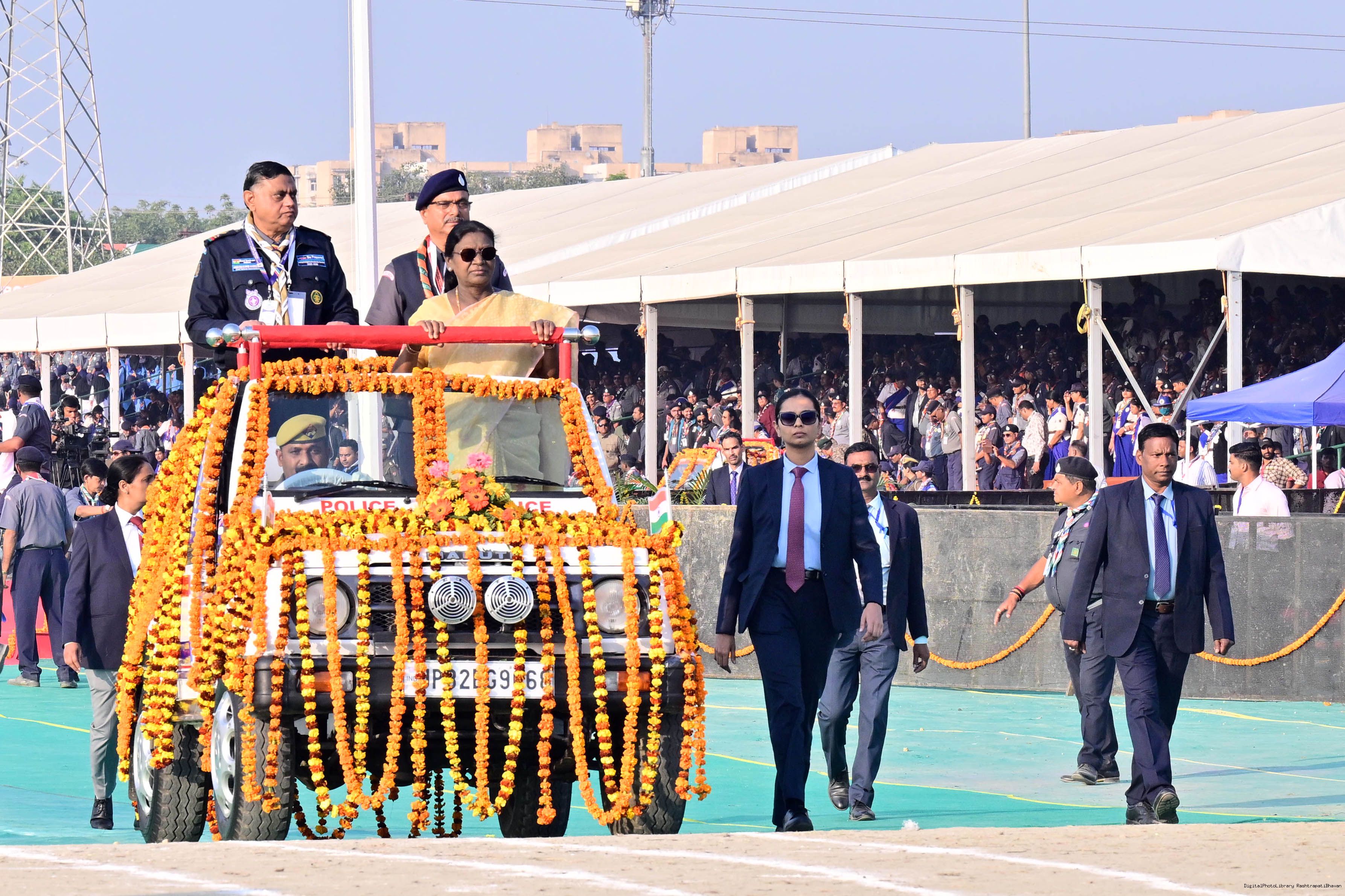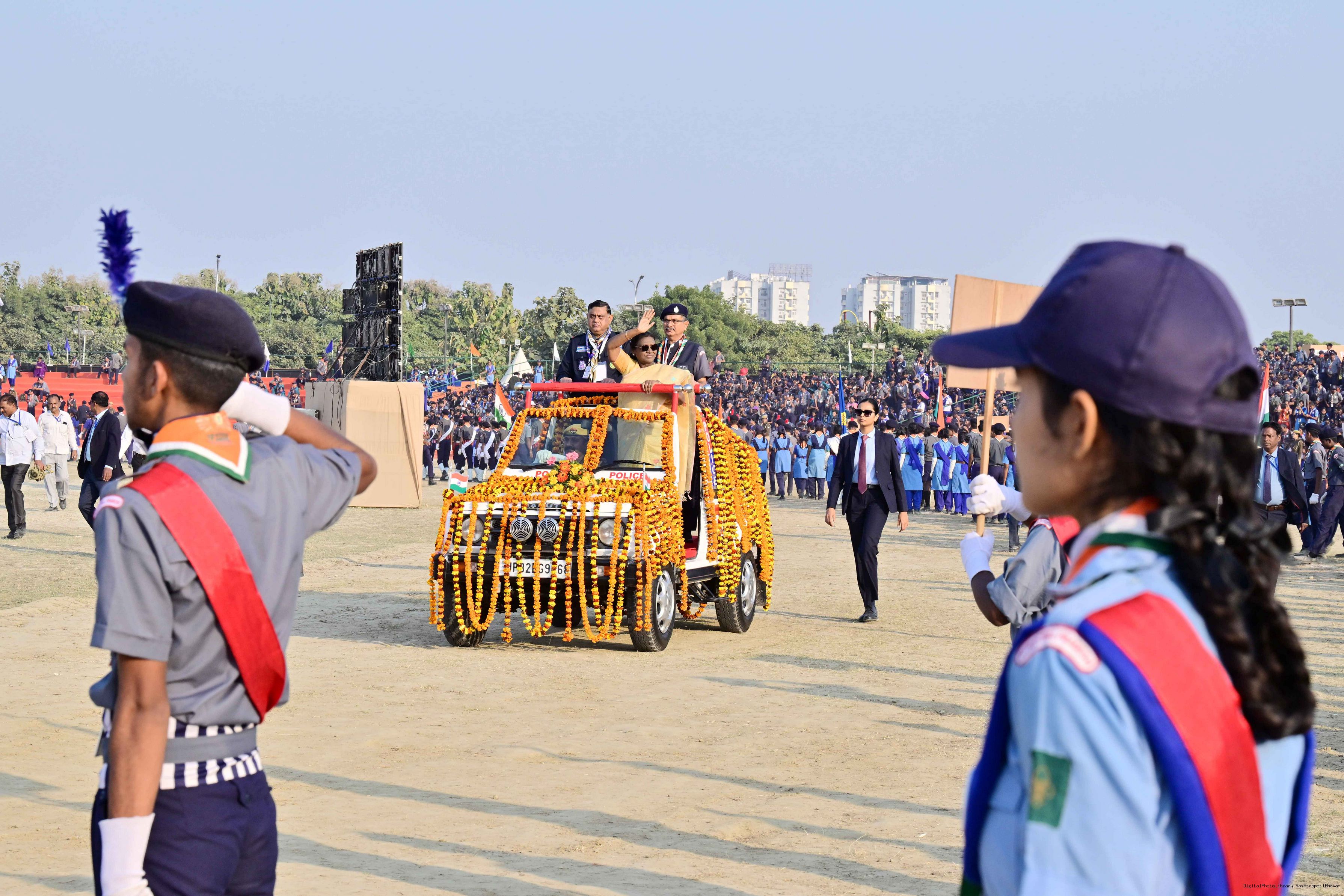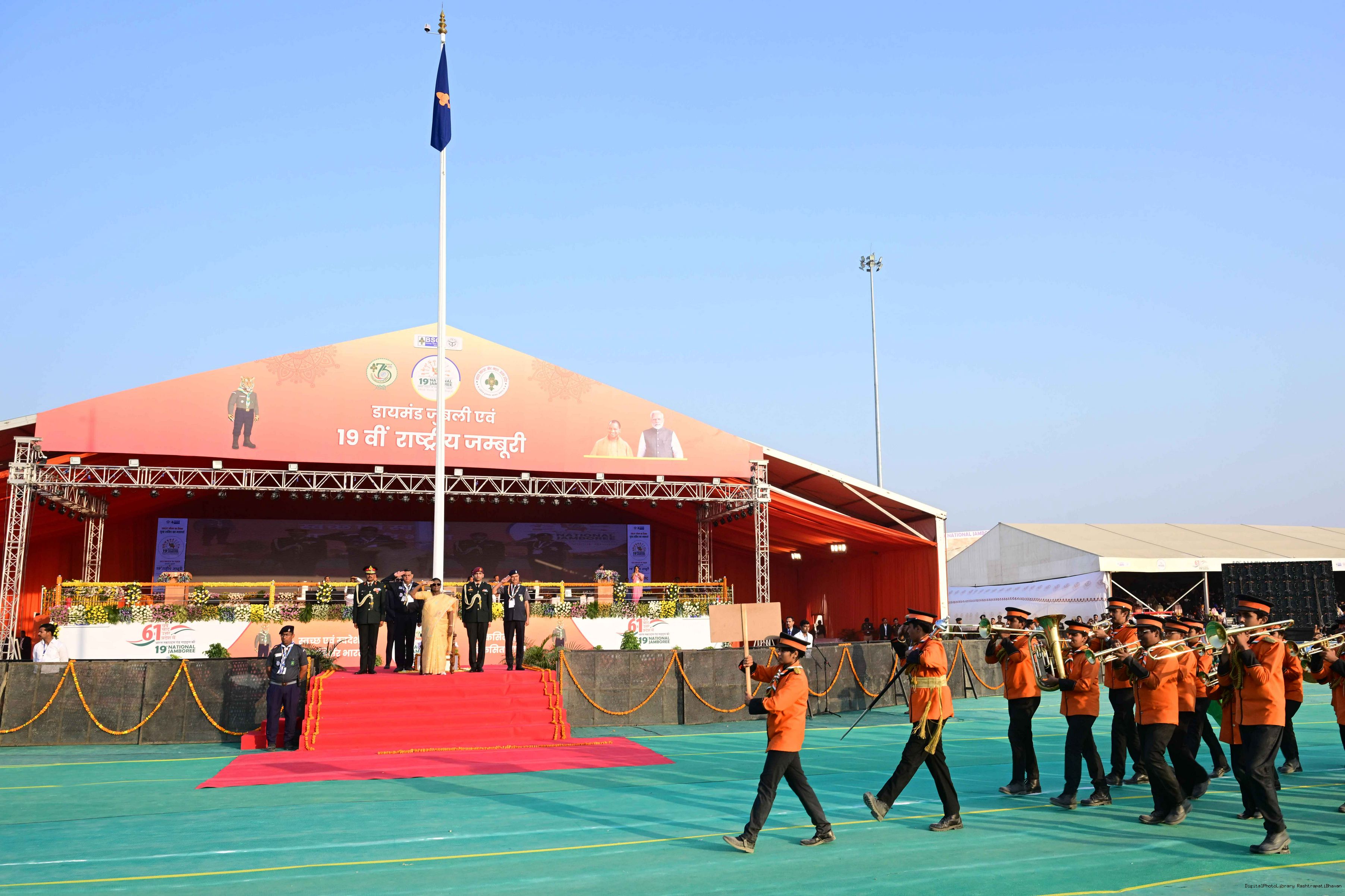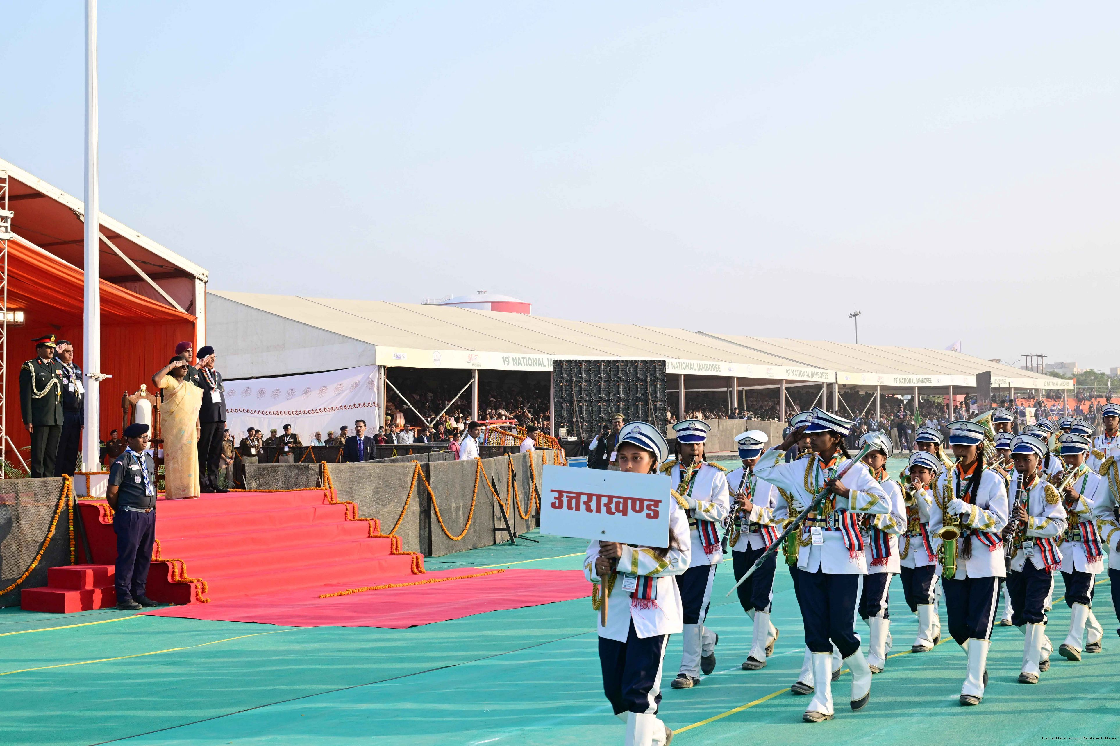 | Caption: | The President of India, Smt Droupadi Murmu, graced the closing ceremony of the Diamond Jubilee Celebrations of Bharat Scouts and Guides and addressed its 19th National Jamboree at Lucknow, Uttar Pradesh, on November 28, 2025. |