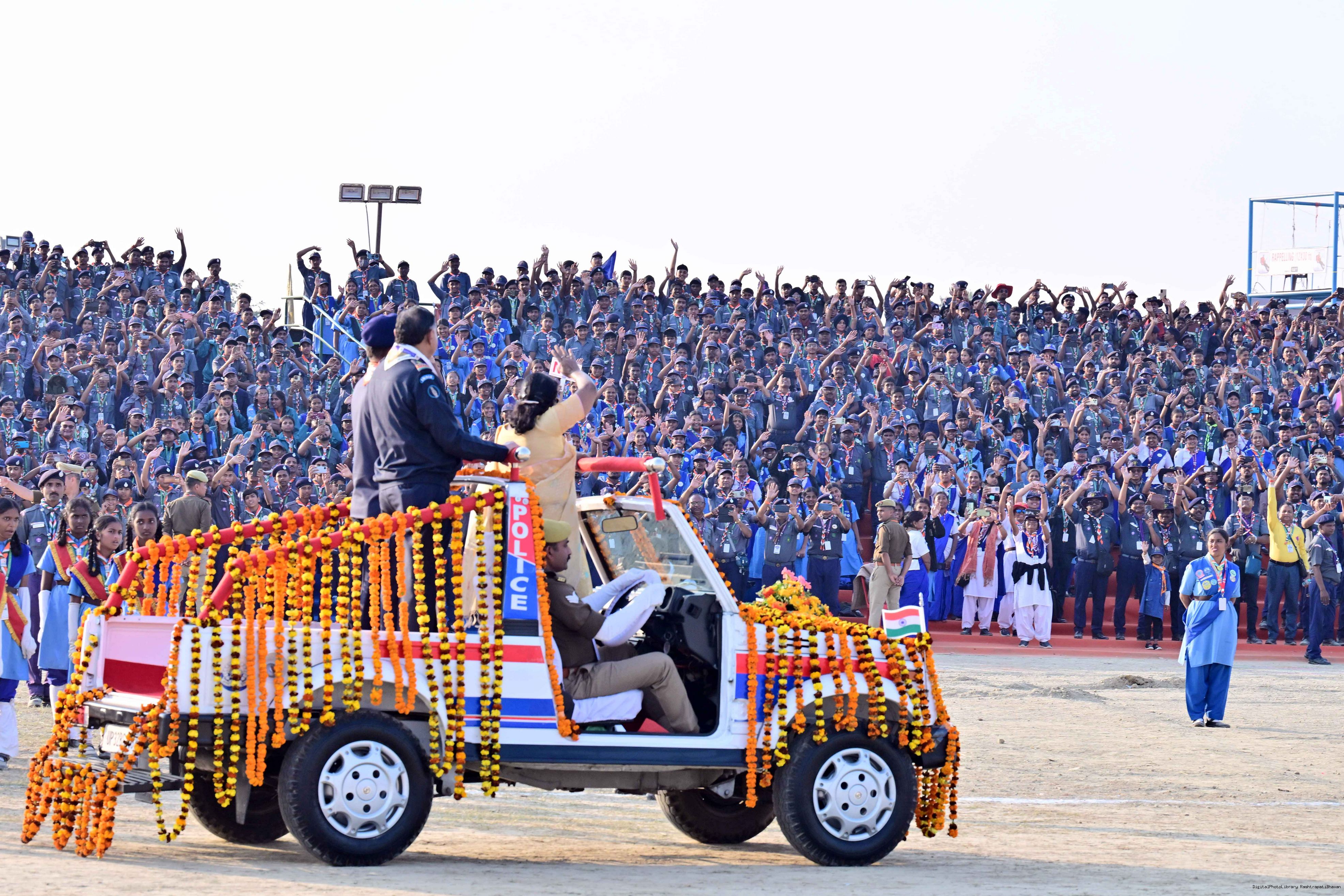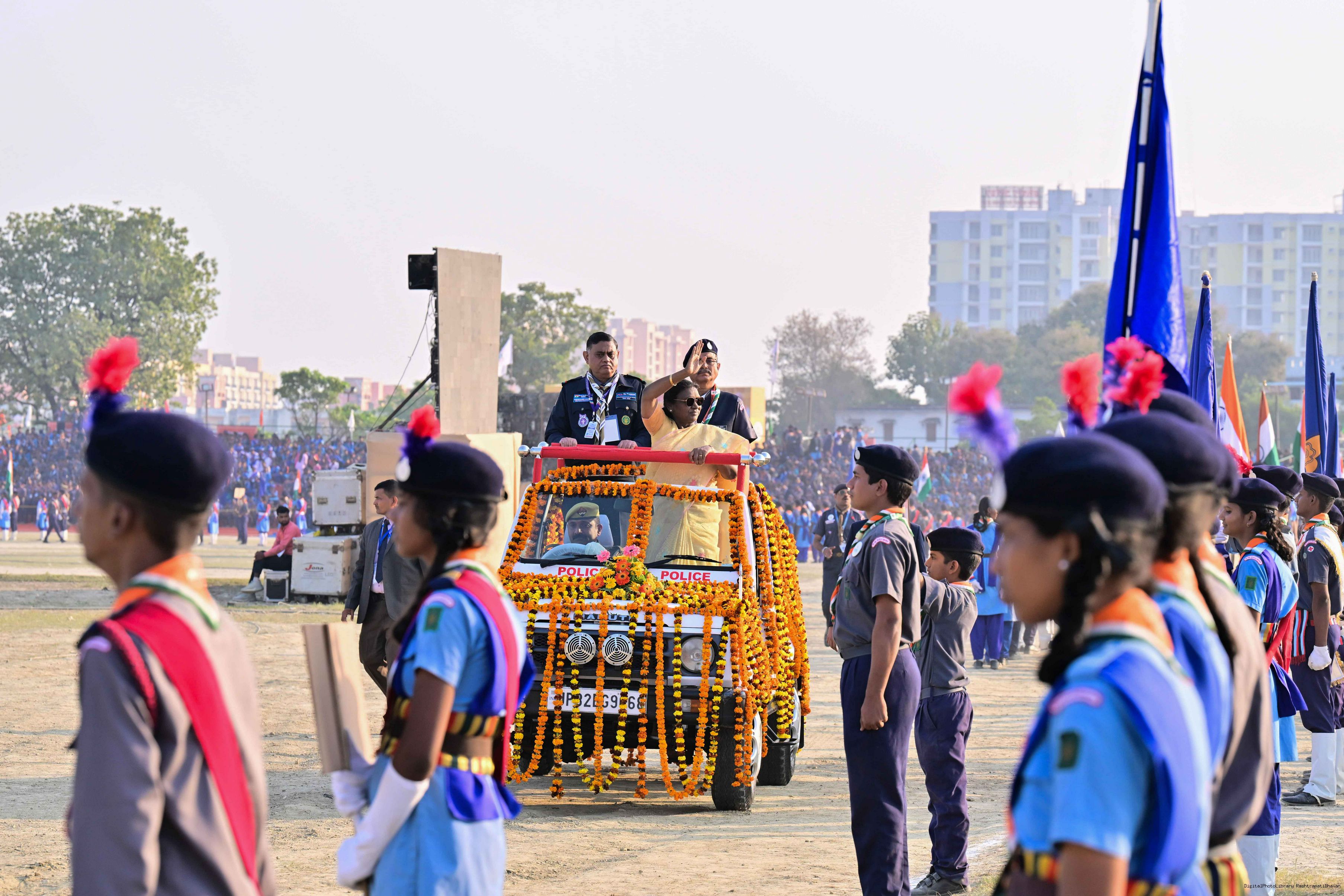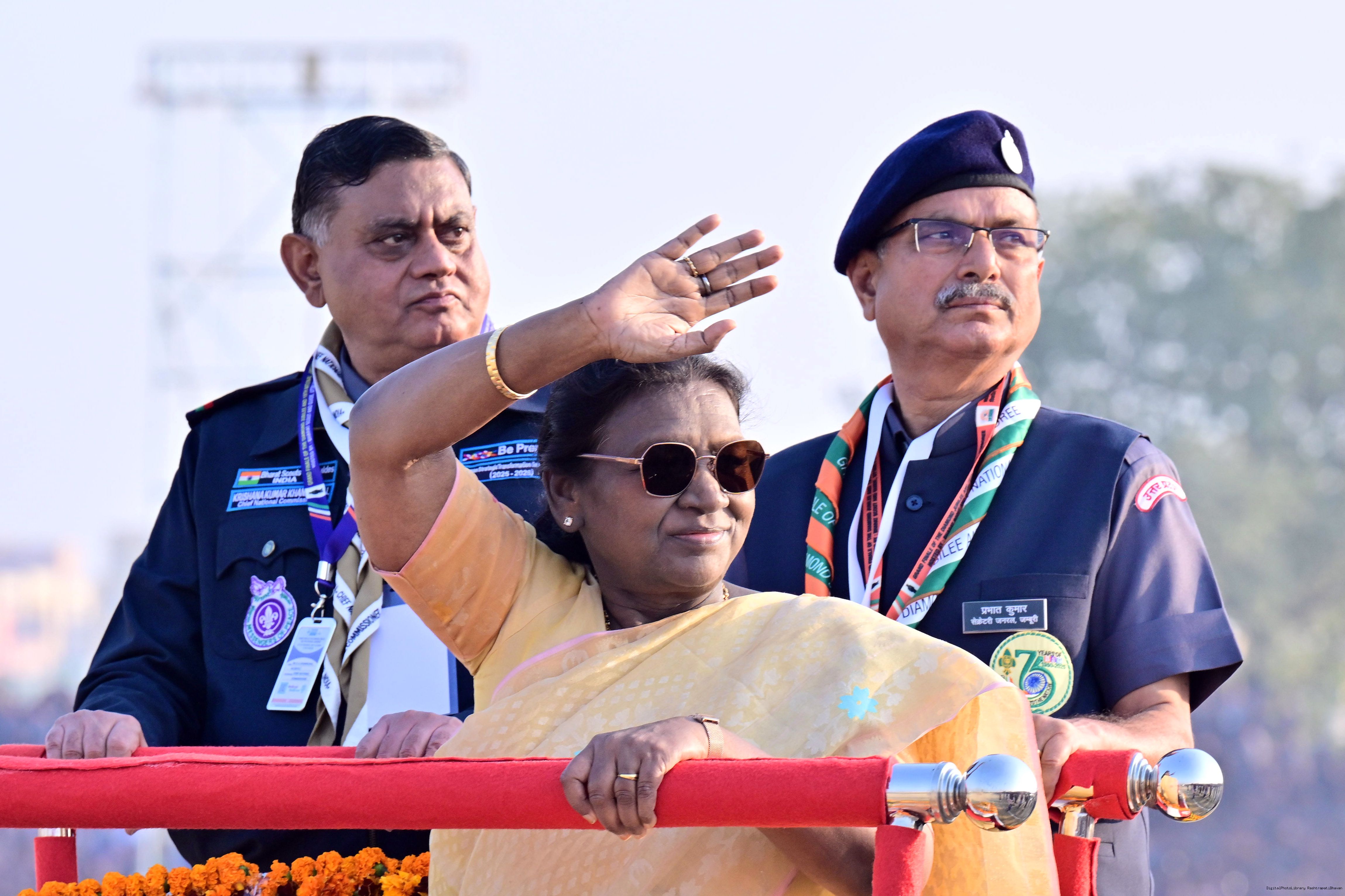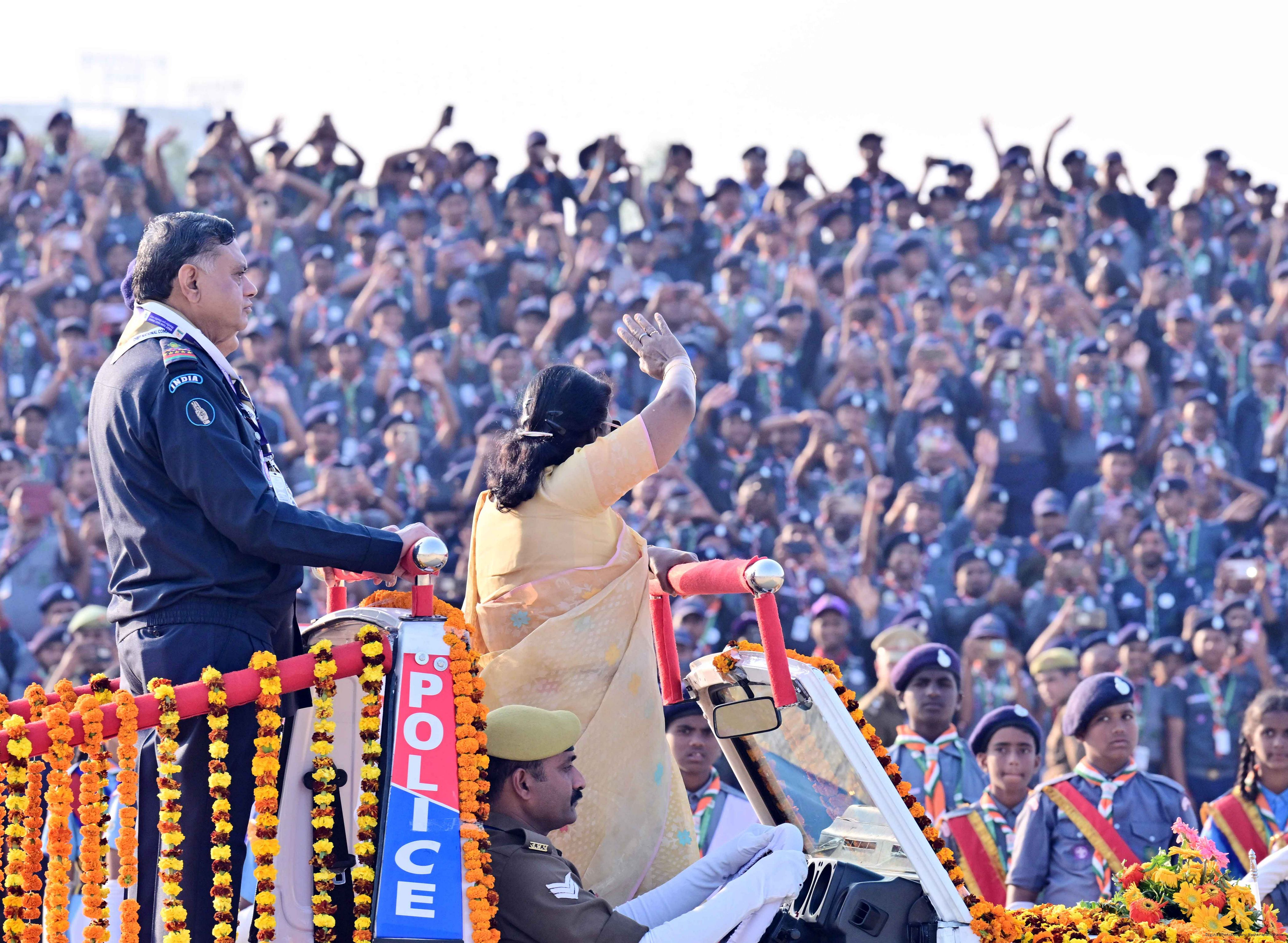 | Caption: | The President of India, Smt Droupadi Murmu, graced the closing ceremony of the Diamond Jubilee Celebrations of Bharat Scouts and Guides and addressed its 19th National Jamboree at Lucknow, Uttar Pradesh, on November 28, 2025. |