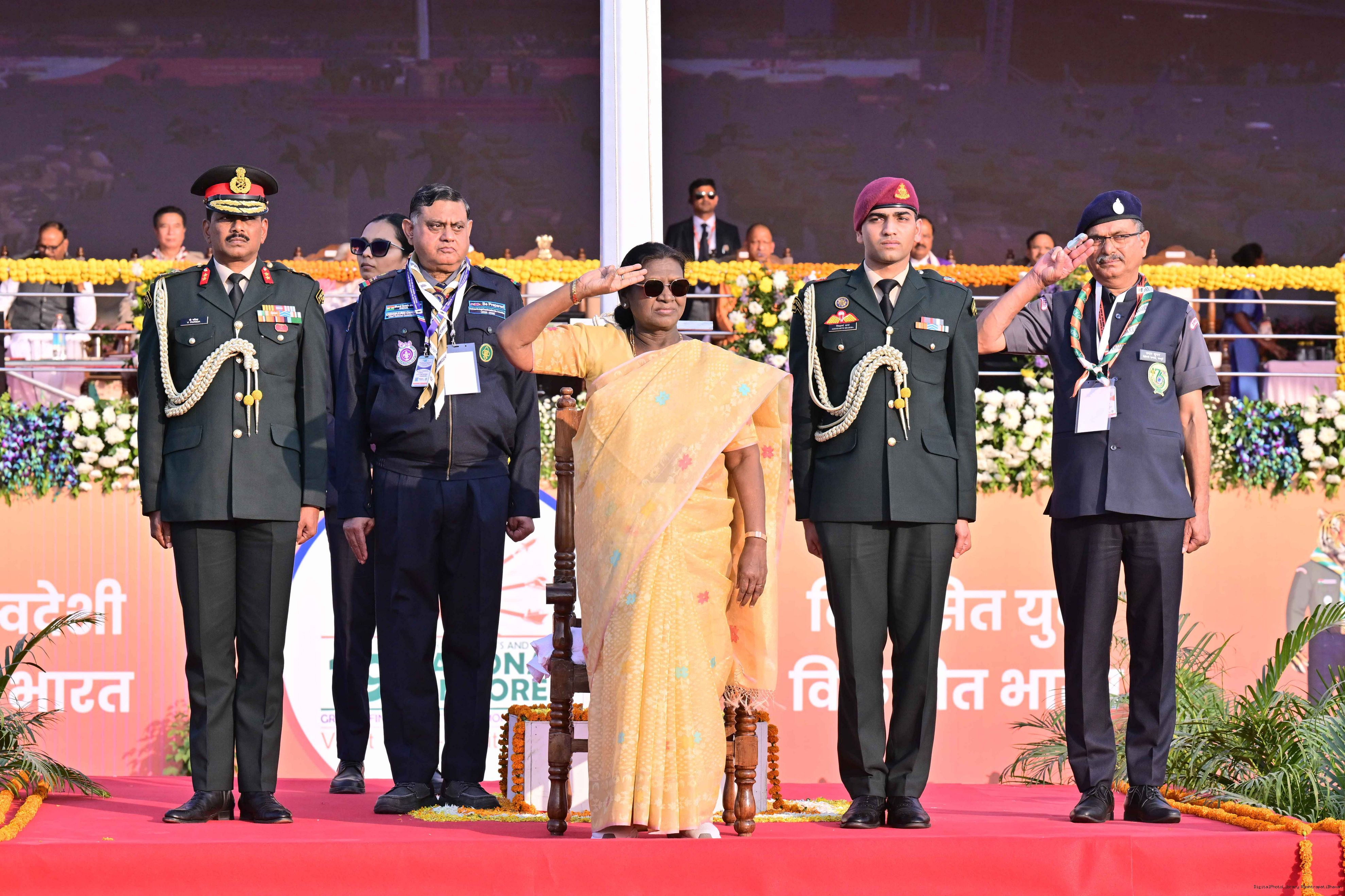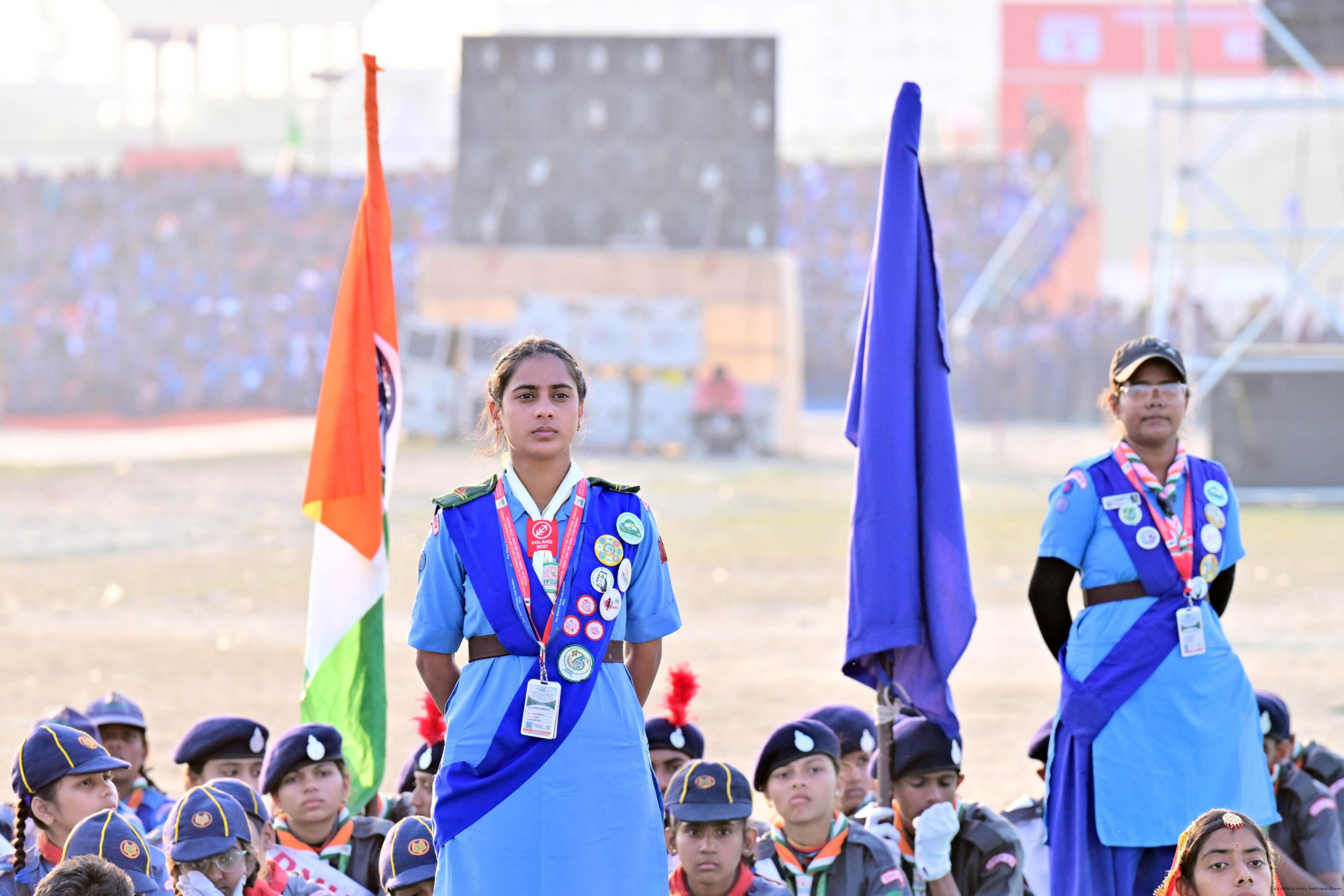 | Caption: | The President of India, Smt Droupadi Murmu, graced the closing ceremony of the Diamond Jubilee Celebrations of Bharat Scouts and Guides and addressed its 19th National Jamboree at Lucknow, Uttar Pradesh, on November 28, 2025. |