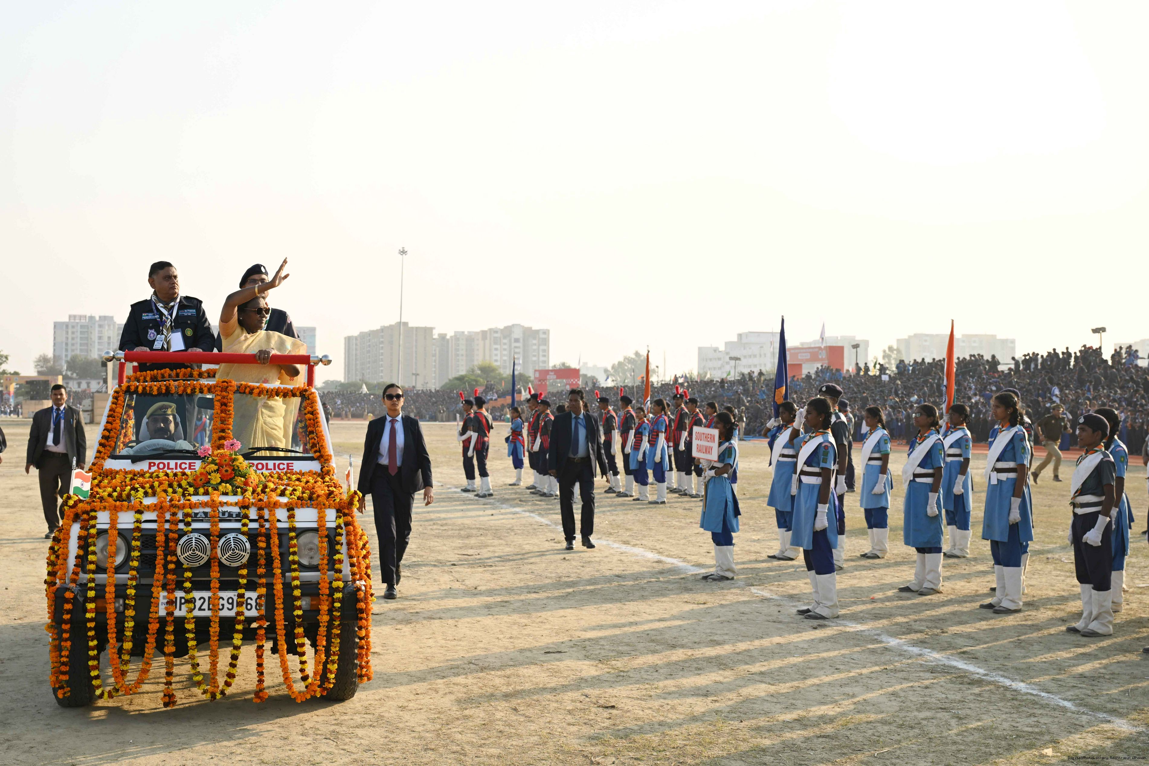 | Caption: | The President of India, Smt Droupadi Murmu, graced the closing ceremony of the Diamond Jubilee Celebrations of Bharat Scouts and Guides and addressed its 19th National Jamboree at Lucknow, Uttar Pradesh, on November 28, 2025. |