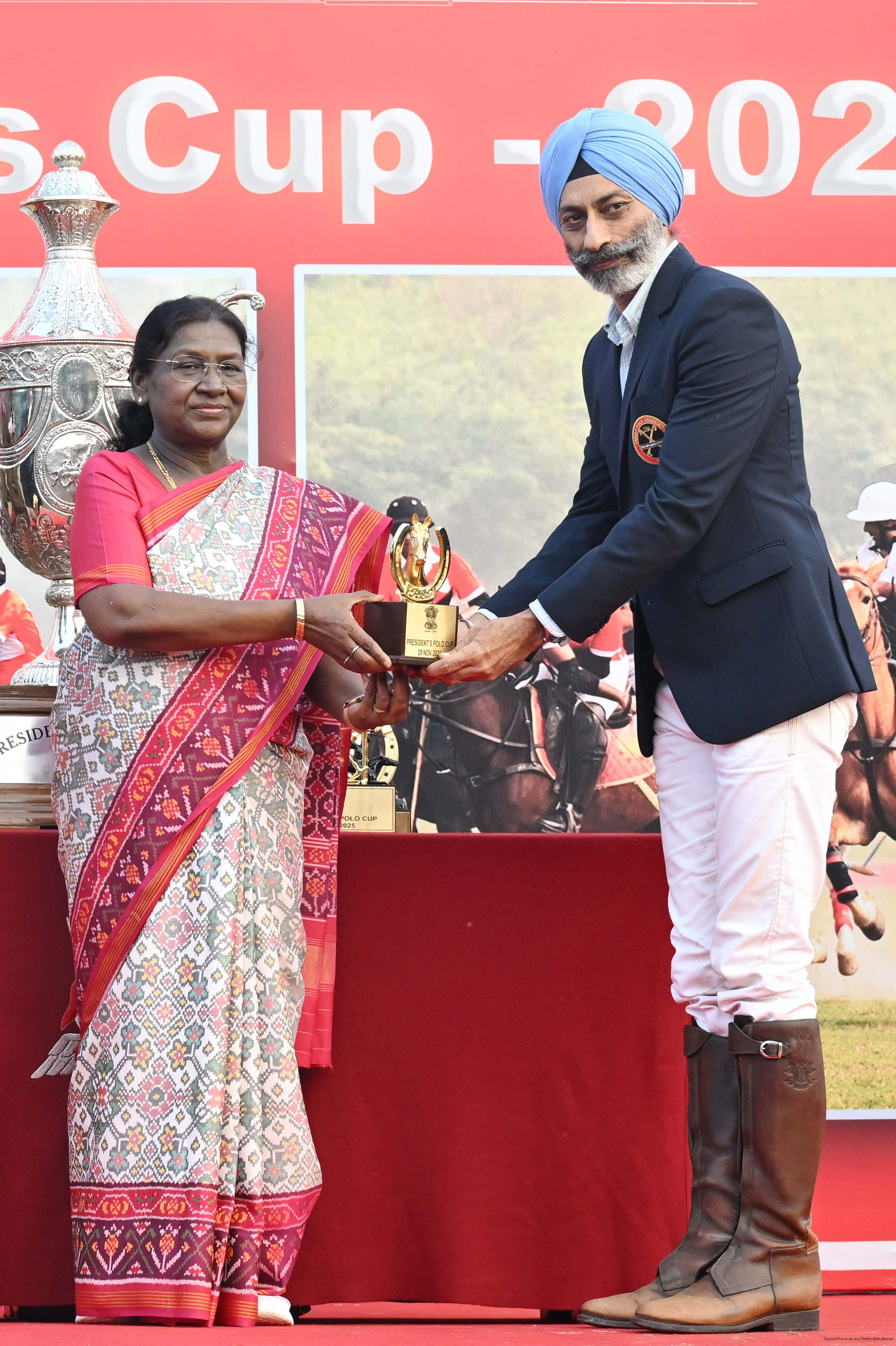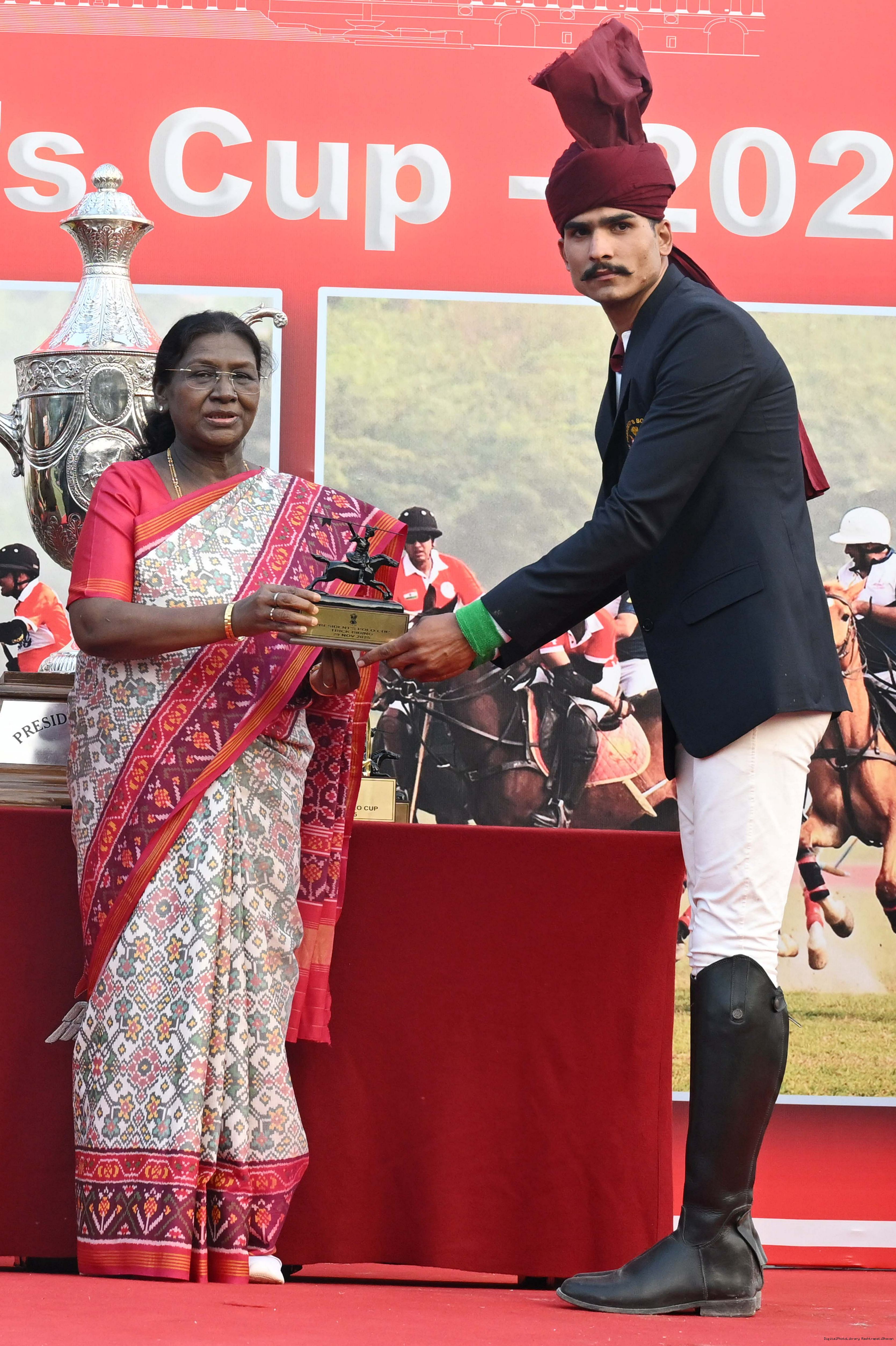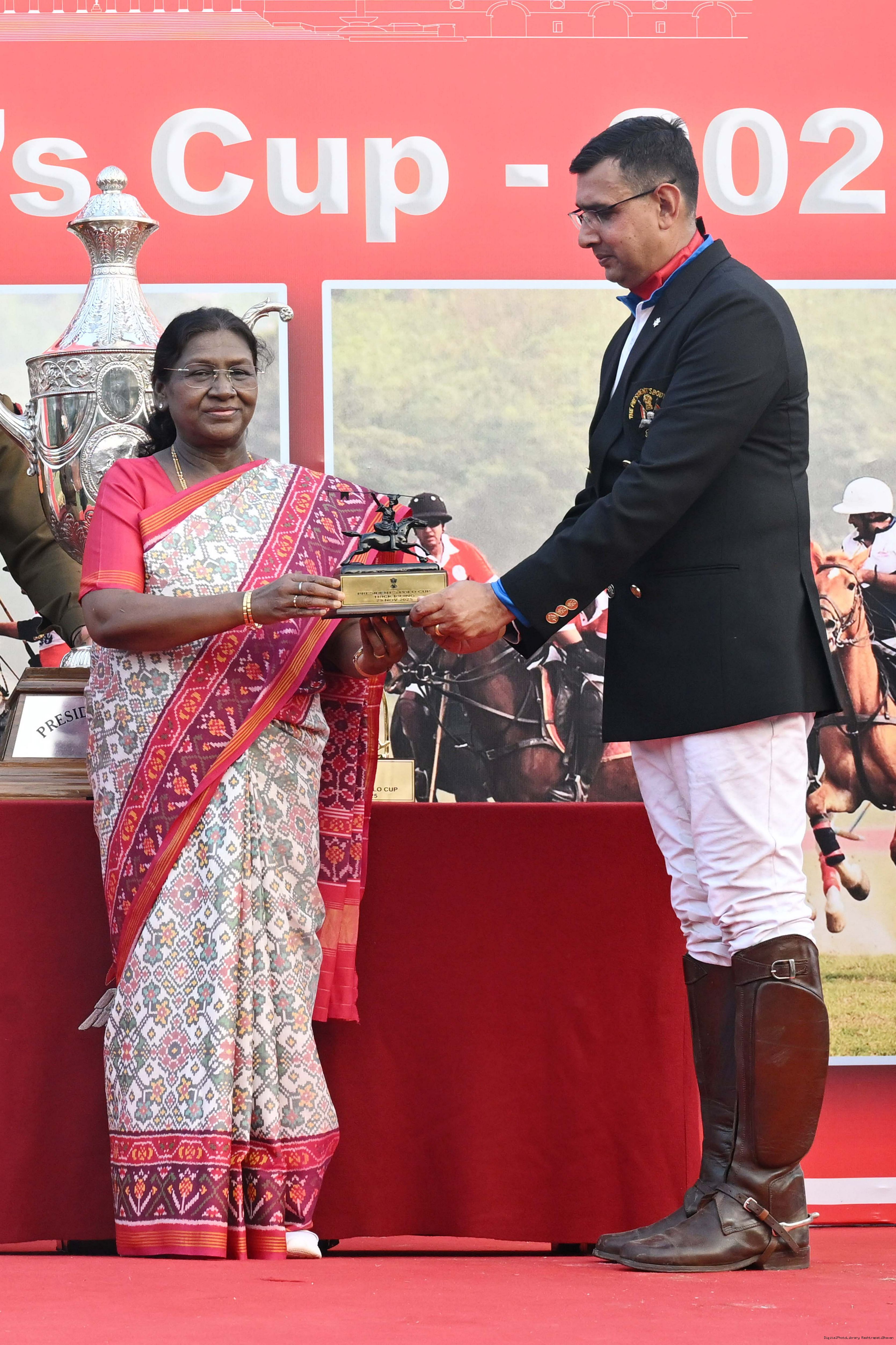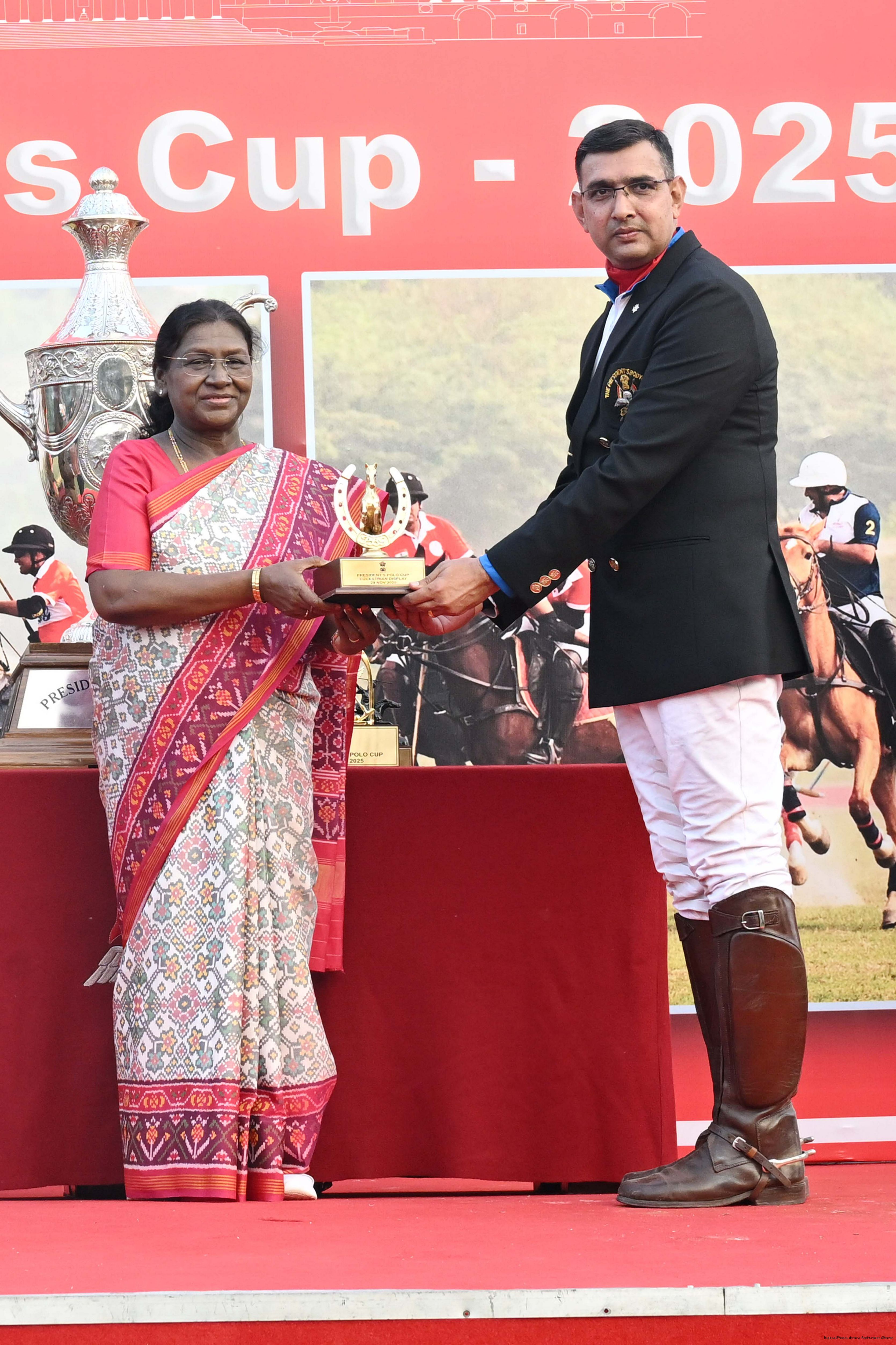 | Caption: | The President of India, Smt. Droupadi Murmu witnessed the President's Polo Cup Exhibition Match at PBG Parade Ground (Polo Field), in New Delhi on November 29, 2029. |