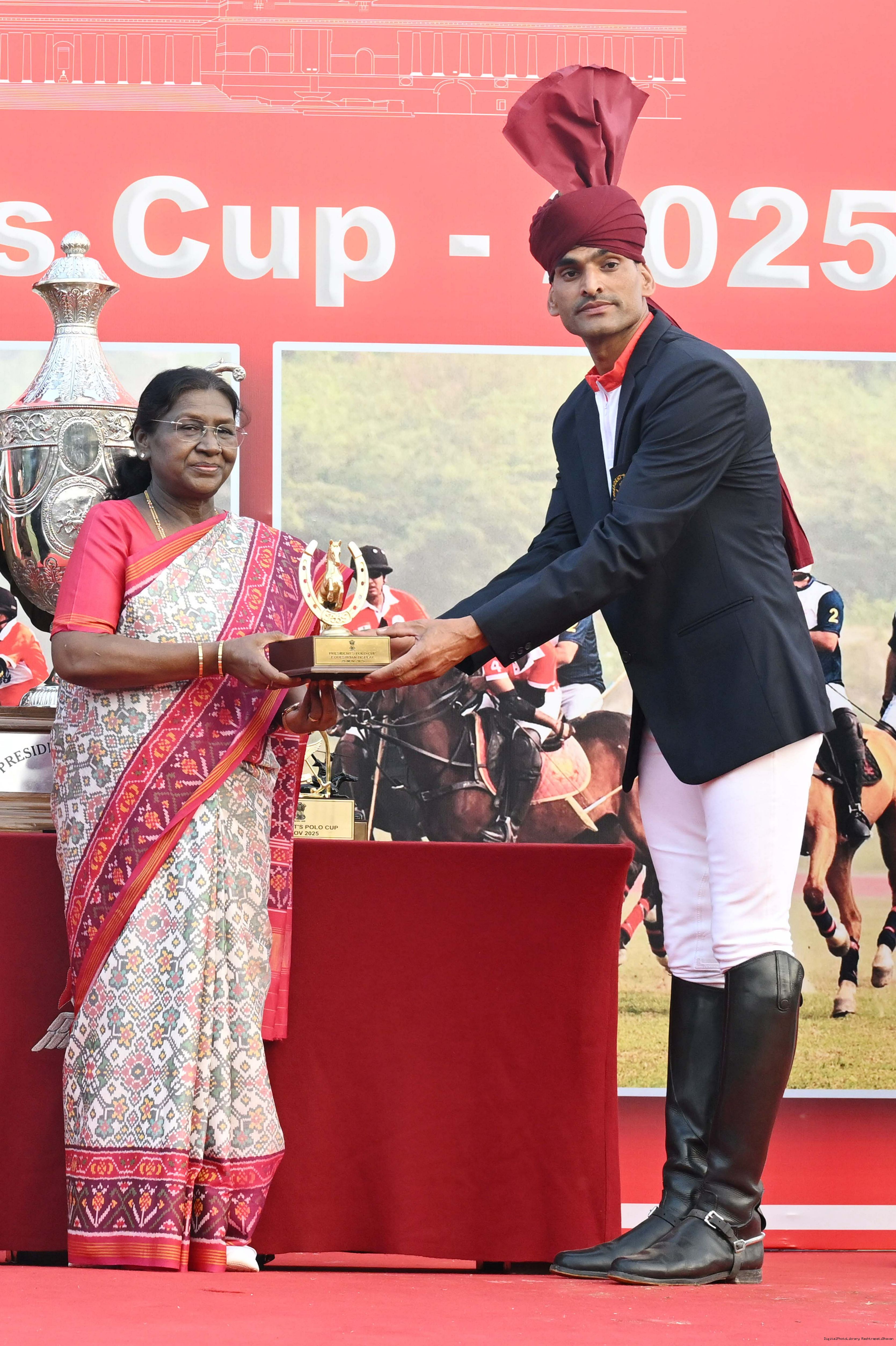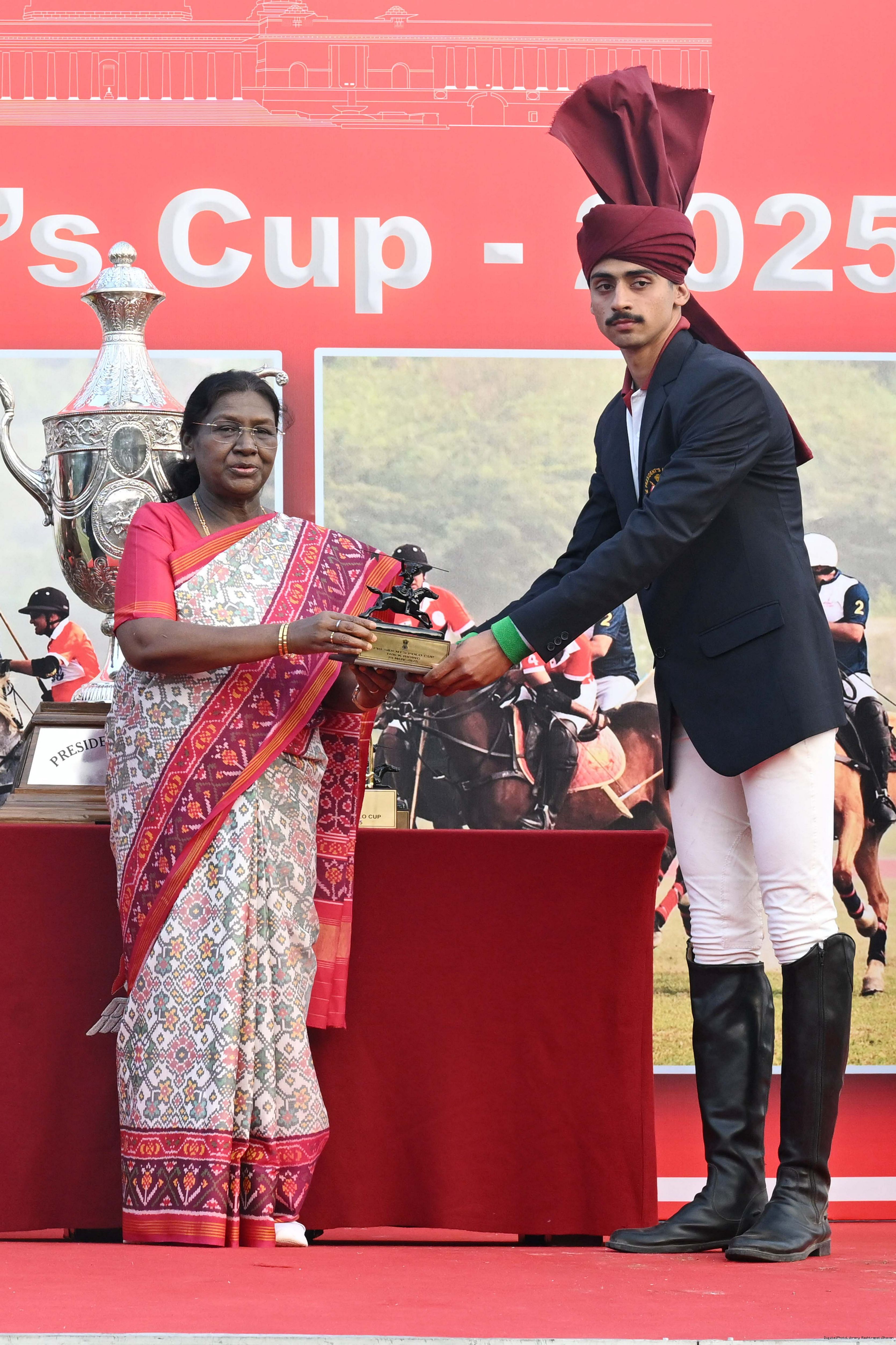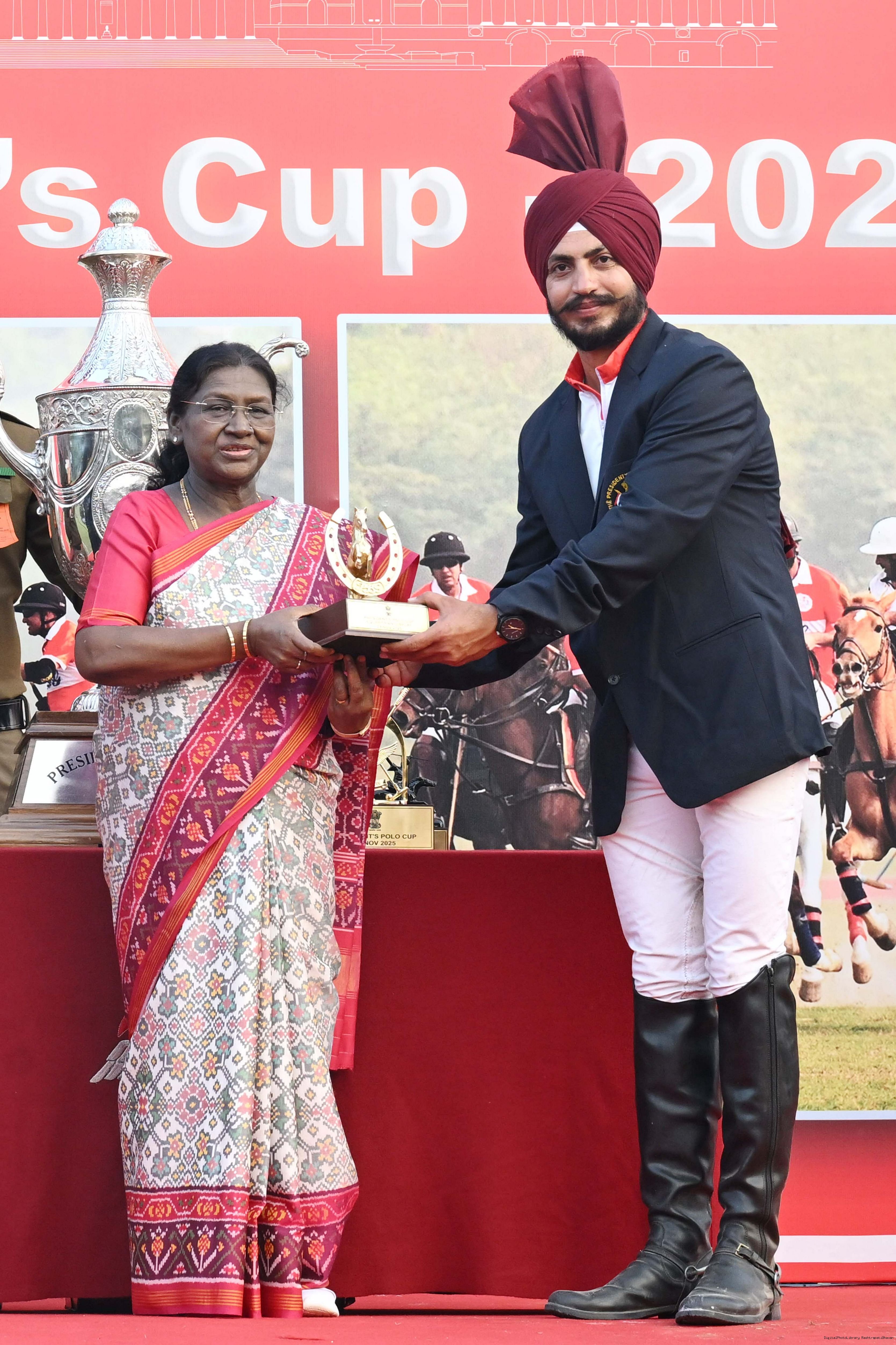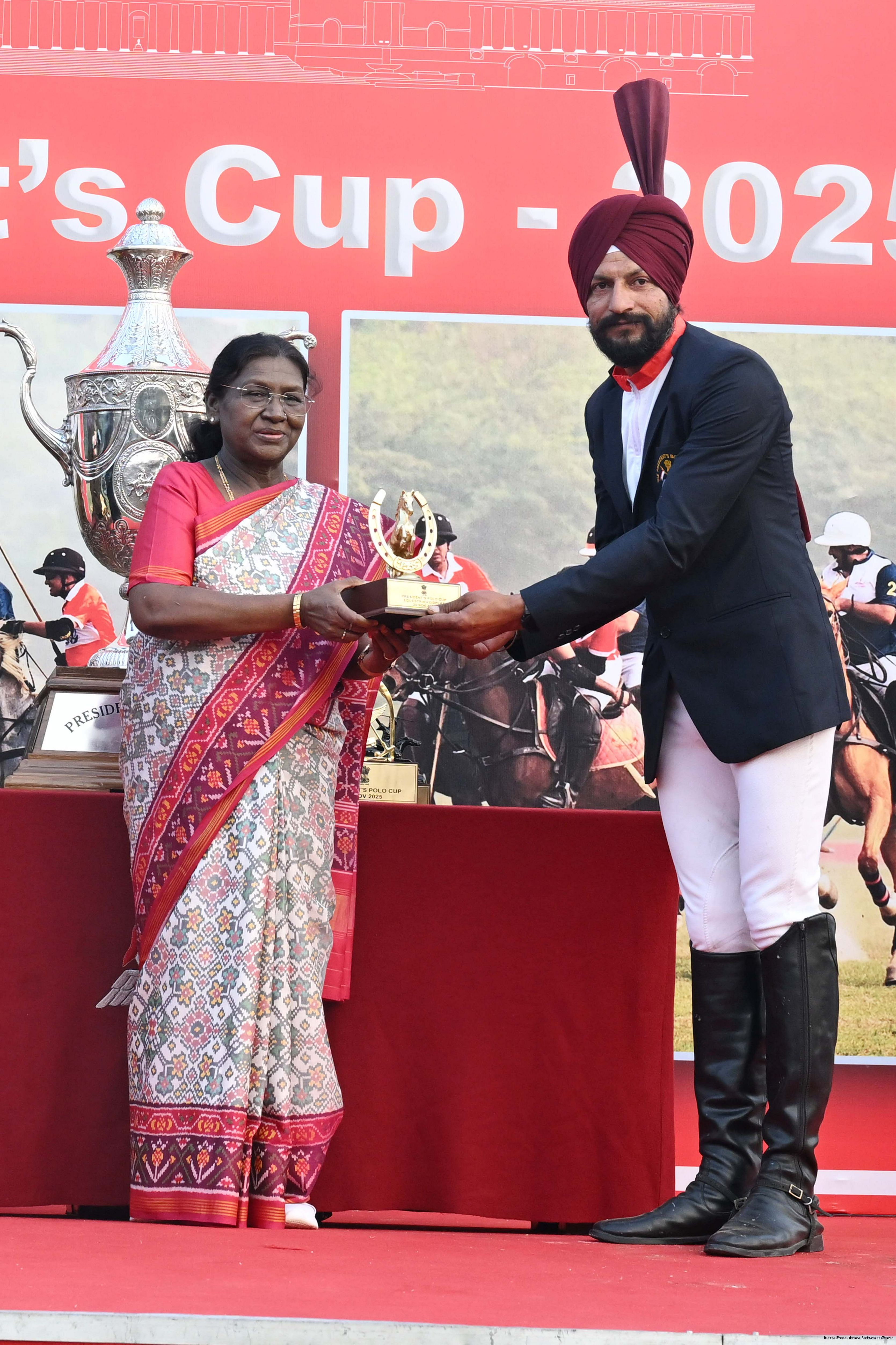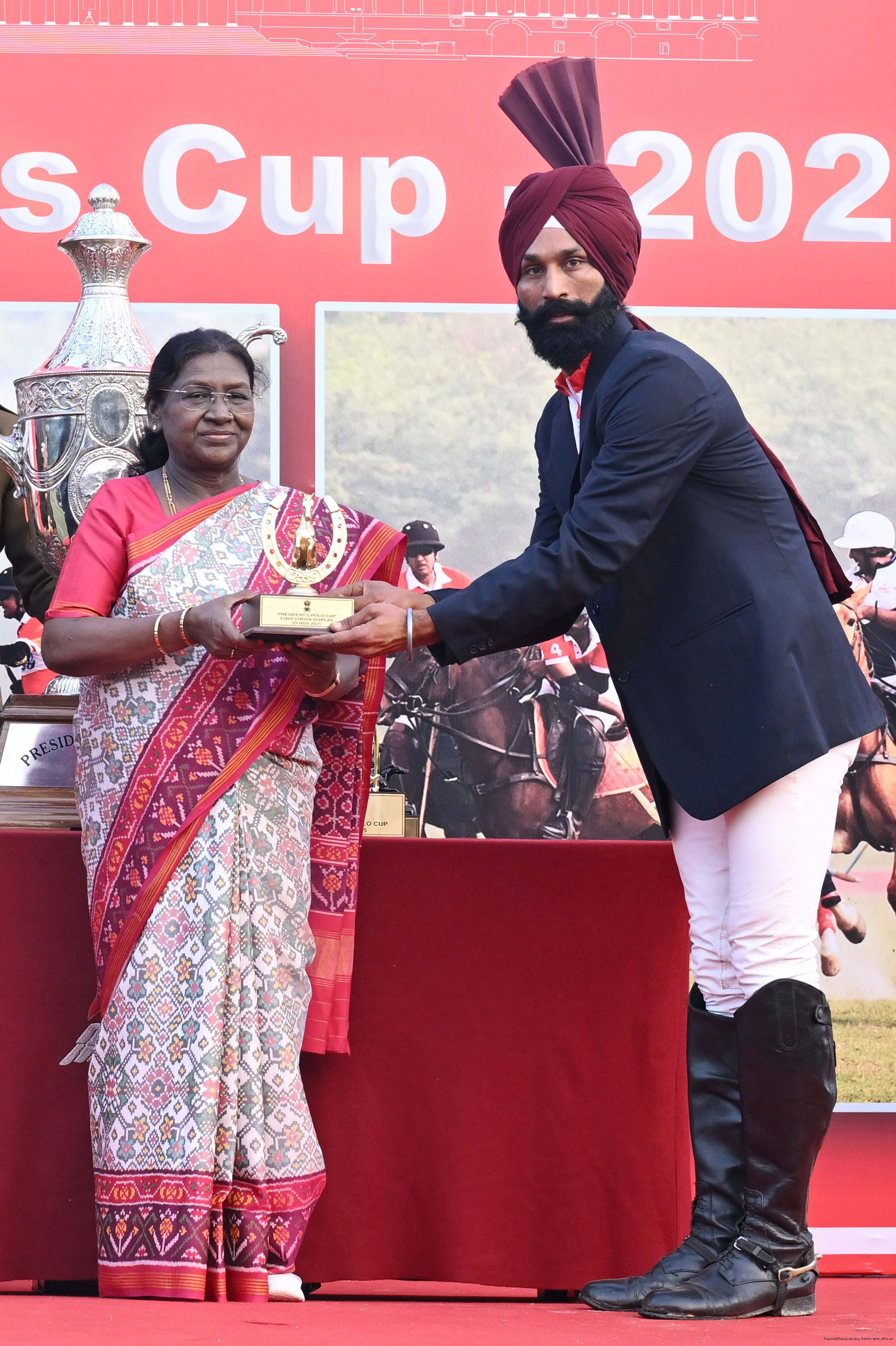 | Caption: | The President of India, Smt. Droupadi Murmu witnessed the President's Polo Cup Exhibition Match at PBG Parade Ground (Polo Field), in New Delhi on November 29, 2029. |