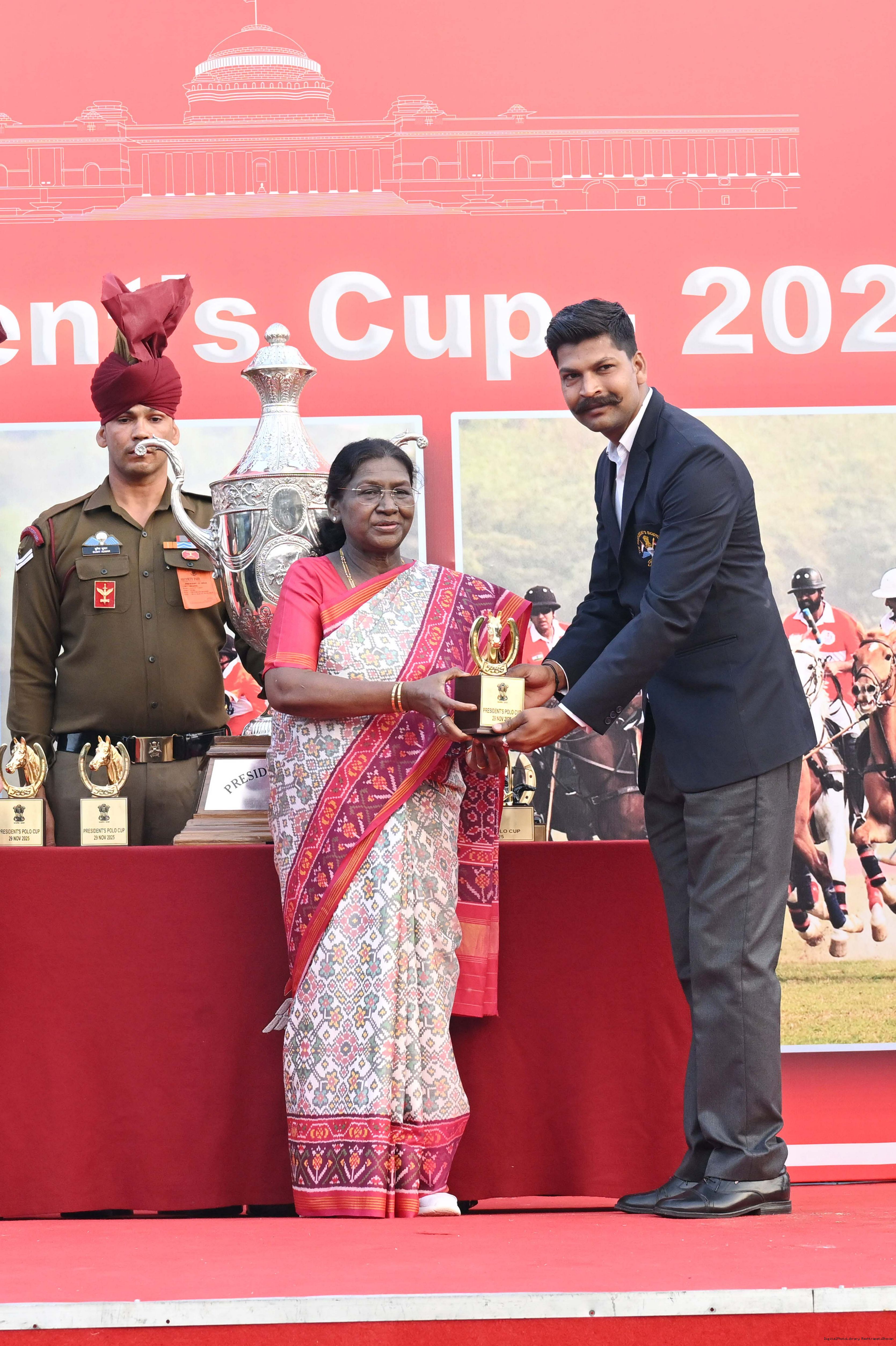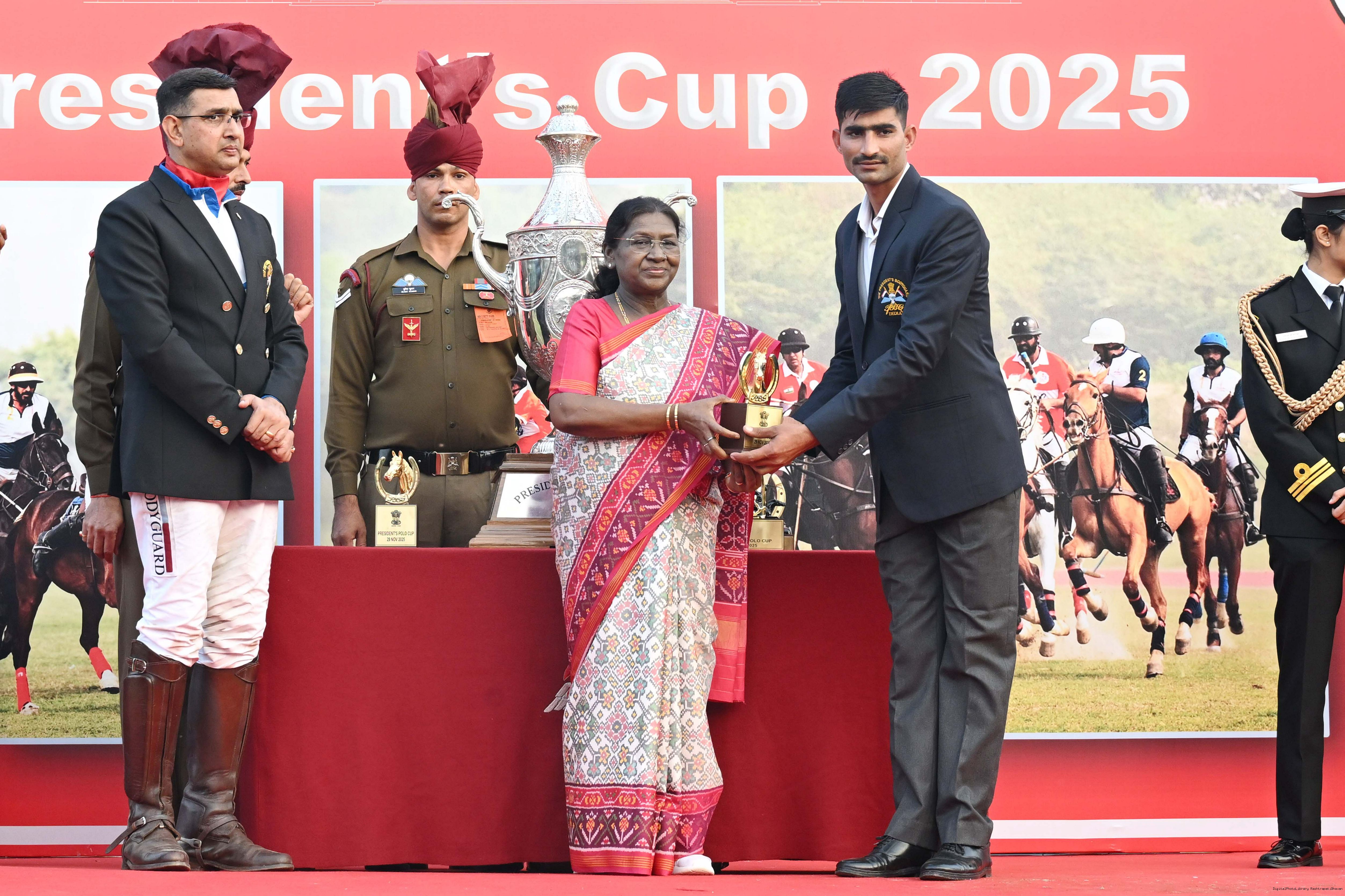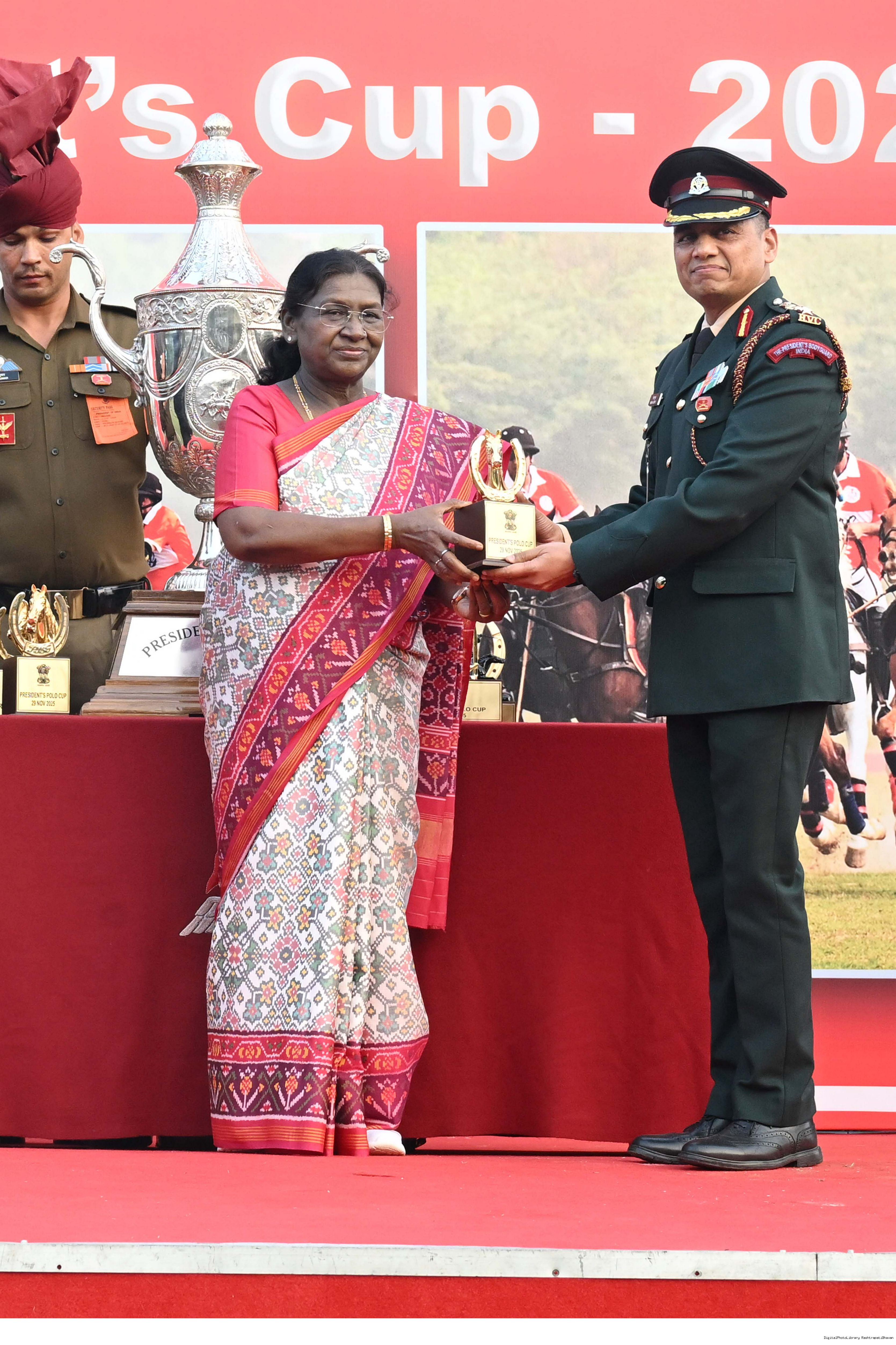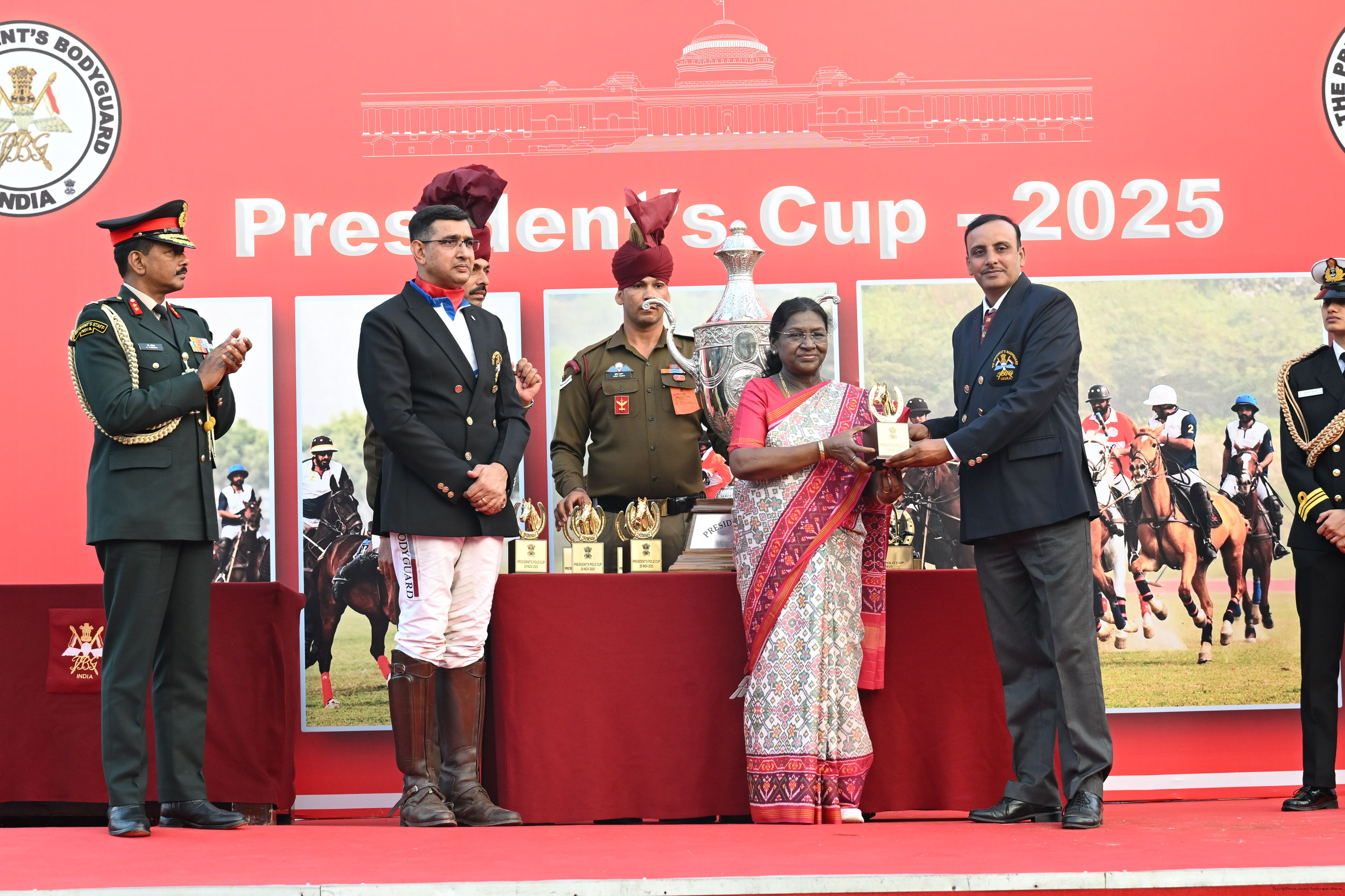 | Caption: | The President of India, Smt. Droupadi Murmu witnessed the President's Polo Cup Exhibition Match at PBG Parade Ground (Polo Field), in New Delhi on November 29, 2029. |