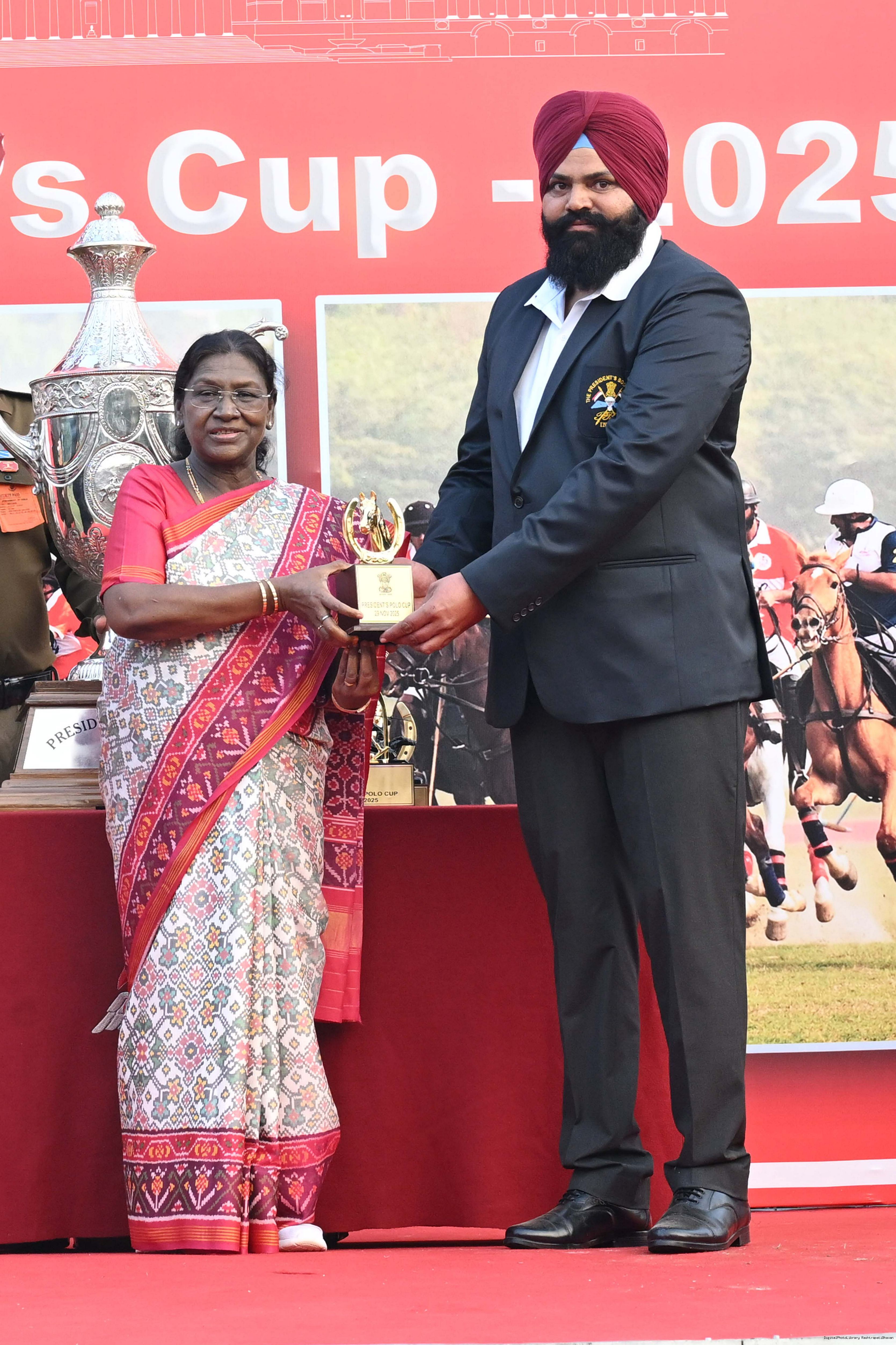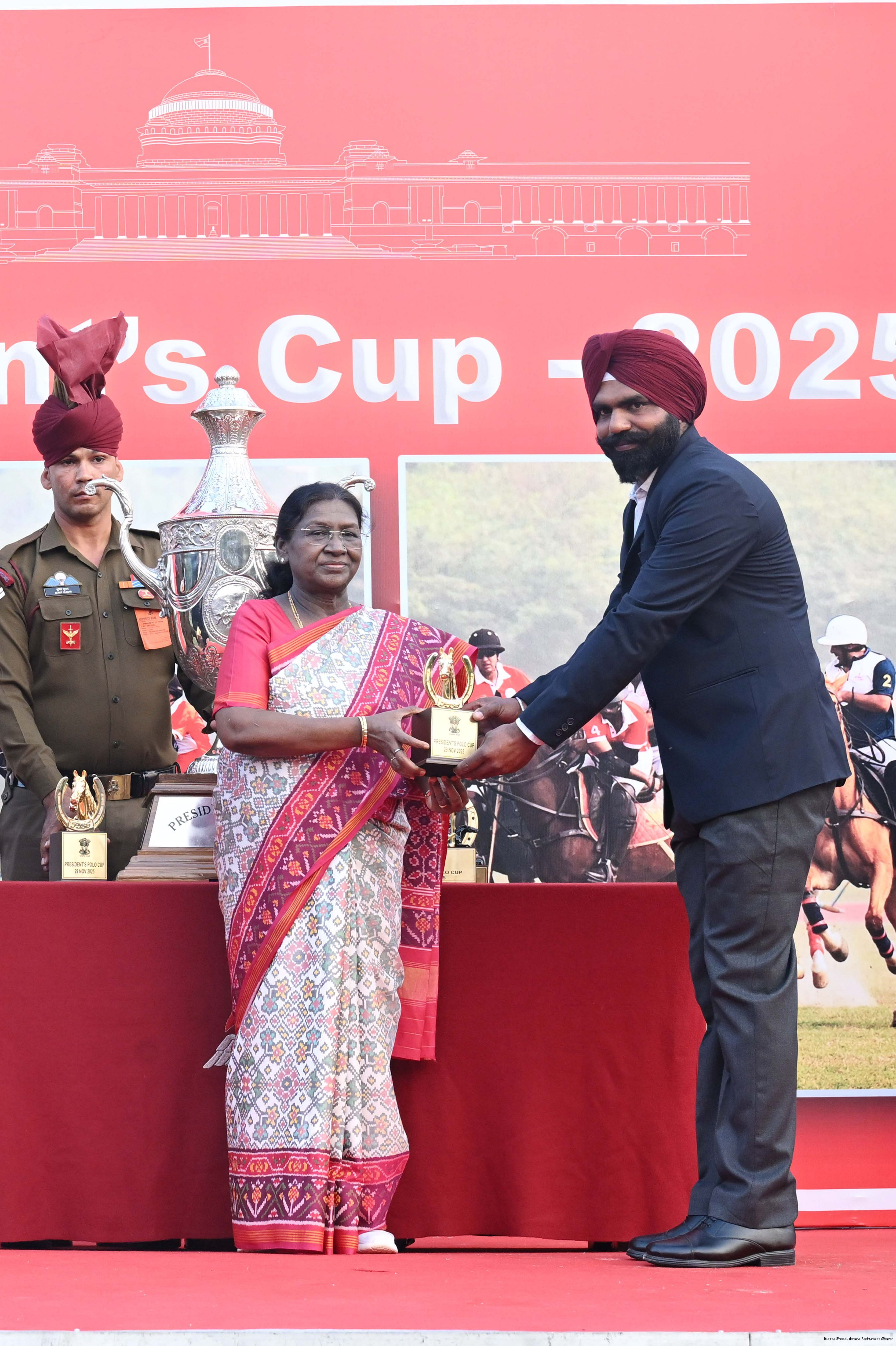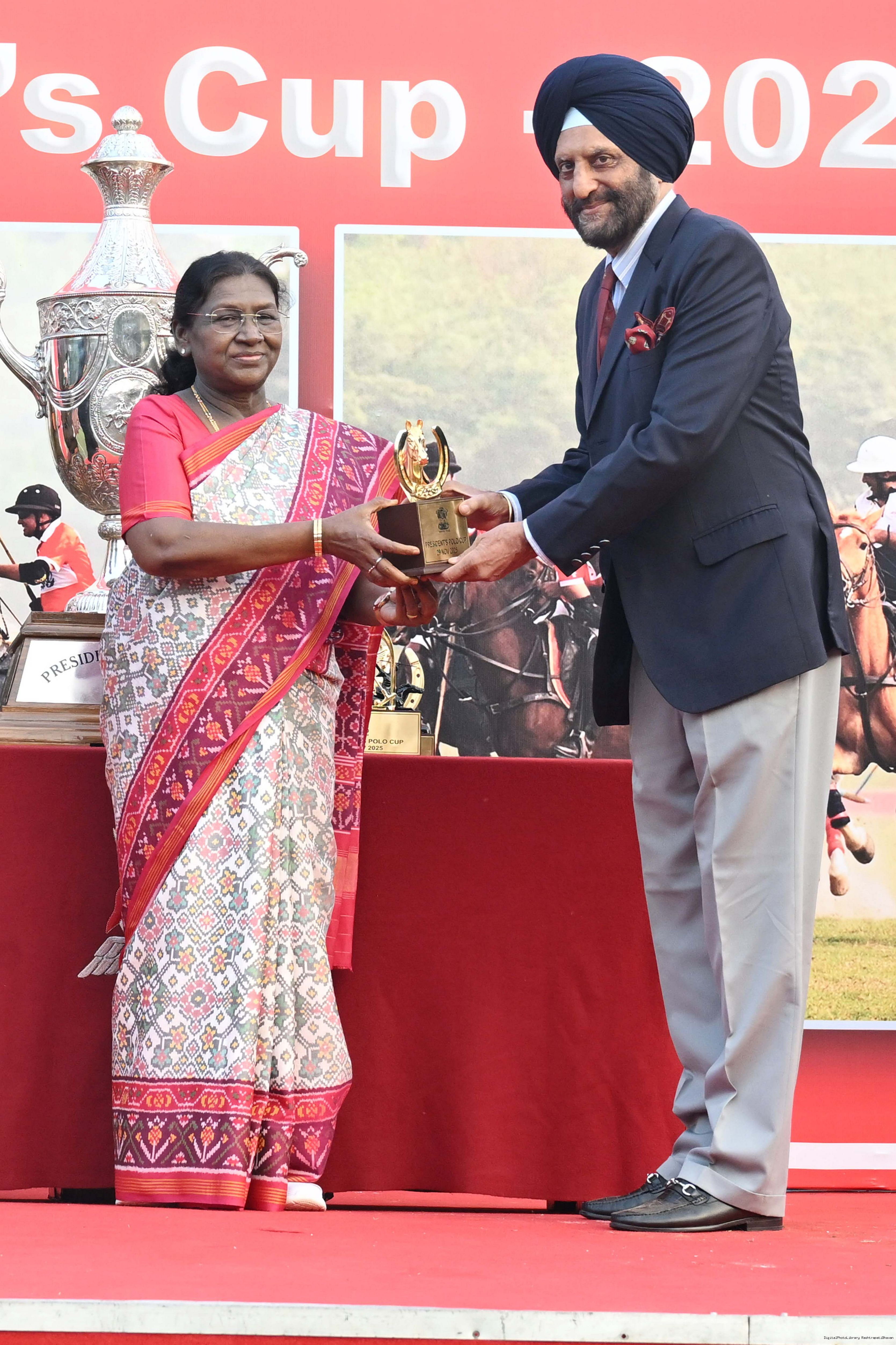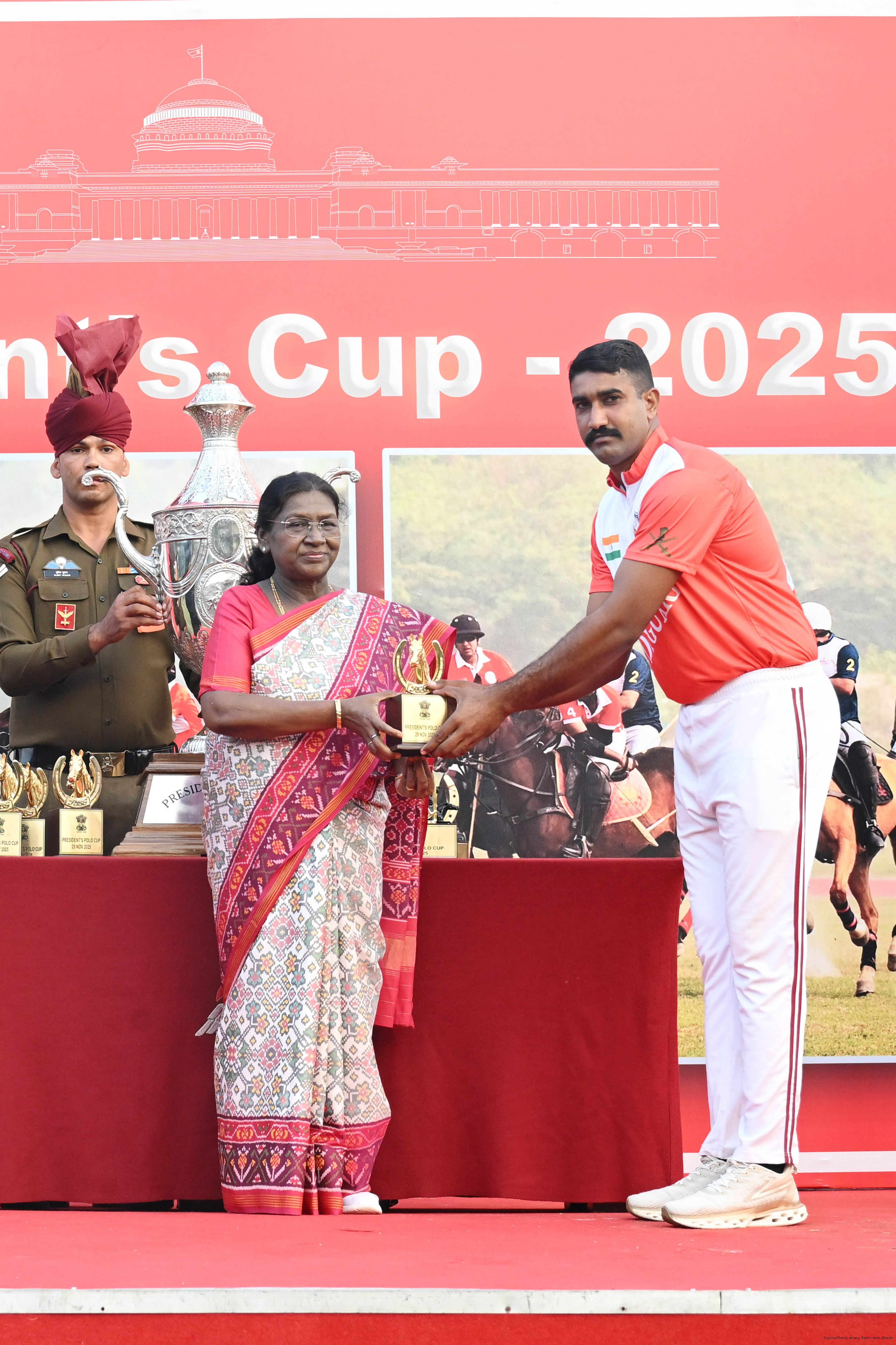 | Caption: | The President of India, Smt. Droupadi Murmu witnessed the President's Polo Cup Exhibition Match at PBG Parade Ground (Polo Field), in New Delhi on November 29, 2029. |