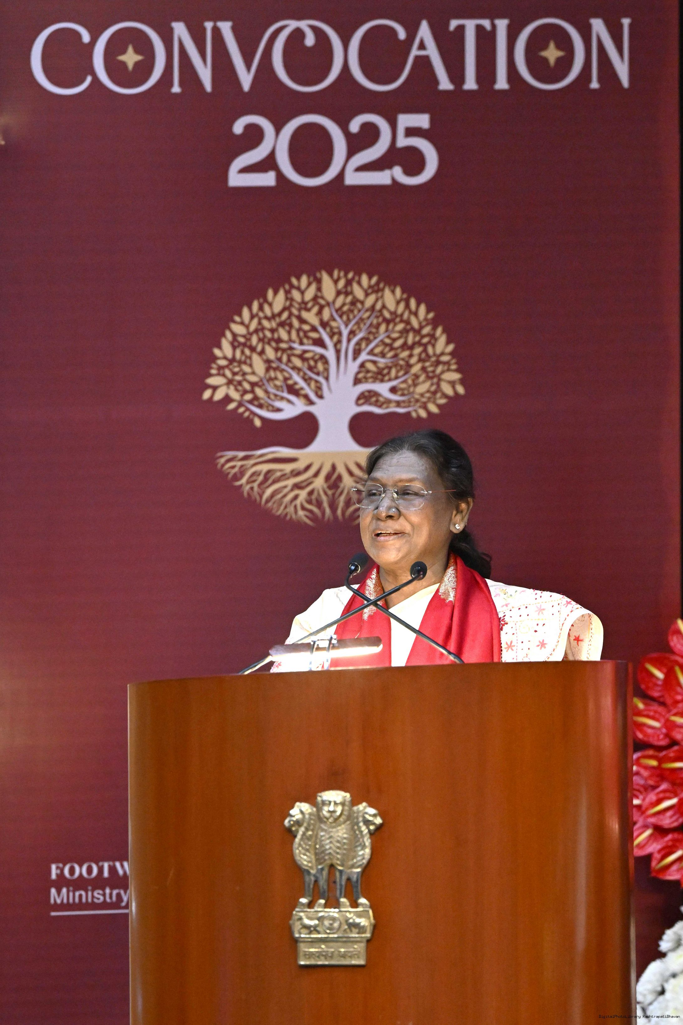| Caption: | The President of India, Smt Droupadi Murmu, graced the convocation ceremony of the Footwear Design and Development Institute in New Delhi on December 1, 2025. |