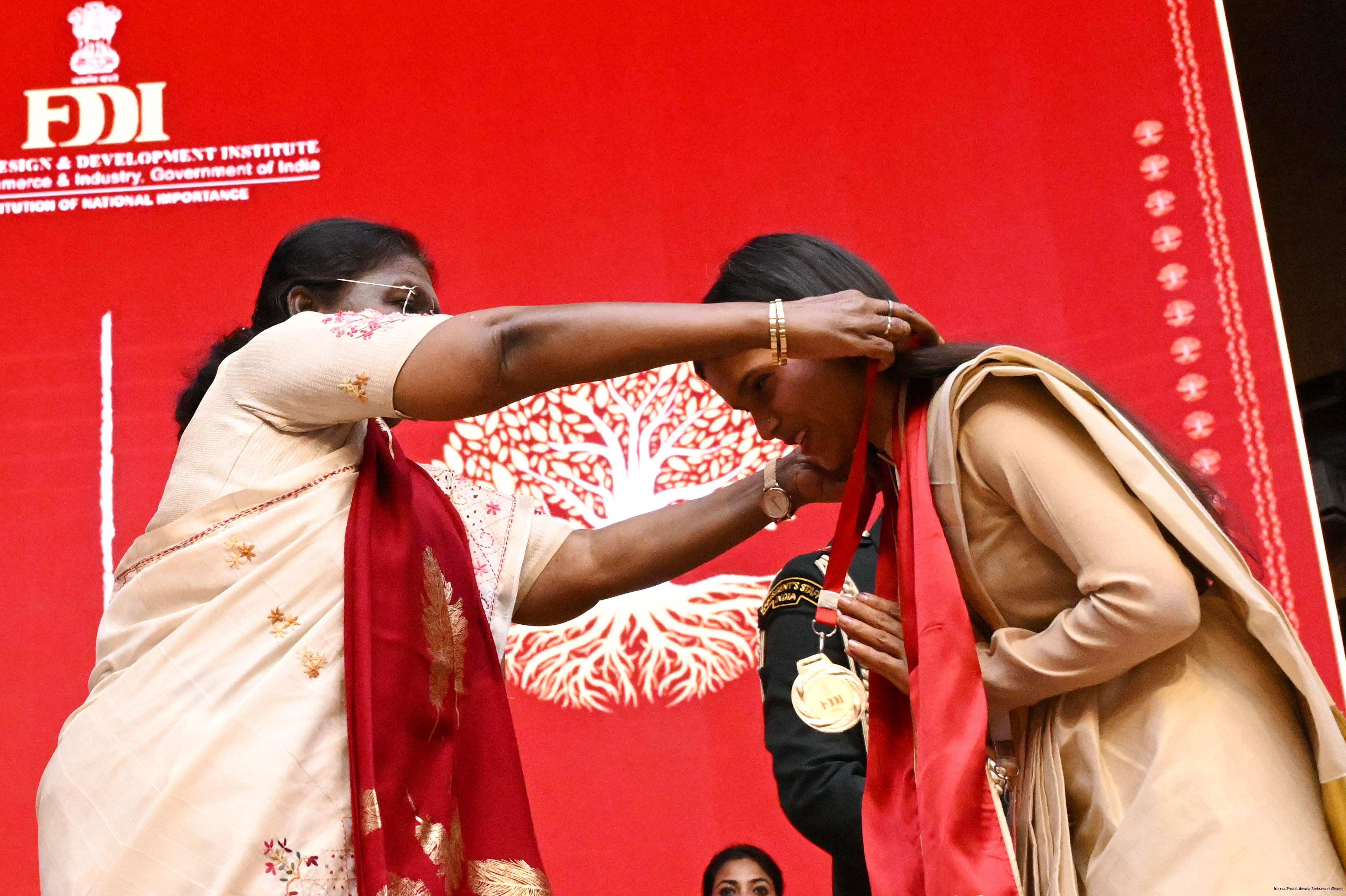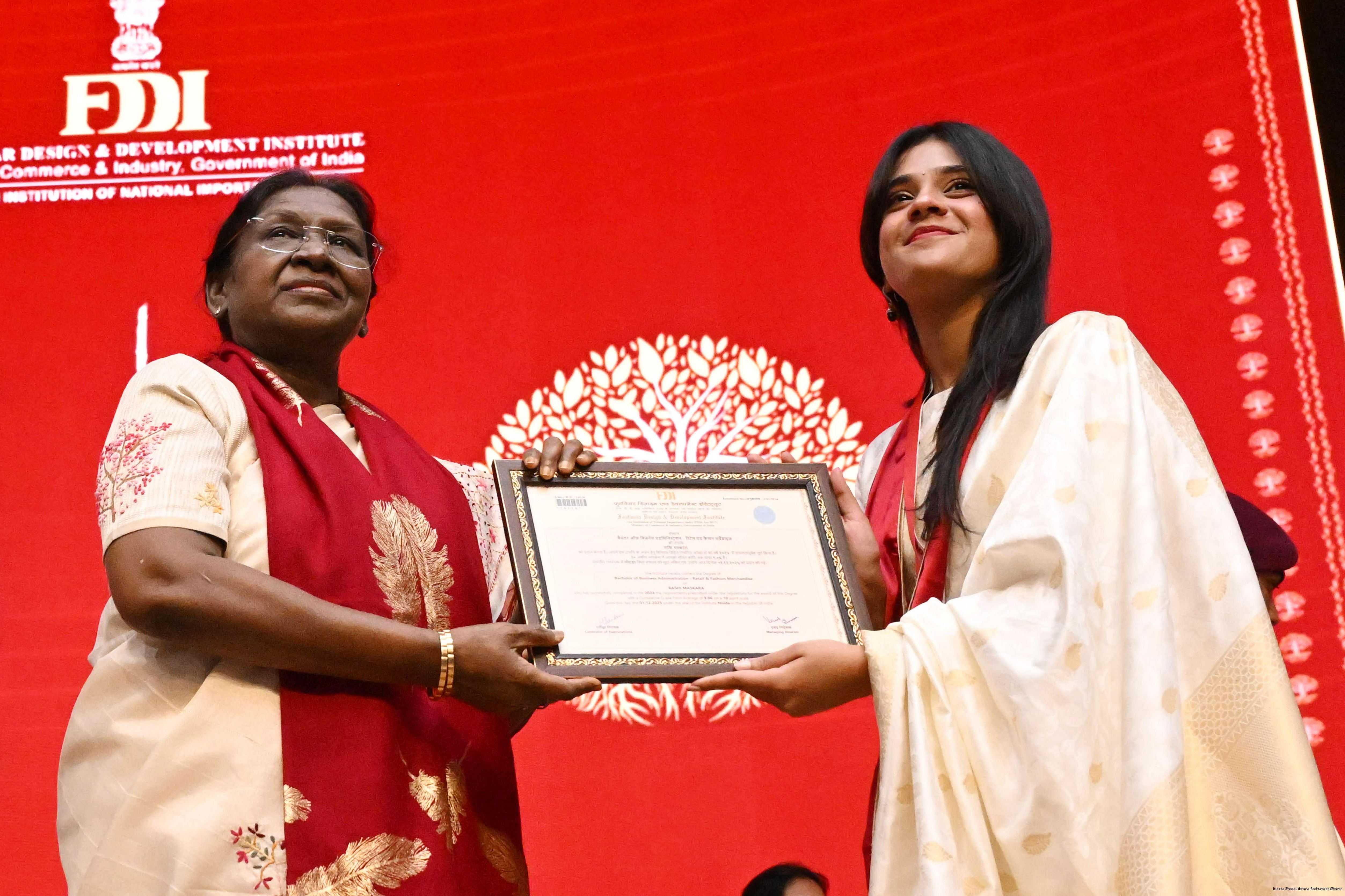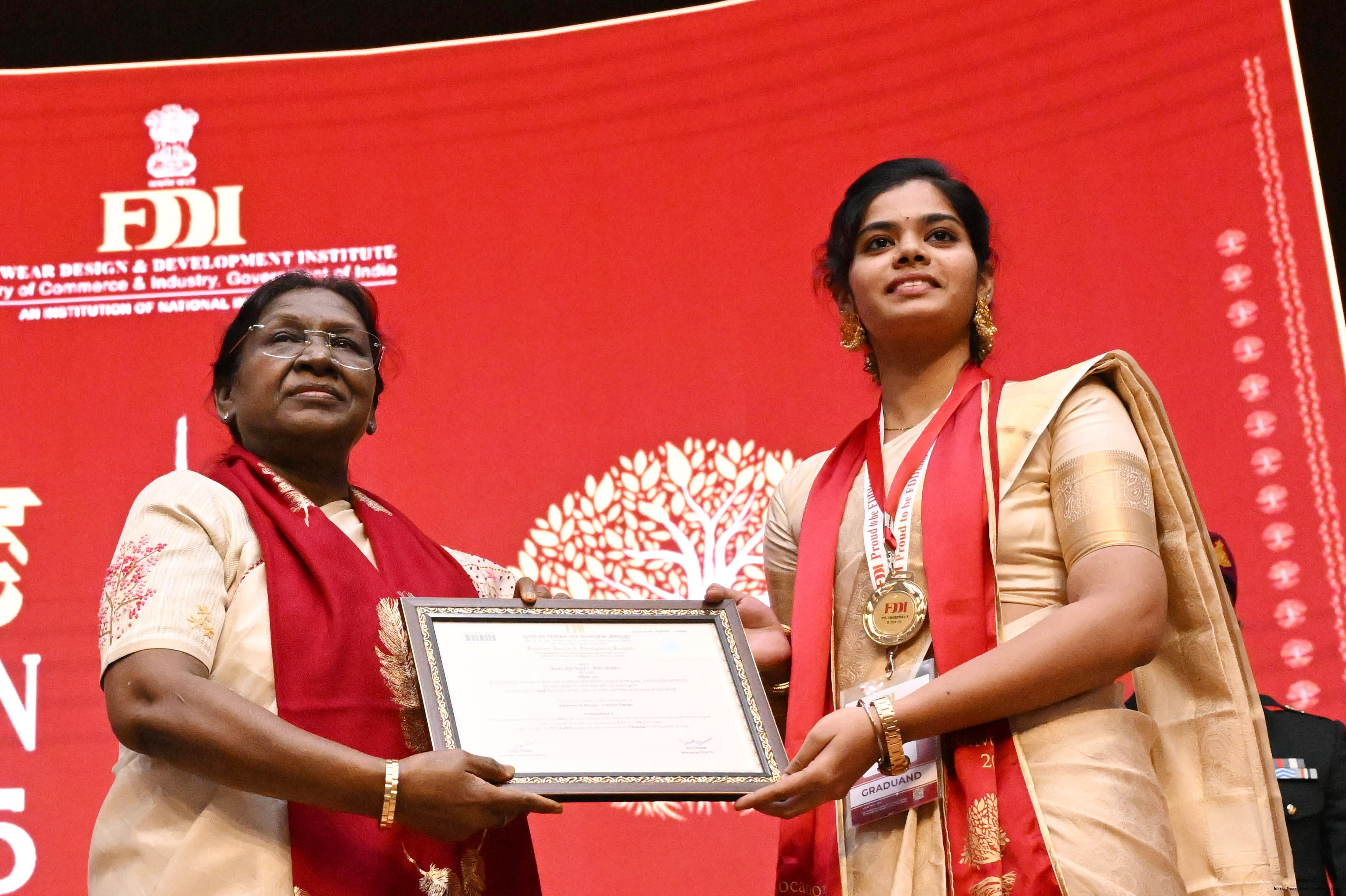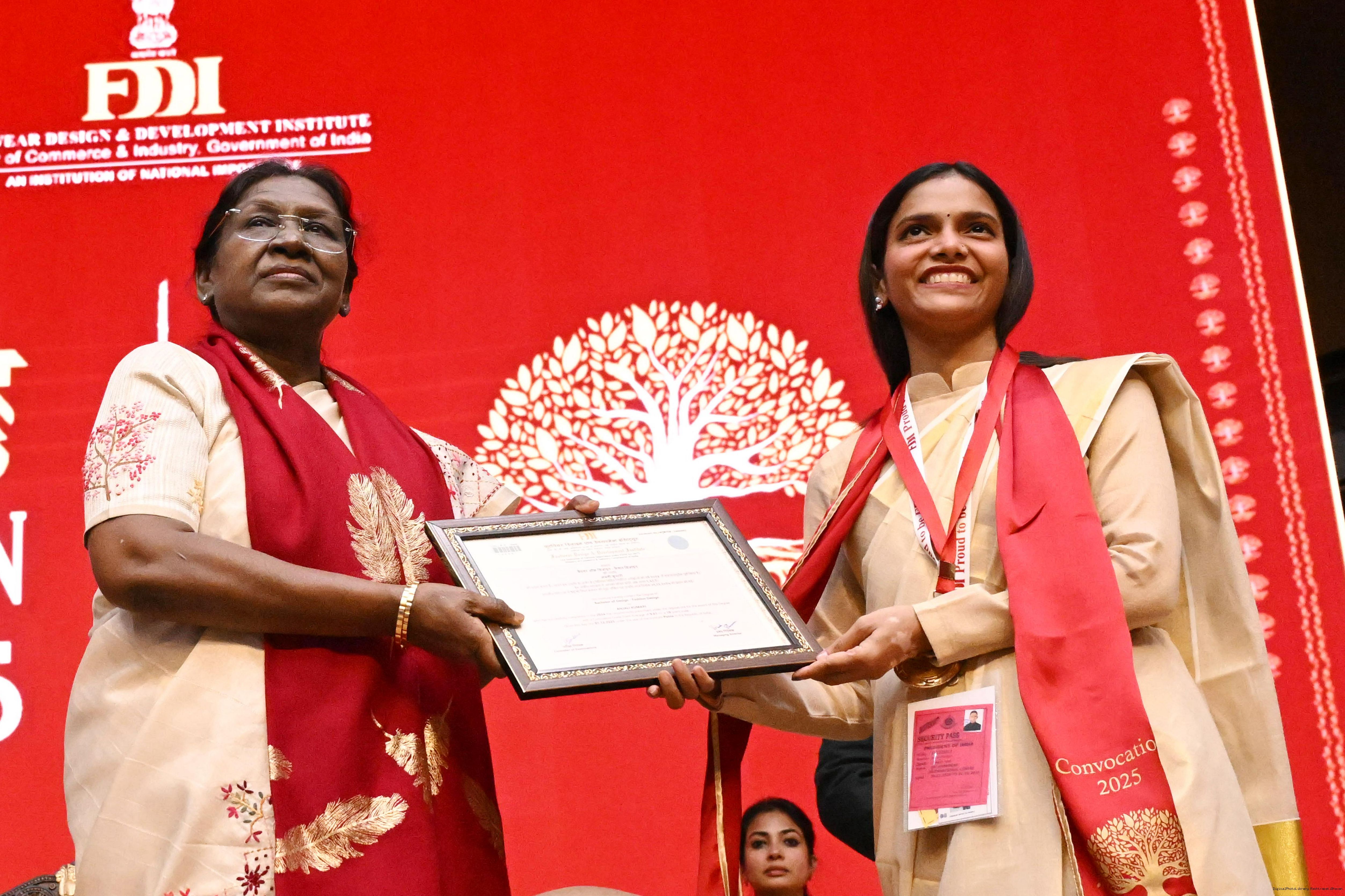 | Caption: | The President of India, Smt Droupadi Murmu, graced the convocation ceremony of the Footwear Design and Development Institute in New Delhi on December 1, 2025. |