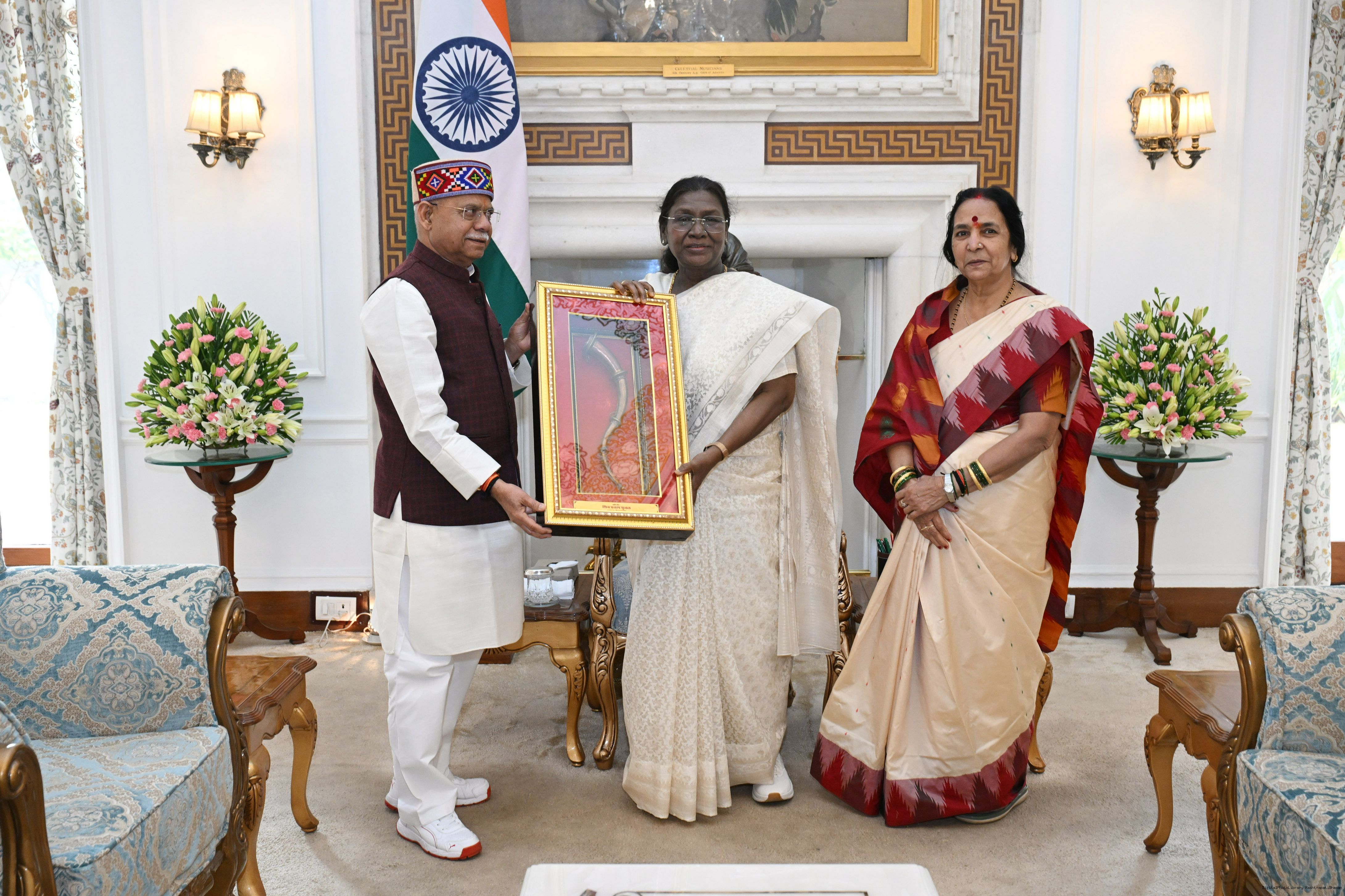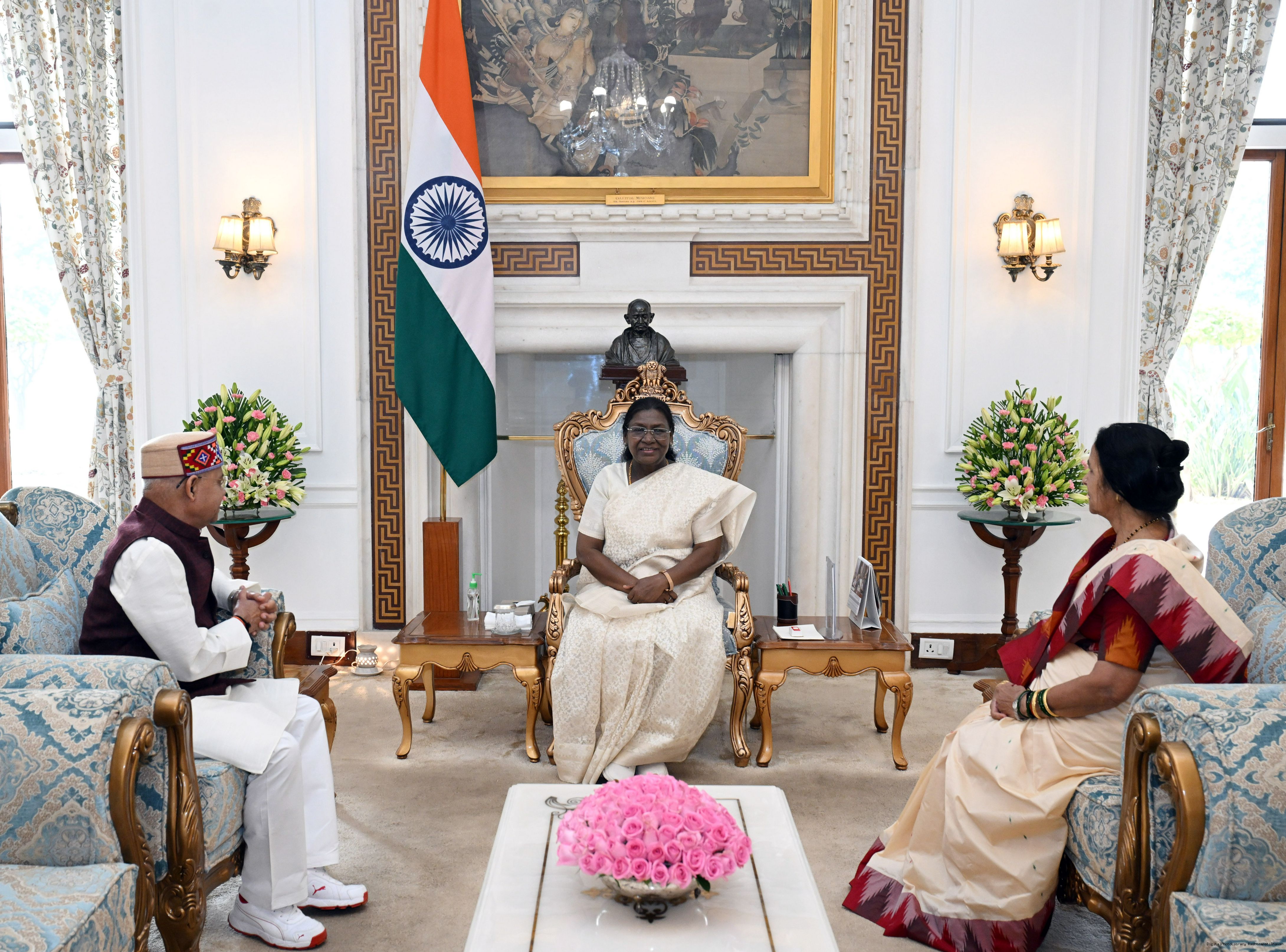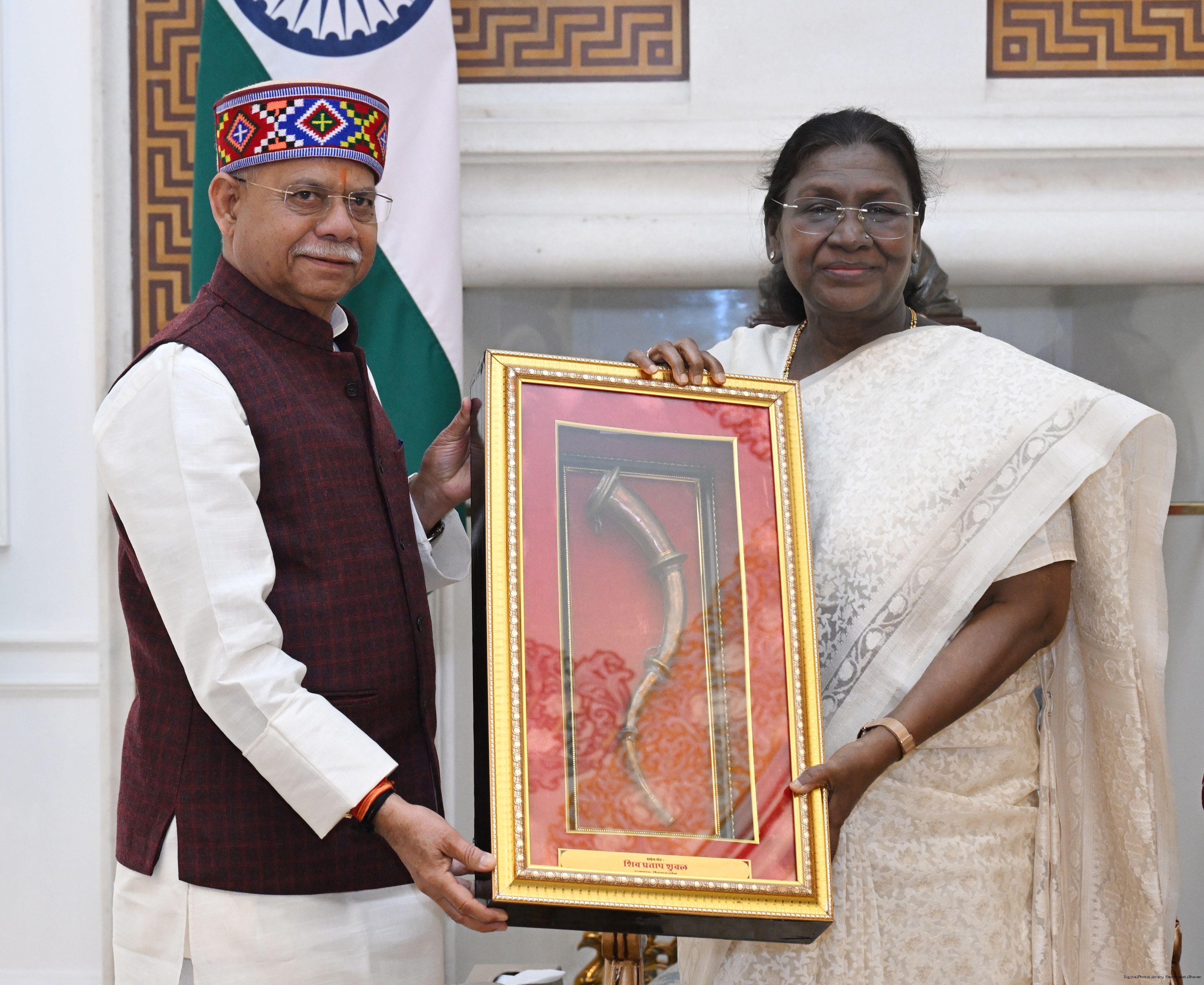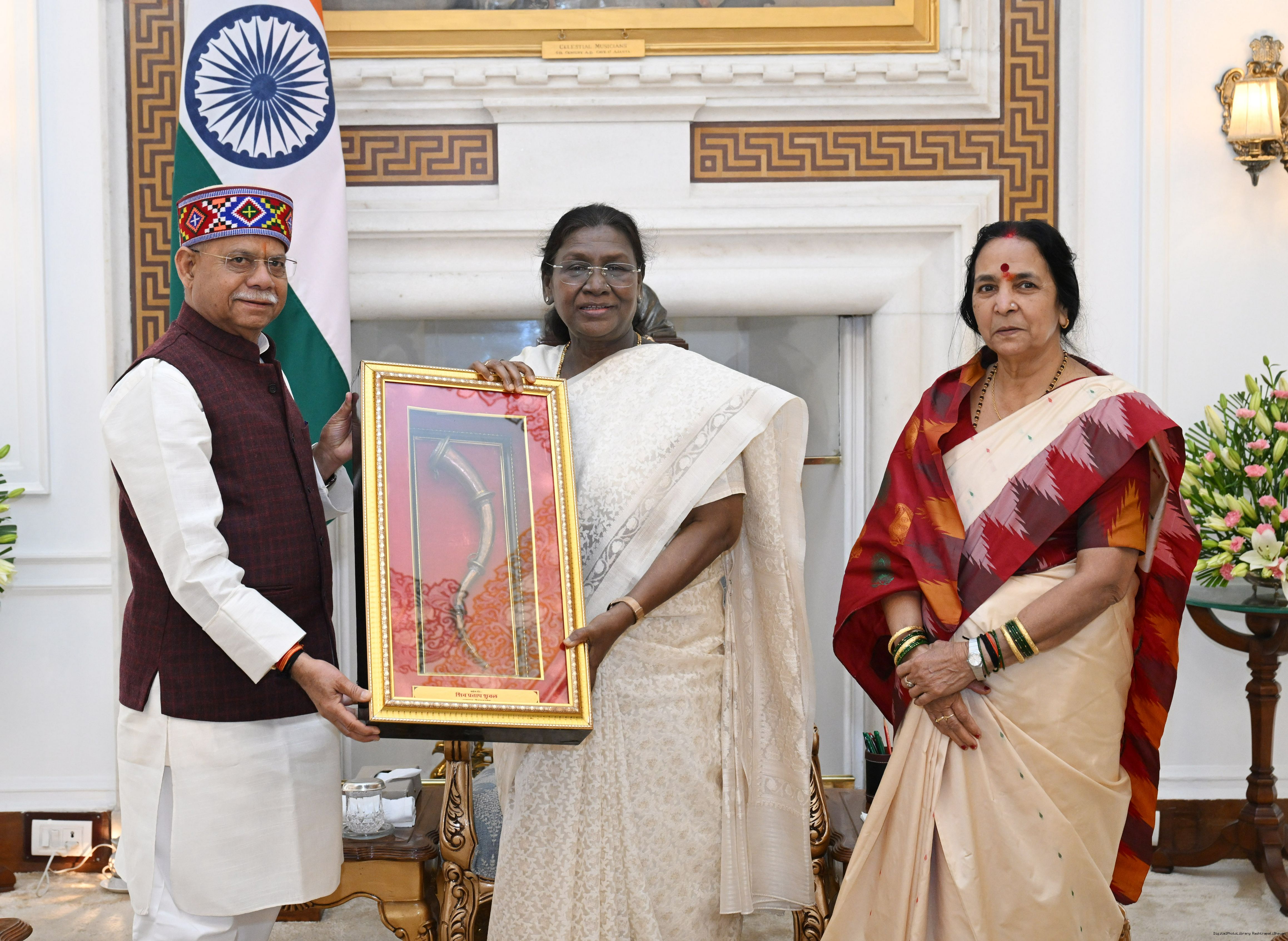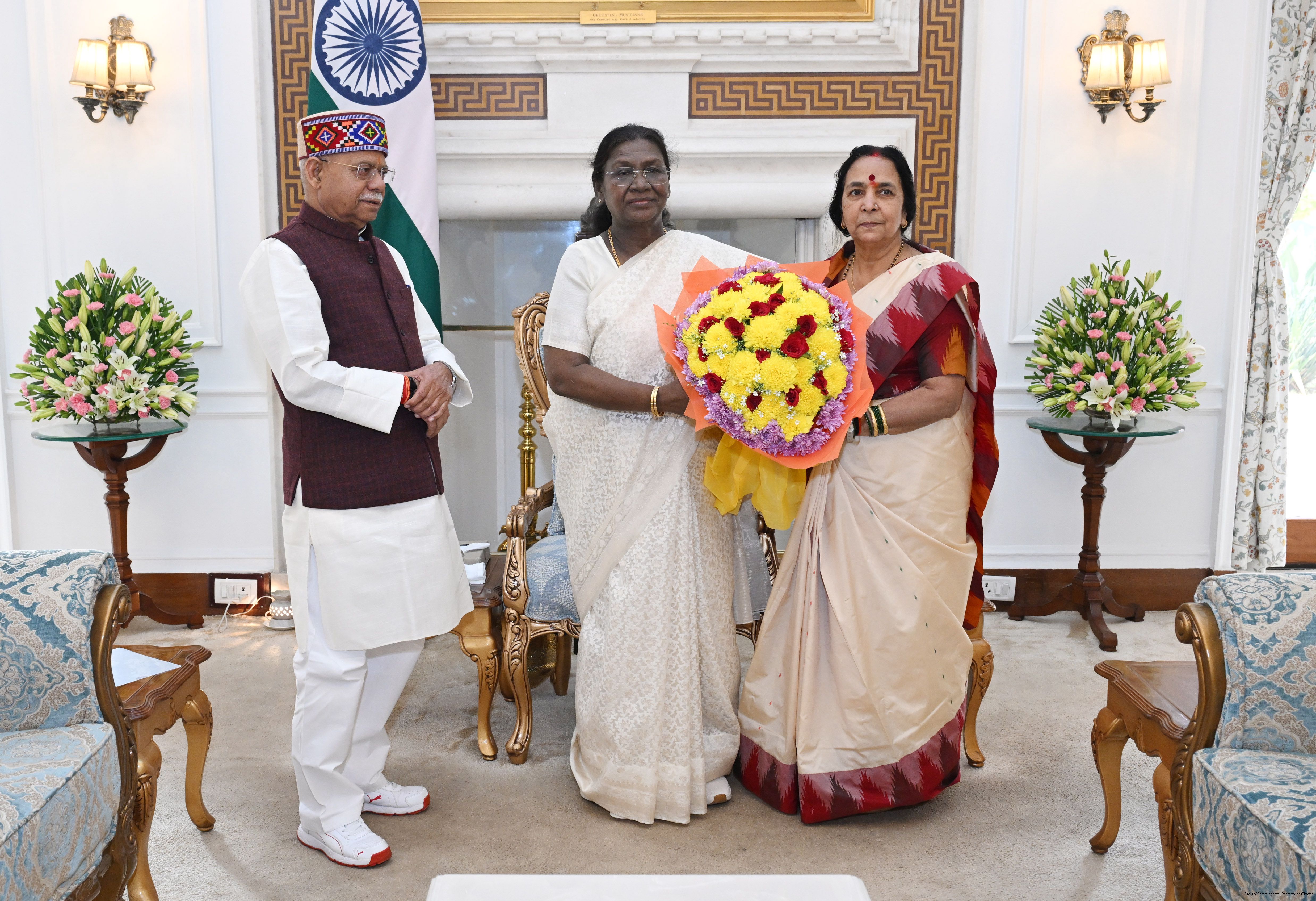| Caption: | Shri Shiv Pratap Shukla, Governor of Himachal Pradesh, along with his wife, called on the President of India, Smt. Droupadi Murmu at Rashtrapati Bhavan on December 2, 2025. |