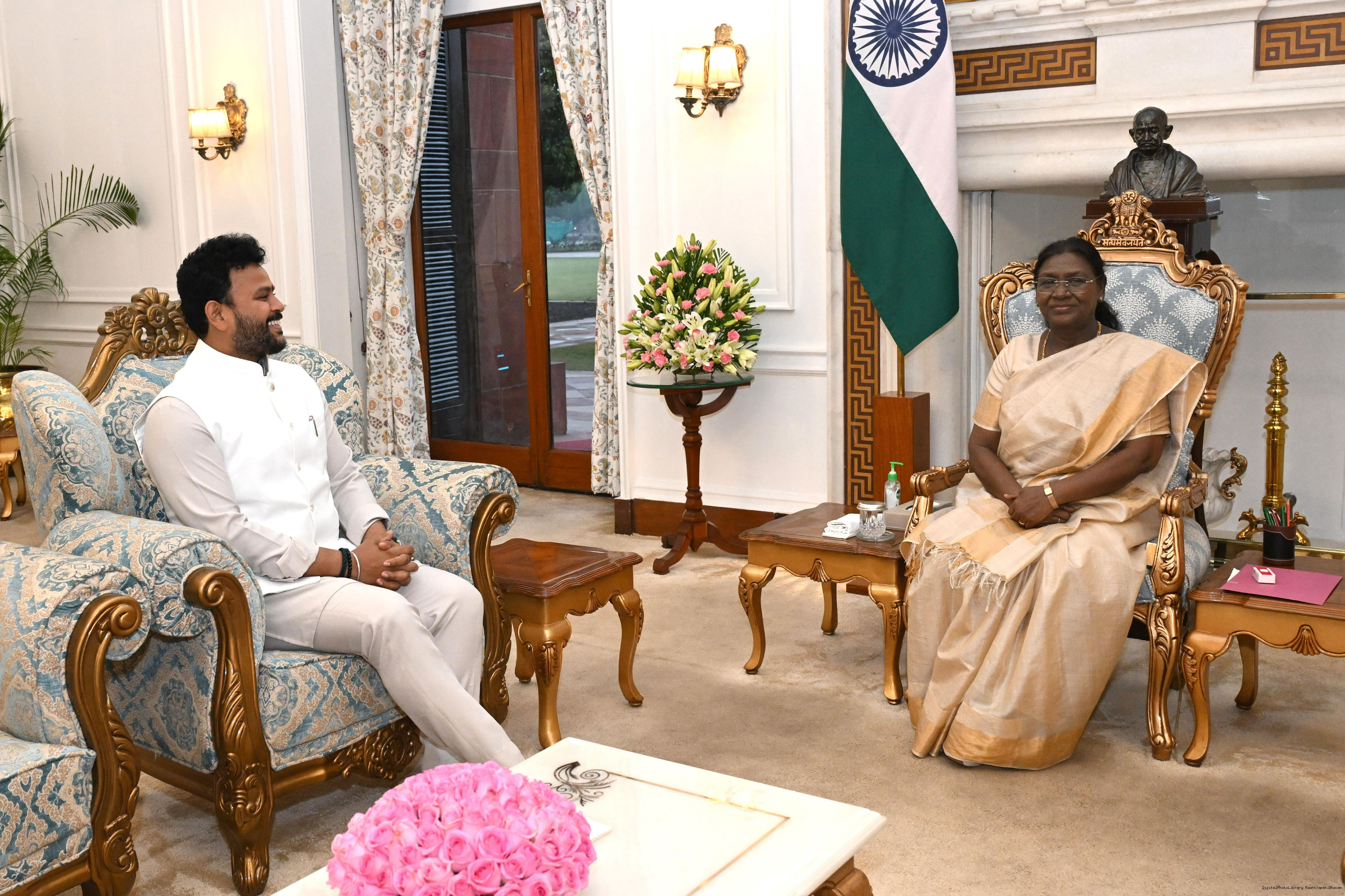 | Caption: | Shri Kinjarapu Rammohan Naidu, Minister of Civil Aviation, GoI meeting with the President of India, Smt. Droupadi Murmu at Rashtrapati Bhavan on December 2, 2025. |