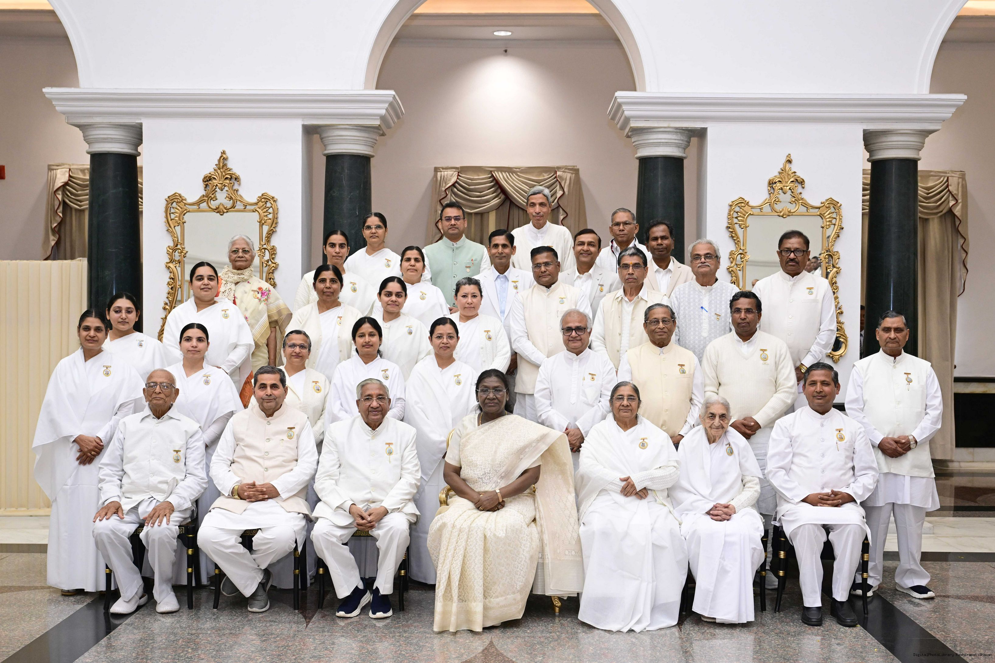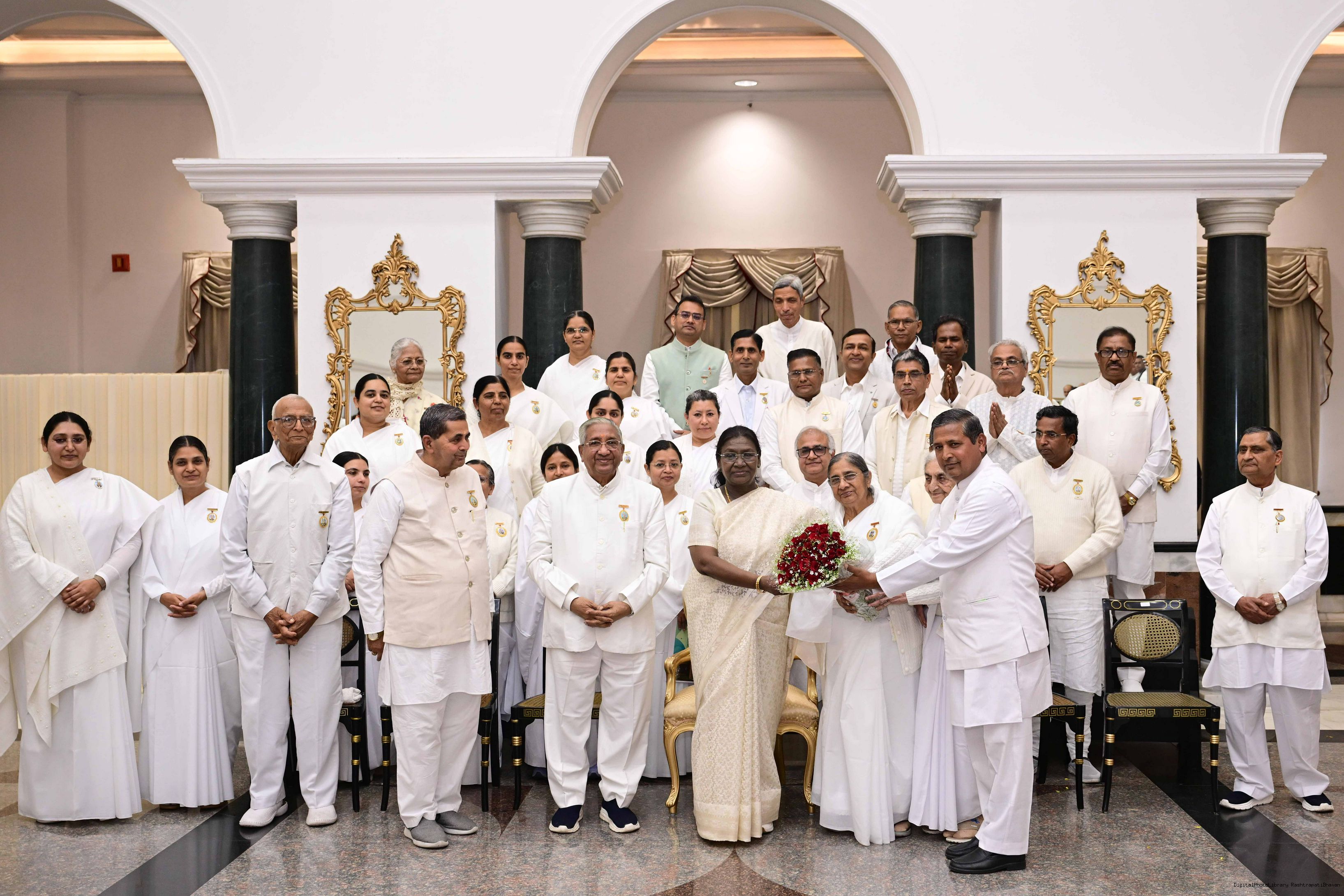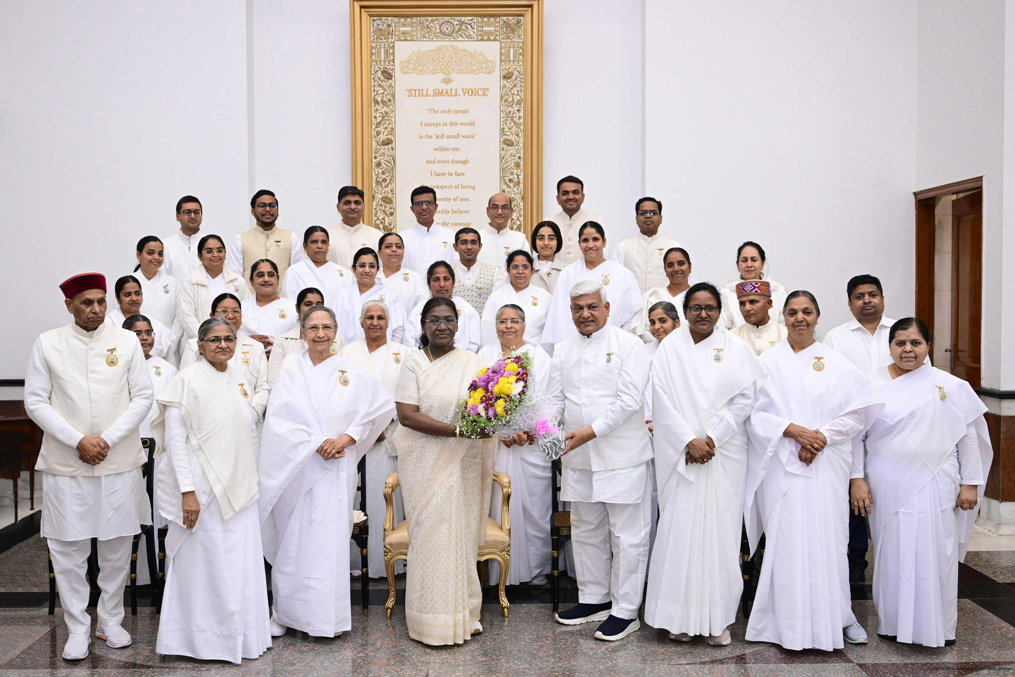 | Caption: | The President of India, Smt. Droupadi Murmu interacted and posing a group photograph with groups of Brahmkumaris at Rashtrapati Bhavan on December 2, 2025. |