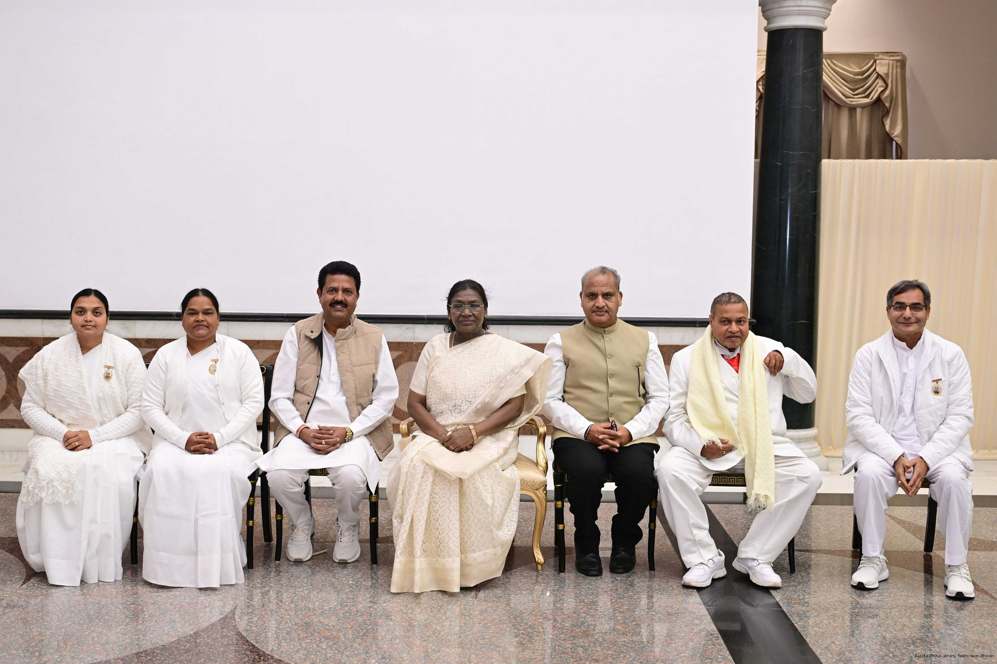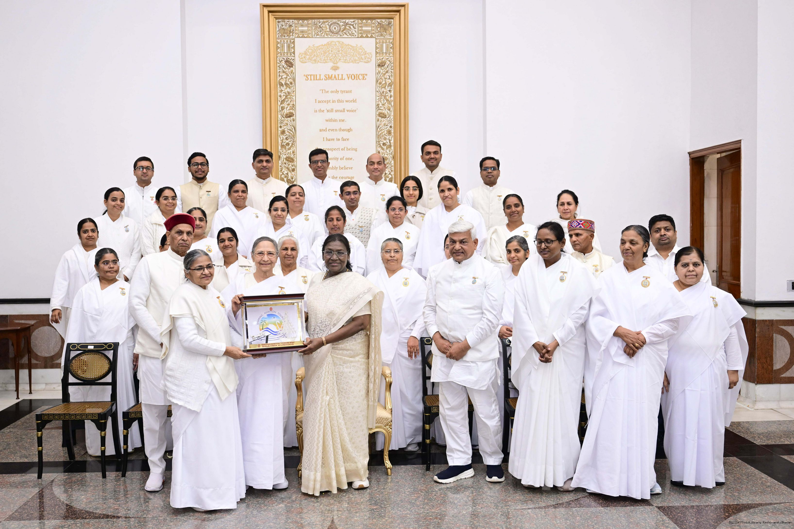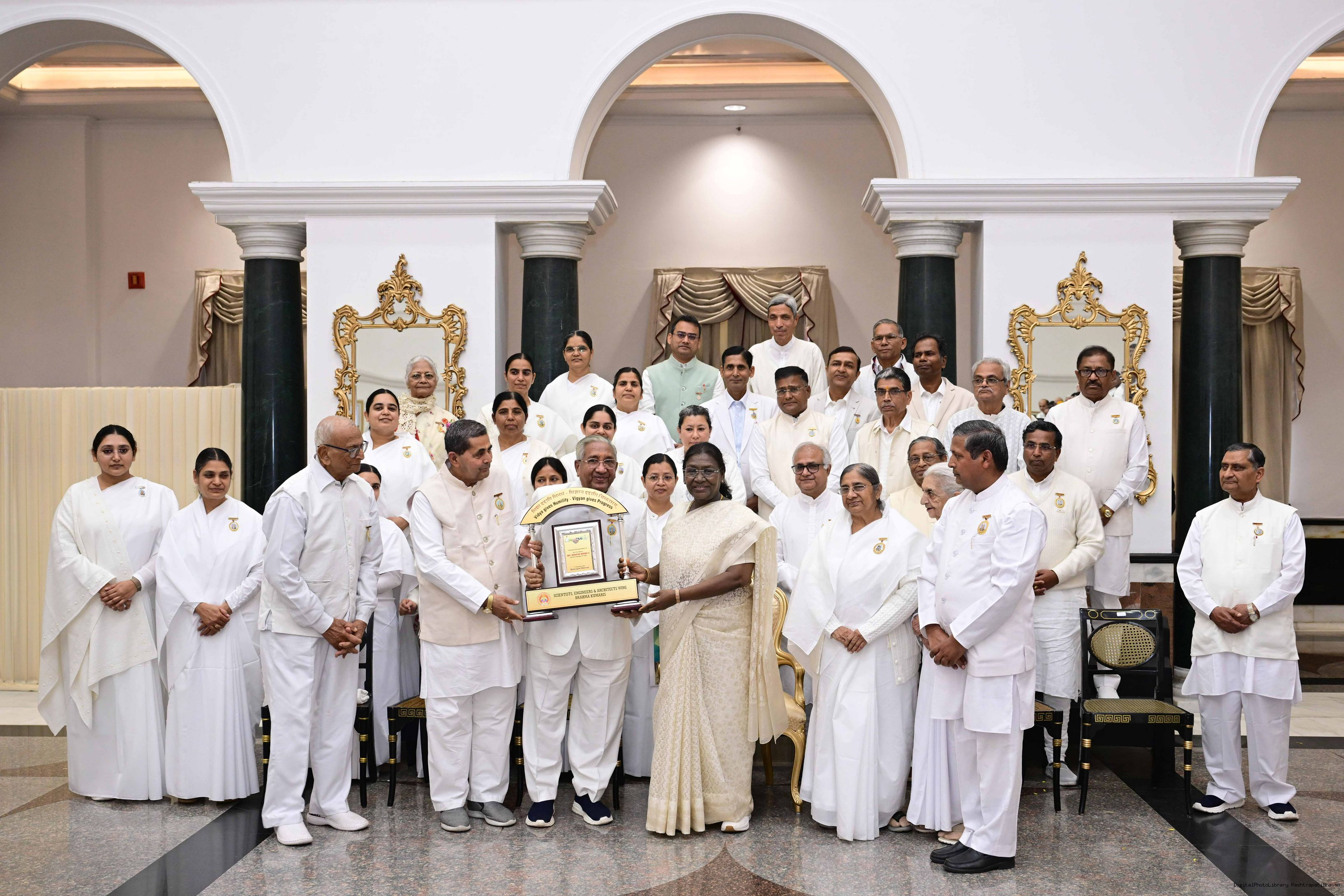 | Caption: | The President of India, Smt. Droupadi Murmu interacted and posing a group photograph with groups of Brahmkumaris at Rashtrapati Bhavan on December 2, 2025. |