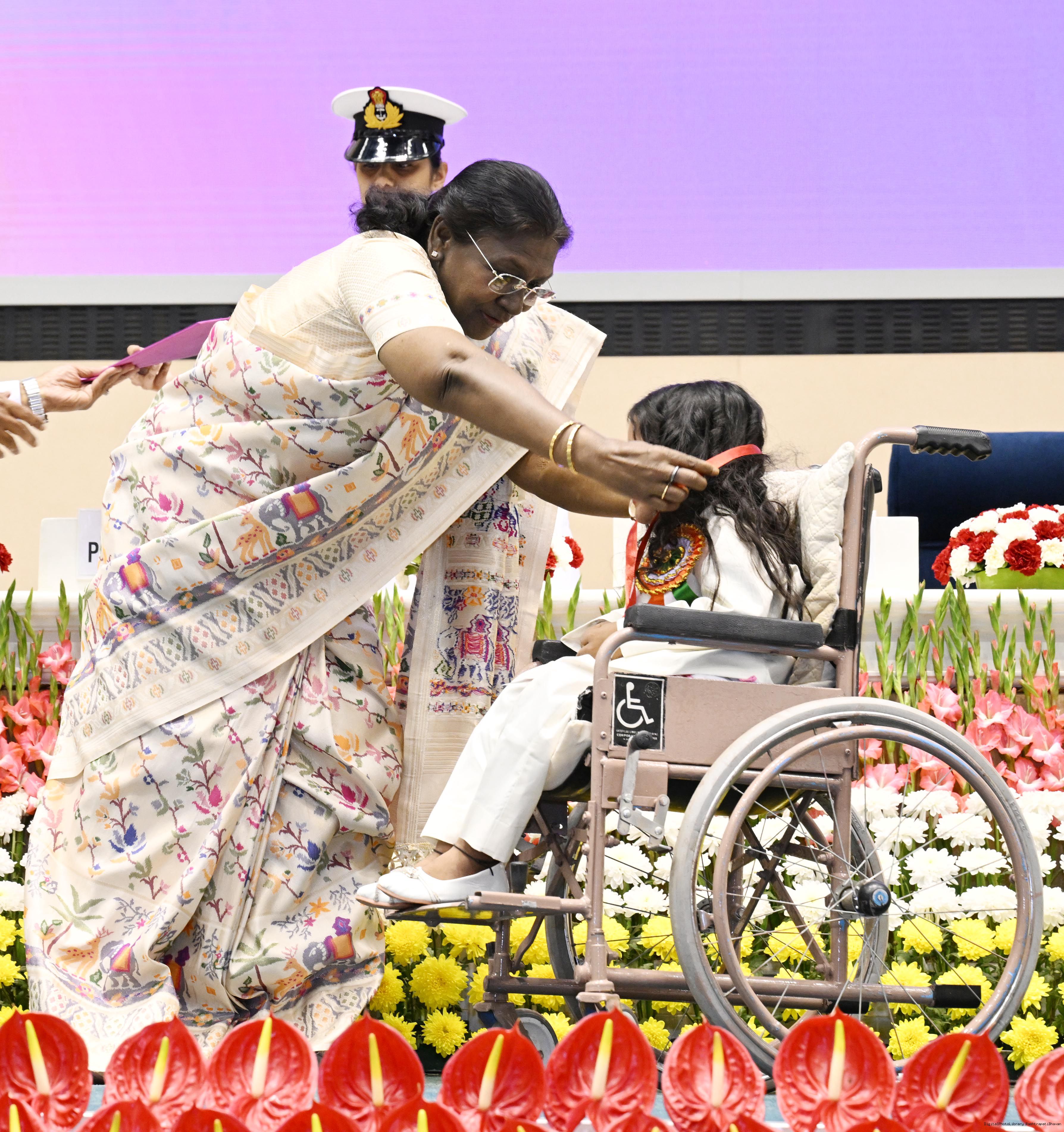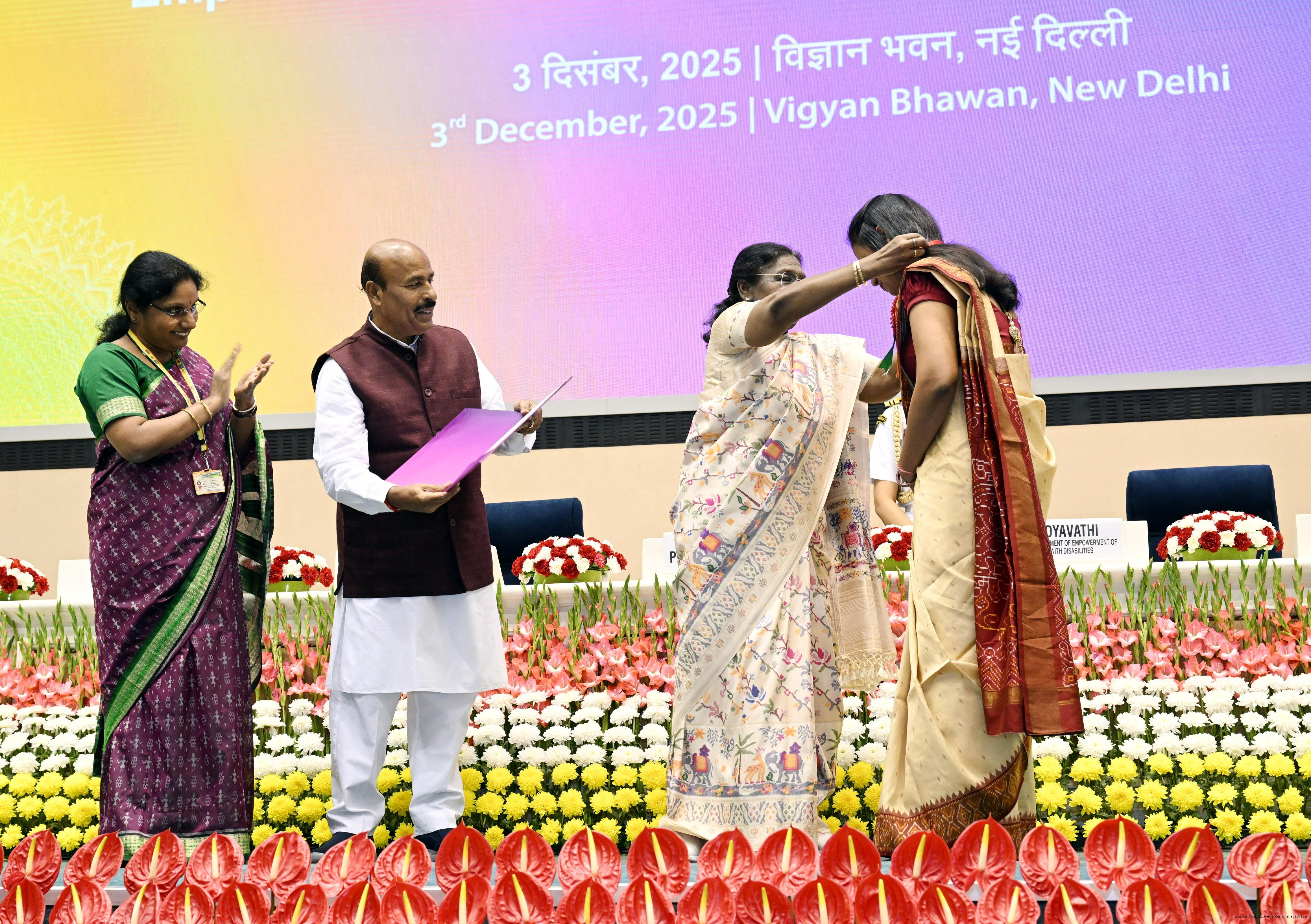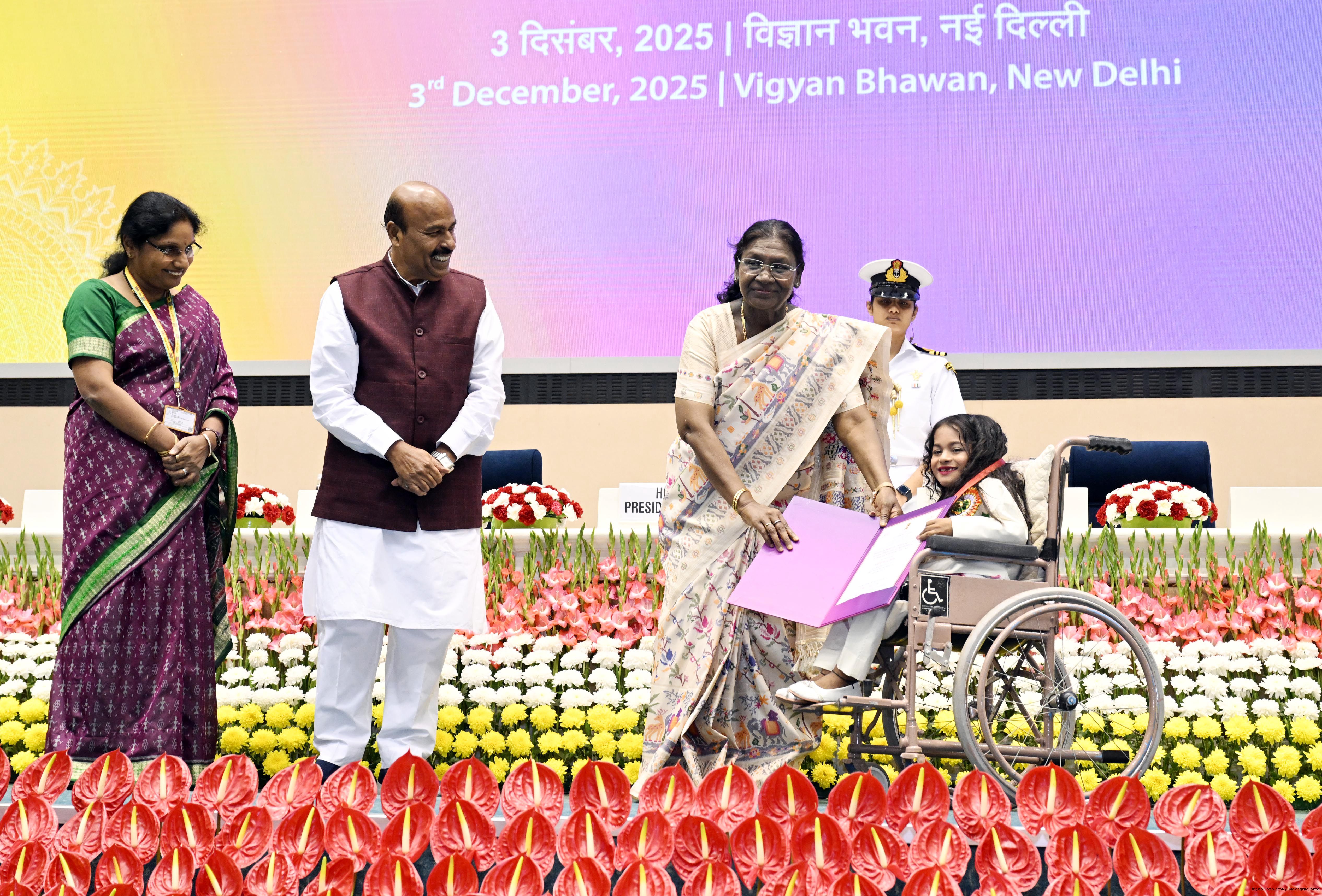 | Caption: | The President of India, Smt Droupadi Murmu, presented the National Awards for the Empowerment of Persons with Disabilities for the year 2025 in New Delhi on December 3, 2025 on the occasion of the International Day of Persons with Disabilities. |