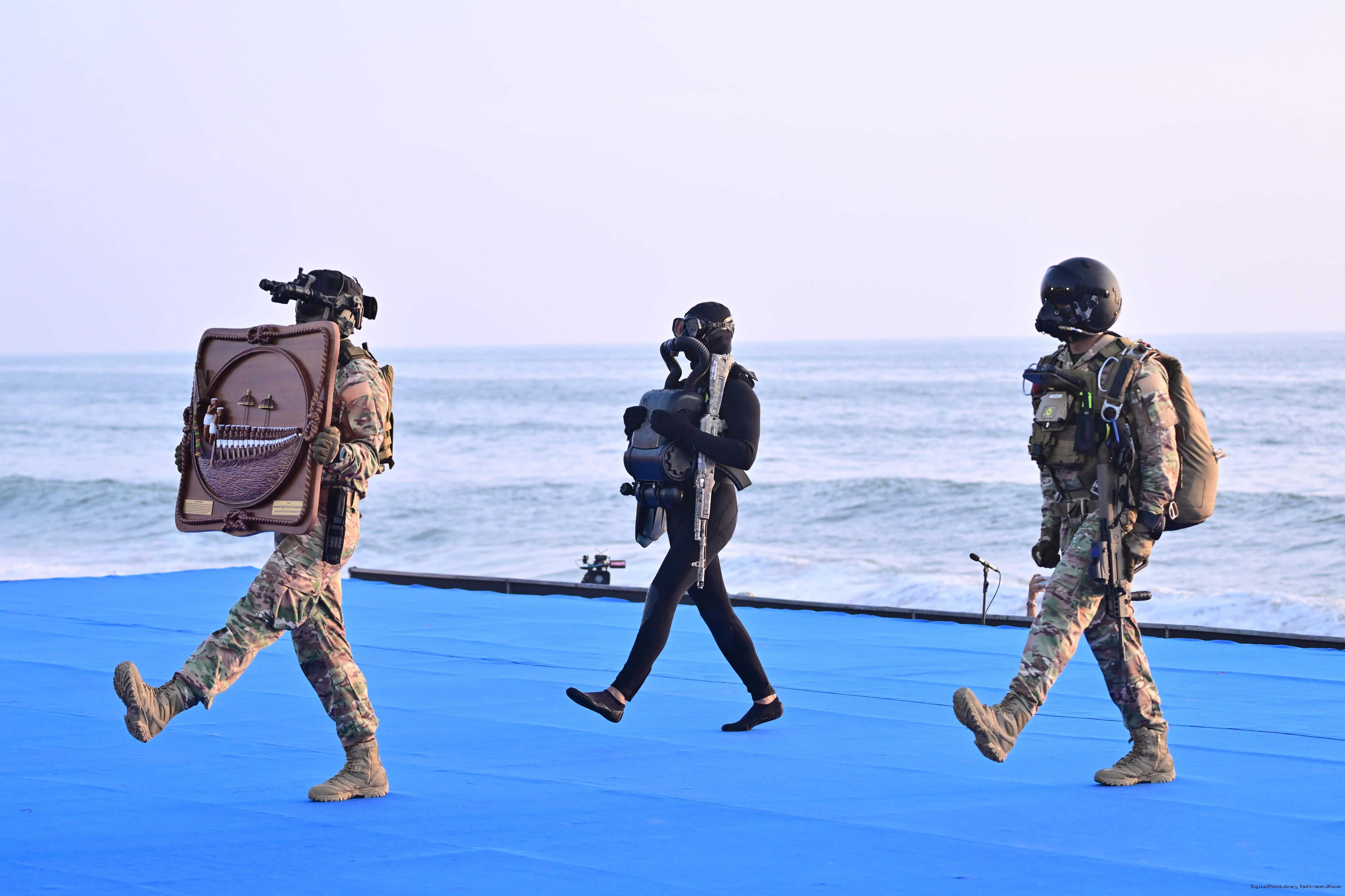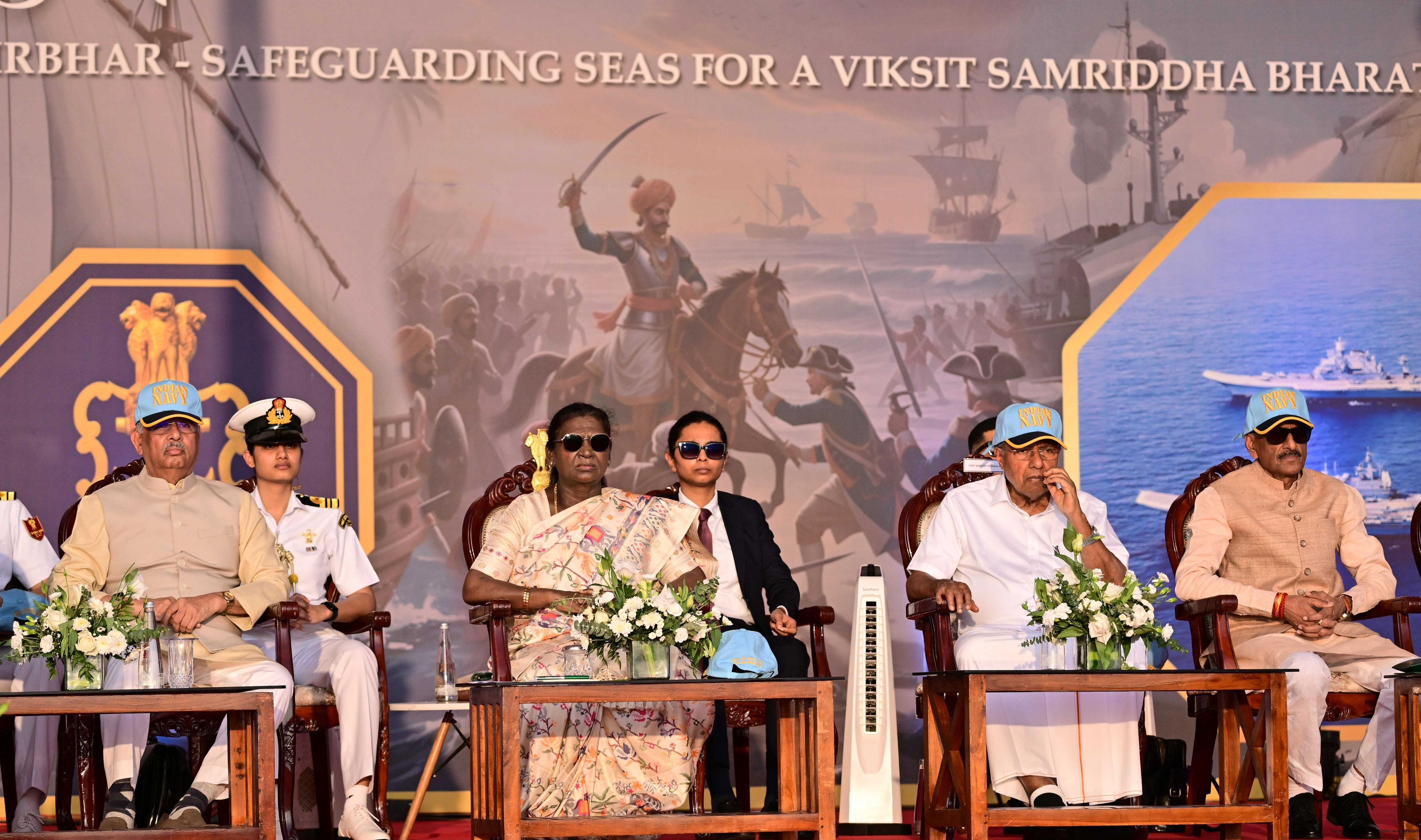 | Caption: | The President of India, Smt Droupadi Murmu, graced the Navy Day-2025 celebrations and witnessed the operational demonstration by the Indian Navy at Thiruvananthapuram, Kerala, on December 3, 2025. |