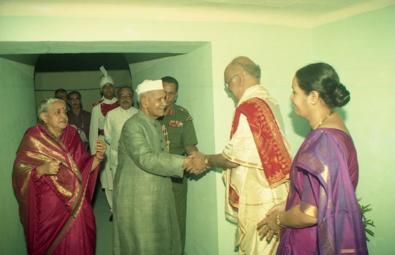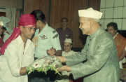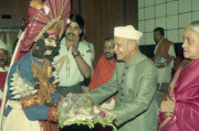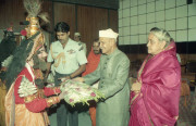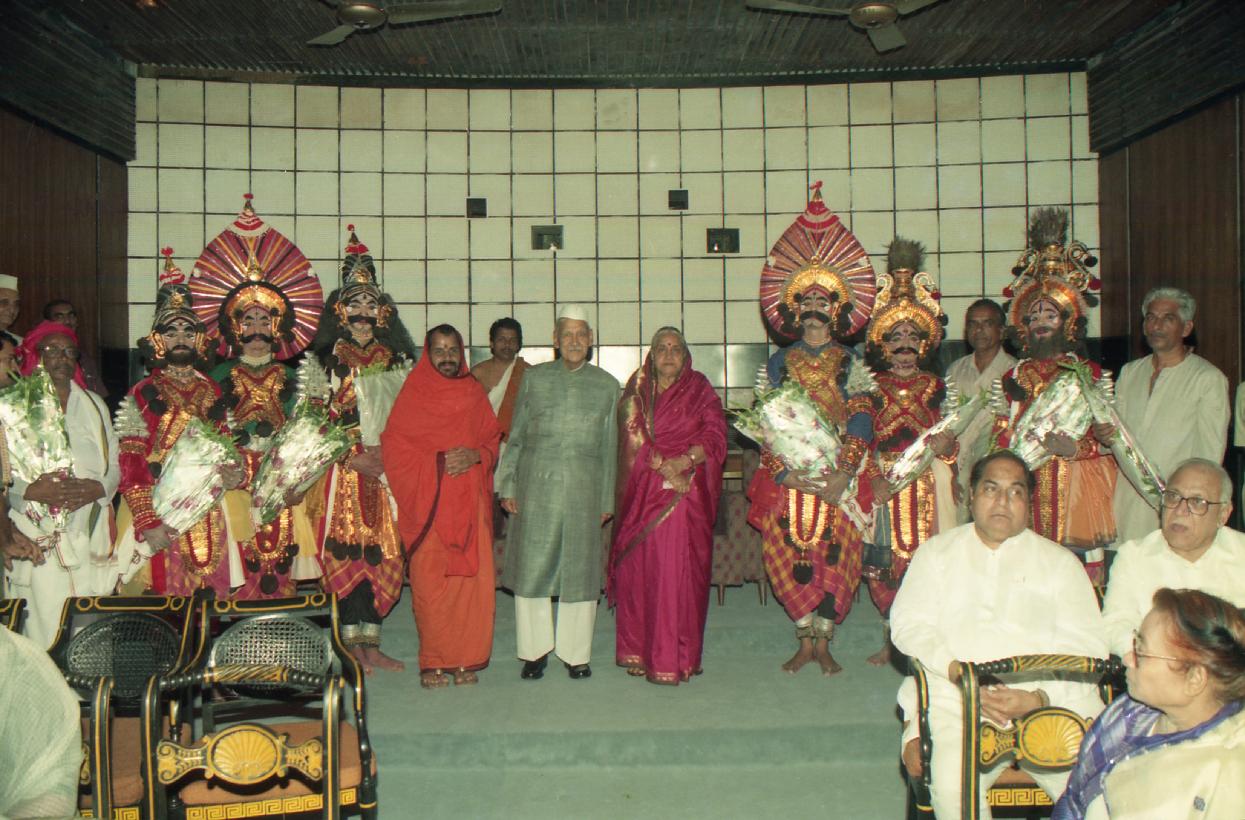 | Caption: | The President of India, Dr. Shankar Dayal Sharma felicitating Puthige Math Troupe from Udupi, who performed Yakshagana, at Rashtrapati Bhavan in New Delhi on September 24, 1996. |