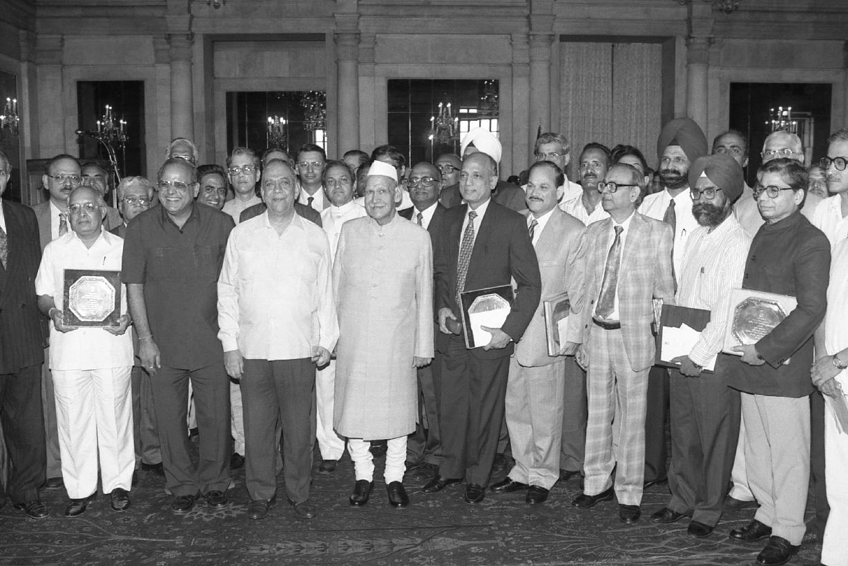 | Caption: | The President of India, Dr. Shankar Dayal Sharma presenting Indira Gandhi Rajbhasha Awards of Ministry of Home Affairs at Rashtrapati Bhavan in New Delhi on September 14, 1996. |