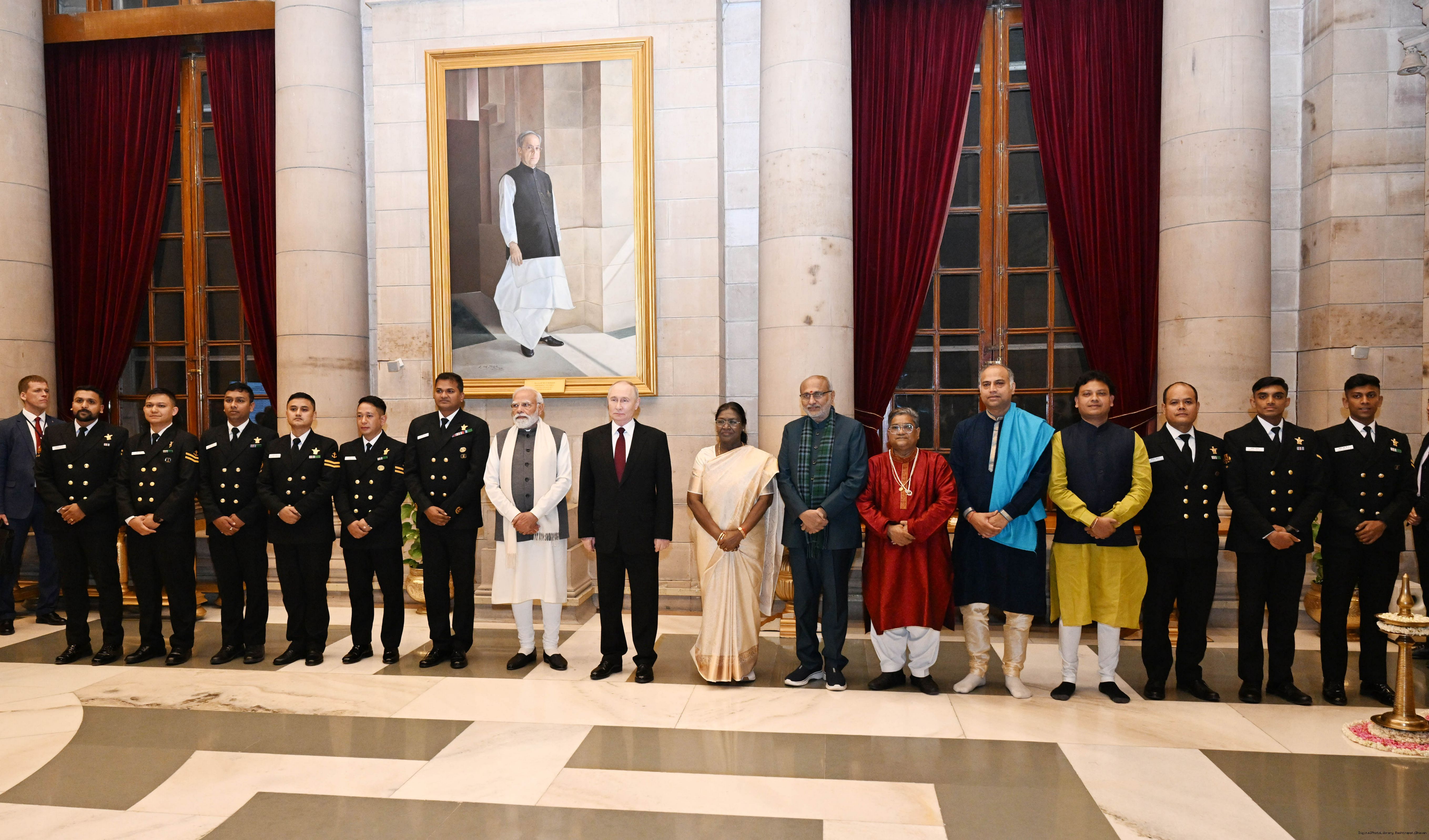 | Caption: | The President of India, Smt Droupadi Murmu hosted a banquet in the honour to H.E. Mr Vladimir Putin, President of the Russian Federation, at Rashtrapati Bhavan on December 05, 2025. |