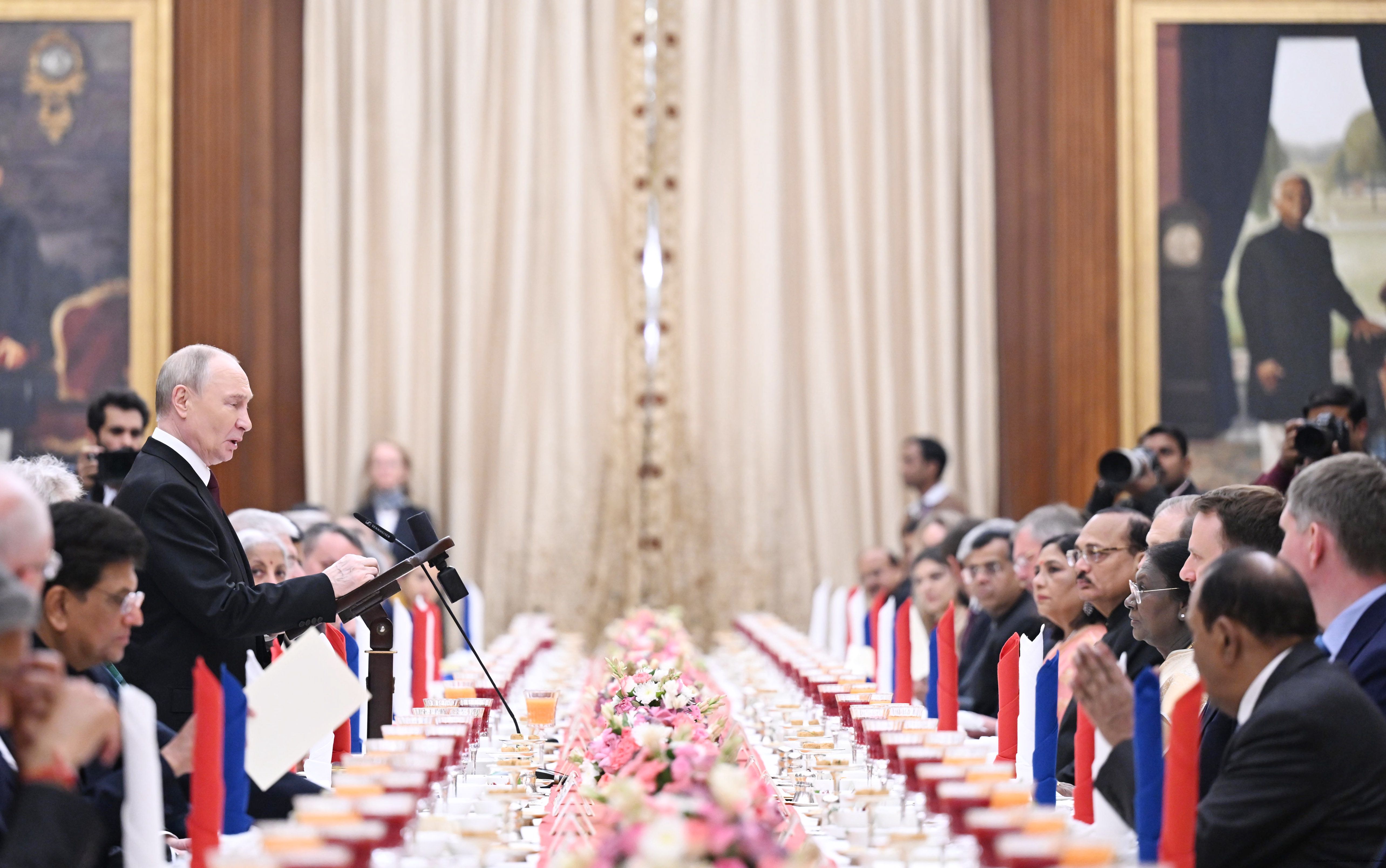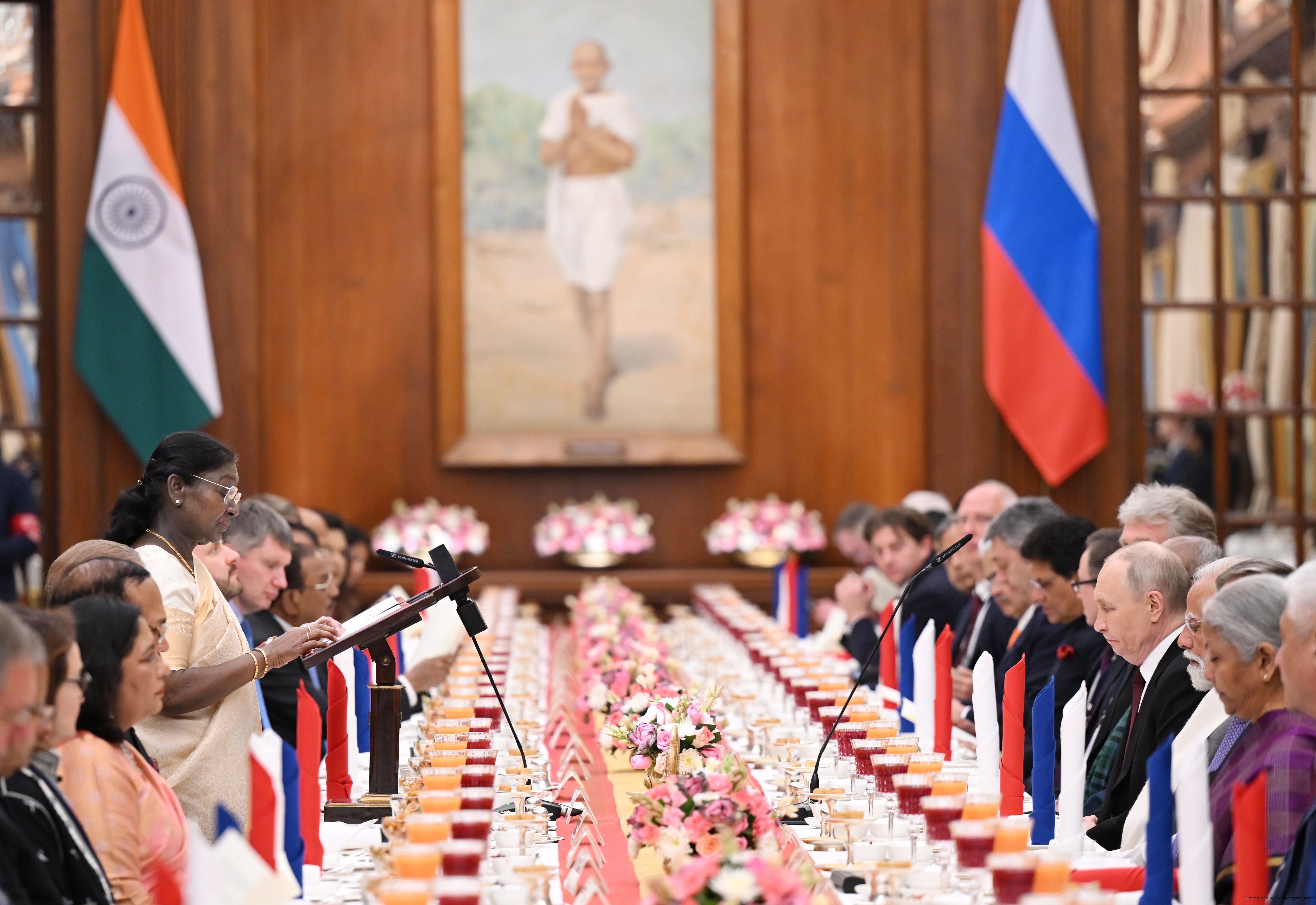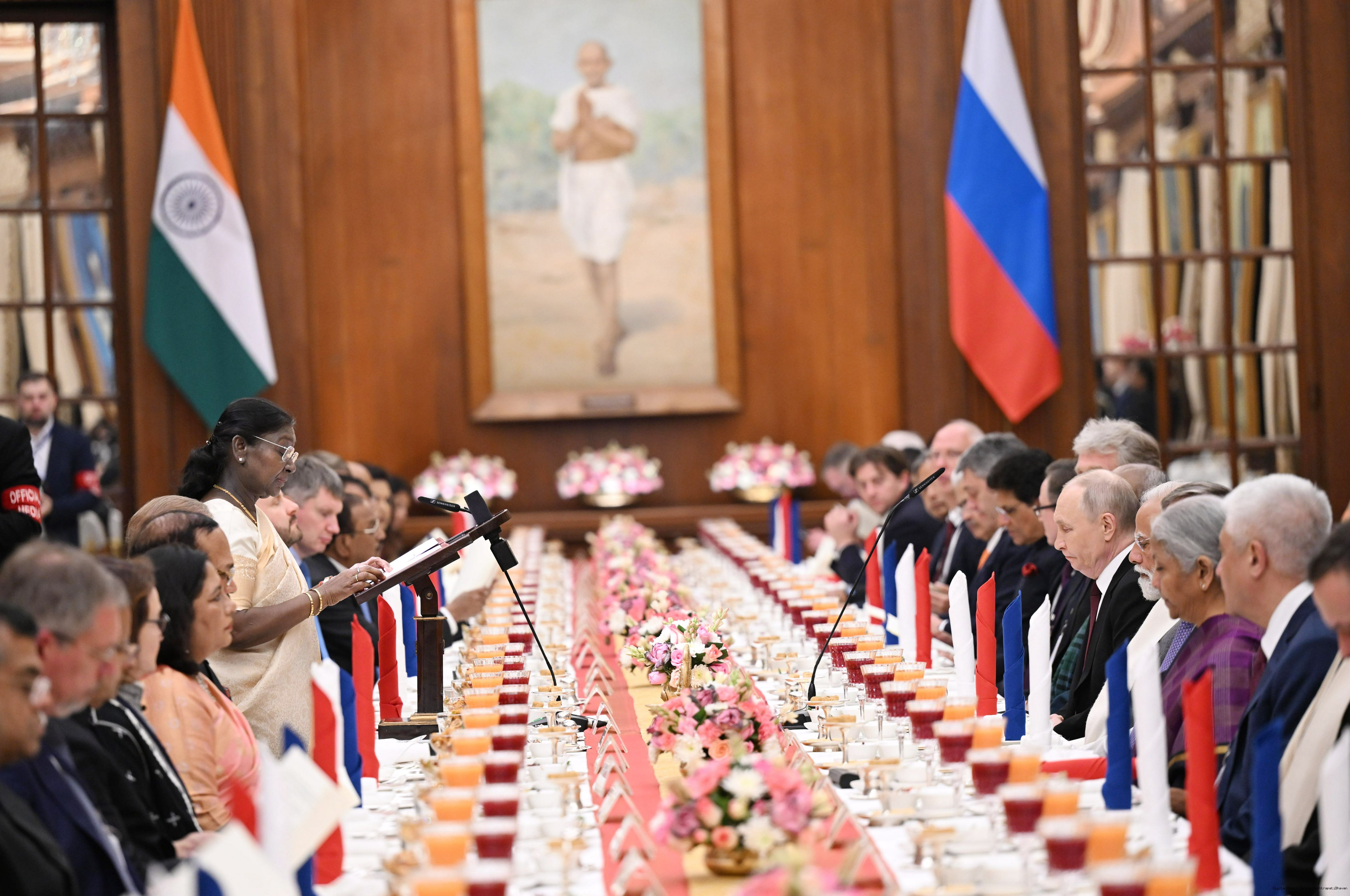 | Caption: | The President of India, Smt Droupadi Murmu hosted a banquet in the honour to H.E. Mr Vladimir Putin, President of the Russian Federation, at Rashtrapati Bhavan on December 05, 2025. |