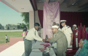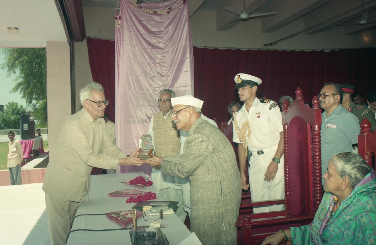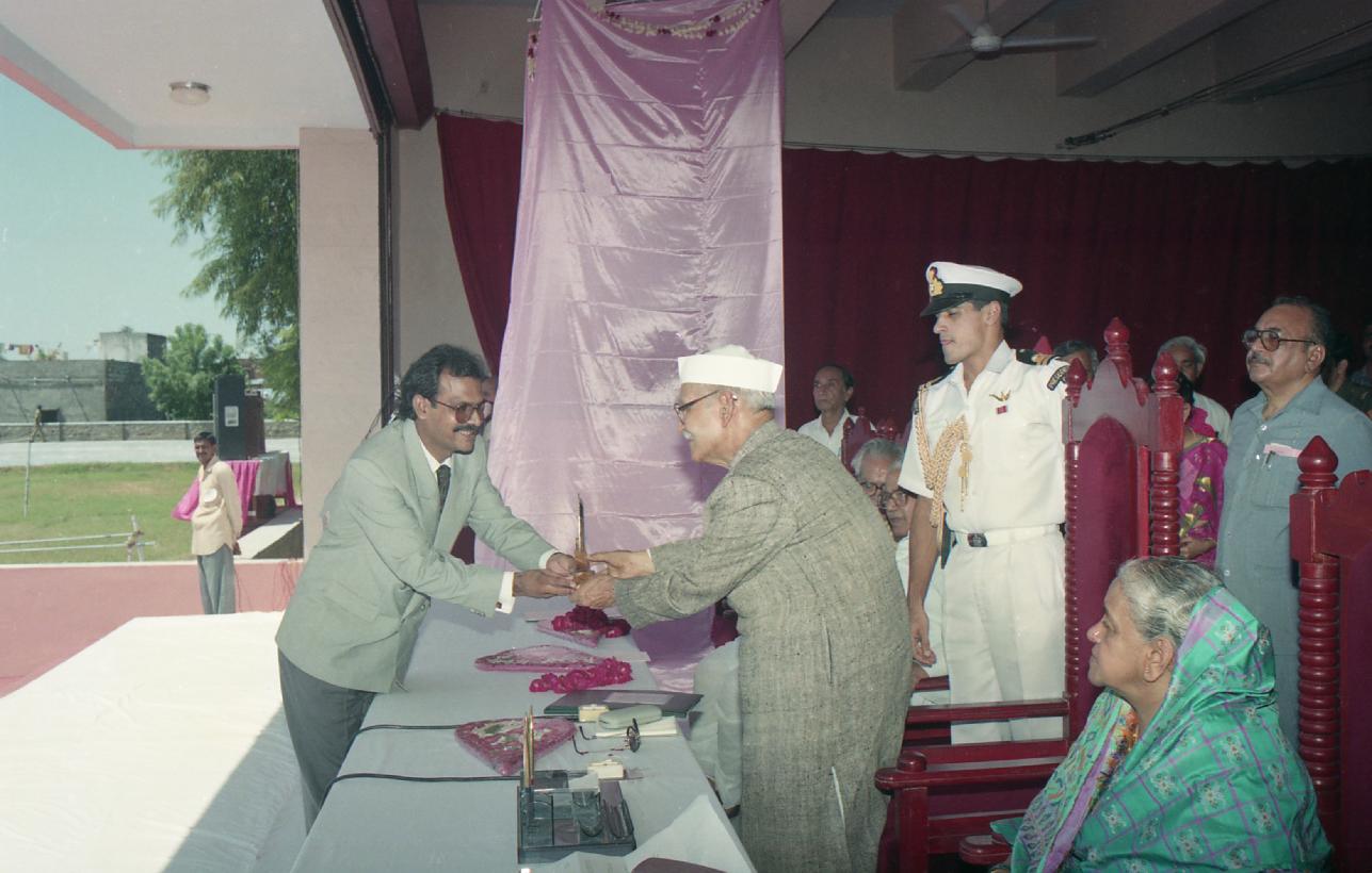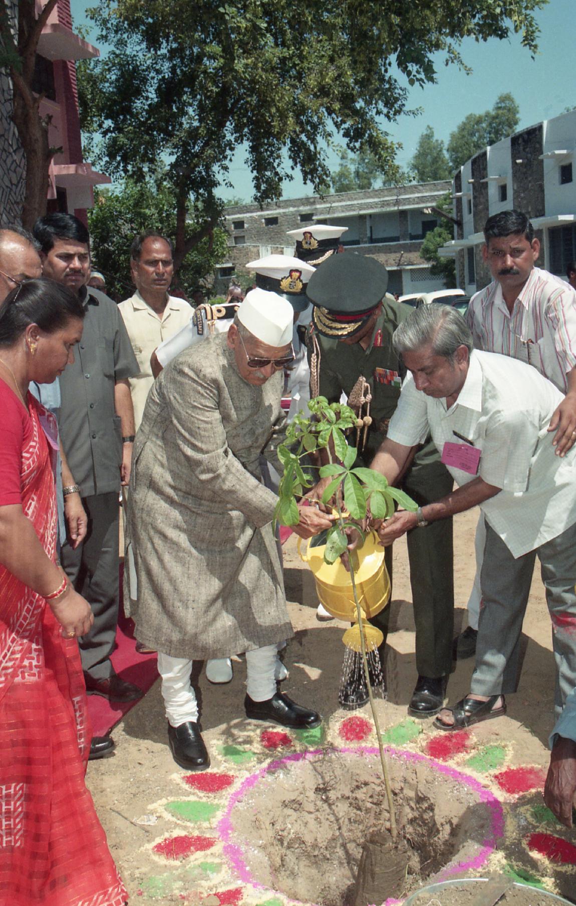 | Caption: | The President of India, Dr. Shankar Dayal Sharma presenting mementoes to prominent persons and planting a sapling, during the inauguration of newly constructed Sports Stadium of Bal Hitkari Samiti, Kota in Rajasthan on September 25, 1996. |