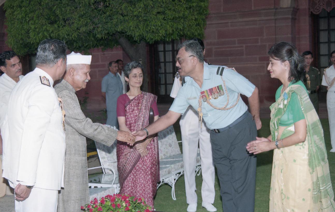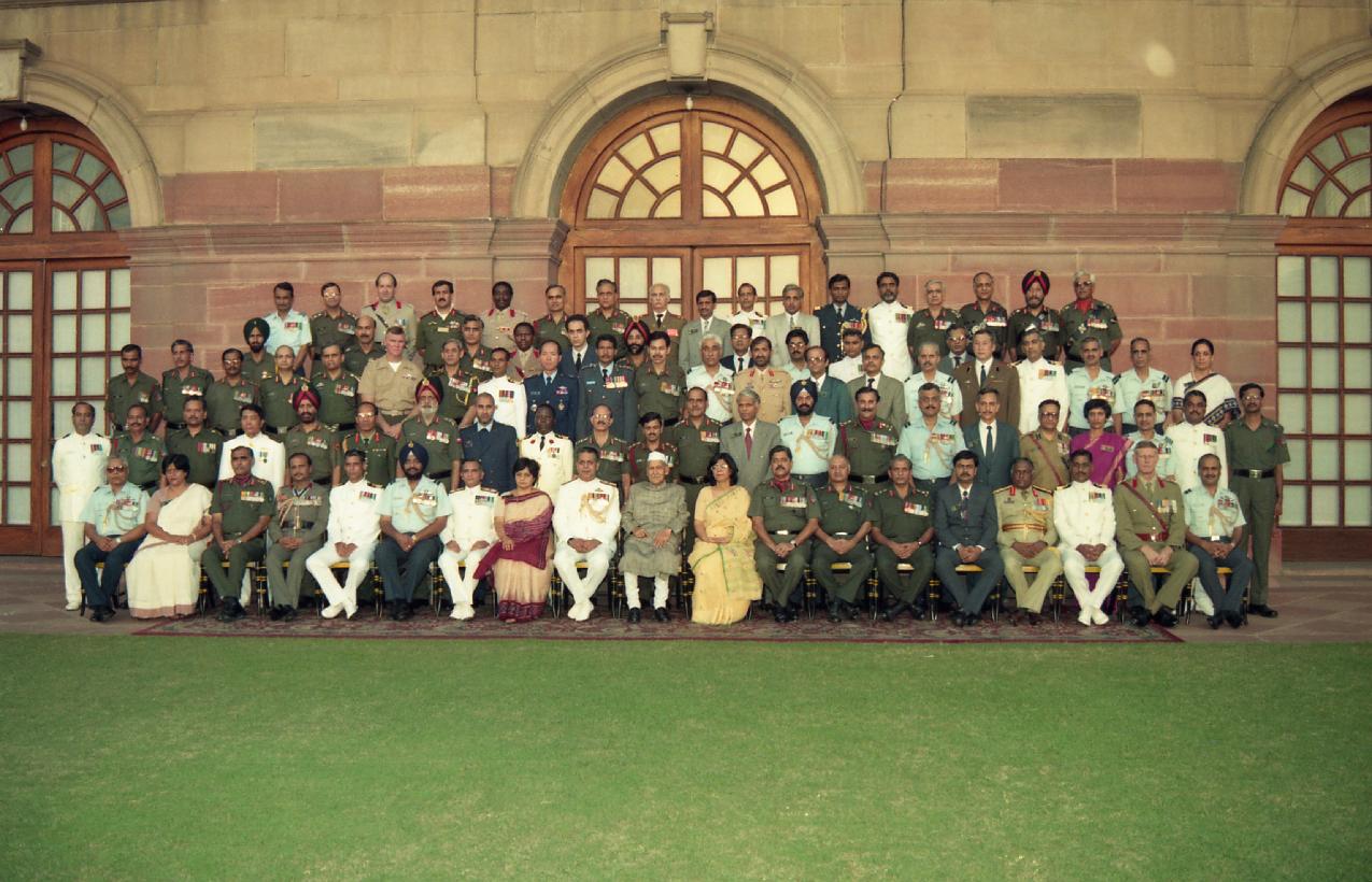 | Caption: | The President of India, Dr. Shankar Dayal Sharma meeting with the National Defence College faculty, Staff, 36th Course Members alongwith their spouses at Rashtrapati Bhavan in New Delhi on September 17, 1996. |