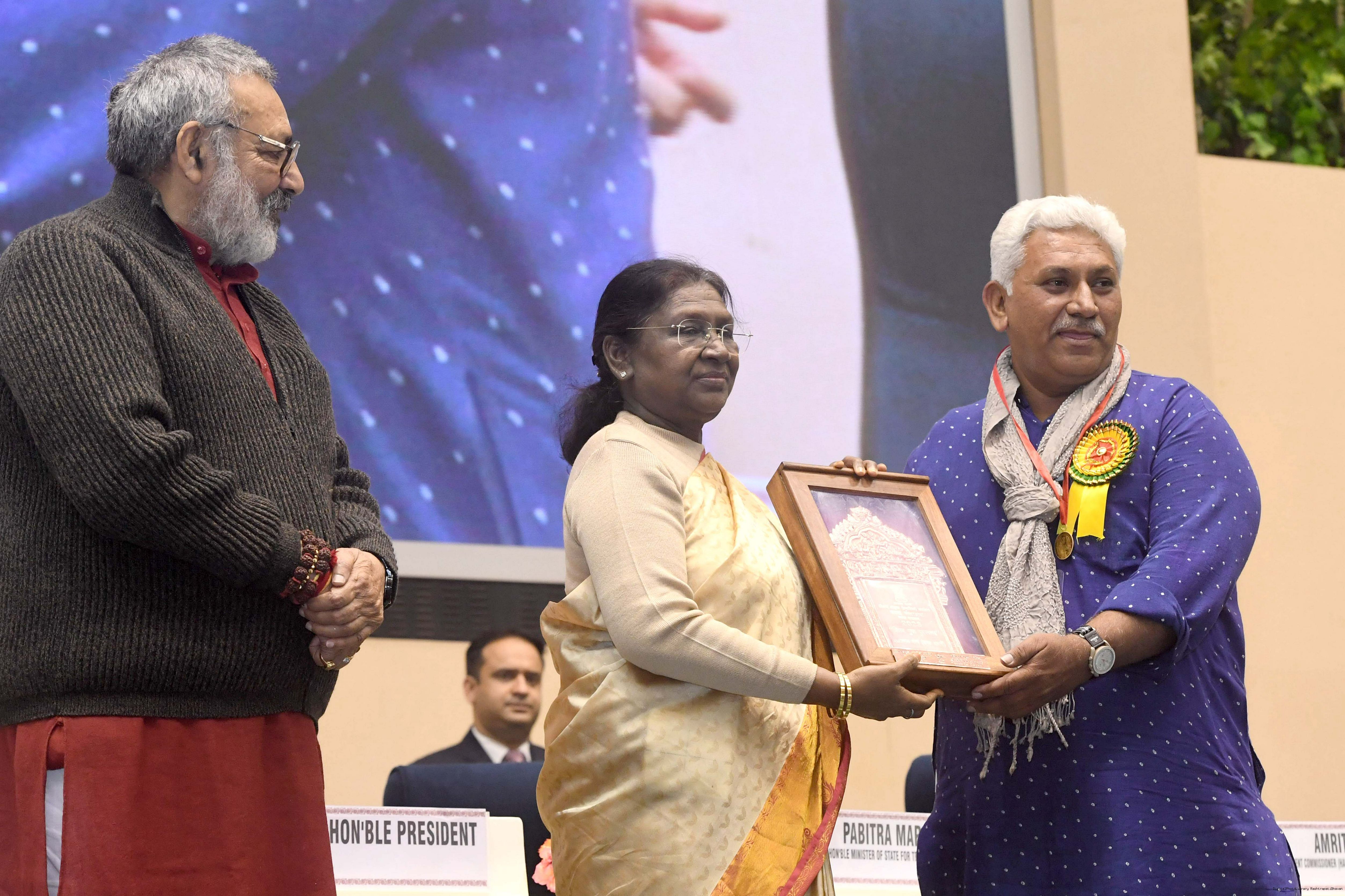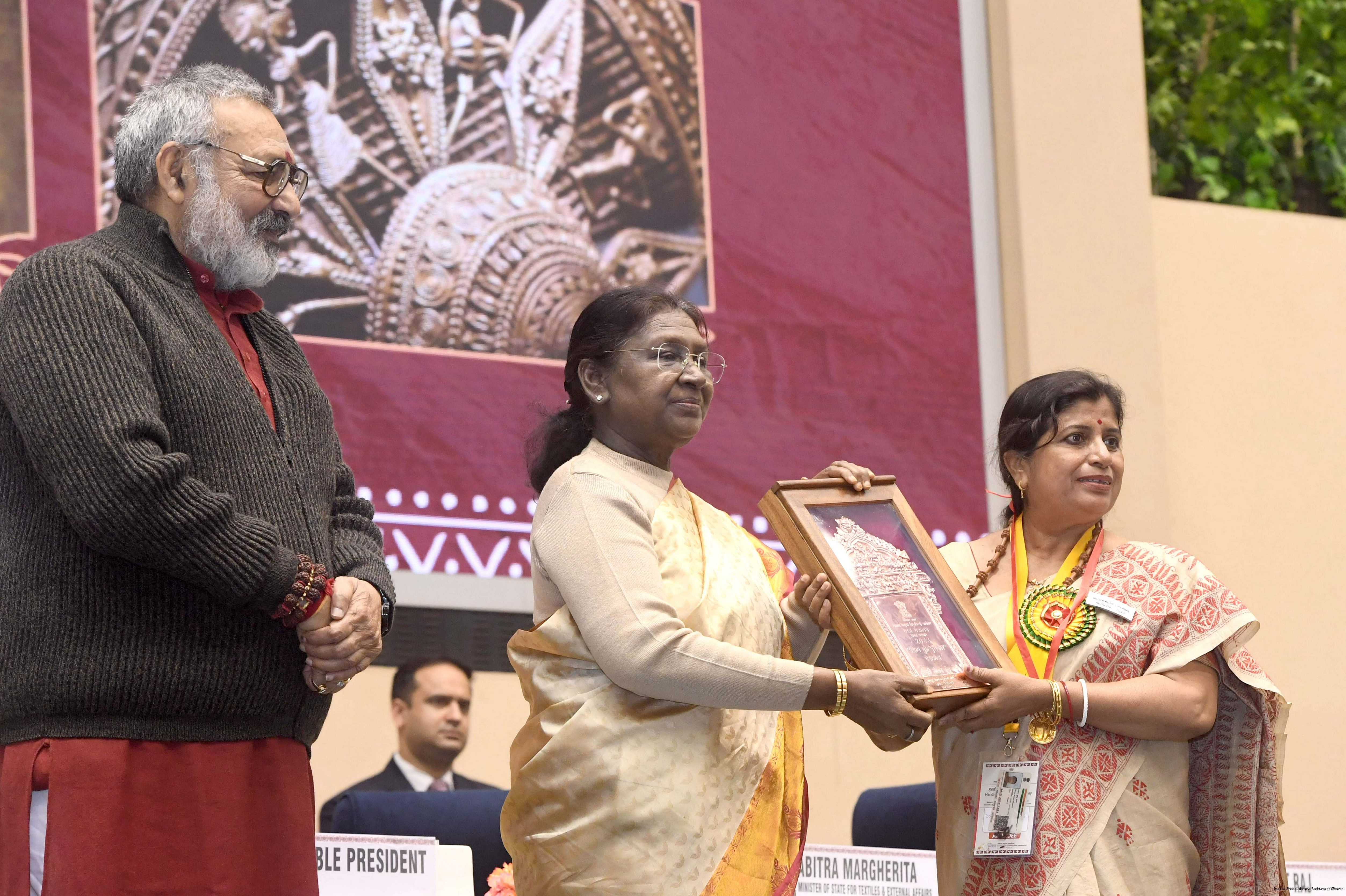 | Caption: | The President of India, Smt Droupadi Murmu, presented National Handicrafts Awards for the years 2023 and 2024 in New Delhi on December 9, 2025. |