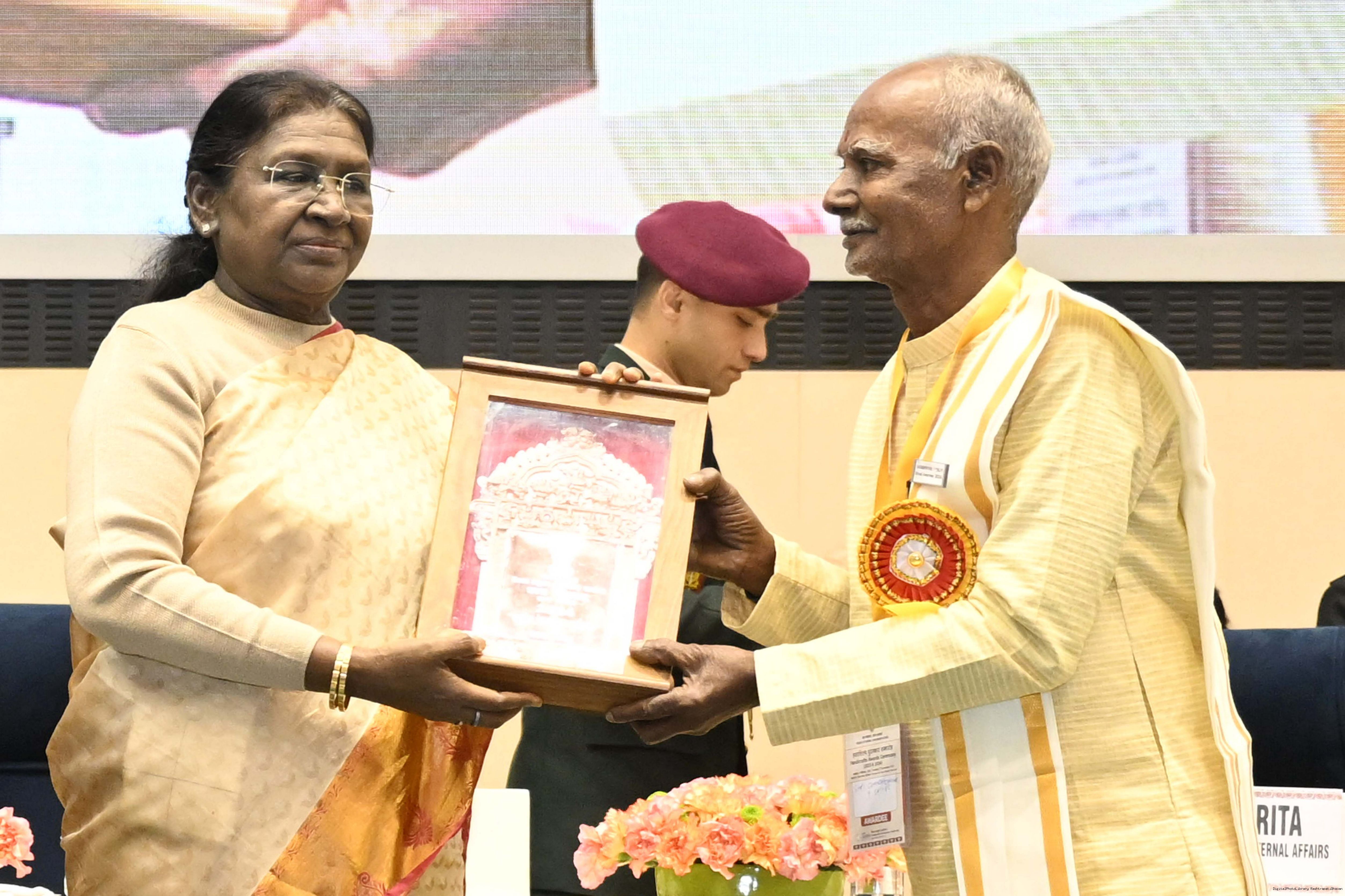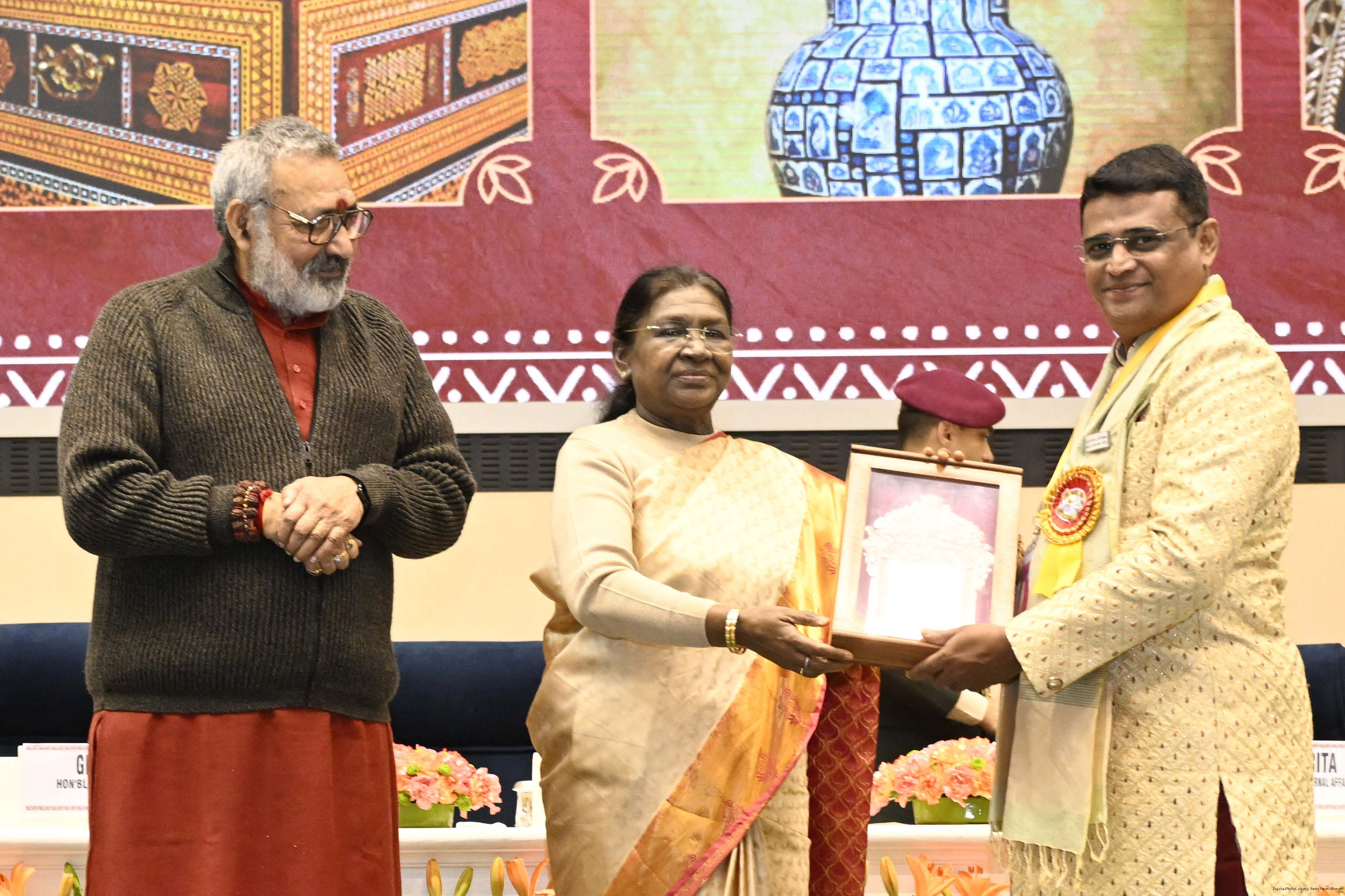 | Caption: | The President of India, Smt Droupadi Murmu, presented National Handicrafts Awards for the years 2023 and 2024 in New Delhi on December 9, 2025. |