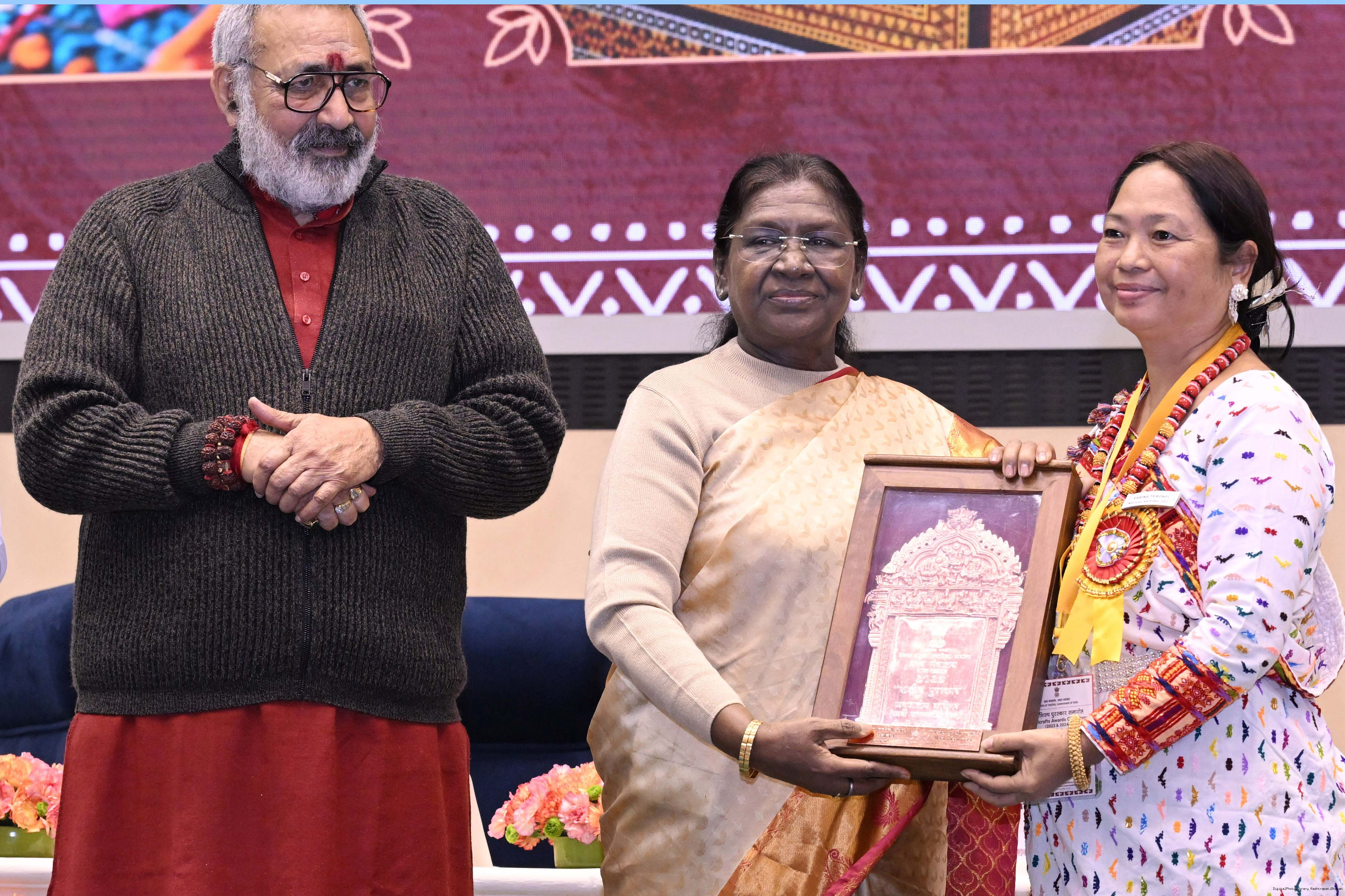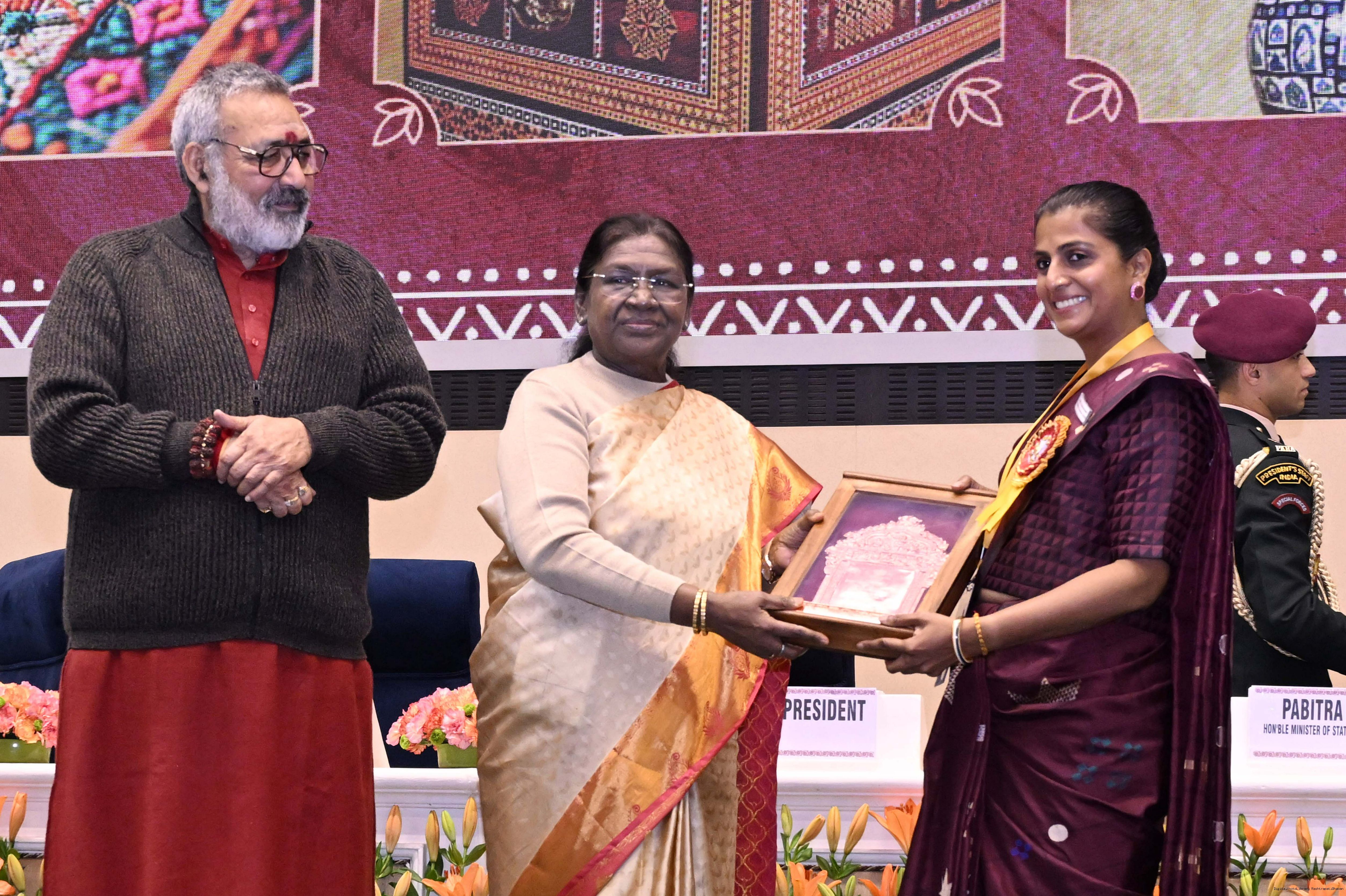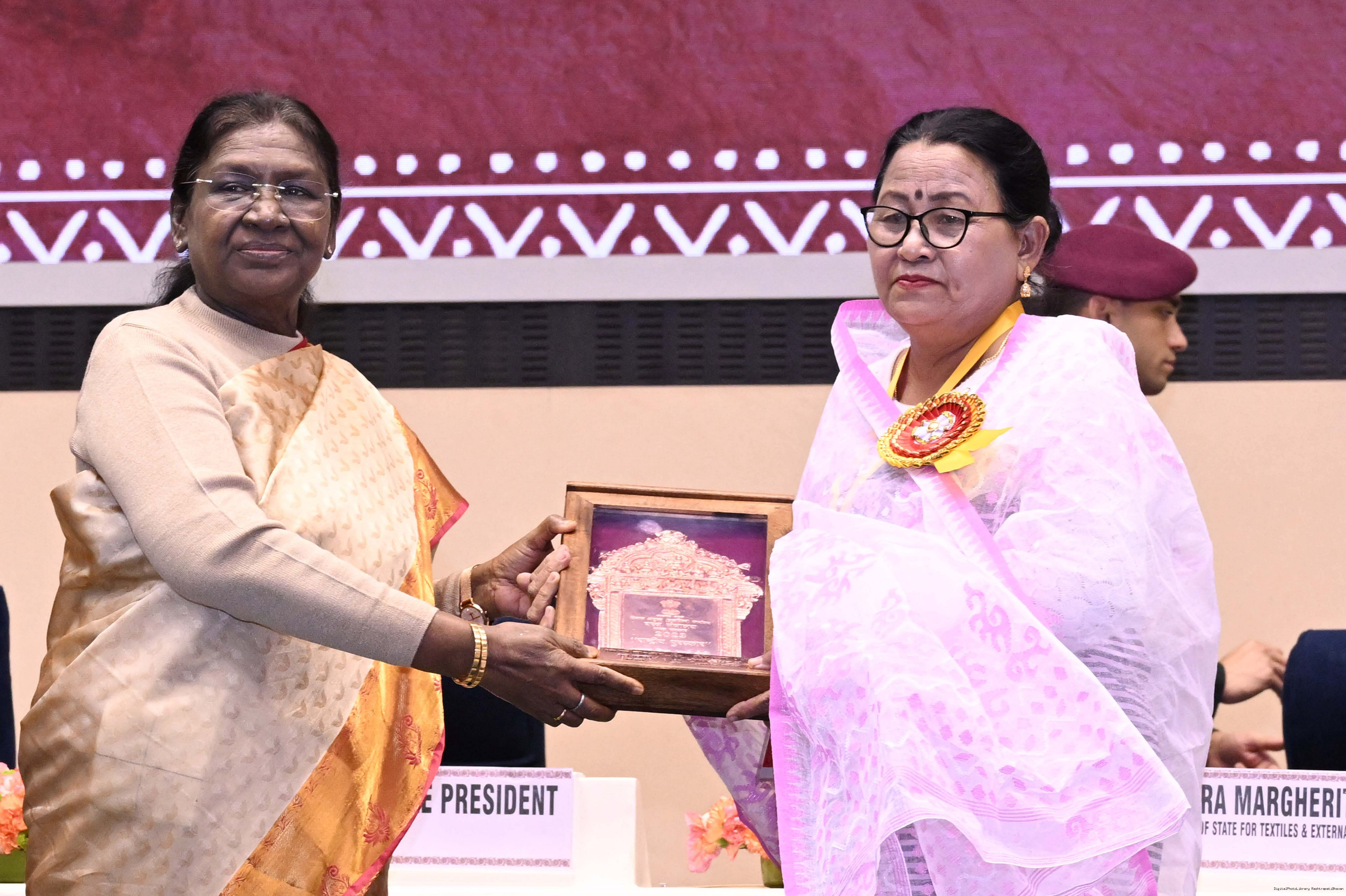 | Caption: | The President of India, Smt Droupadi Murmu, presented National Handicrafts Awards for the years 2023 and 2024 in New Delhi on December 9, 2025. |