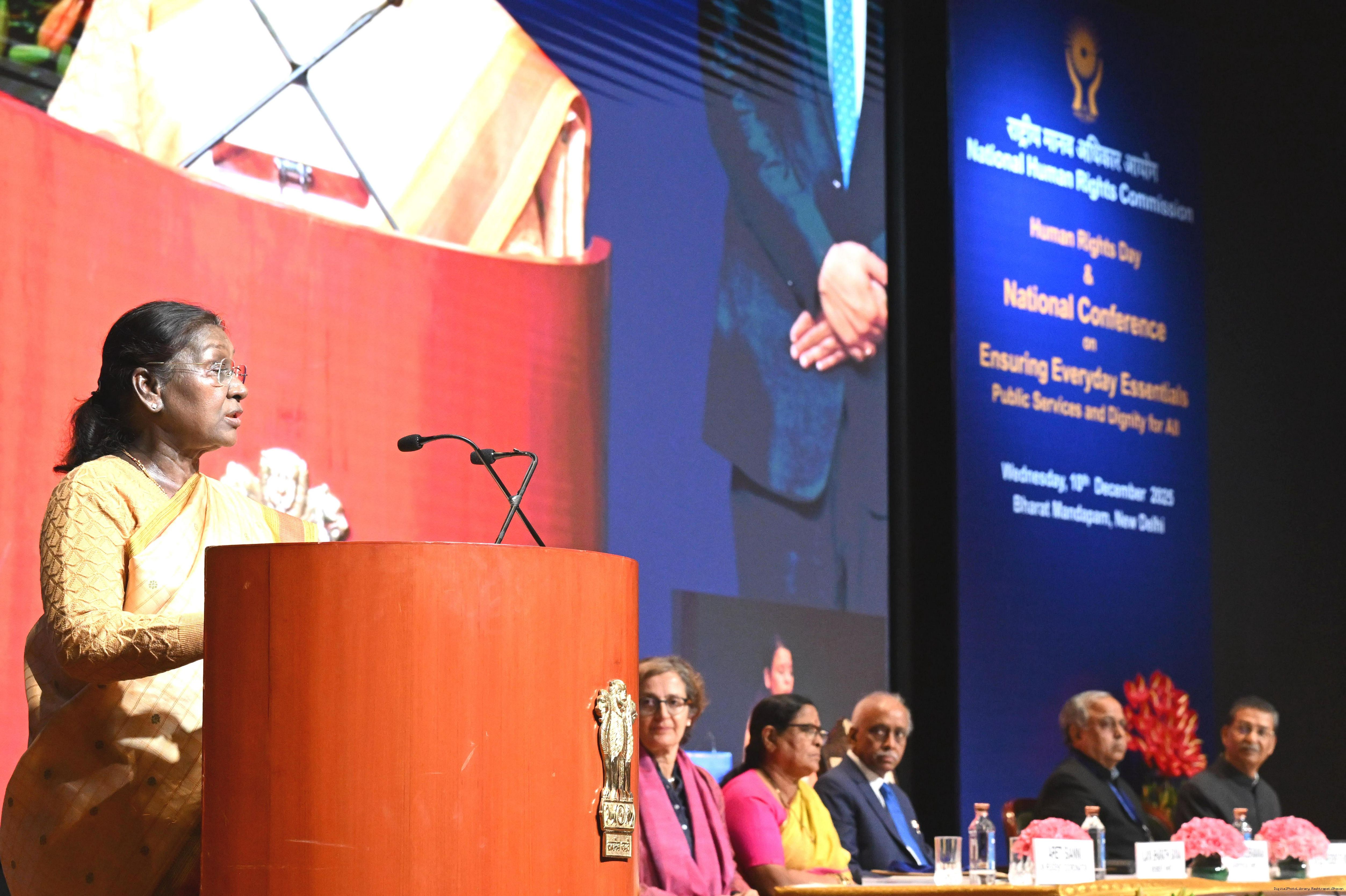 | Caption: | The President of India, Smt Droupadi Murmu, graced and addressed the Human Rights Day celebration, organised by the National Human Rights Commission, in New Delhi on December 10, 2025. |