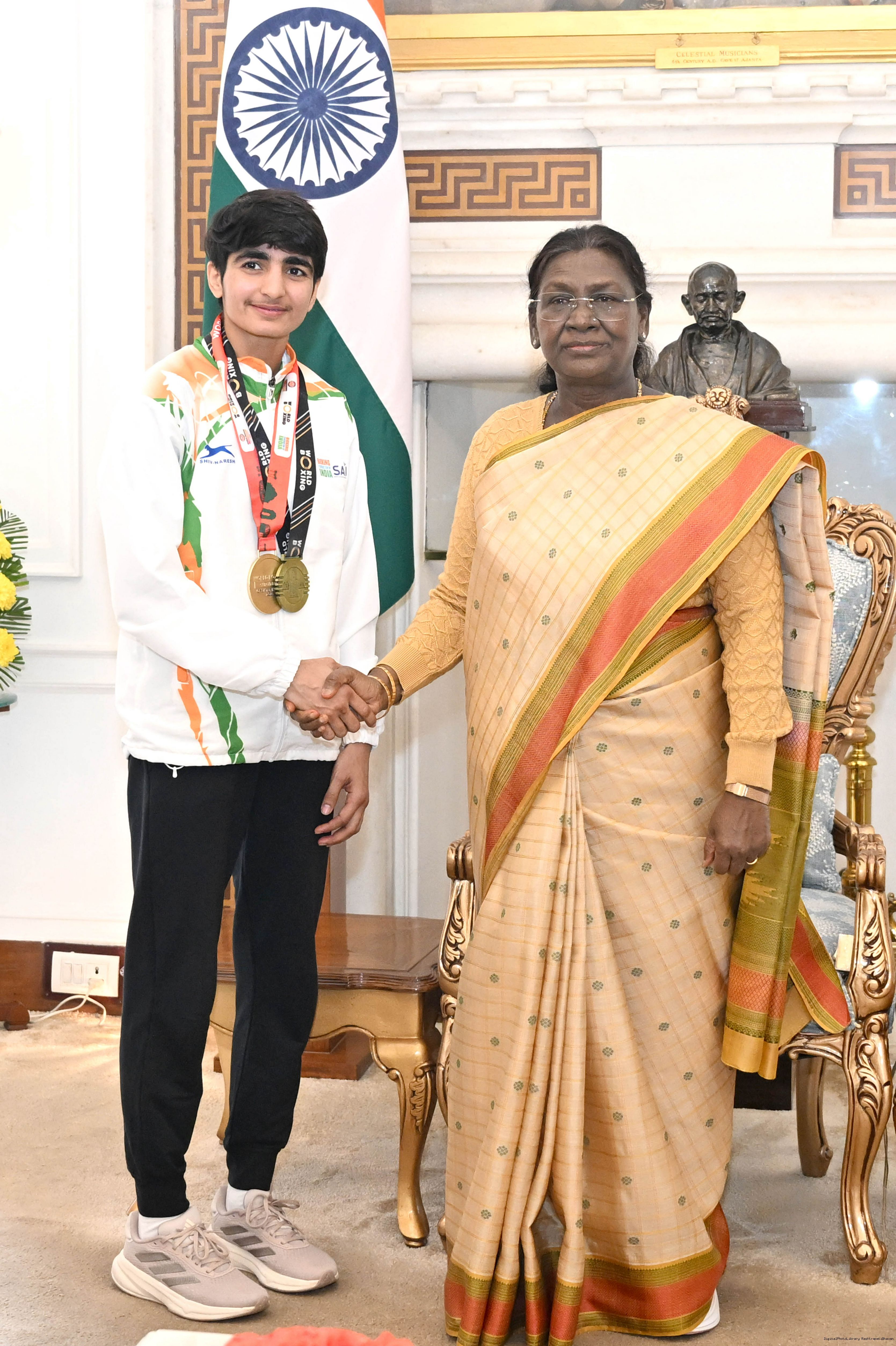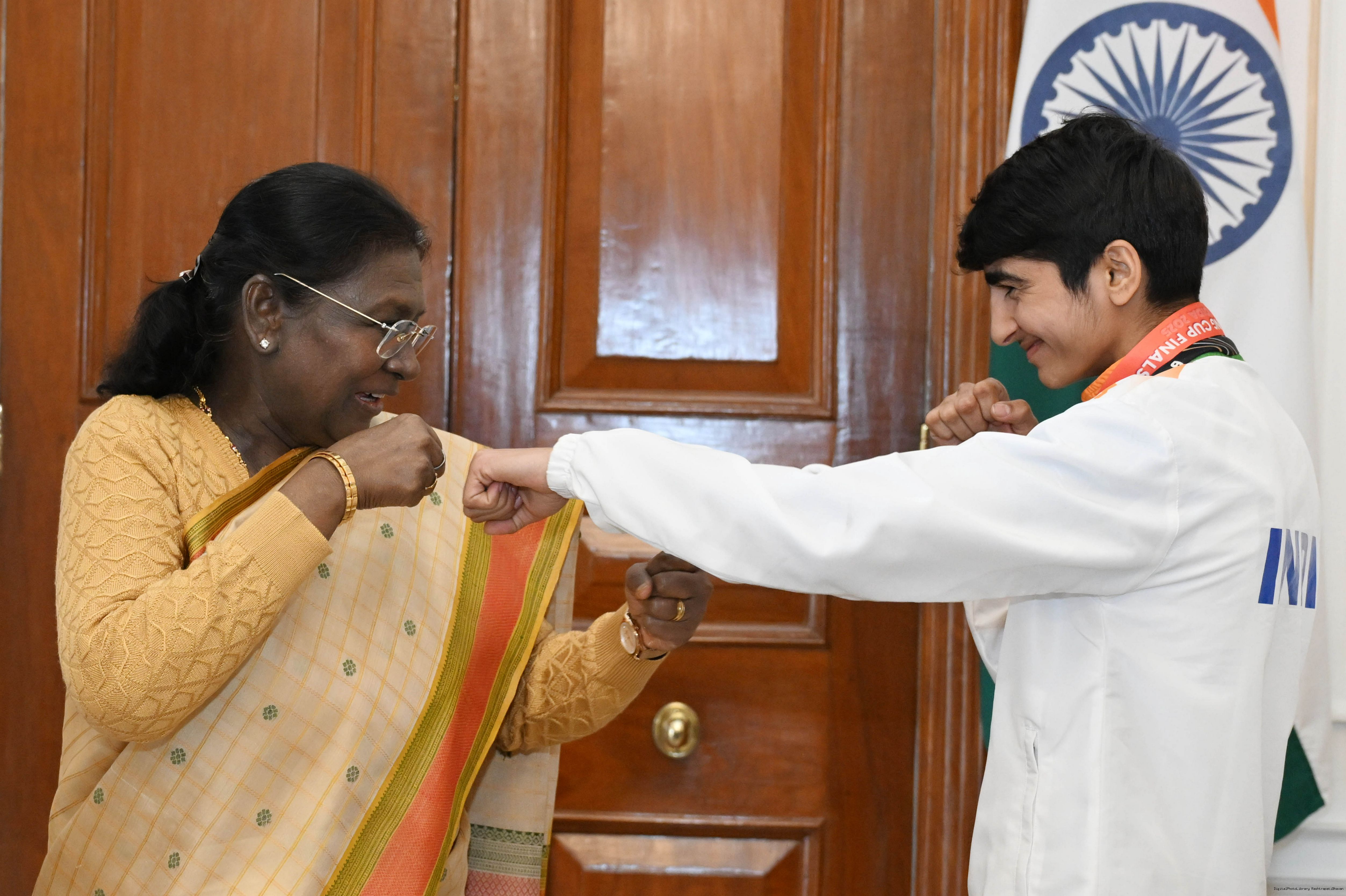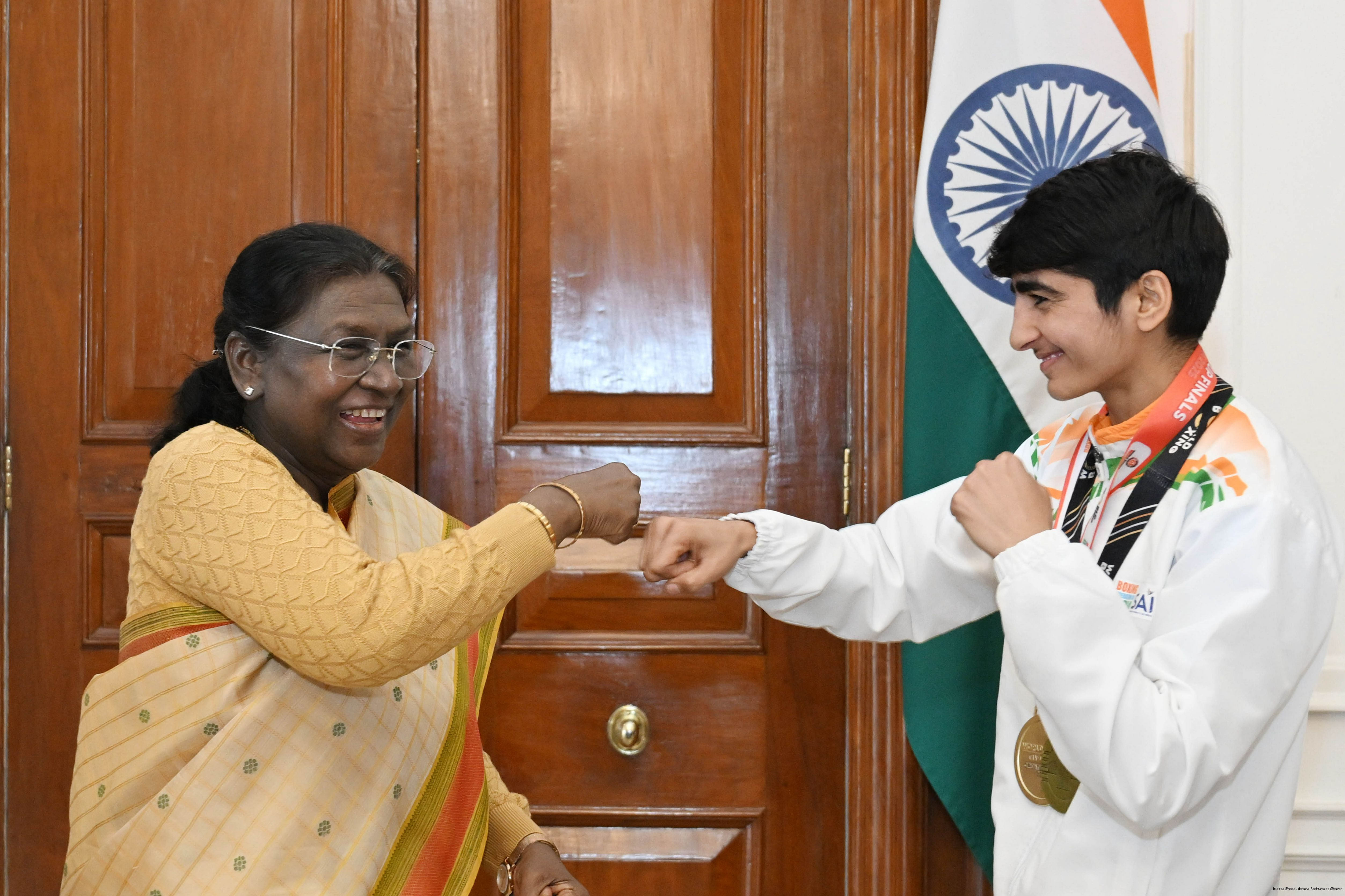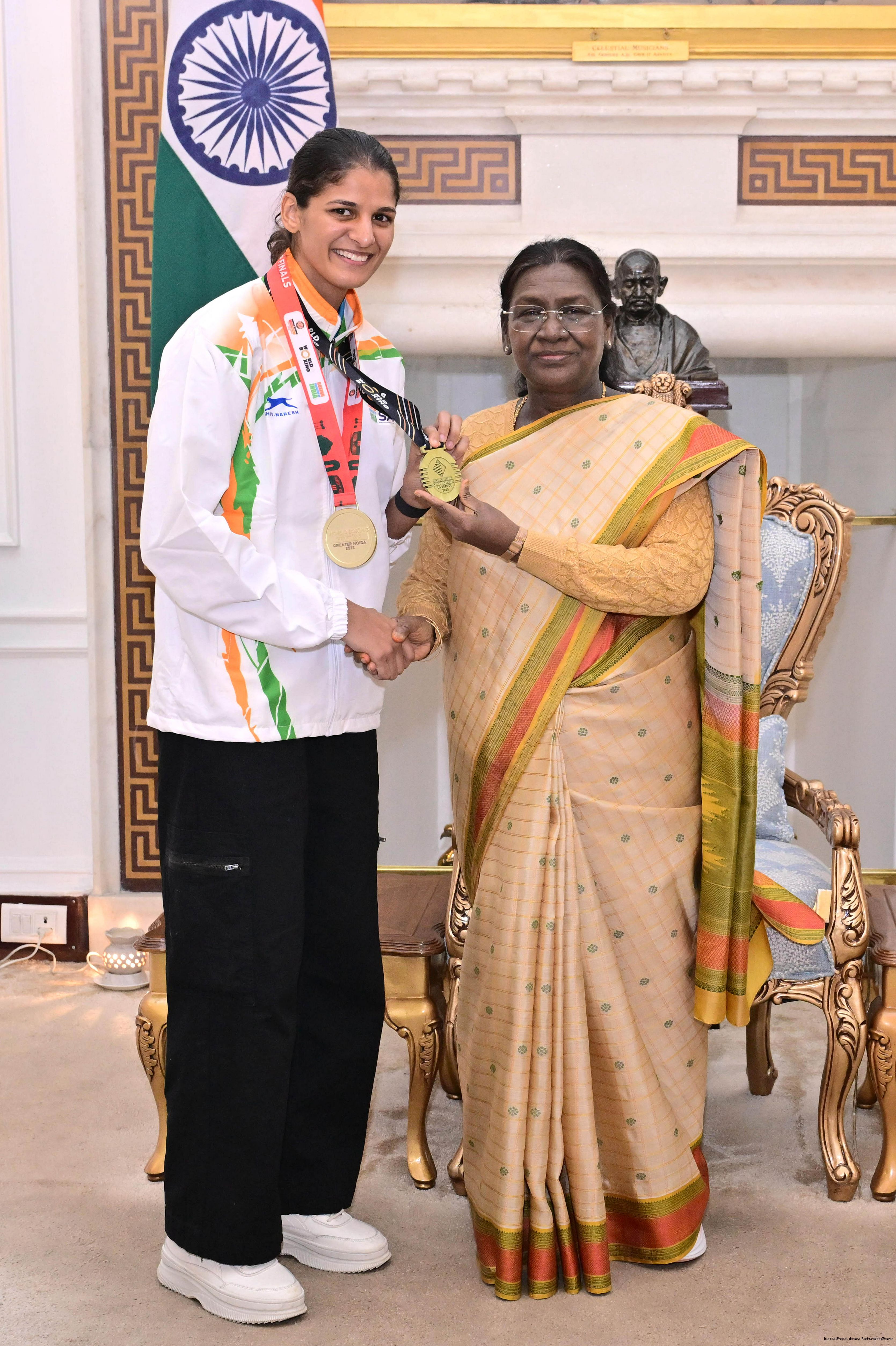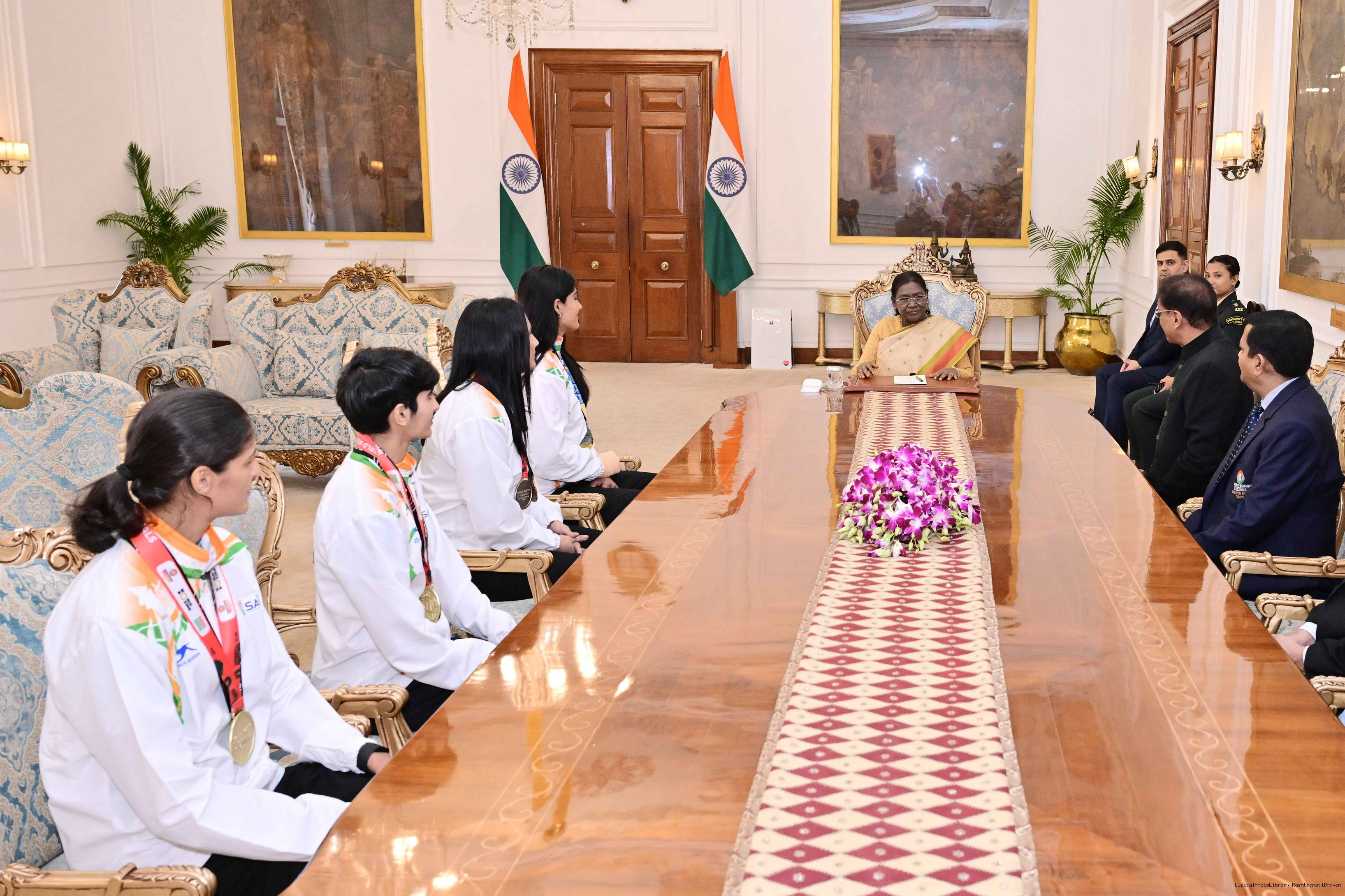 | Caption: | Indian women boxers who brought laurels to the nation at the 2025 World Boxing Championships in Liverpool called on the President Smt. Droupadi Murmu at Rashtrapati Bhavan on December 10, 2025. |