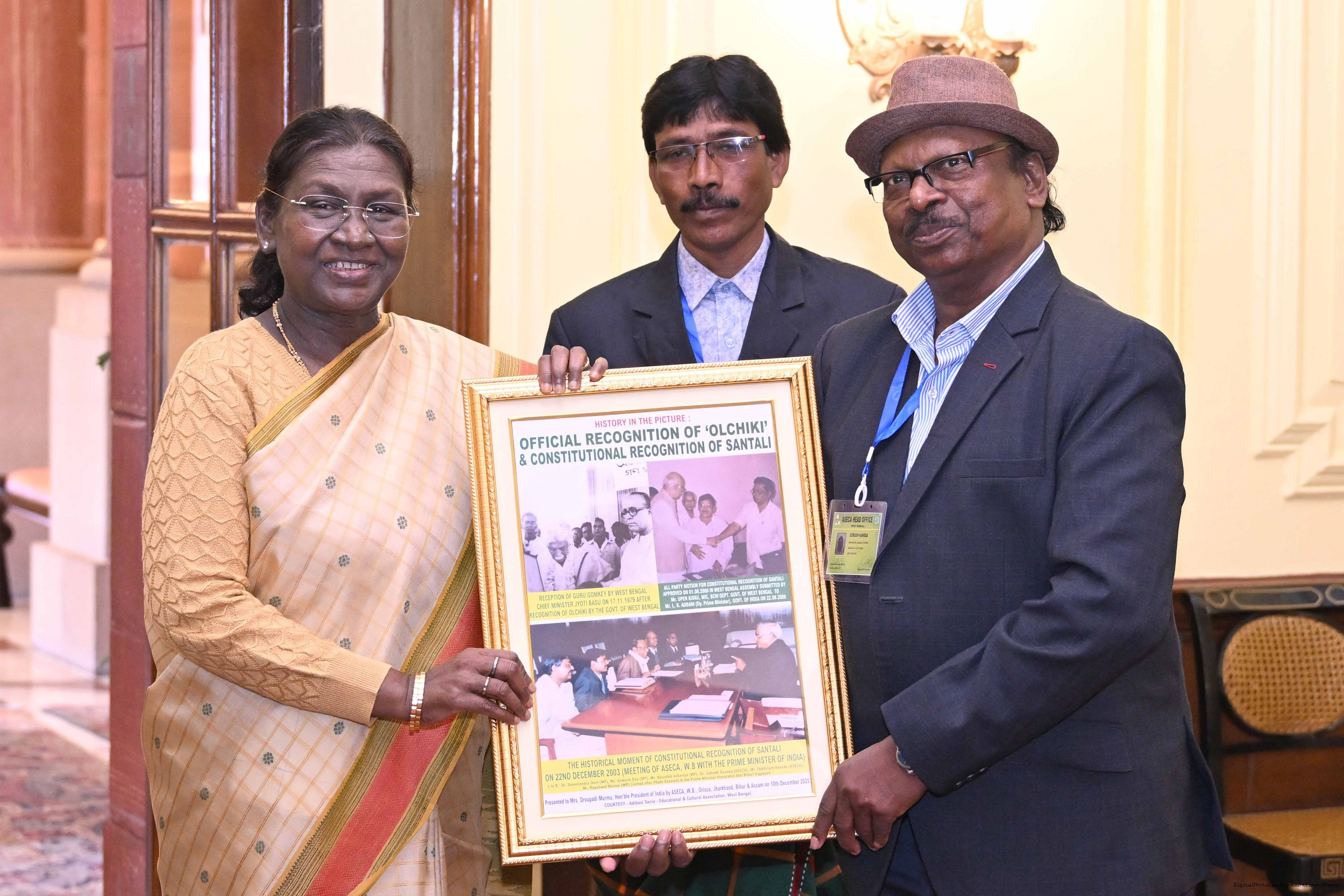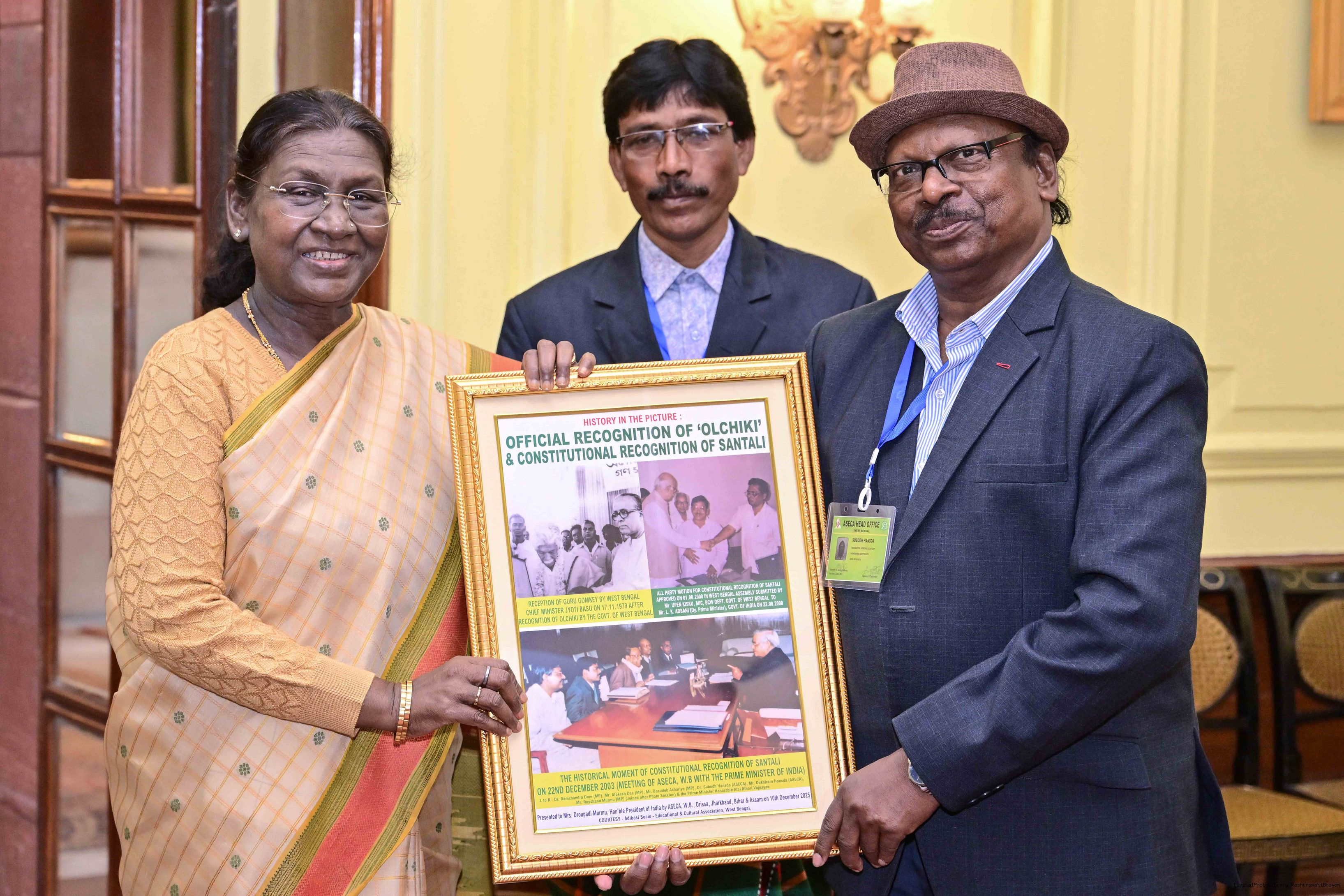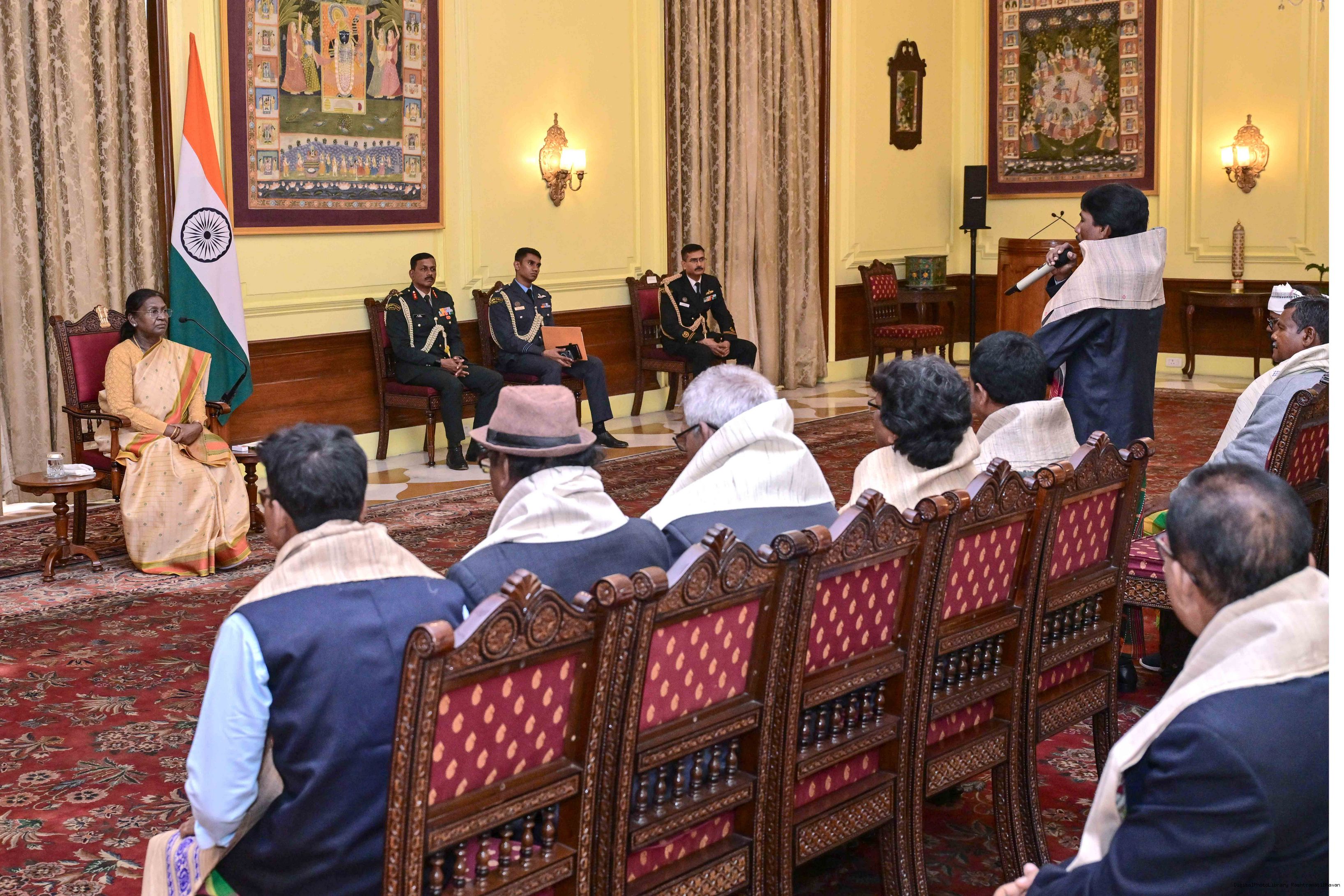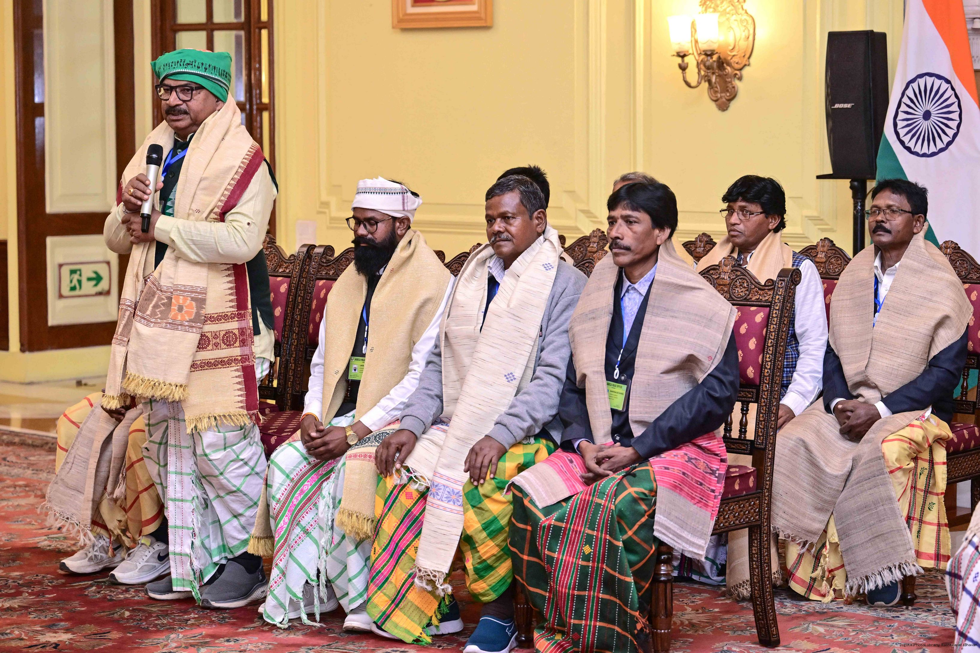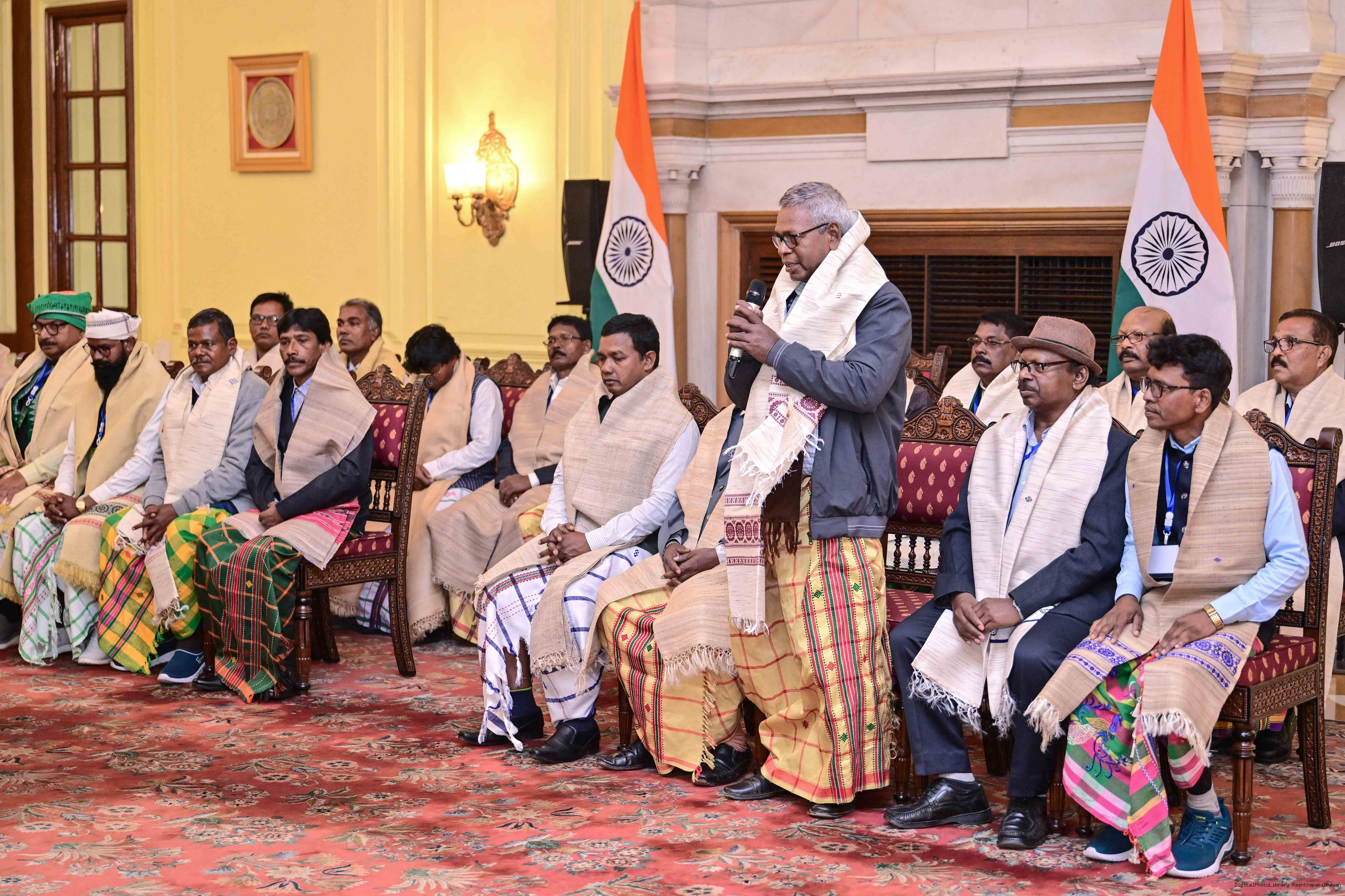 | Caption: | Shri Manoranjan Murmu, President, ASECA, Rairangpur, Odisha along with others meeting with the President of India, Smt. Droupadi Murmu at Rashtrapati Bhavan on December 10, 2025. |