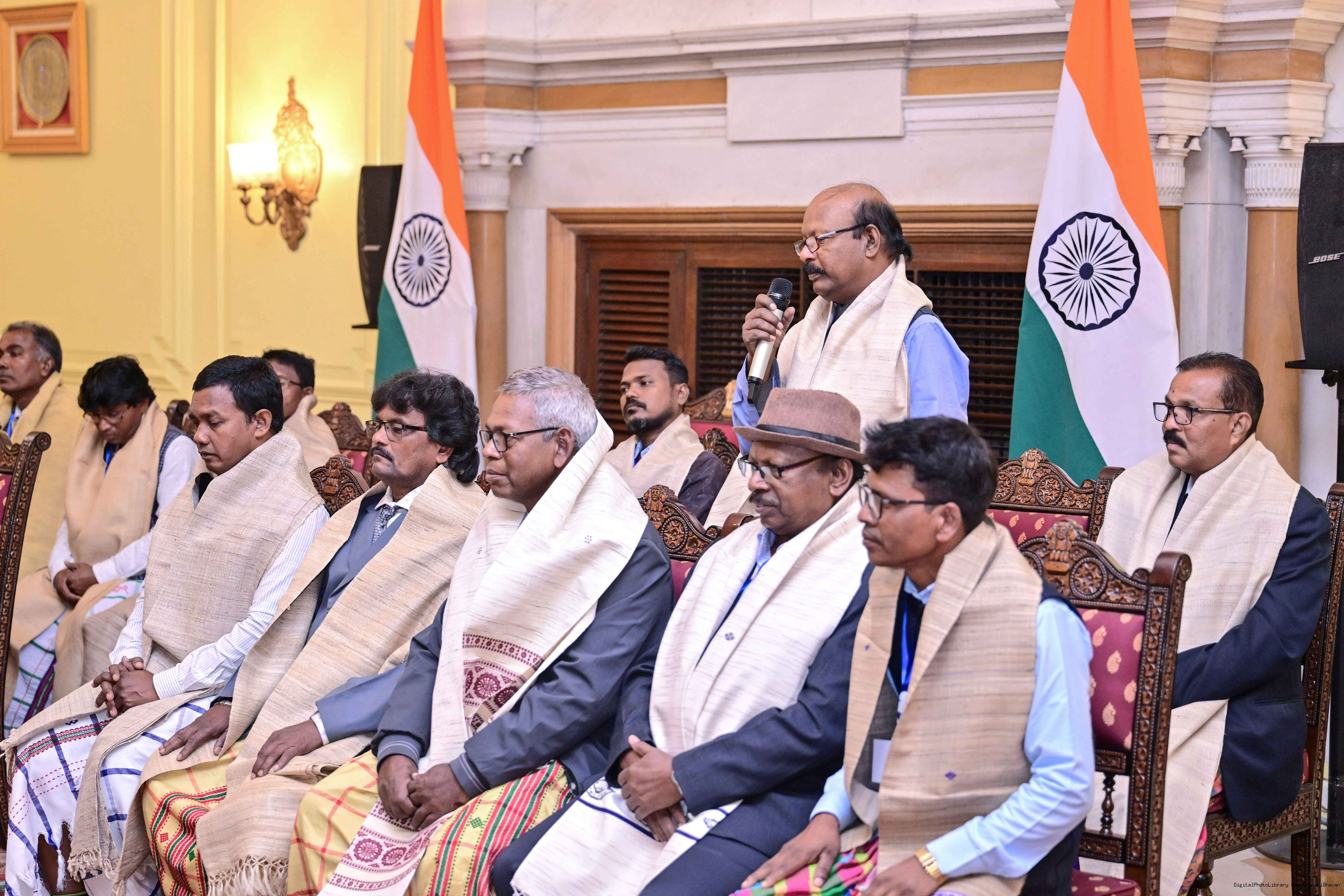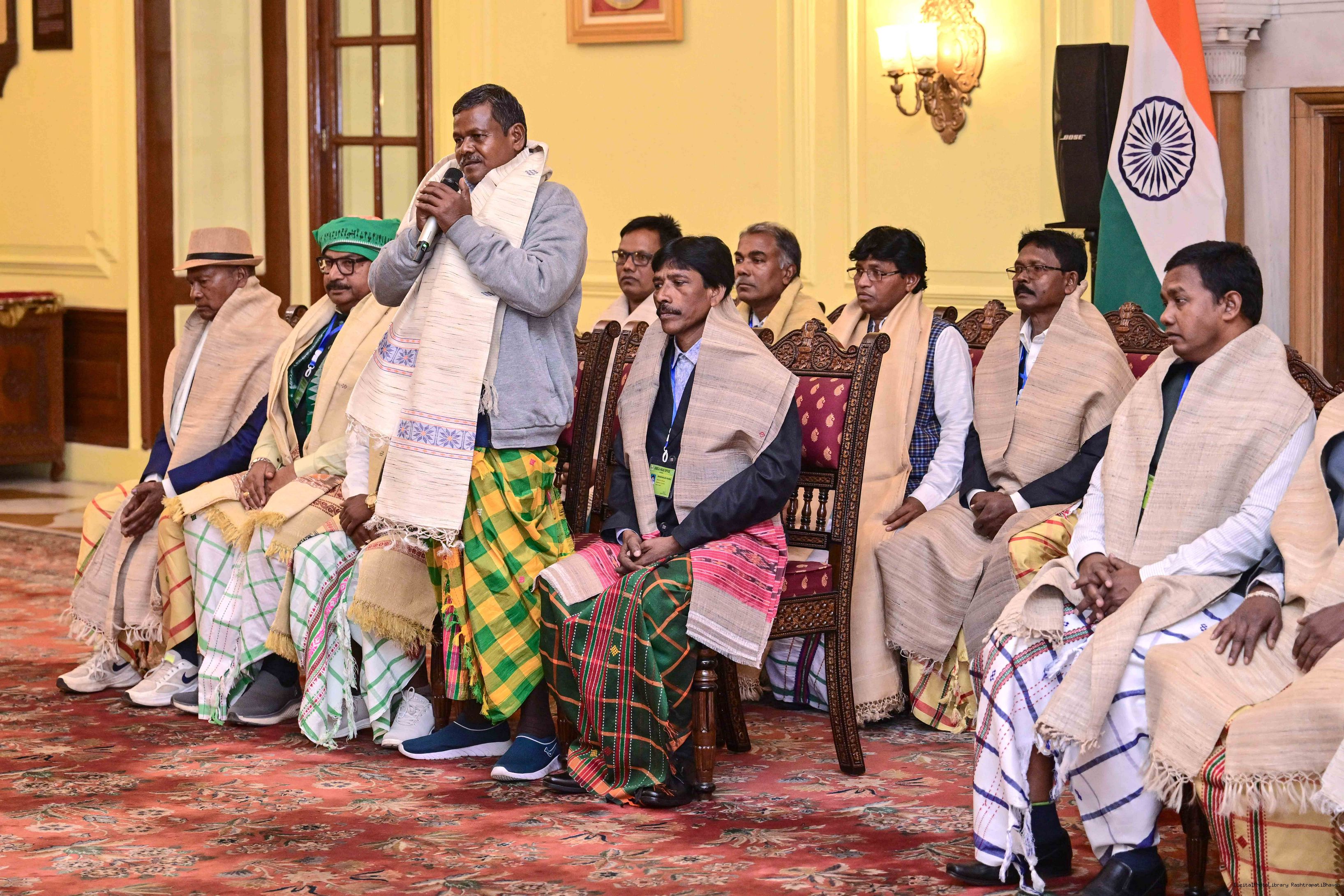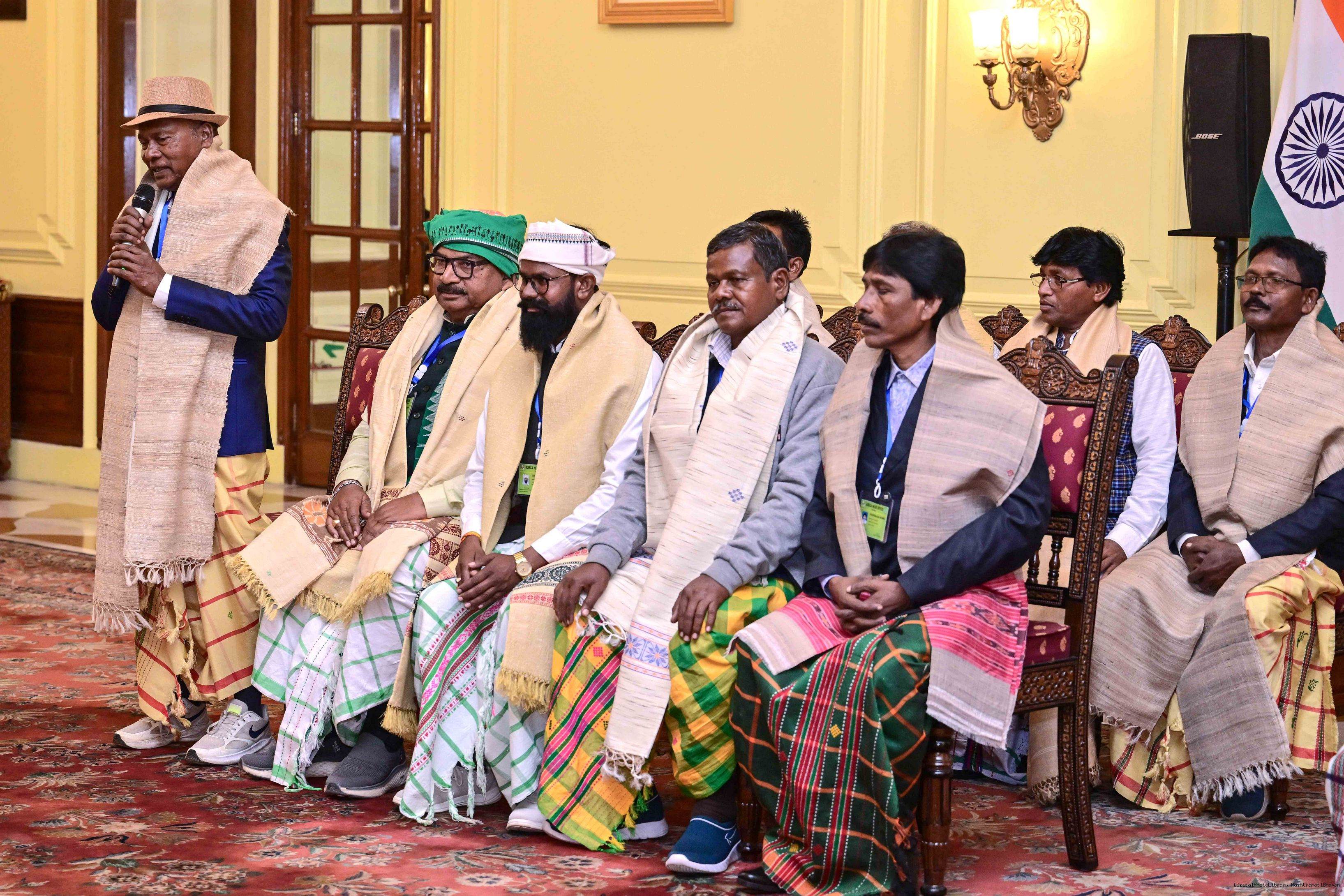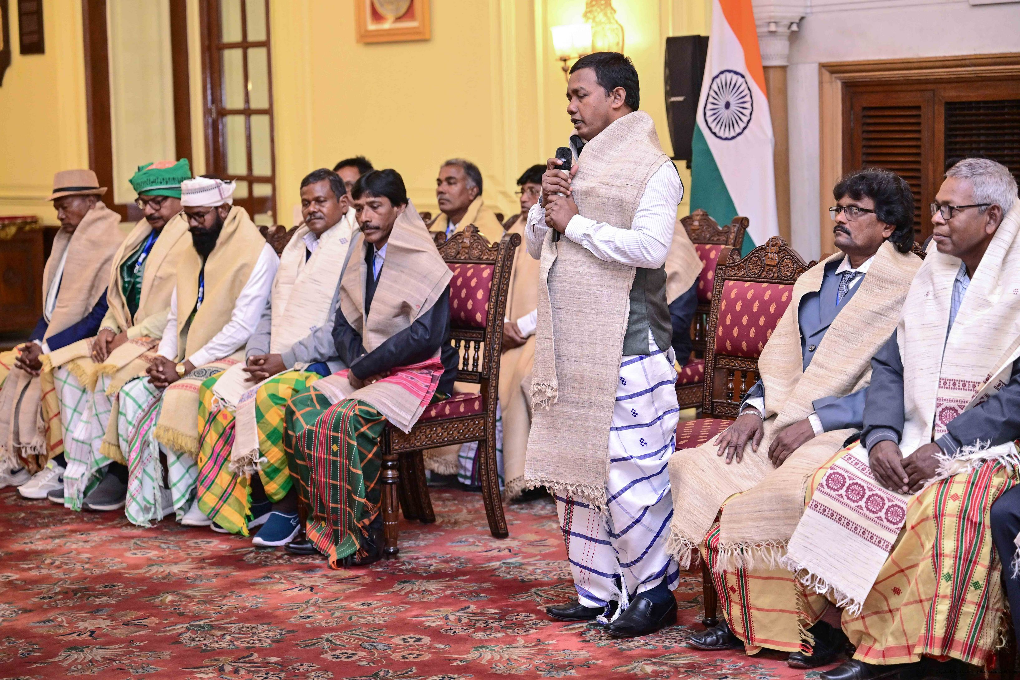 | Caption: | Shri Manoranjan Murmu, President, ASECA, Rairangpur, Odisha along with others meeting with the President of India, Smt. Droupadi Murmu at Rashtrapati Bhavan on December 10, 2025. |