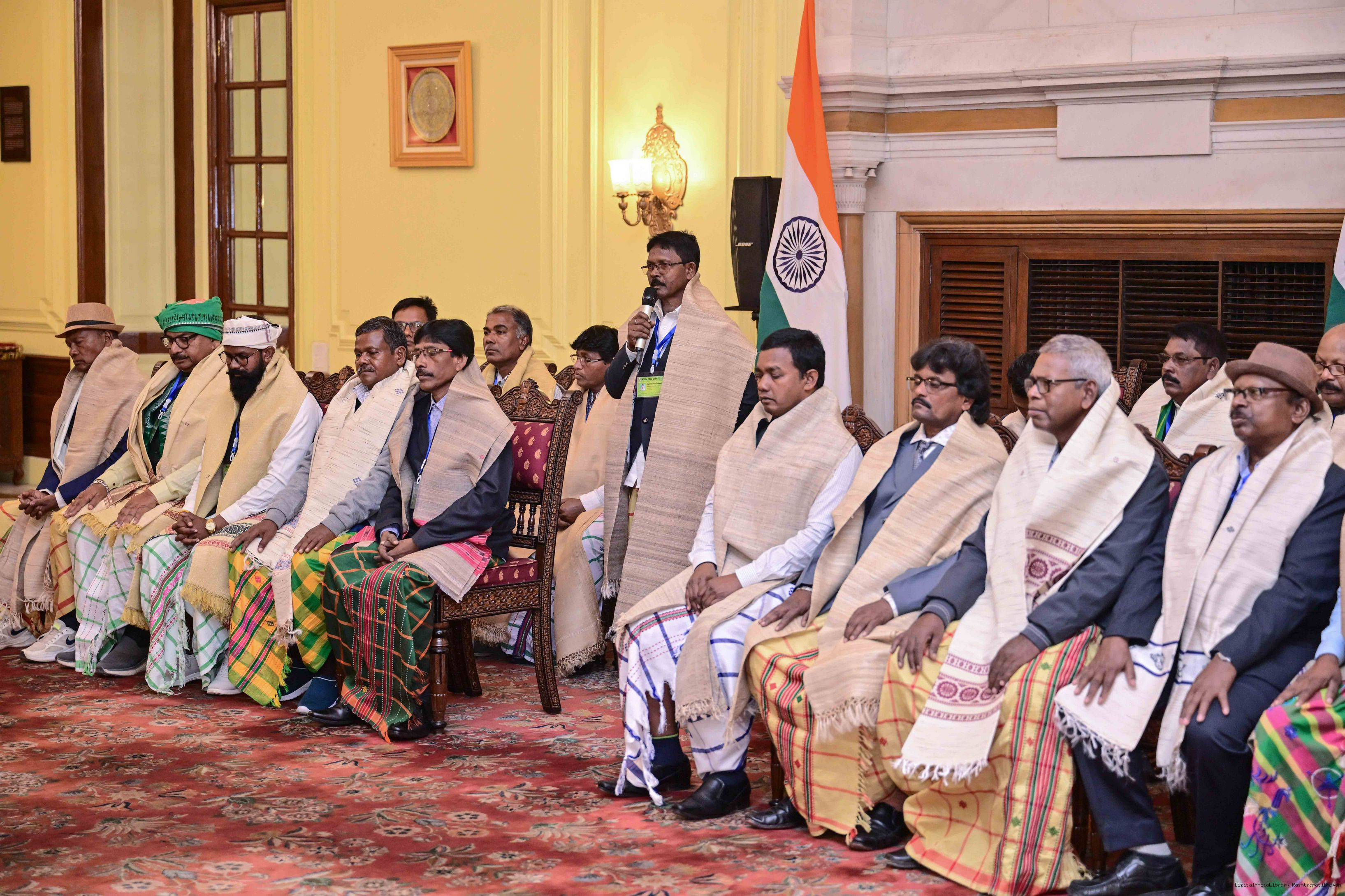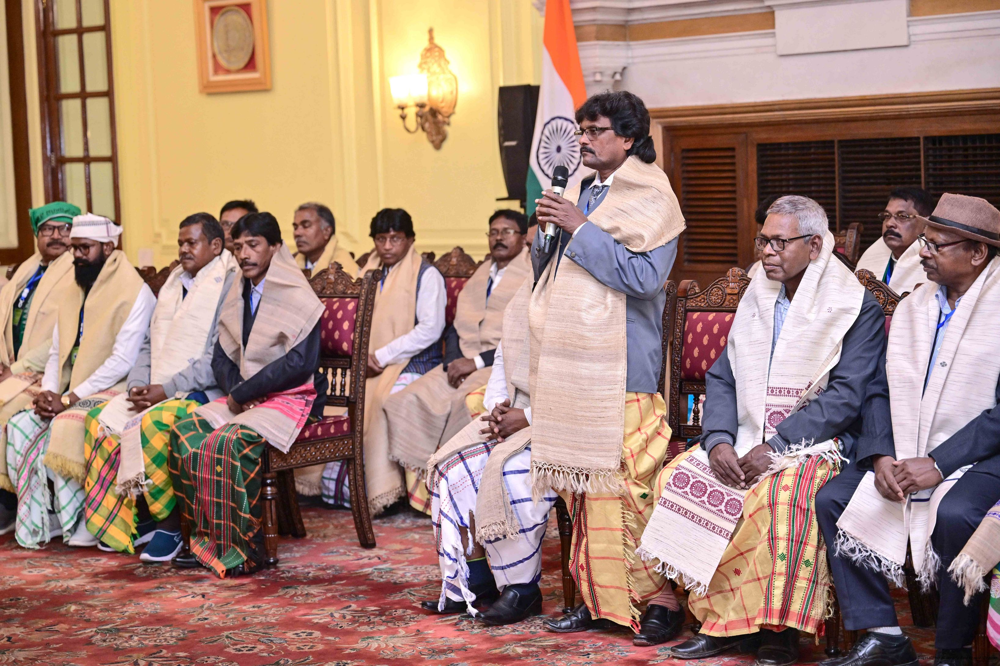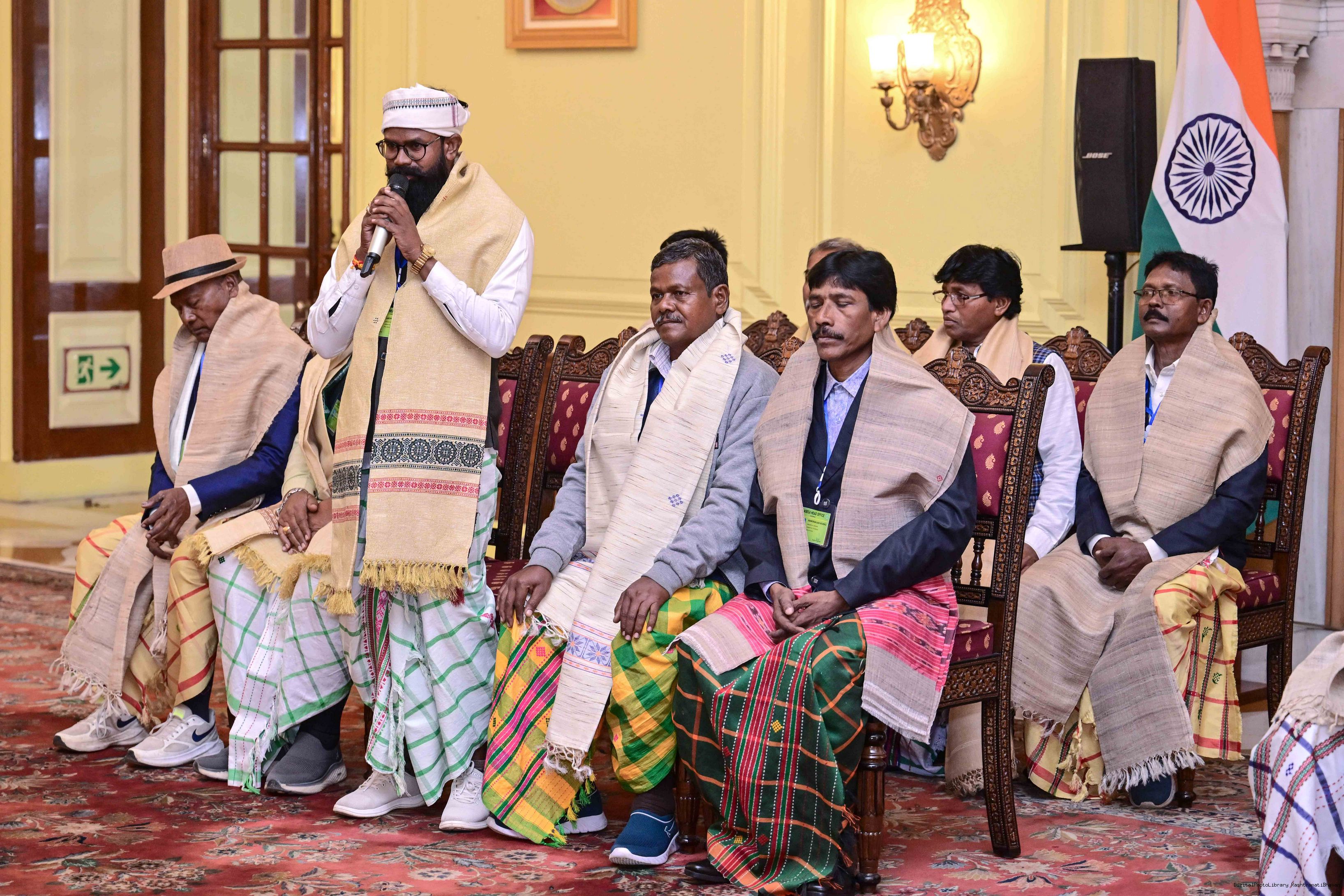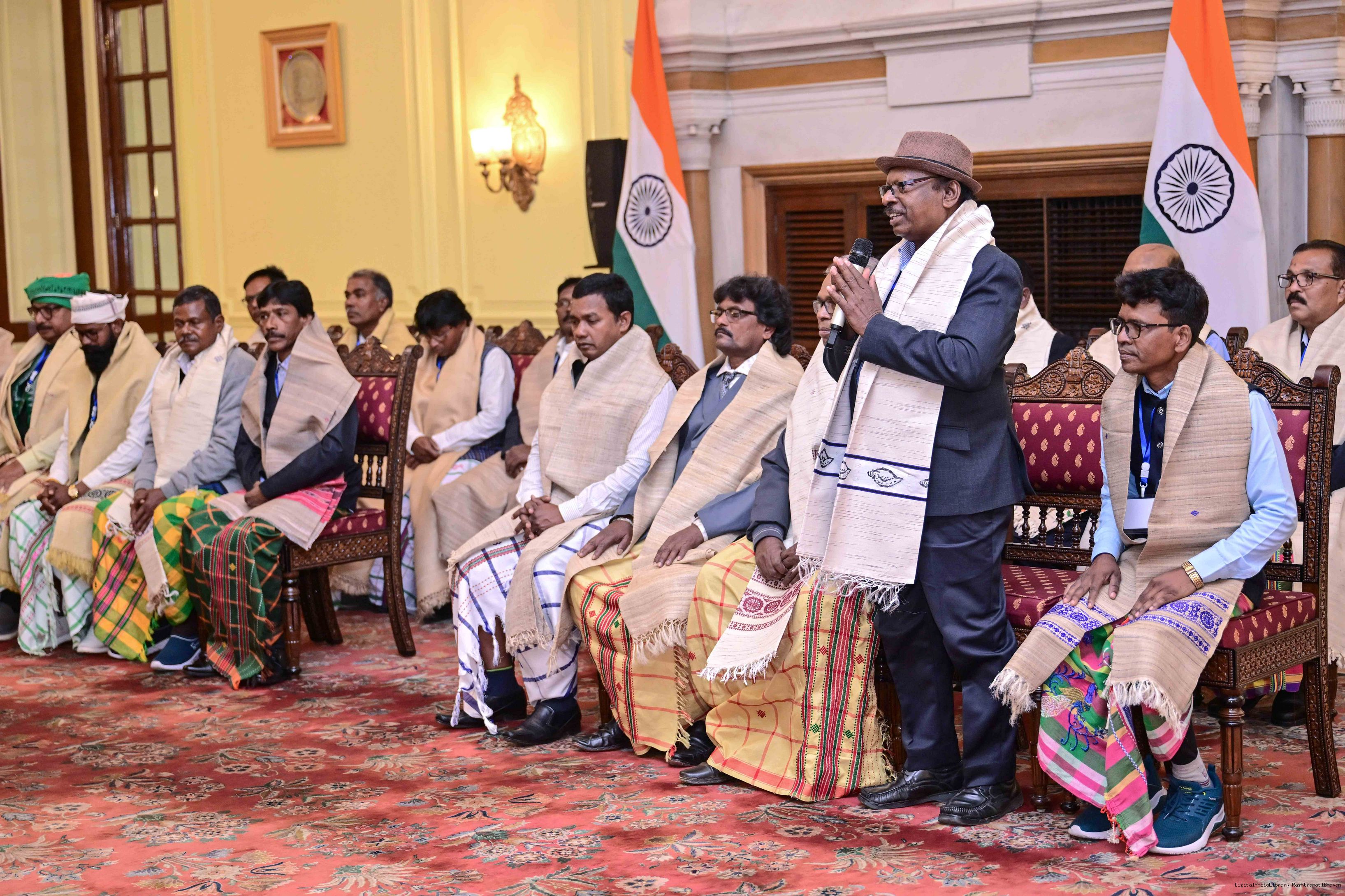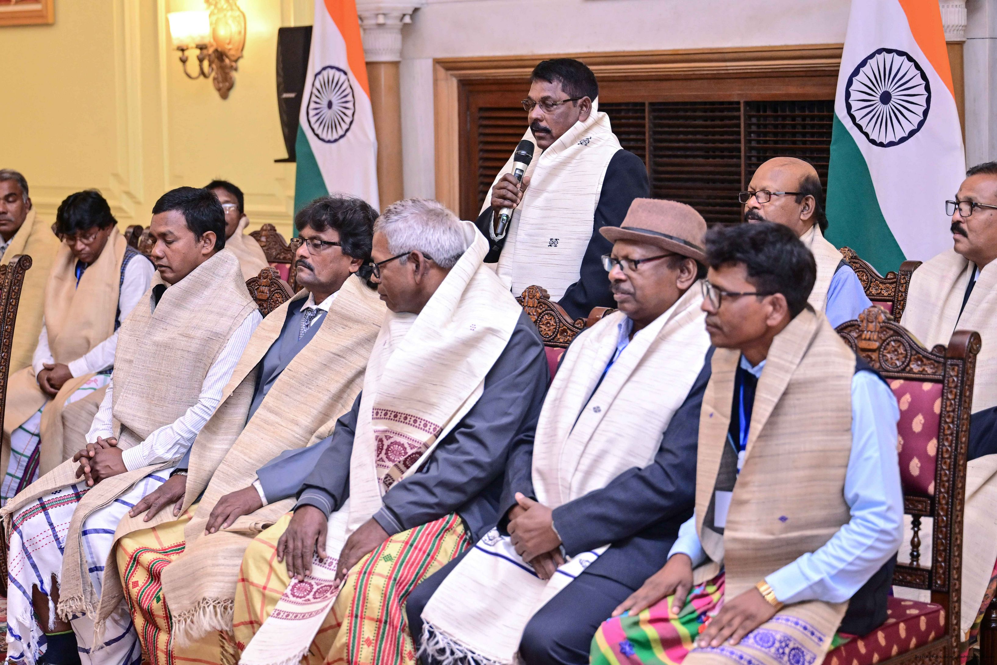| Caption: | Shri Manoranjan Murmu, President, ASECA, Rairangpur, Odisha along with others meeting with the President of India, Smt. Droupadi Murmu at Rashtrapati Bhavan on December 10, 2025. |