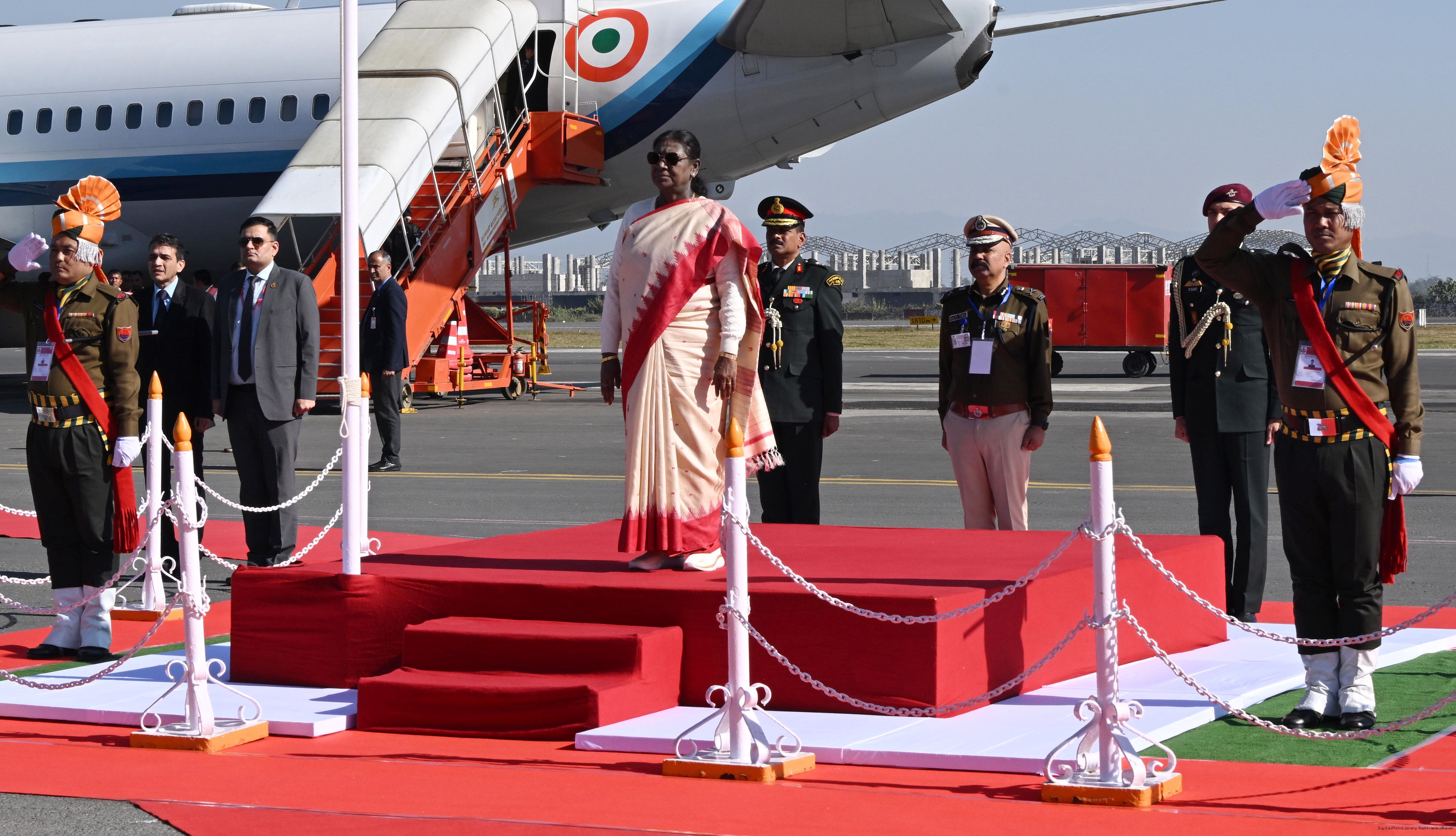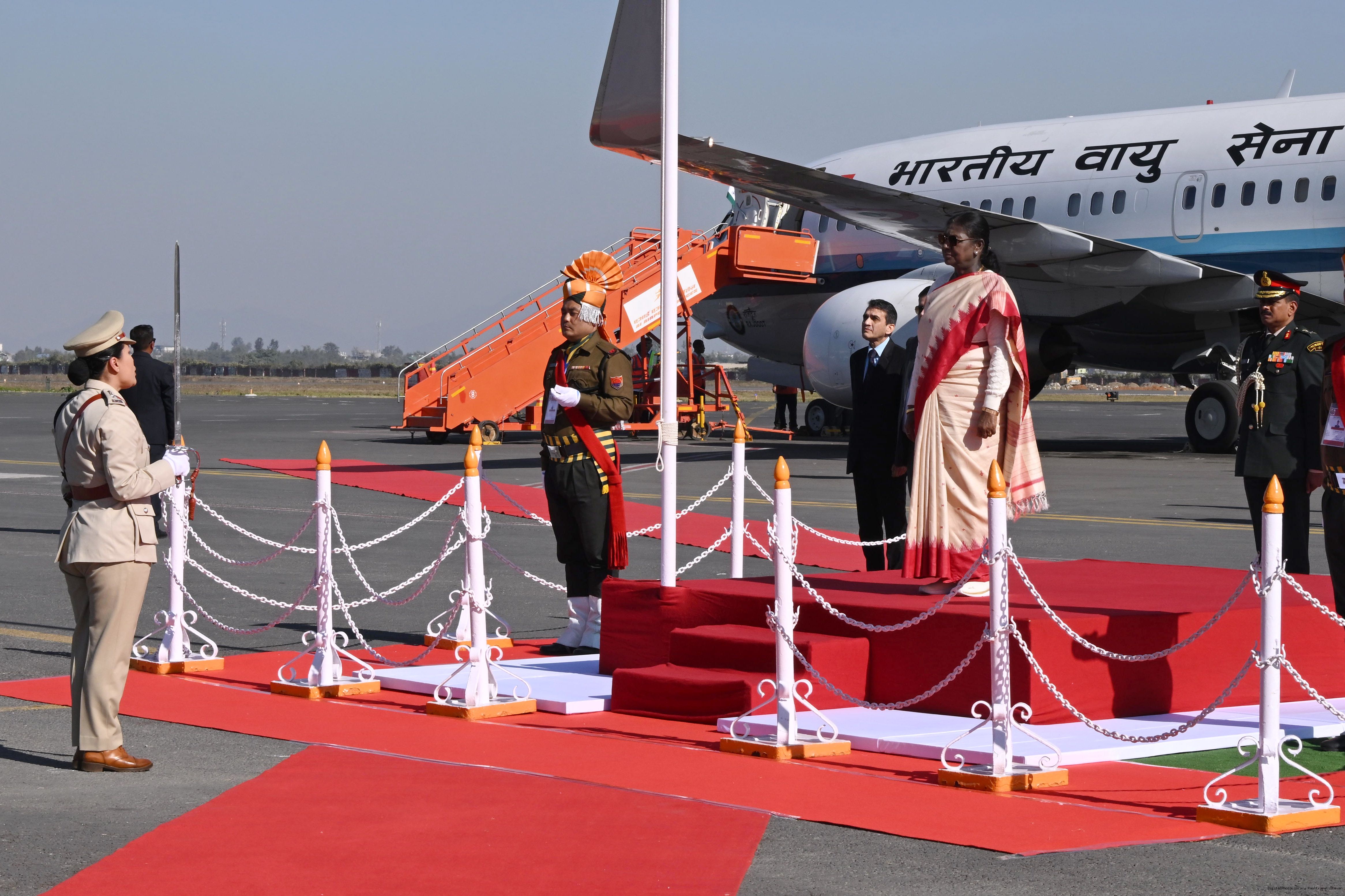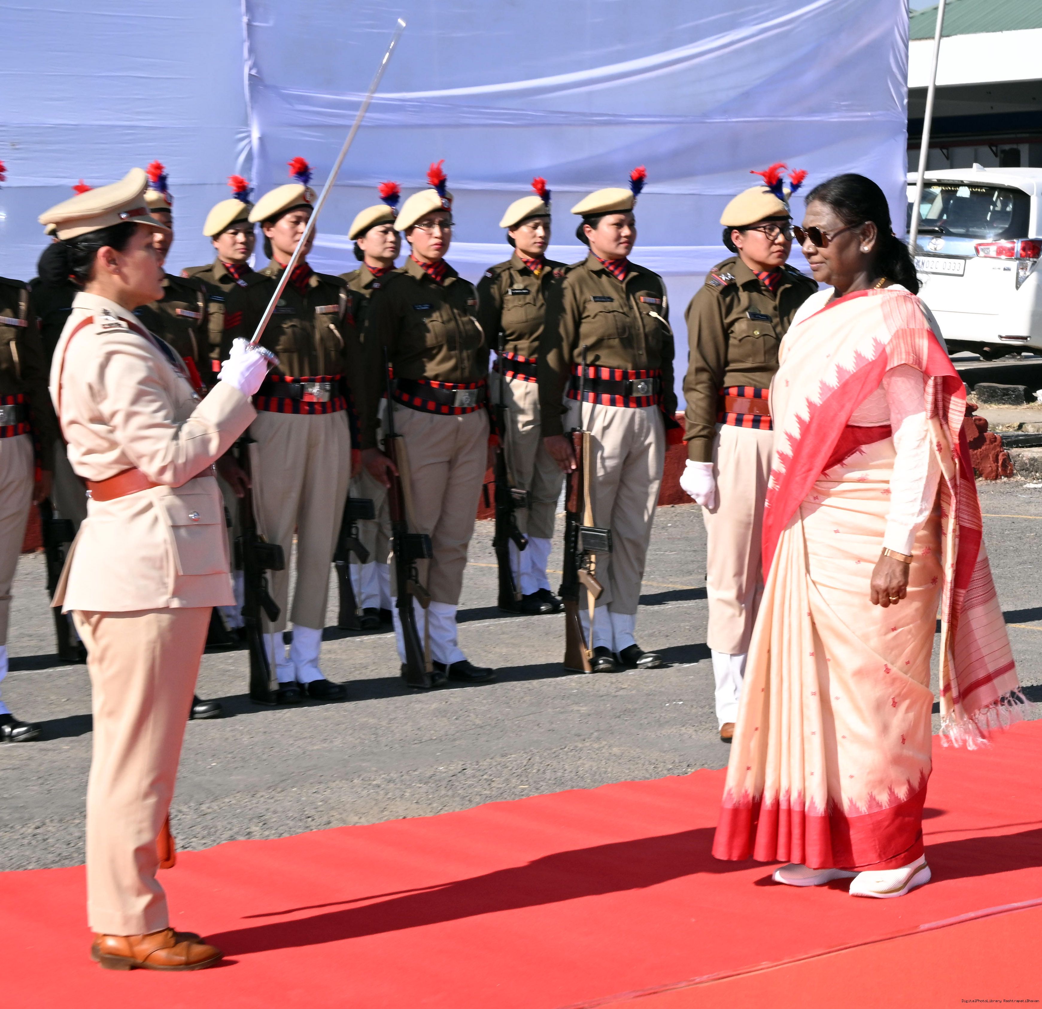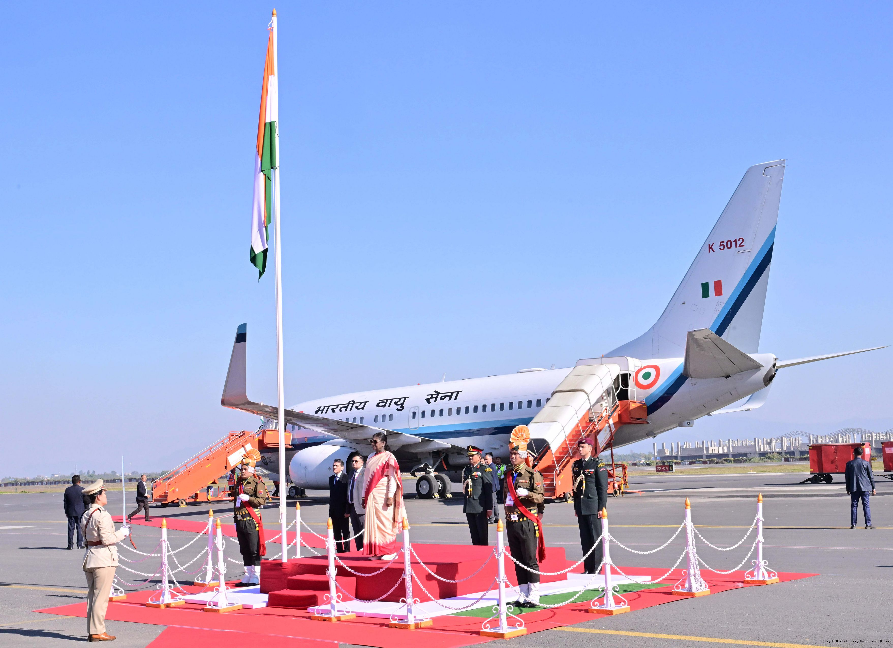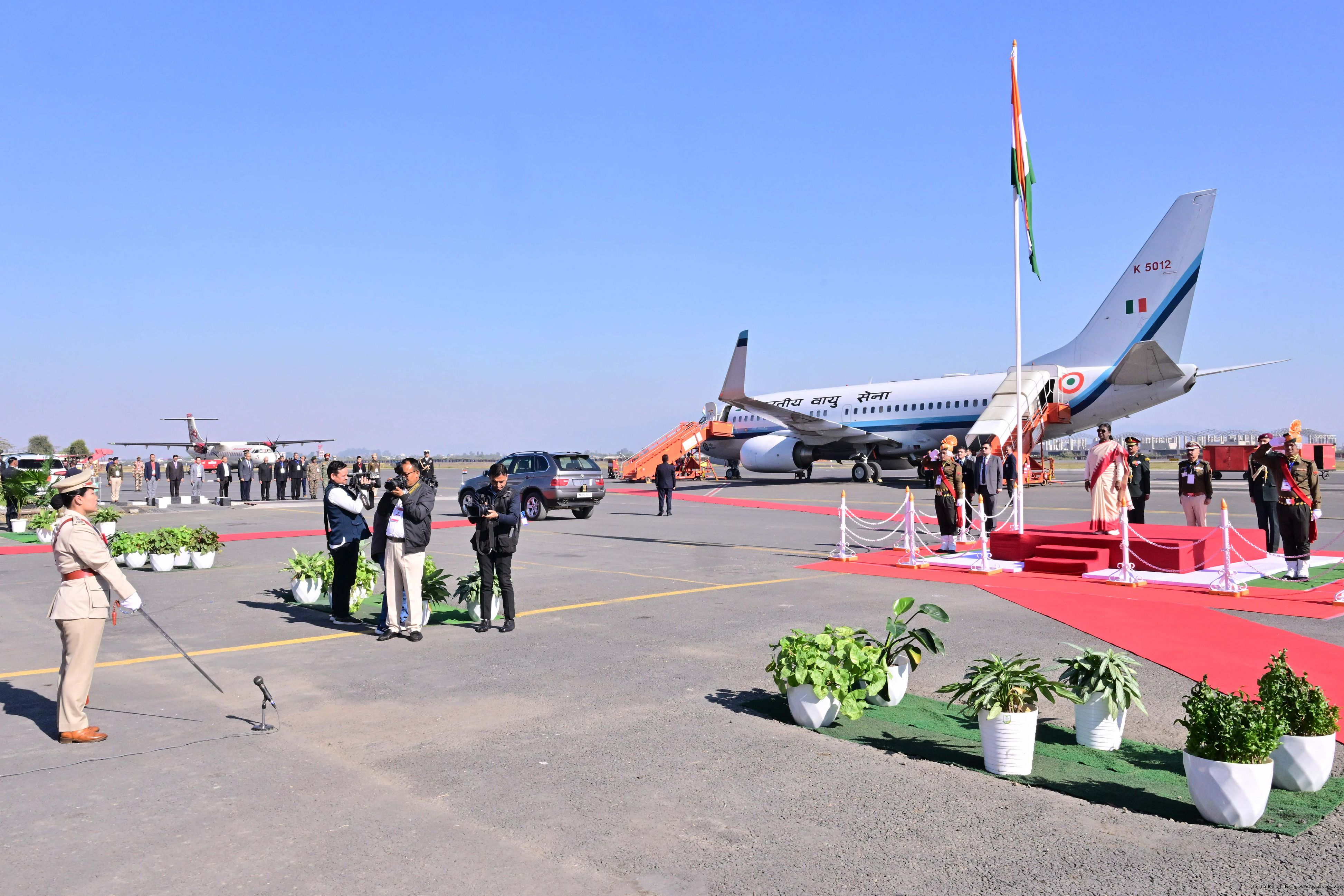 | Caption: | The President of India, Smt. Droupadi Murmu was accorded a guard of honour on her arrival at Imphal on December 11, 2025. |