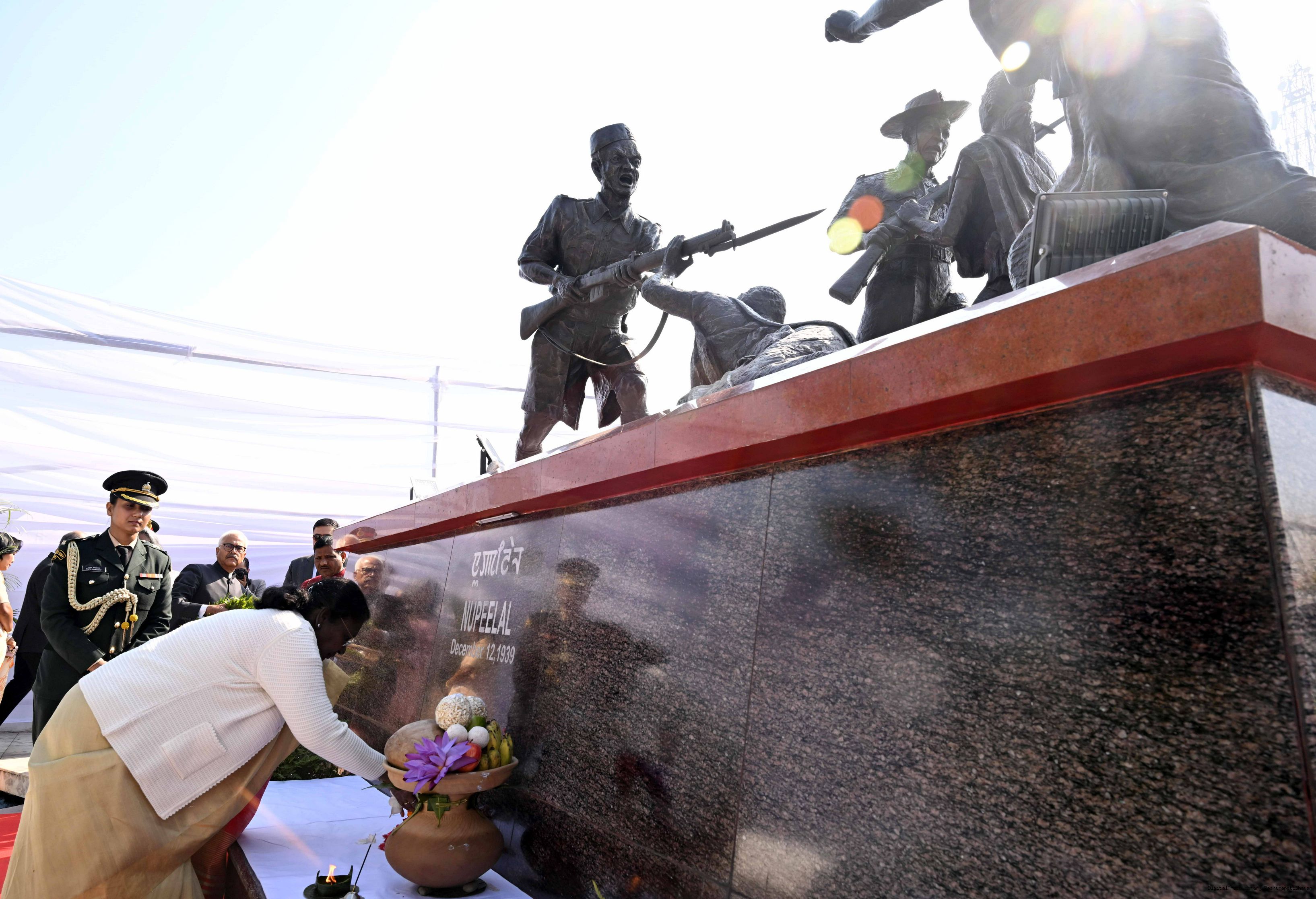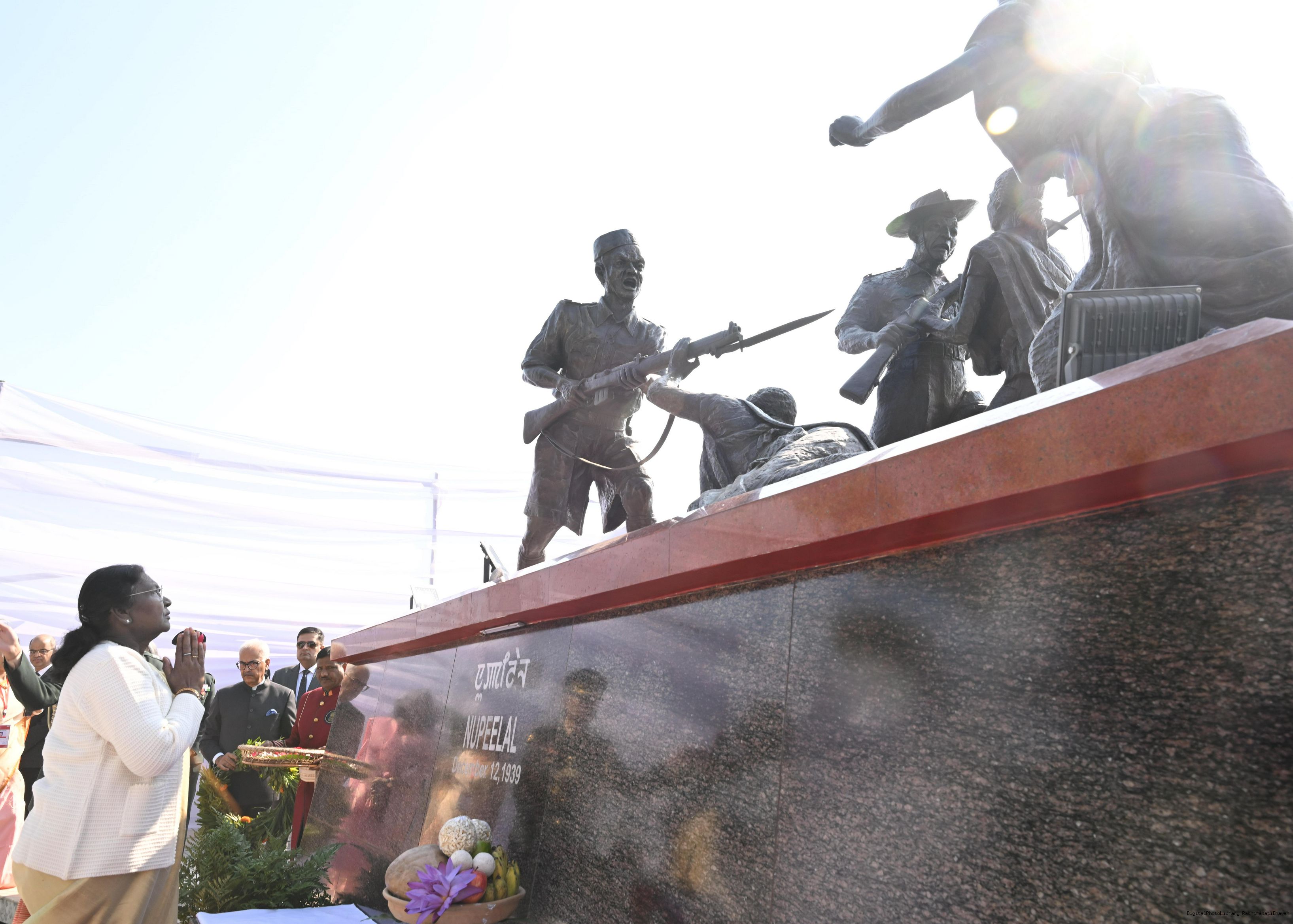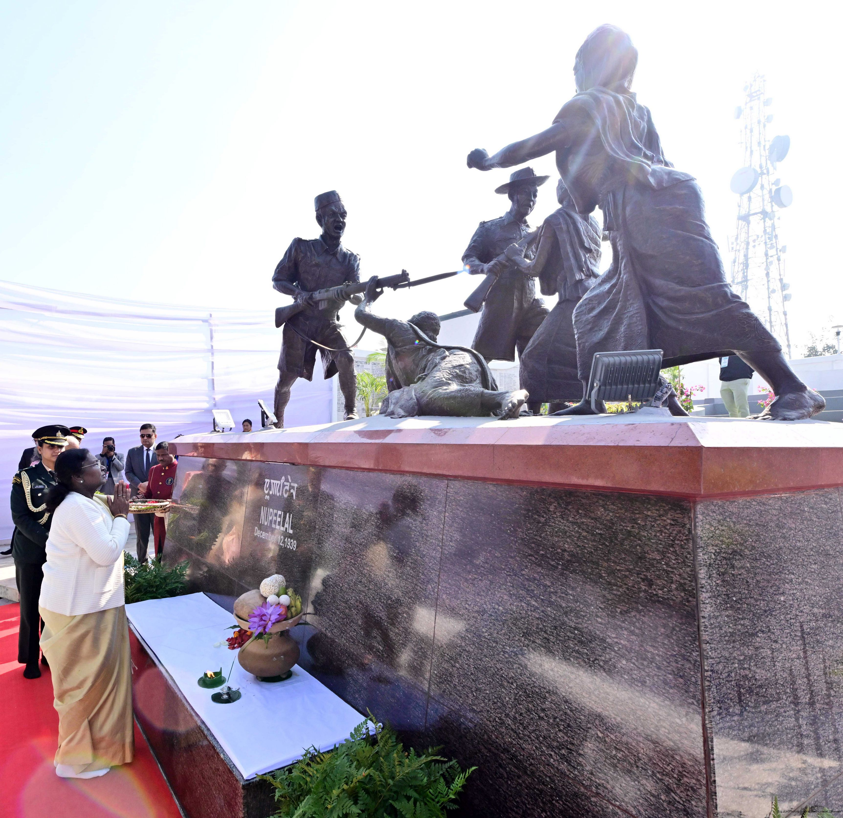 | Caption: | The President of India, Smt. Droupadi Murmu paid her respects to the brave women warriors of Manipur at the Nupee Lal Memorial Complex, Imphal on December 12, 2025. |