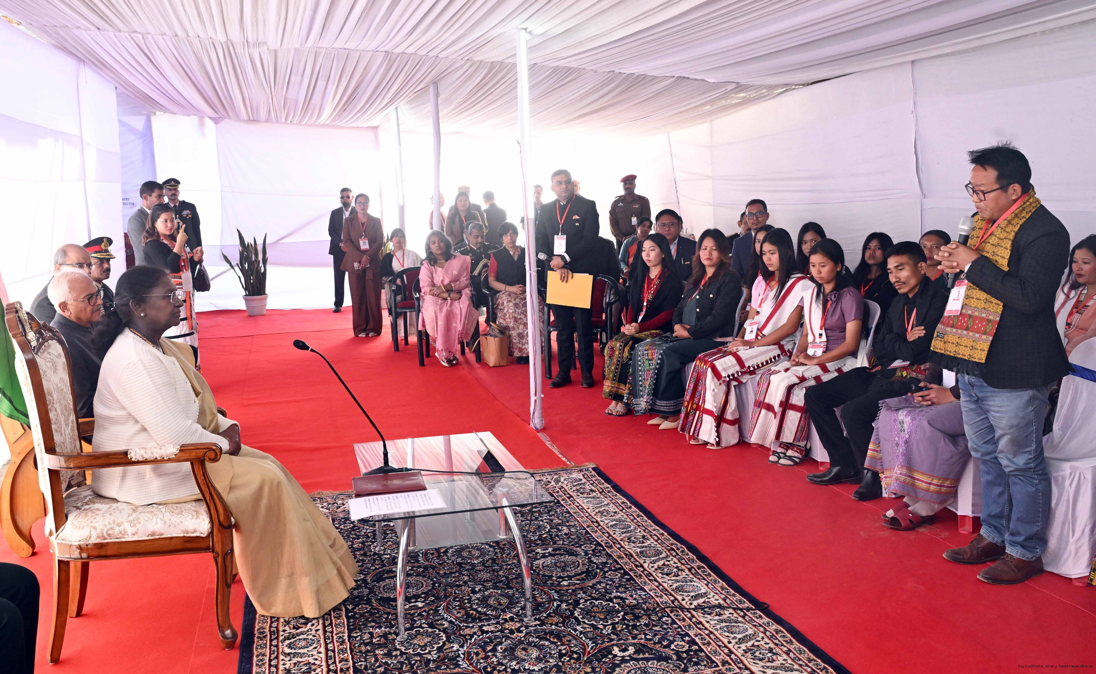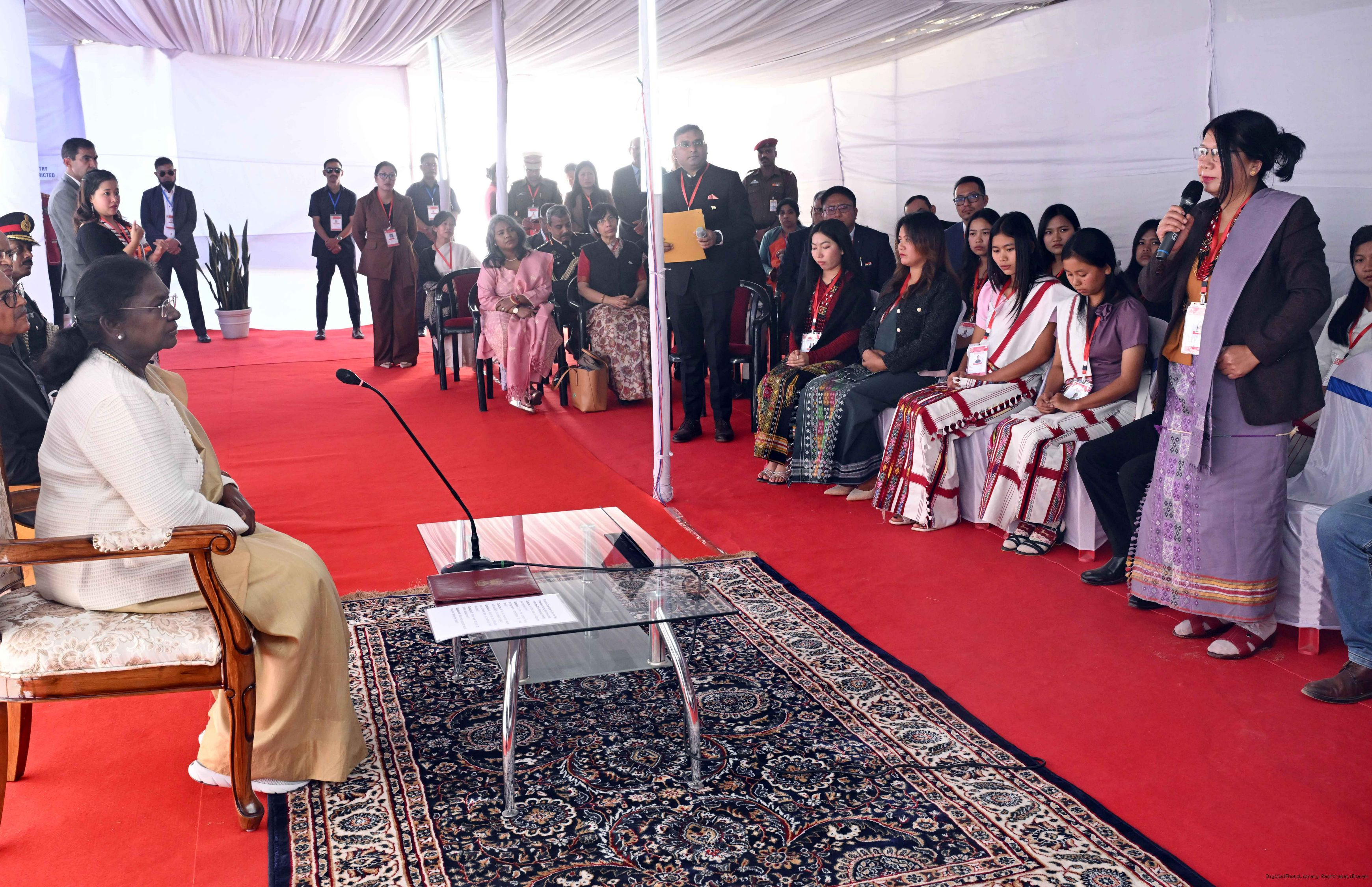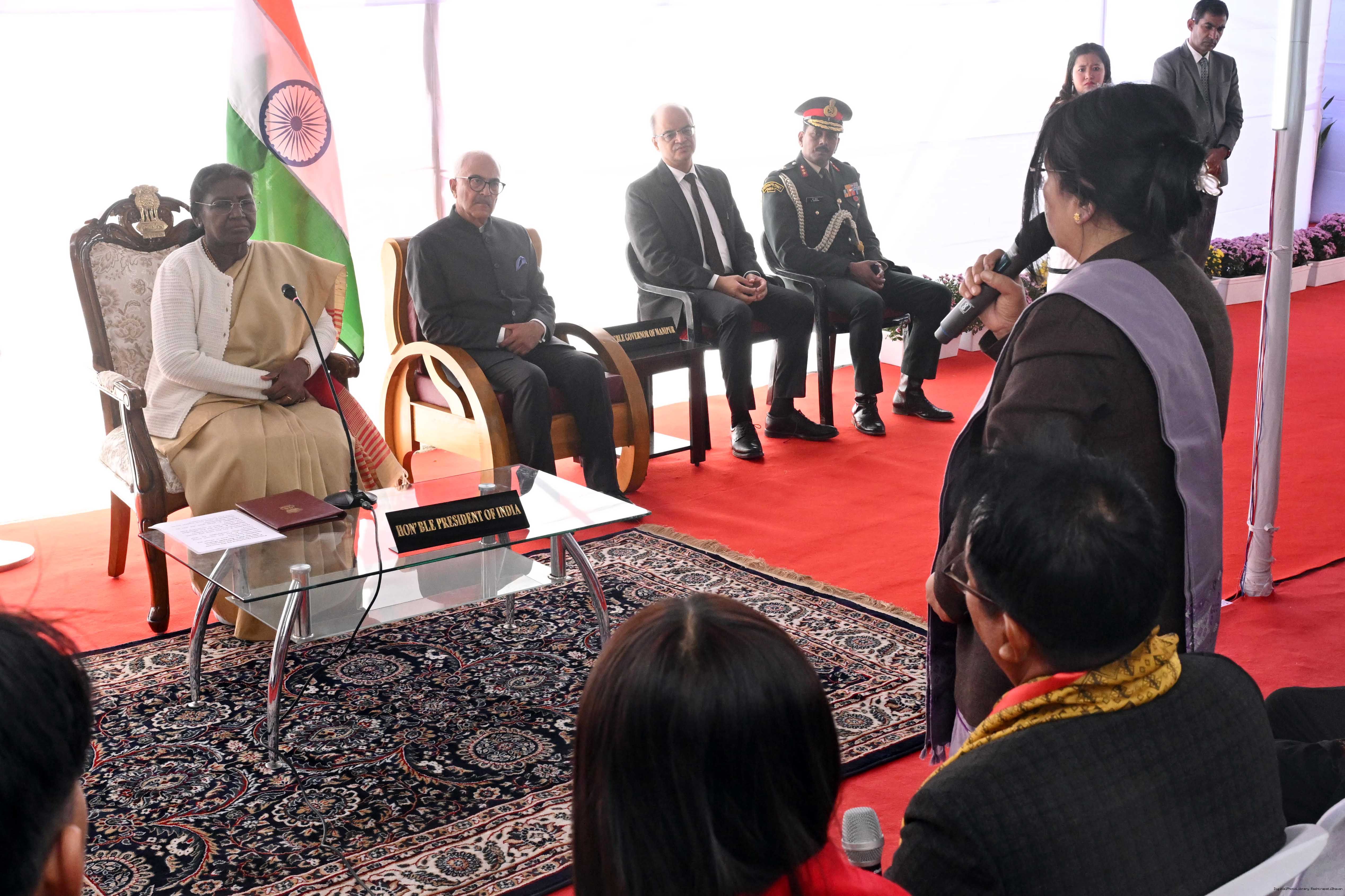 | Caption: | The President of India, Smt. Droupadi Murmu interacted with a few Internally Displaced Persons in Senapati on December 12, 2025. |