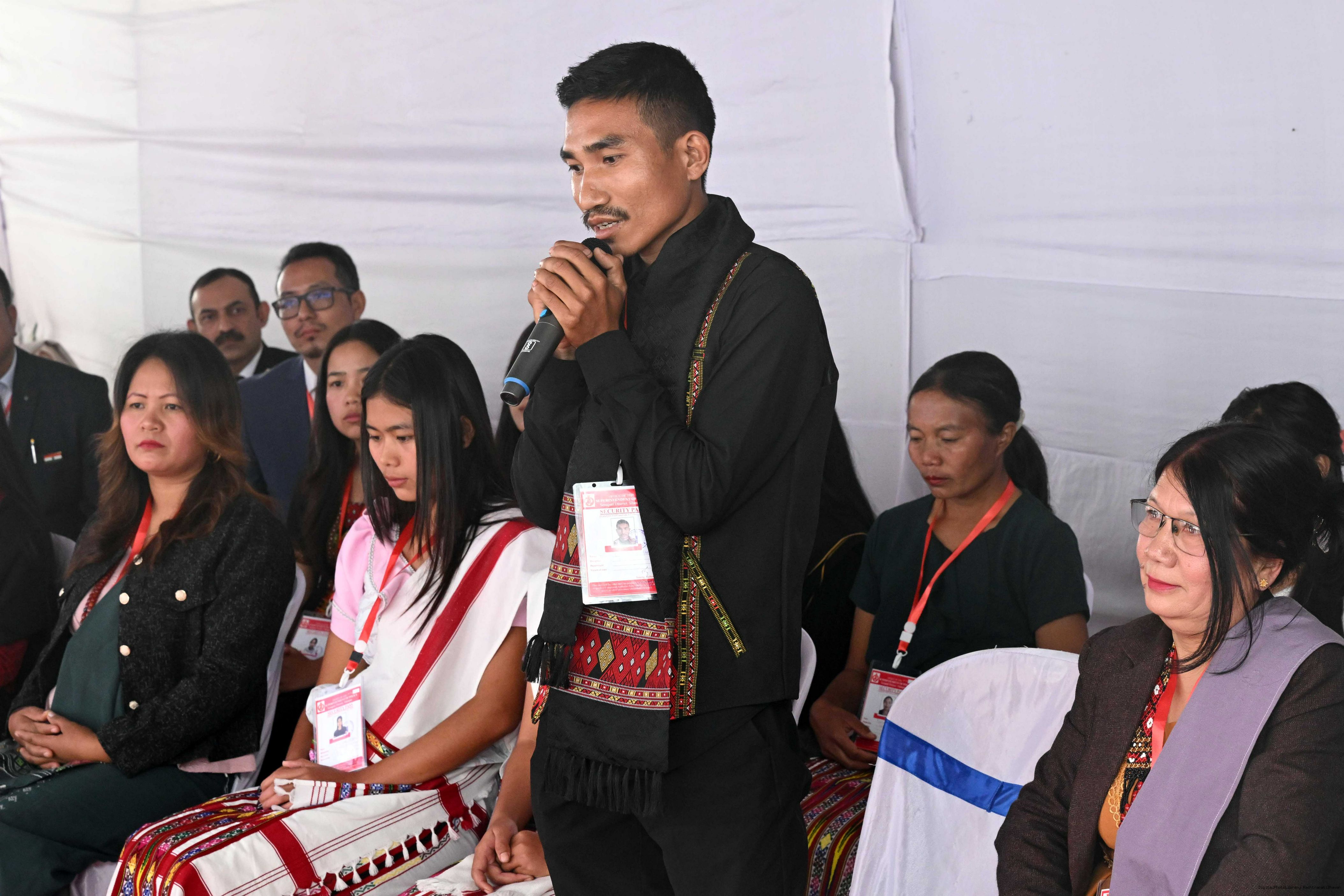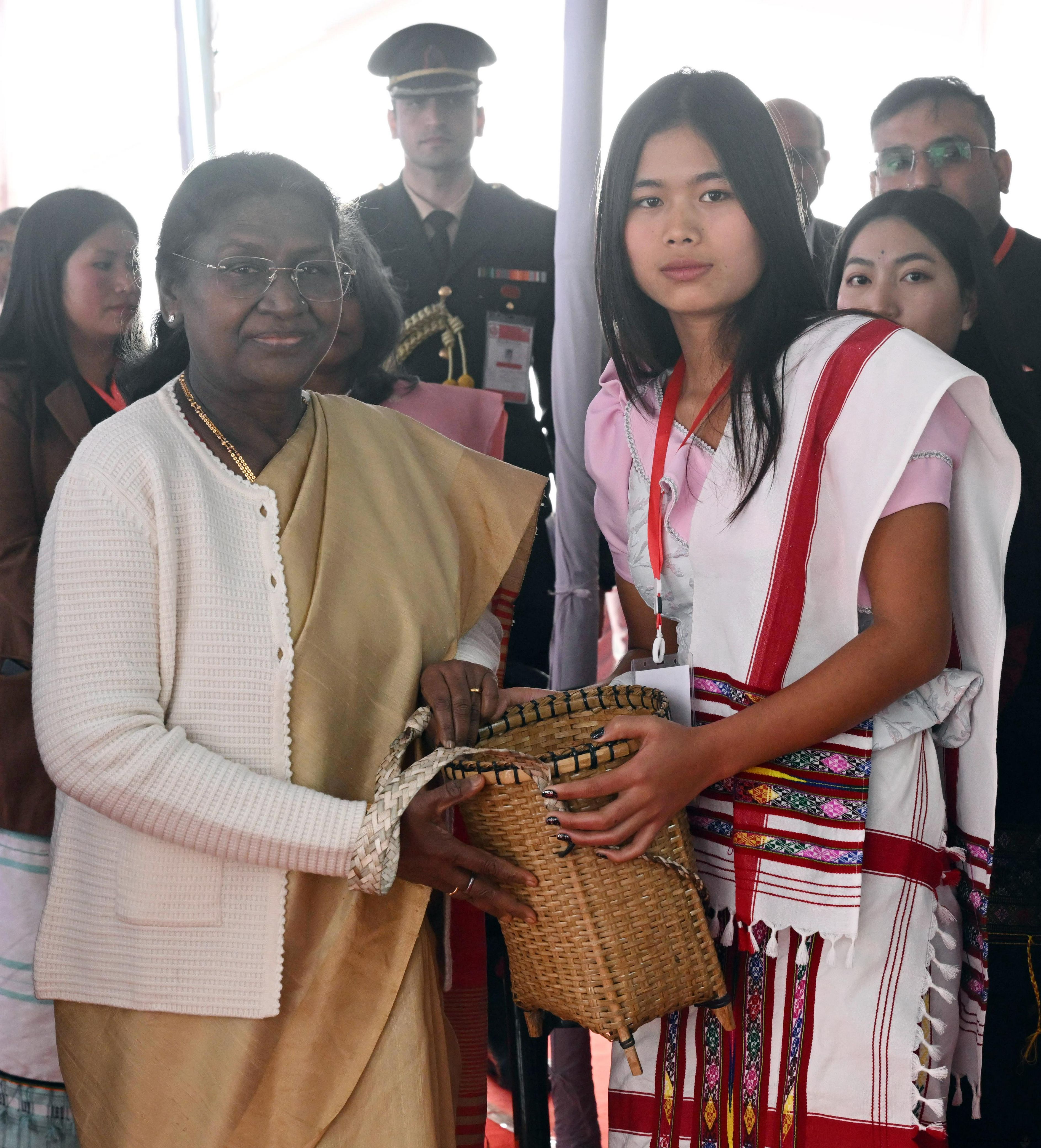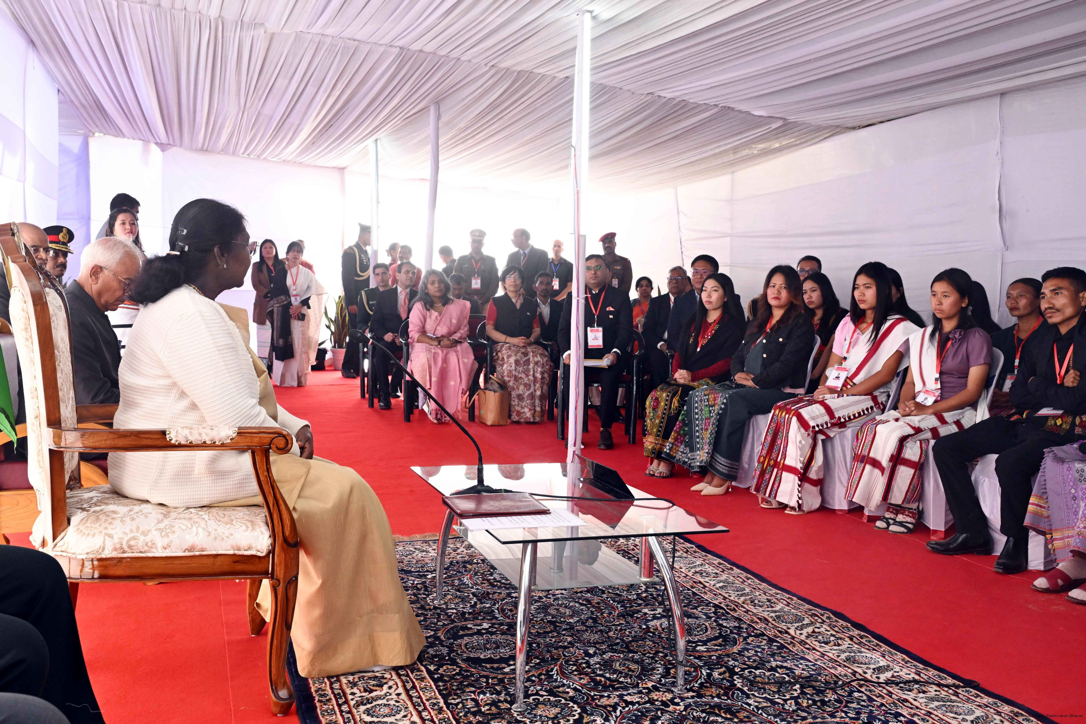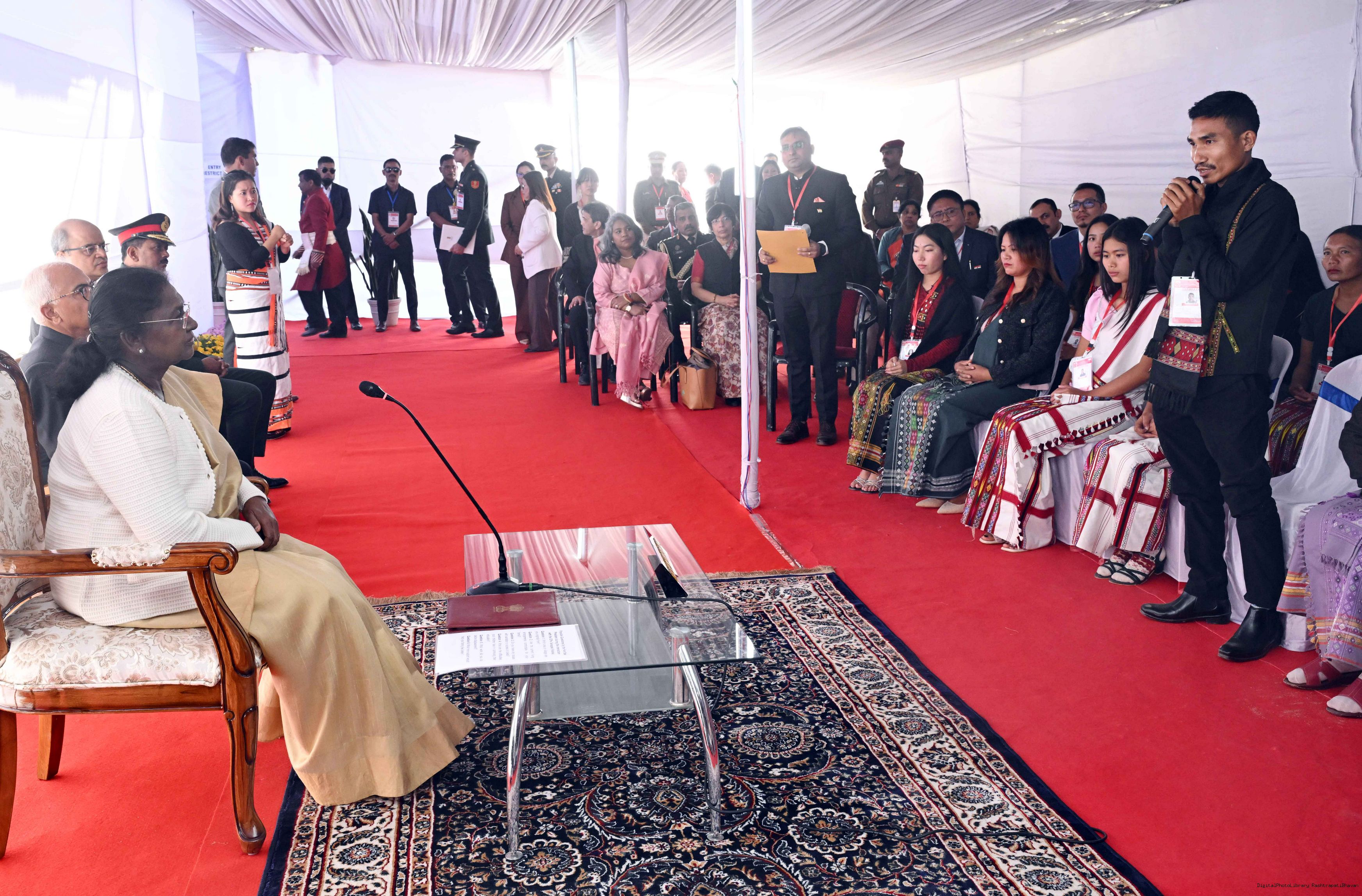 | Caption: | The President of India, Smt. Droupadi Murmu interacted with a few Internally Displaced Persons in Senapati on December 12, 2025. |