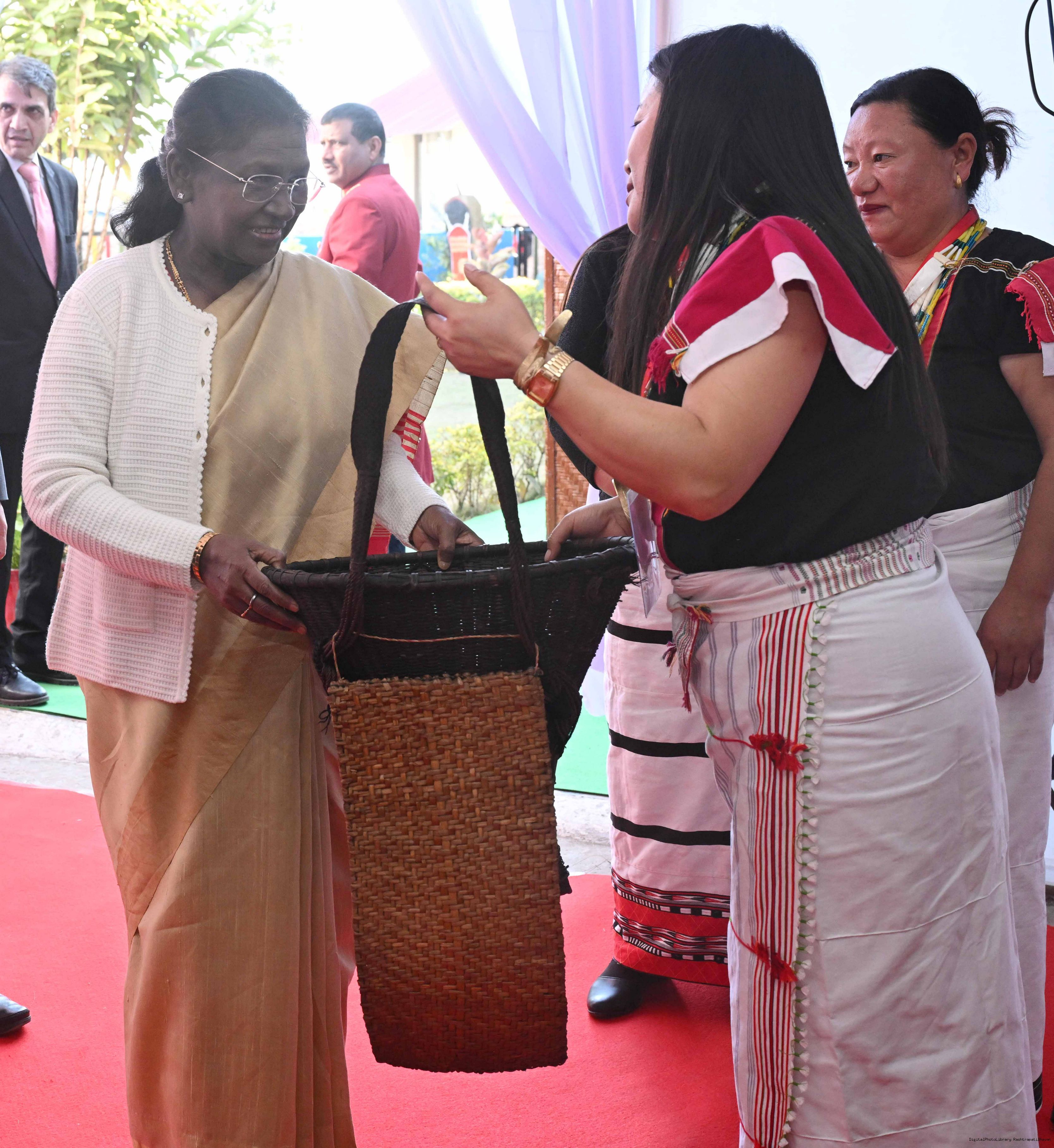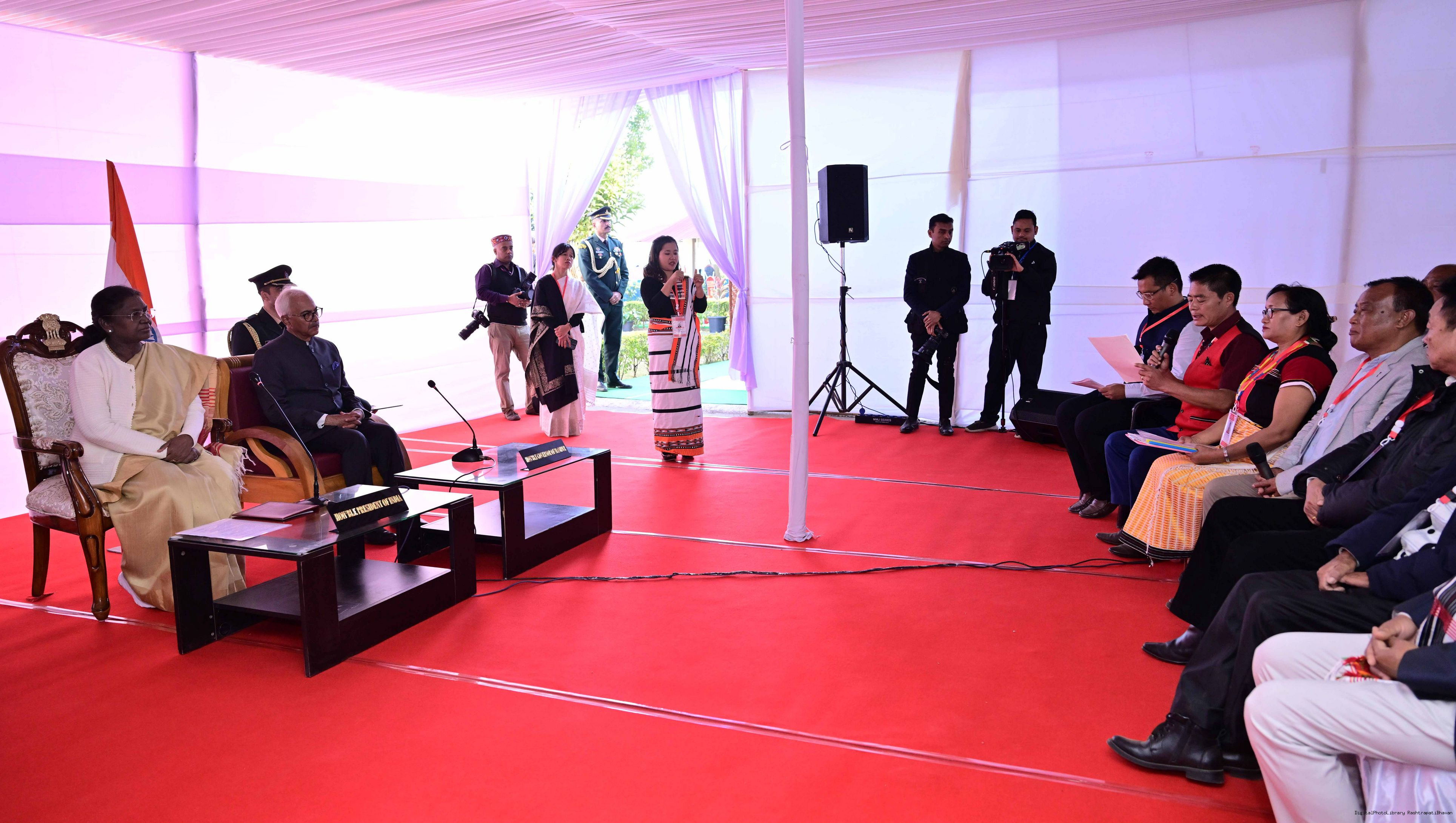 | Caption: | The President of India, Smt. Droupadi Murmu interacted with members of Maram tribe, the only PVTG of Manipur, at Senapati on December 12, 2025. |