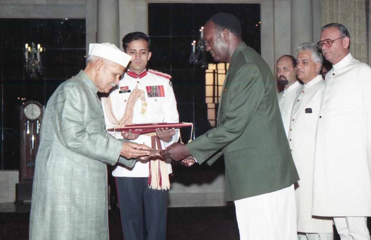 | Caption: | The High Commissioner-Designate of Uganda to India, H.E. Mr. Joseph Tomusange presenting his credentials to the President of India, Dr. Shankar Dayal Sharma at Rashtrapati Bhavan in New Delhi on September 18, 1996. |