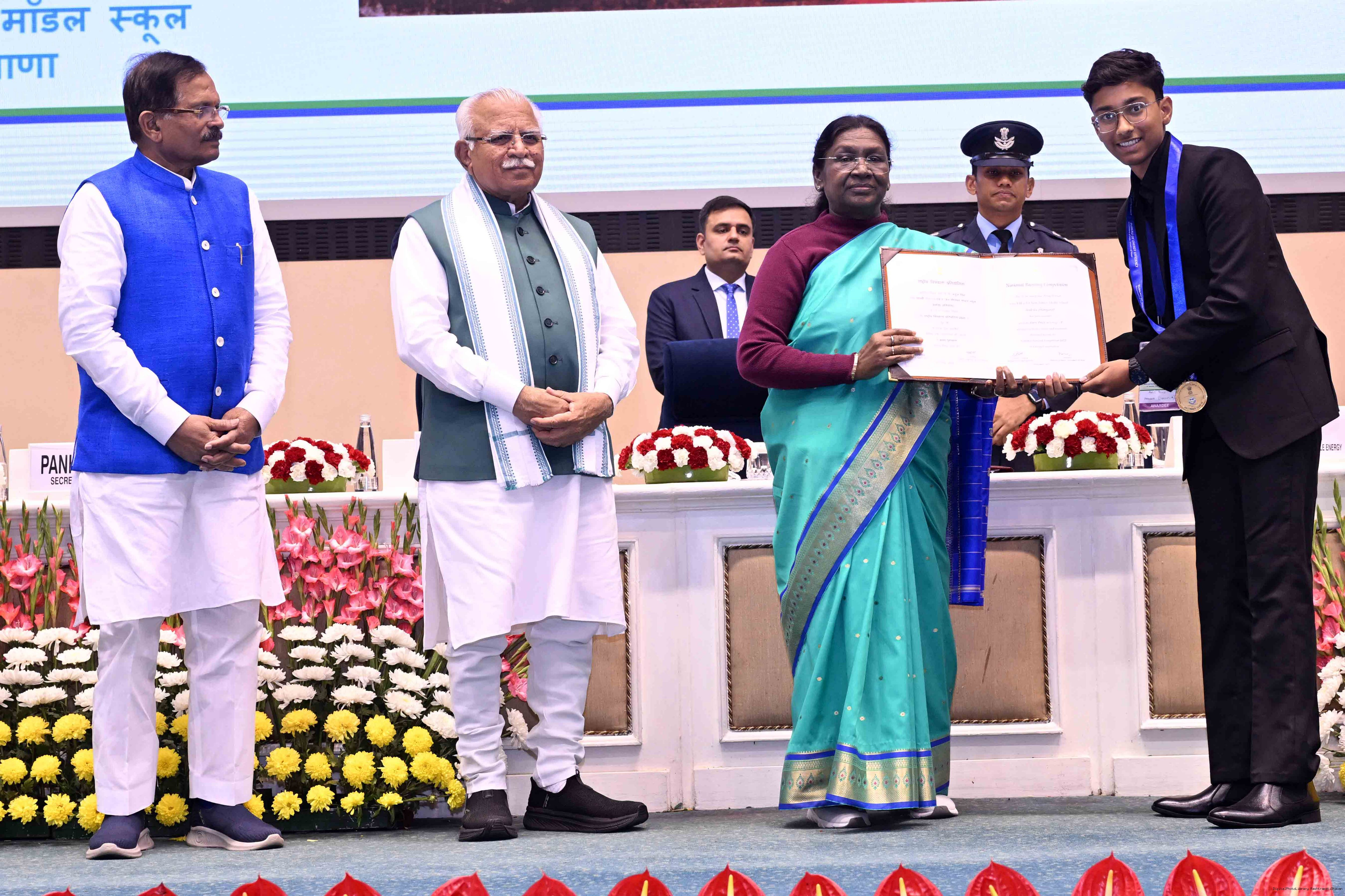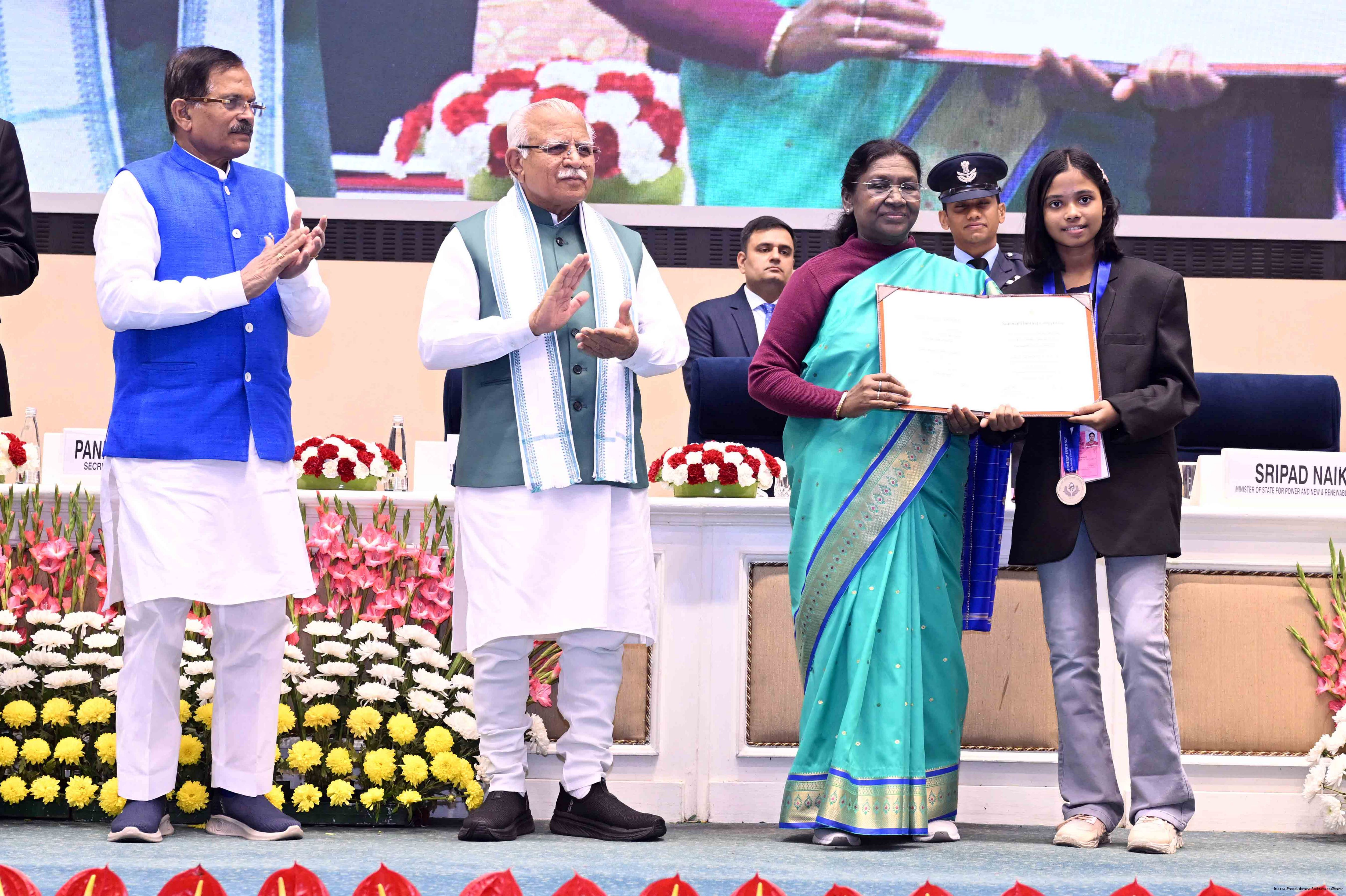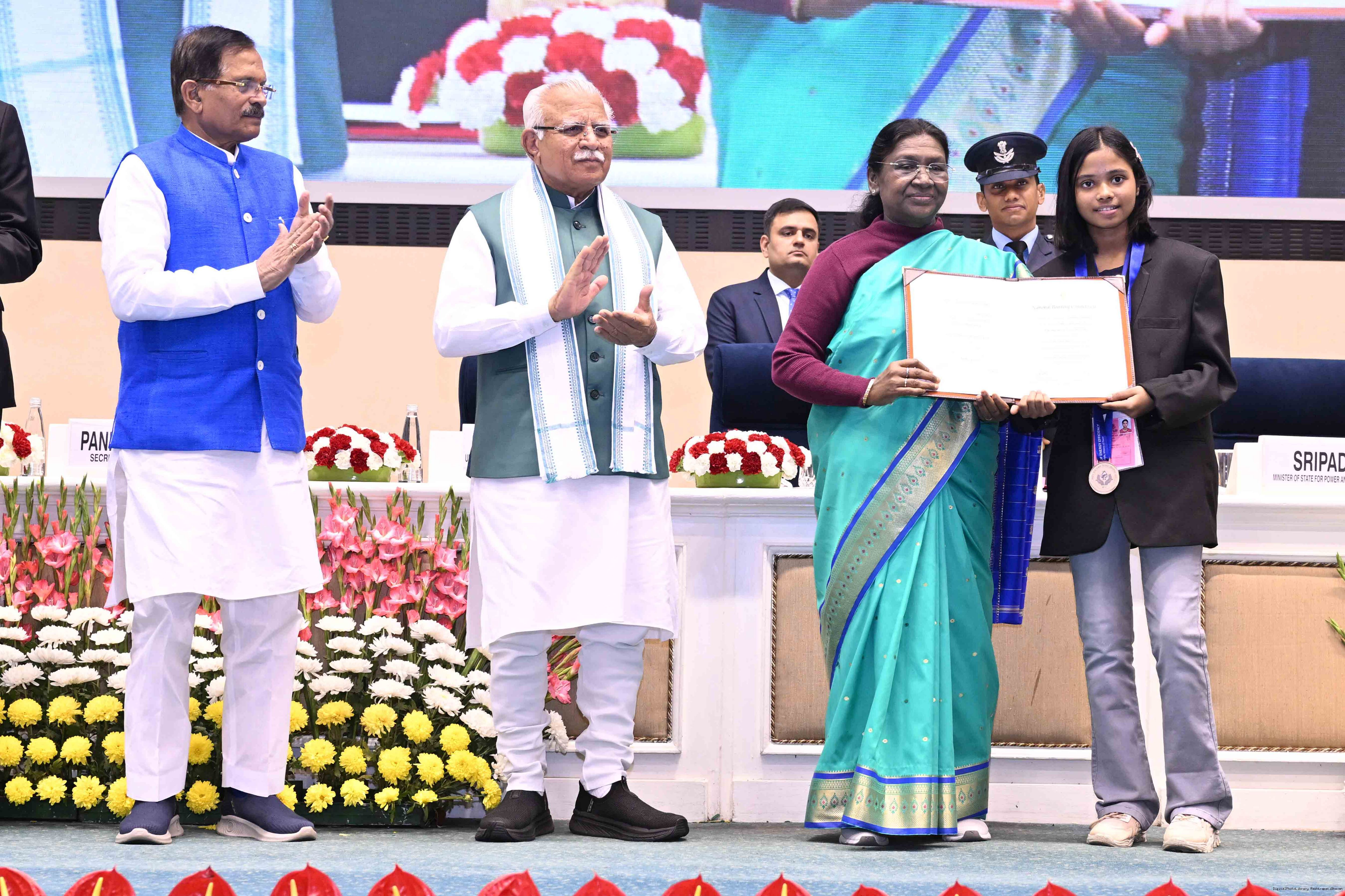 | Caption: | The President of India, Smt Droupadi Murmu, presented the National Energy Conservation Awards 2025 and National Painting Competition on Energy Conservation prizes in New Delhi on December 14, 2025. |